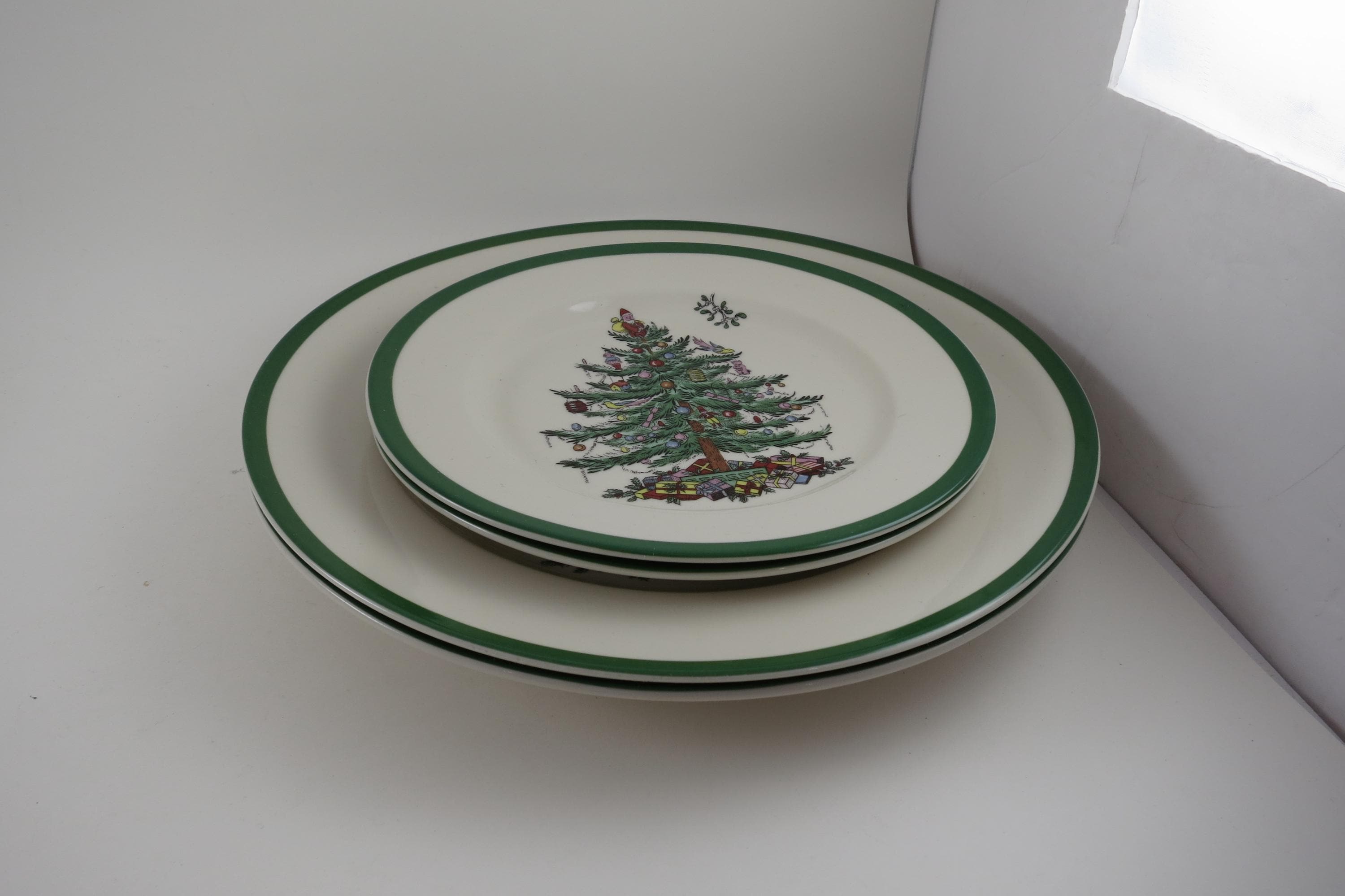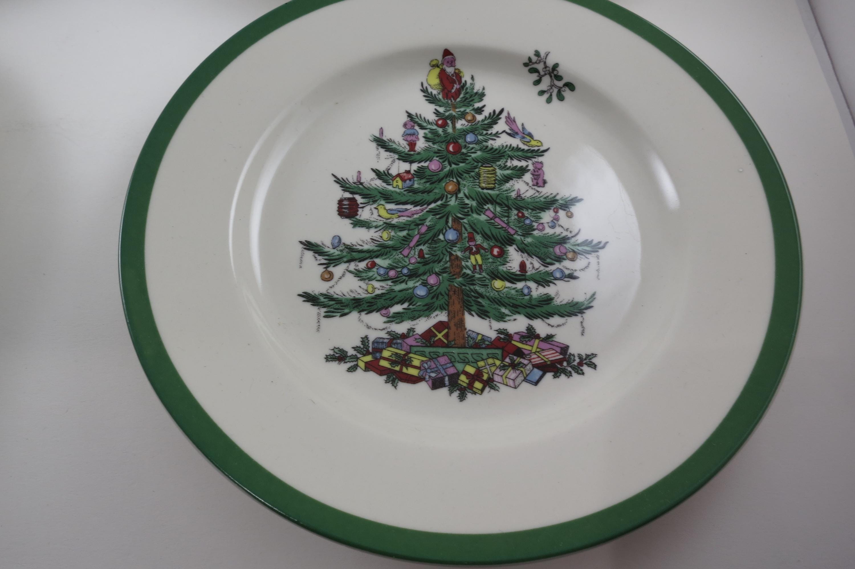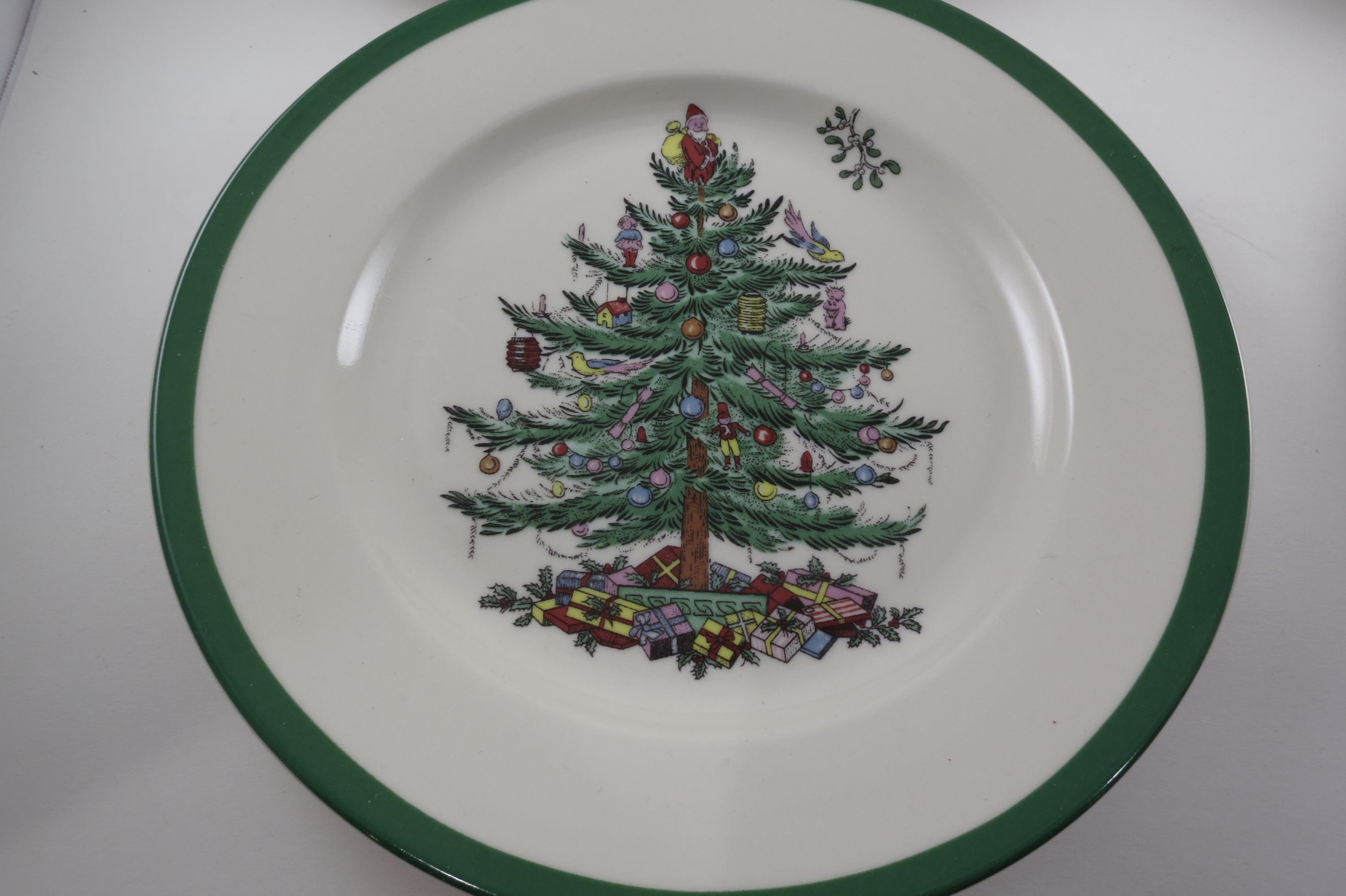 Set of Four Vintage Spode Christmas Tree Plates 2 Dinner 2 Salad.