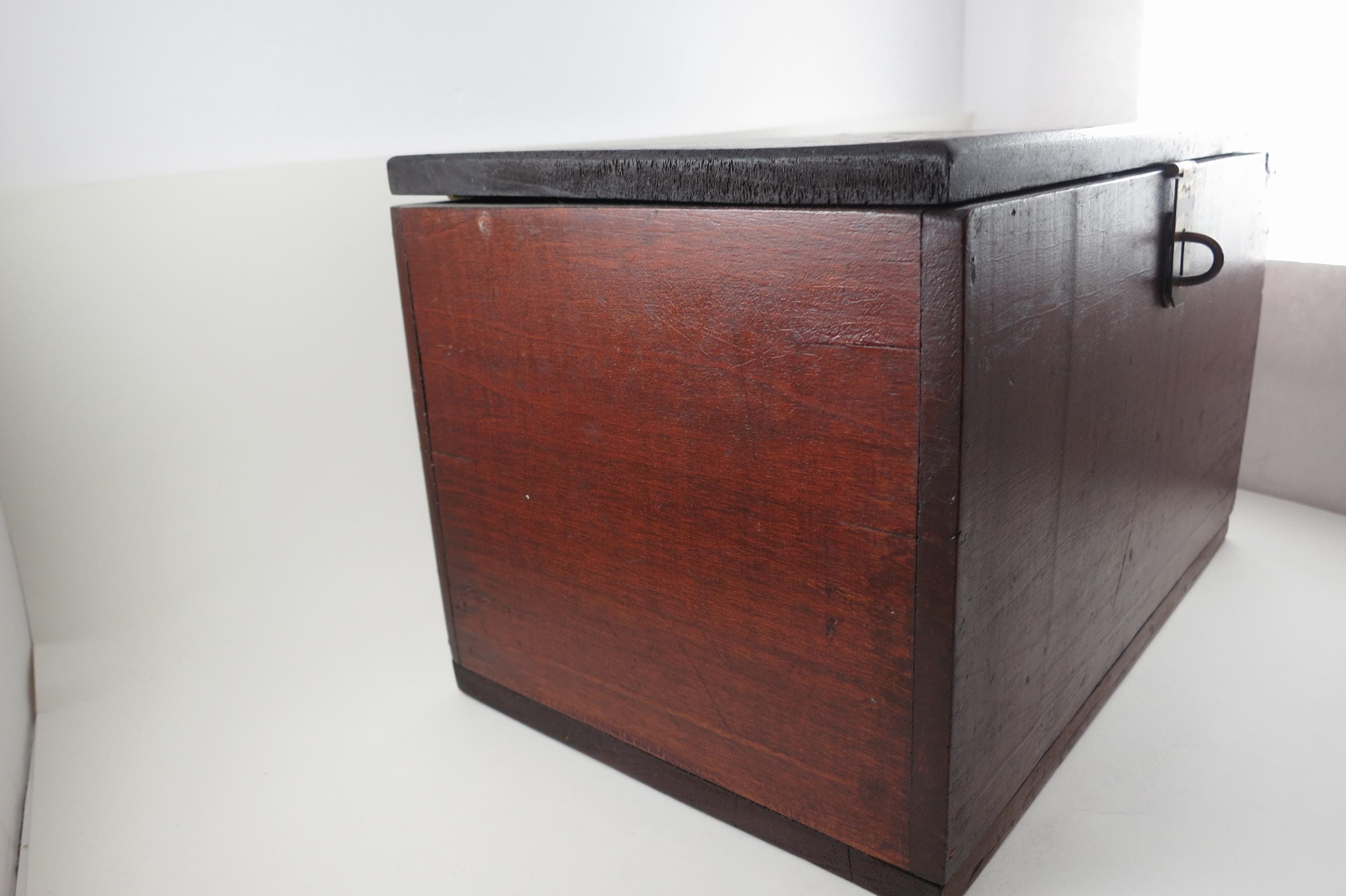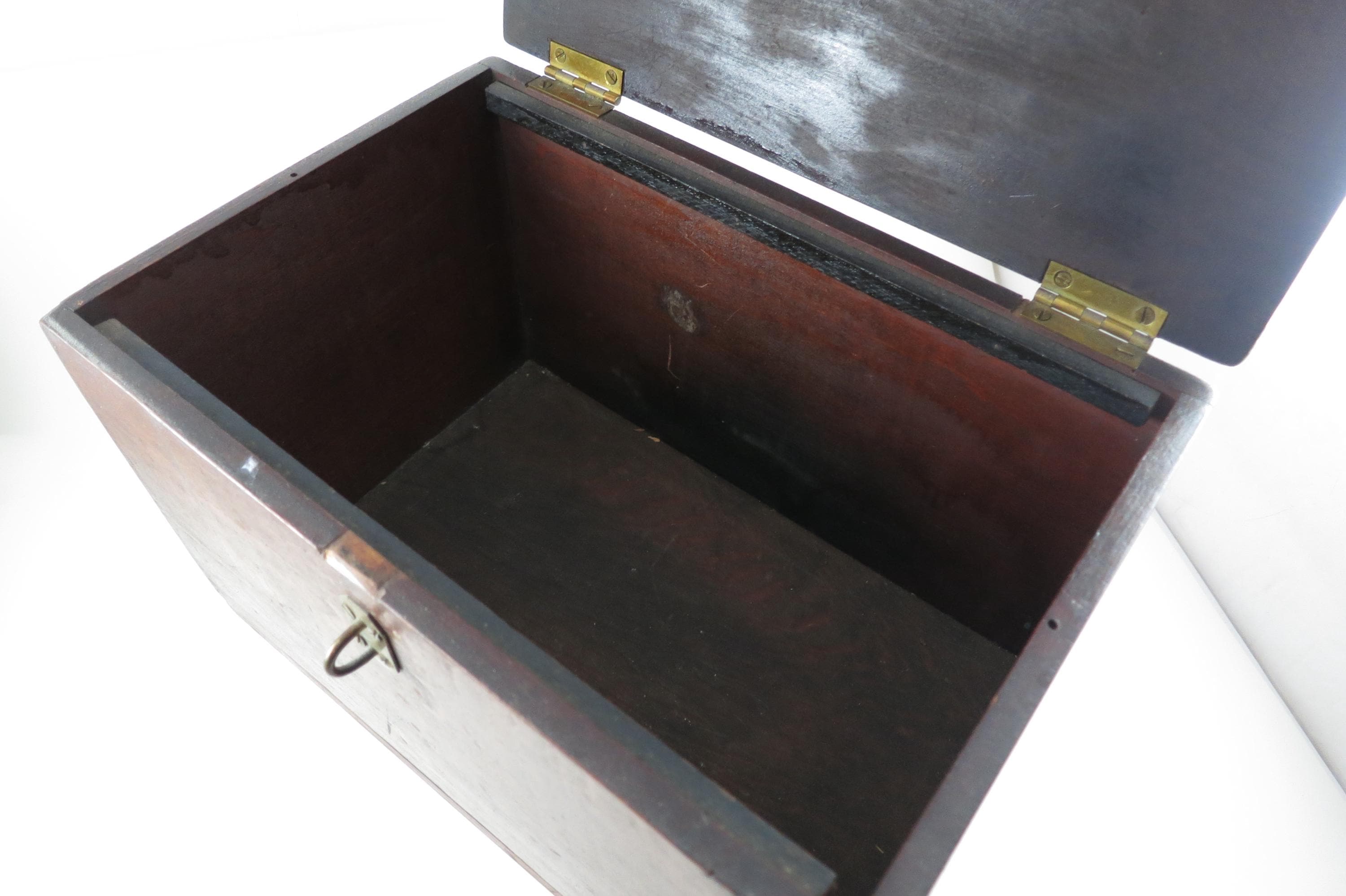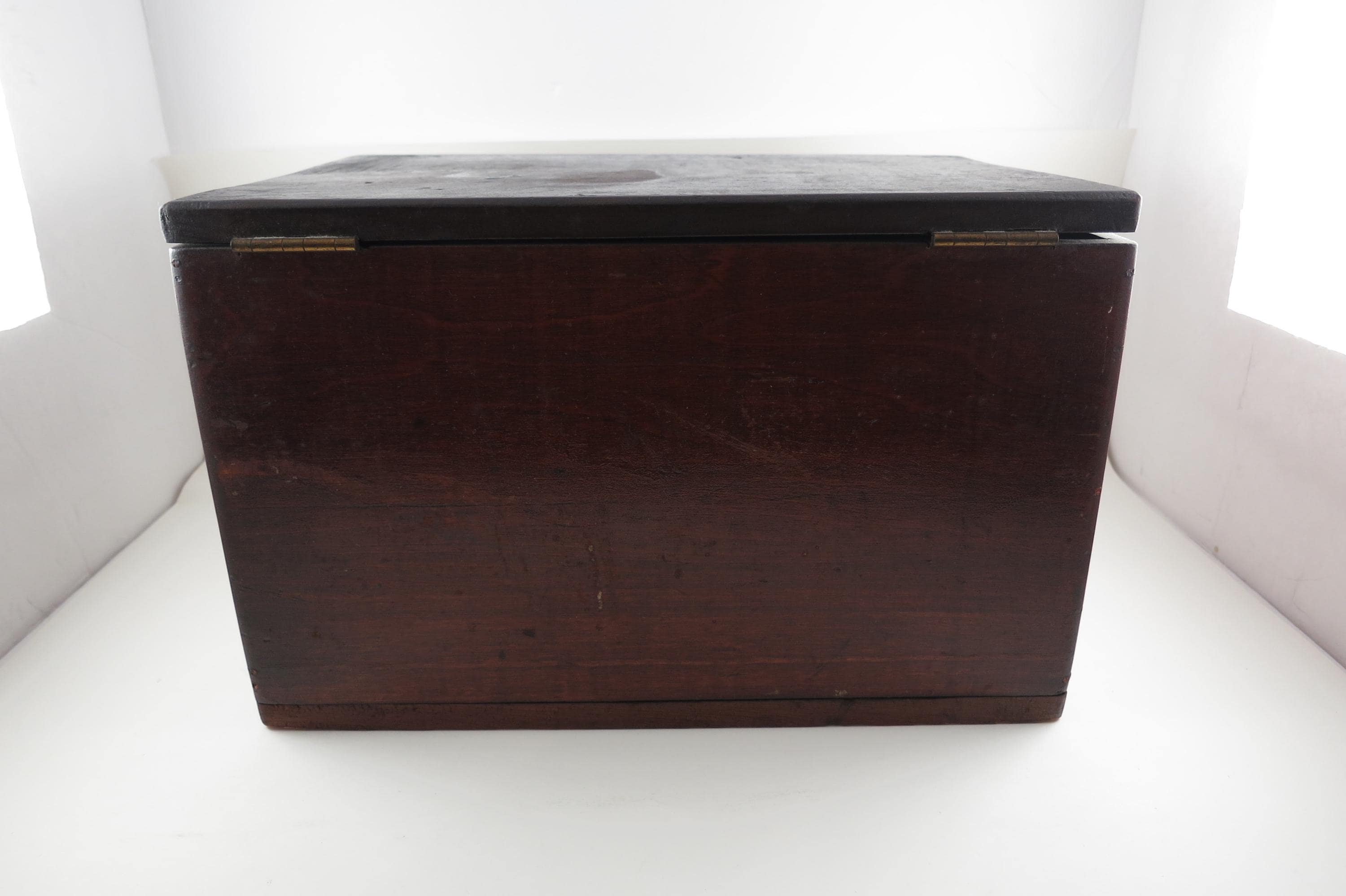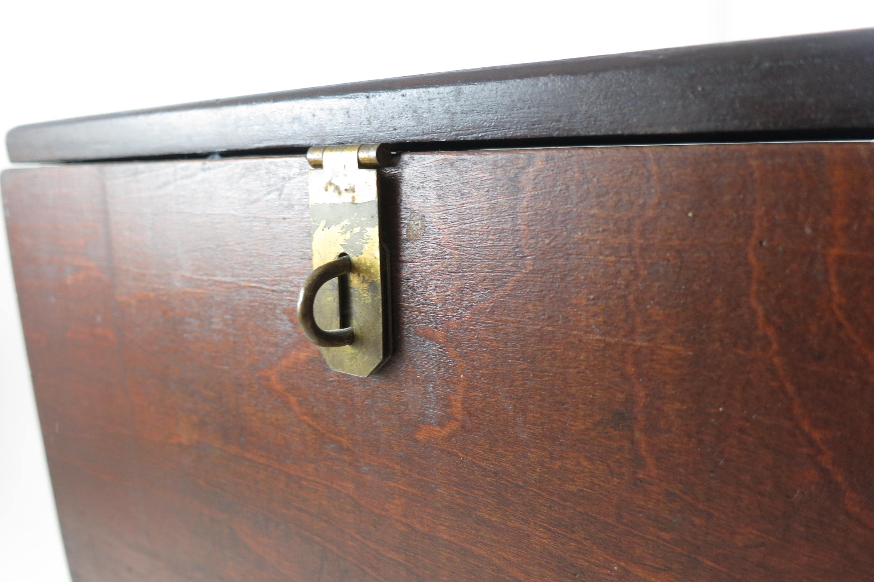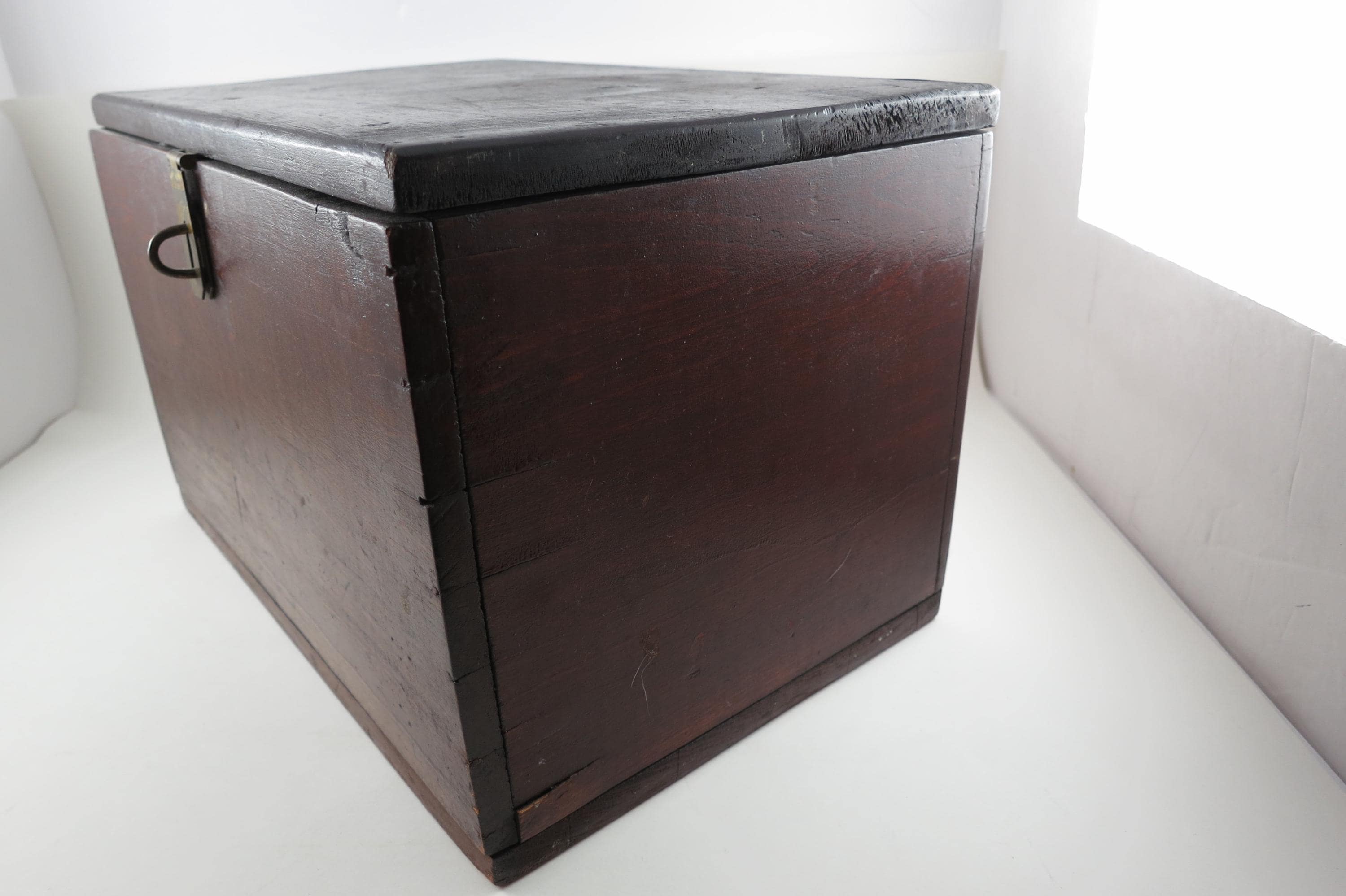 Antique Wooden Treasure Keepsake Storage Box 12 Inches with Brass Latch. Good condition for a box this old! Has a small brass latch to keep the top closed. Top needs to be refinished.