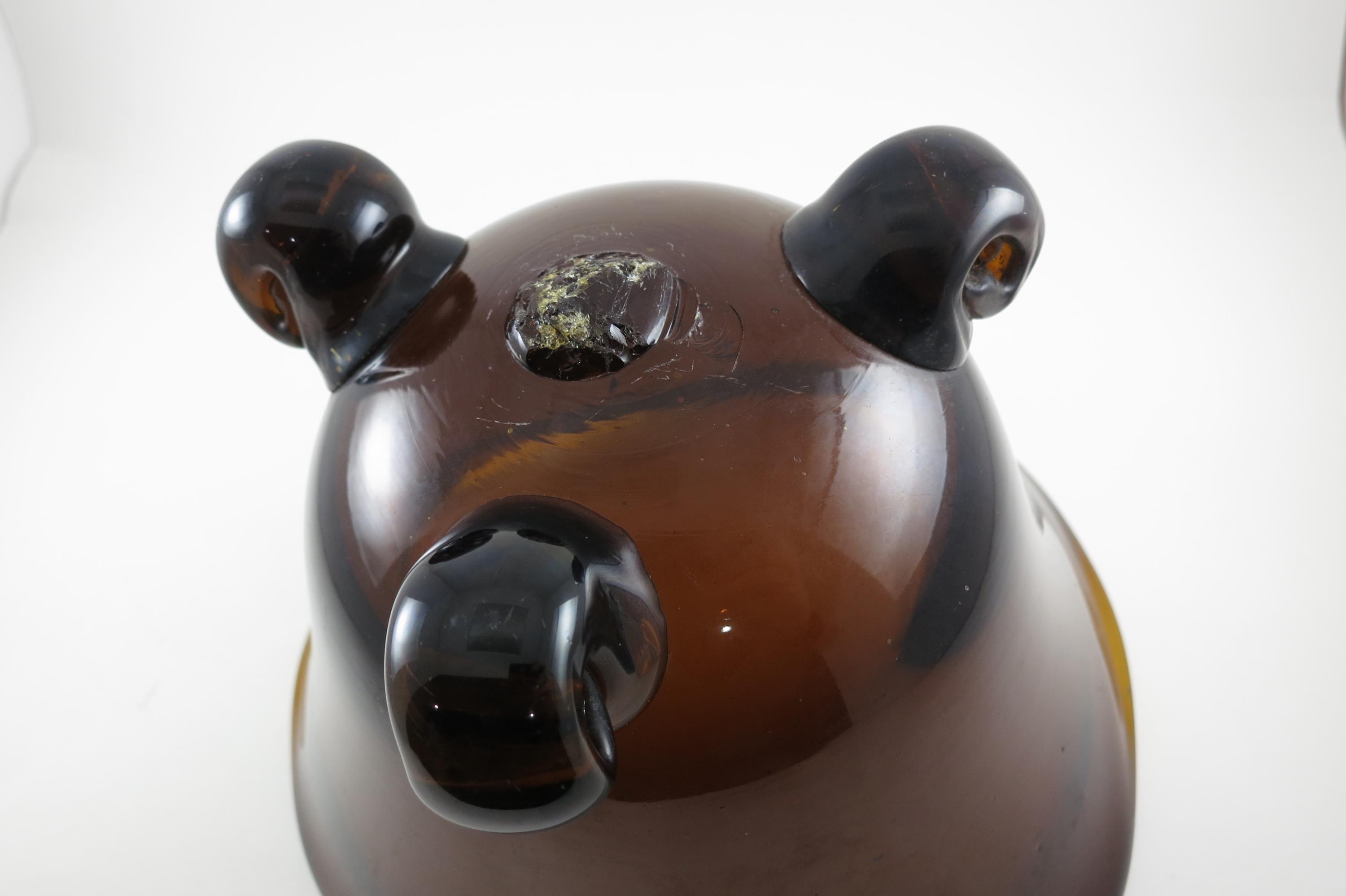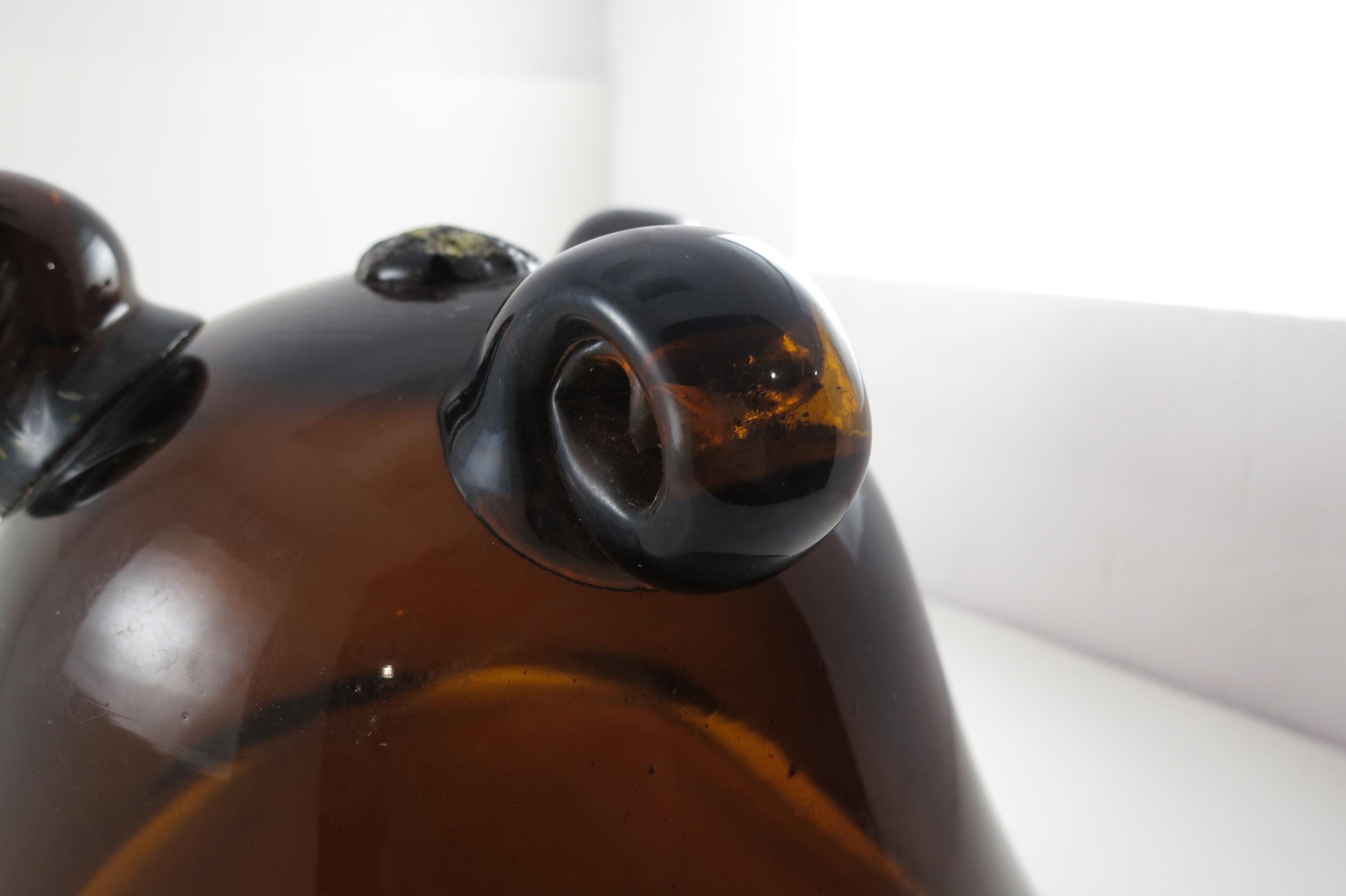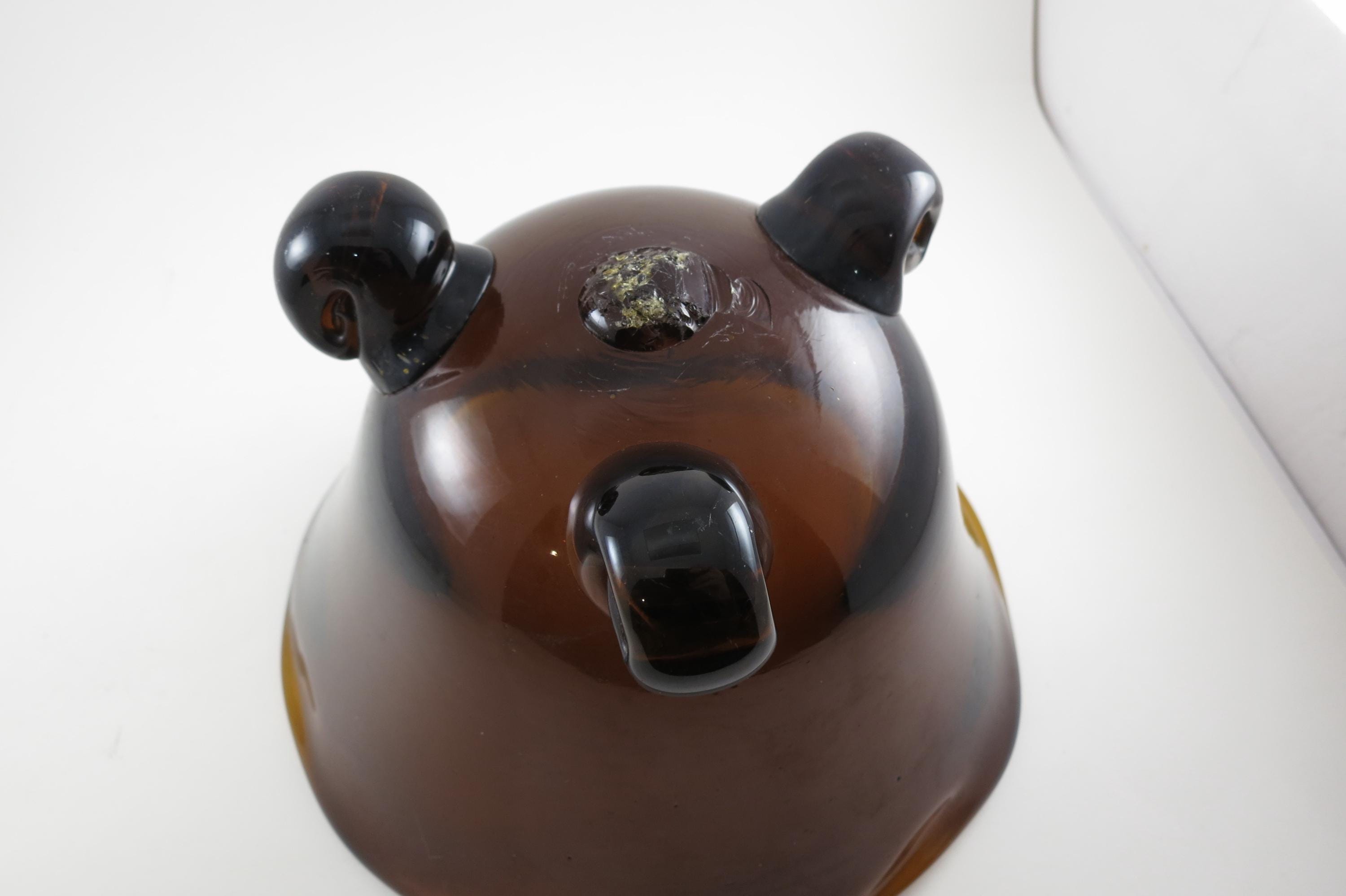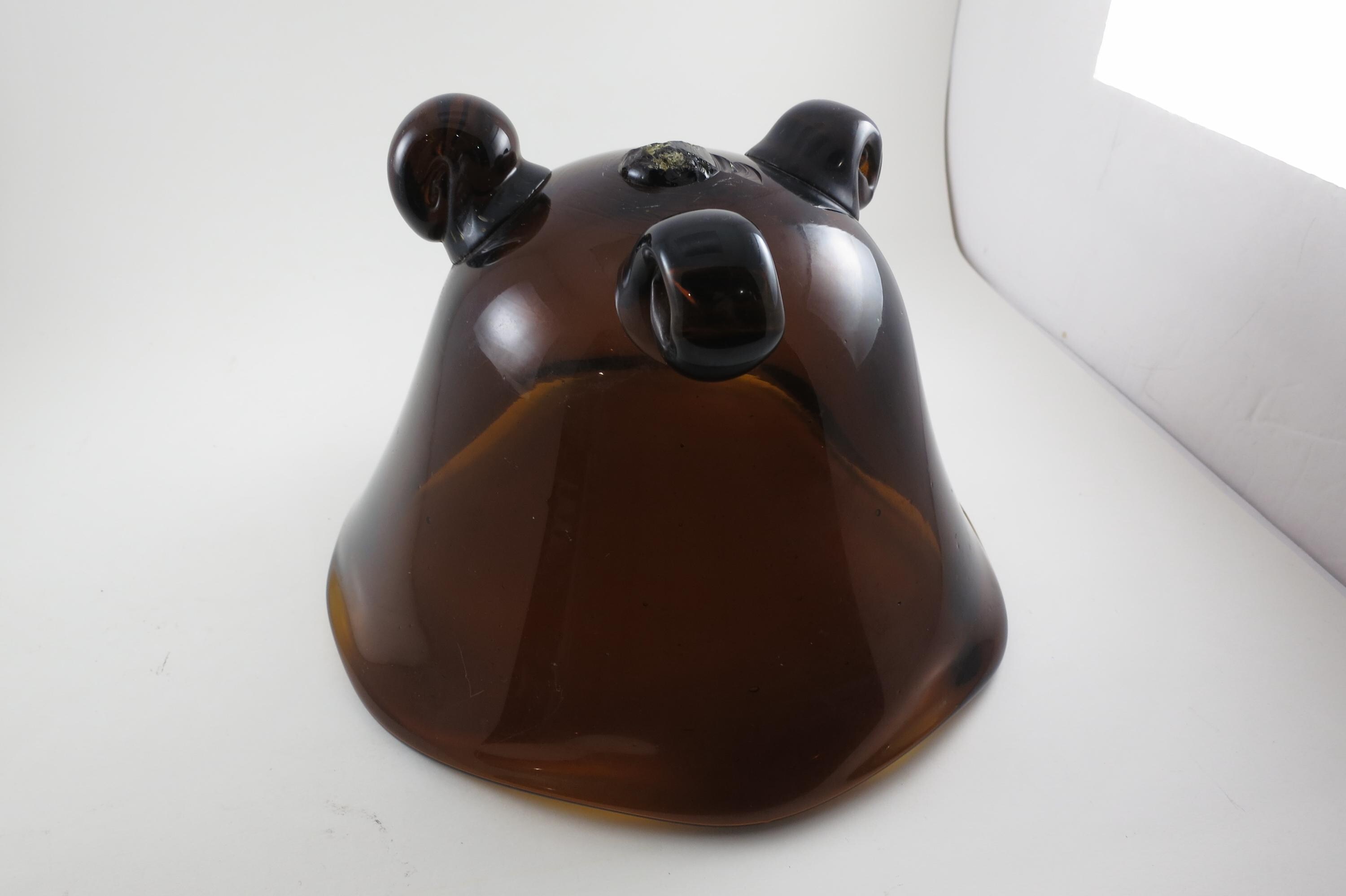 Vintage Hand Blown Amber Art Glass Heavy Tri Foot Bowl.