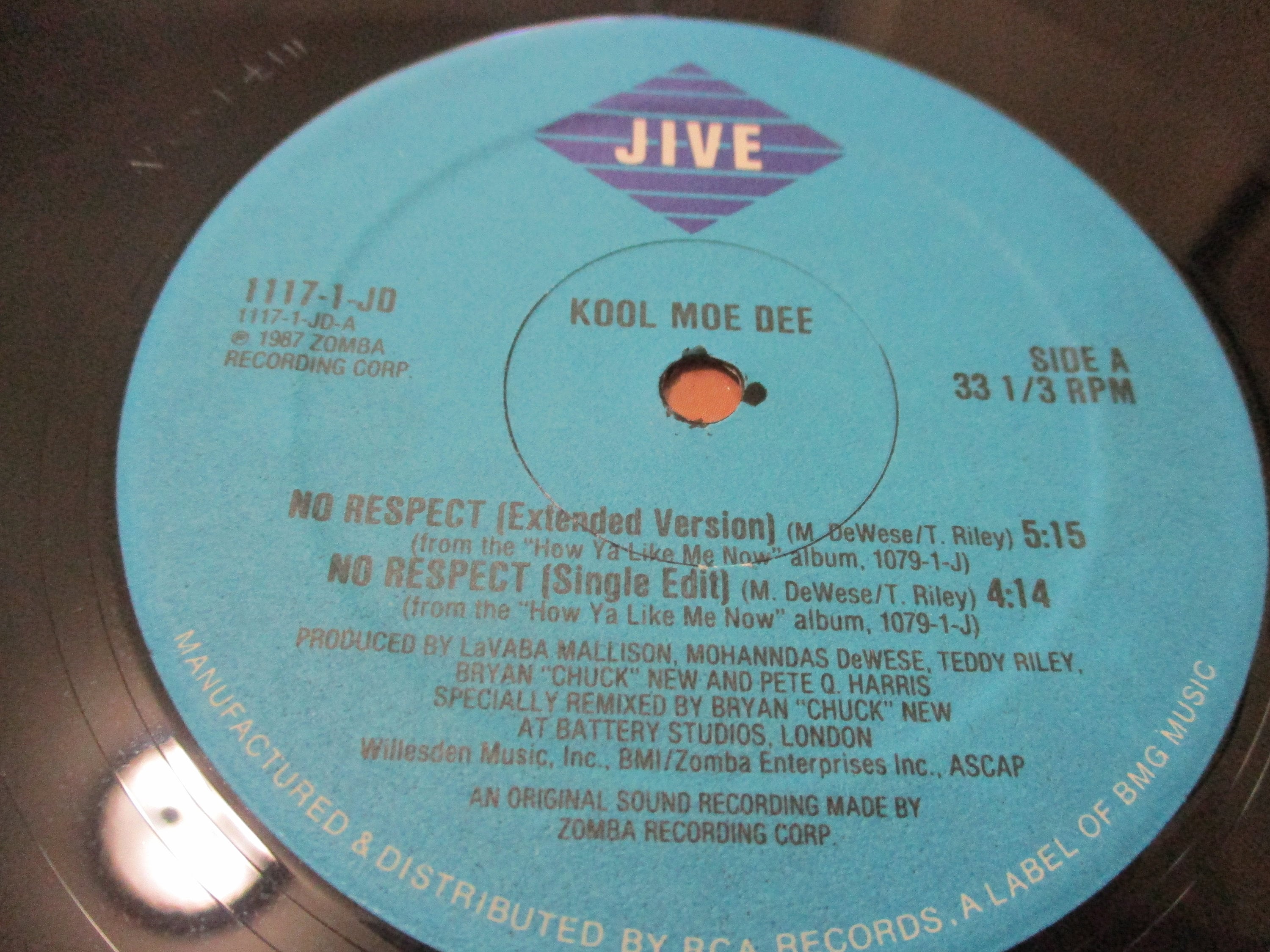 Vintage 1988 Vinyl EP Record Kool Moe Dee No Respect Excellent Condition In Shrink. Original cover is in excellent condition and includes the inner paper sleeve and factory shrink wrap. Record is also in excellent condition. Tracks are as follows