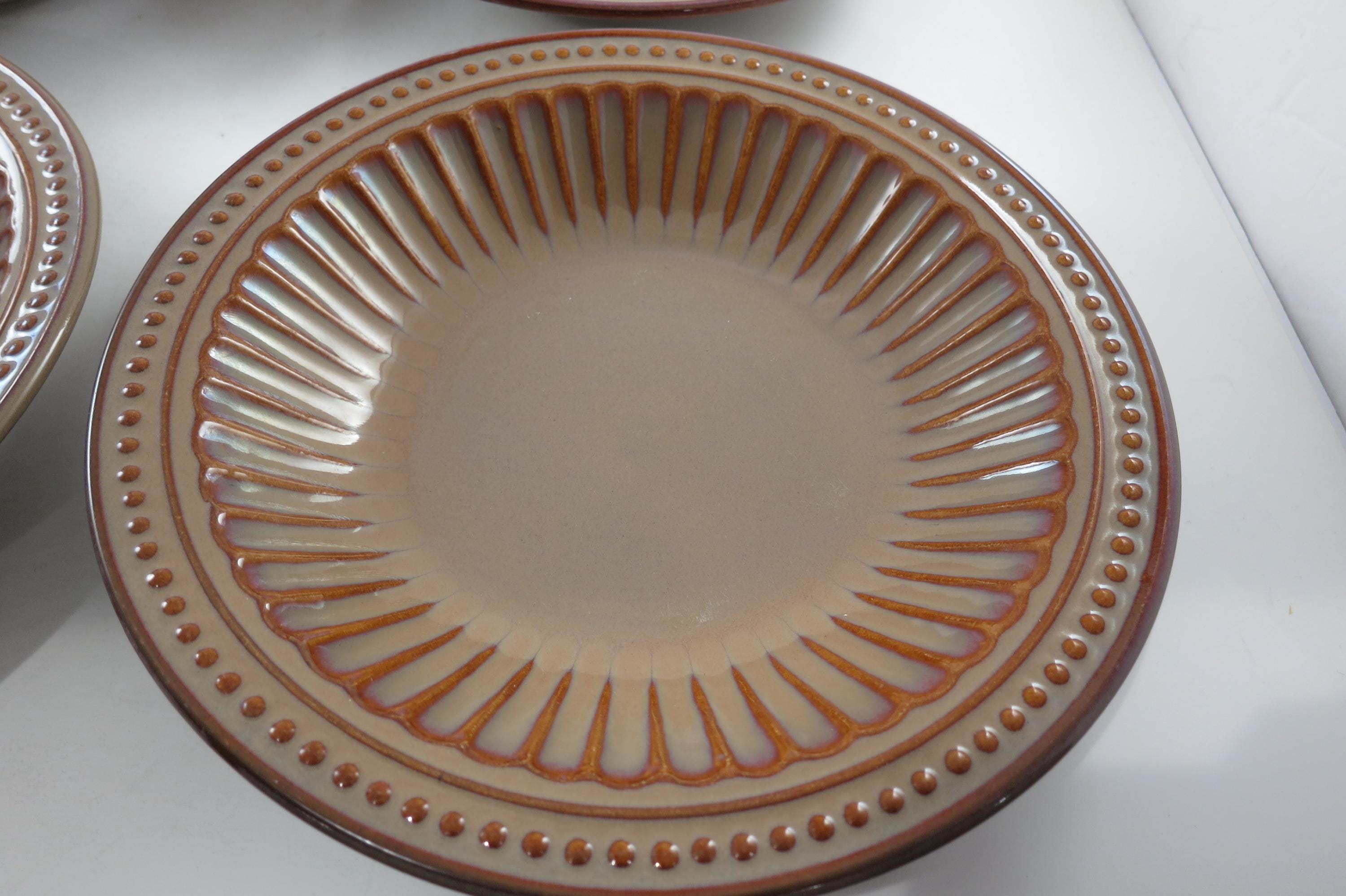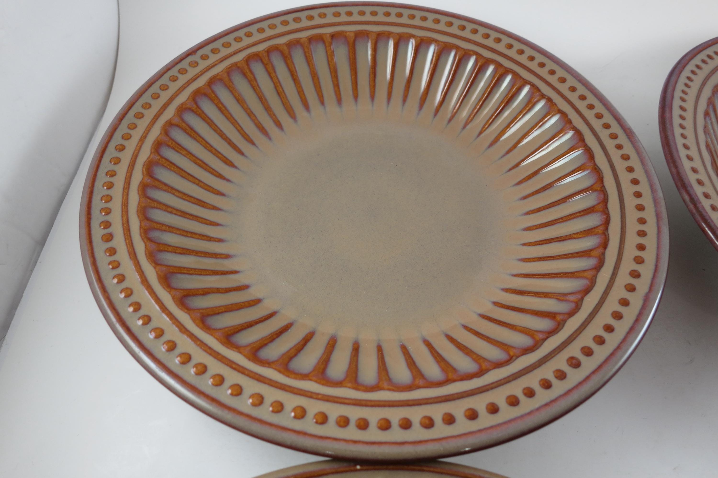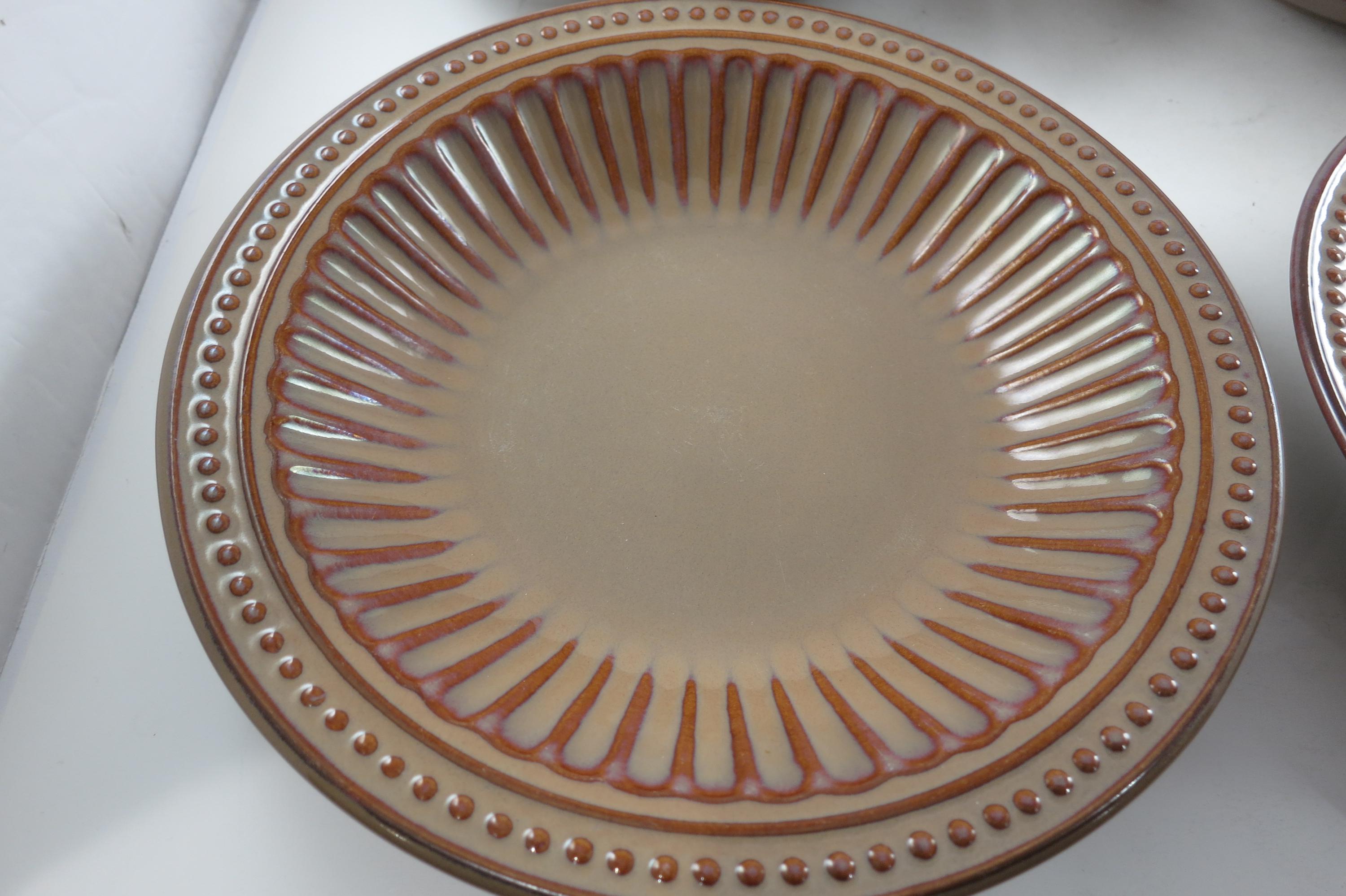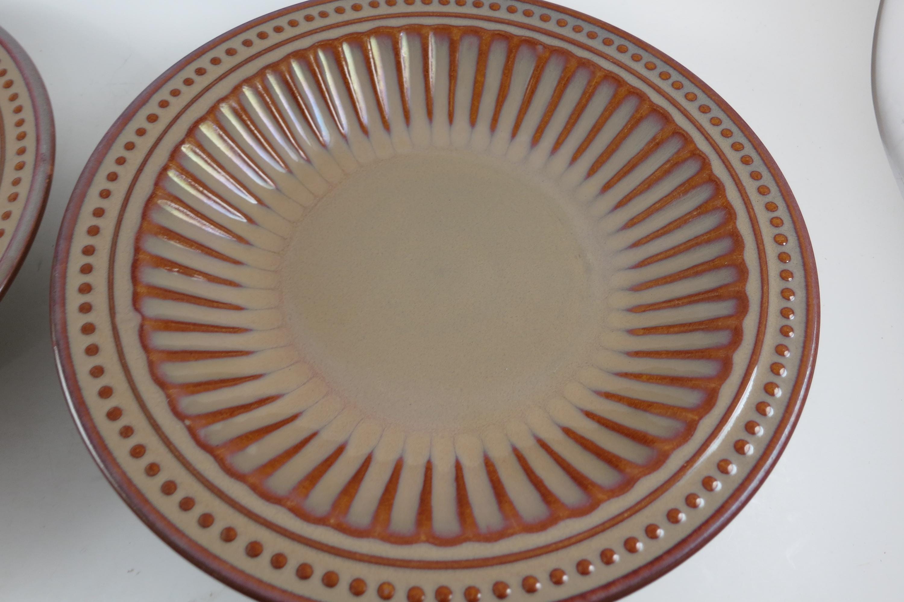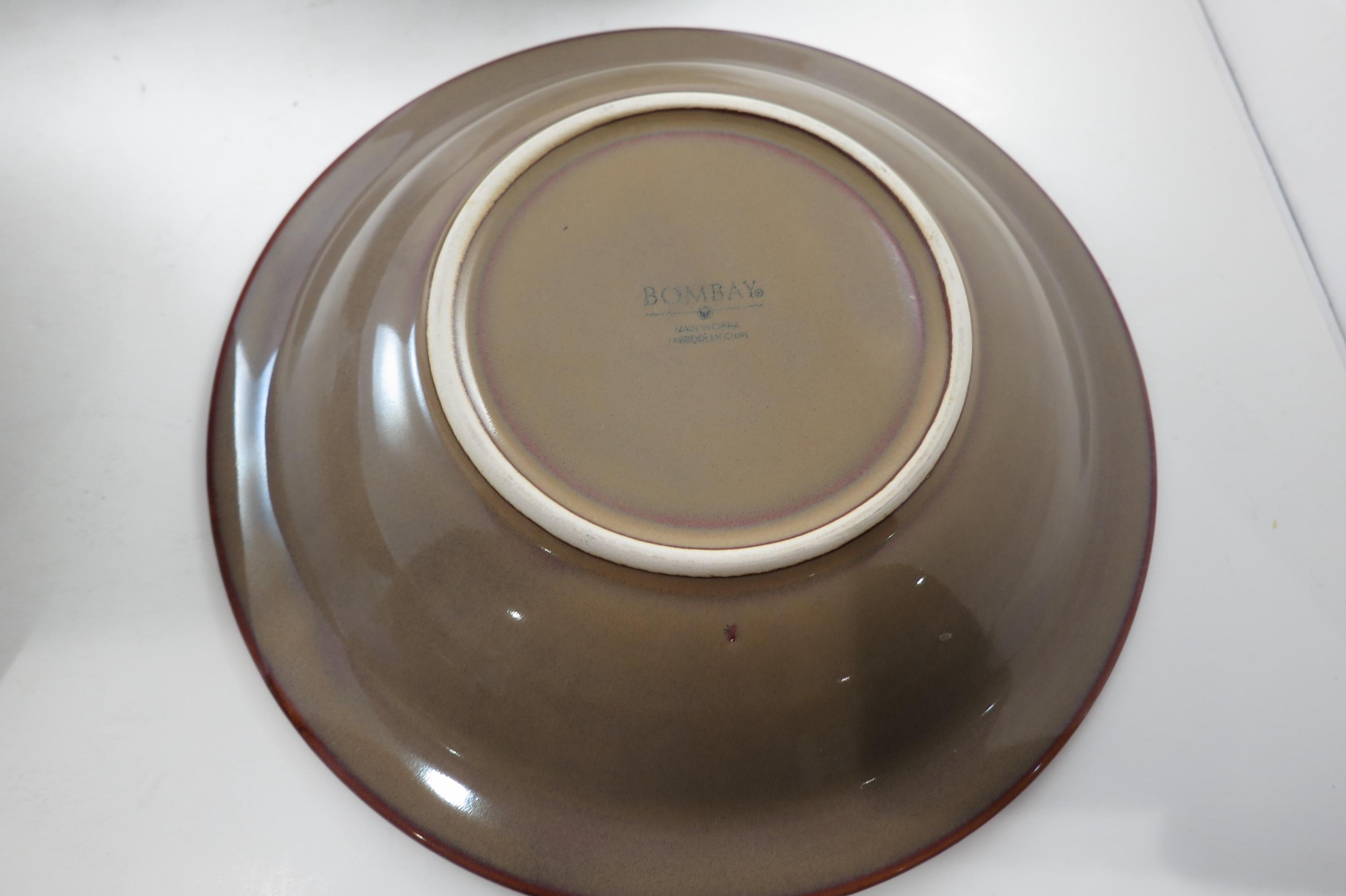 Set of Four Vintage Bombay Brown & Red Beaded 8 3/4 Inch Soup Bowls