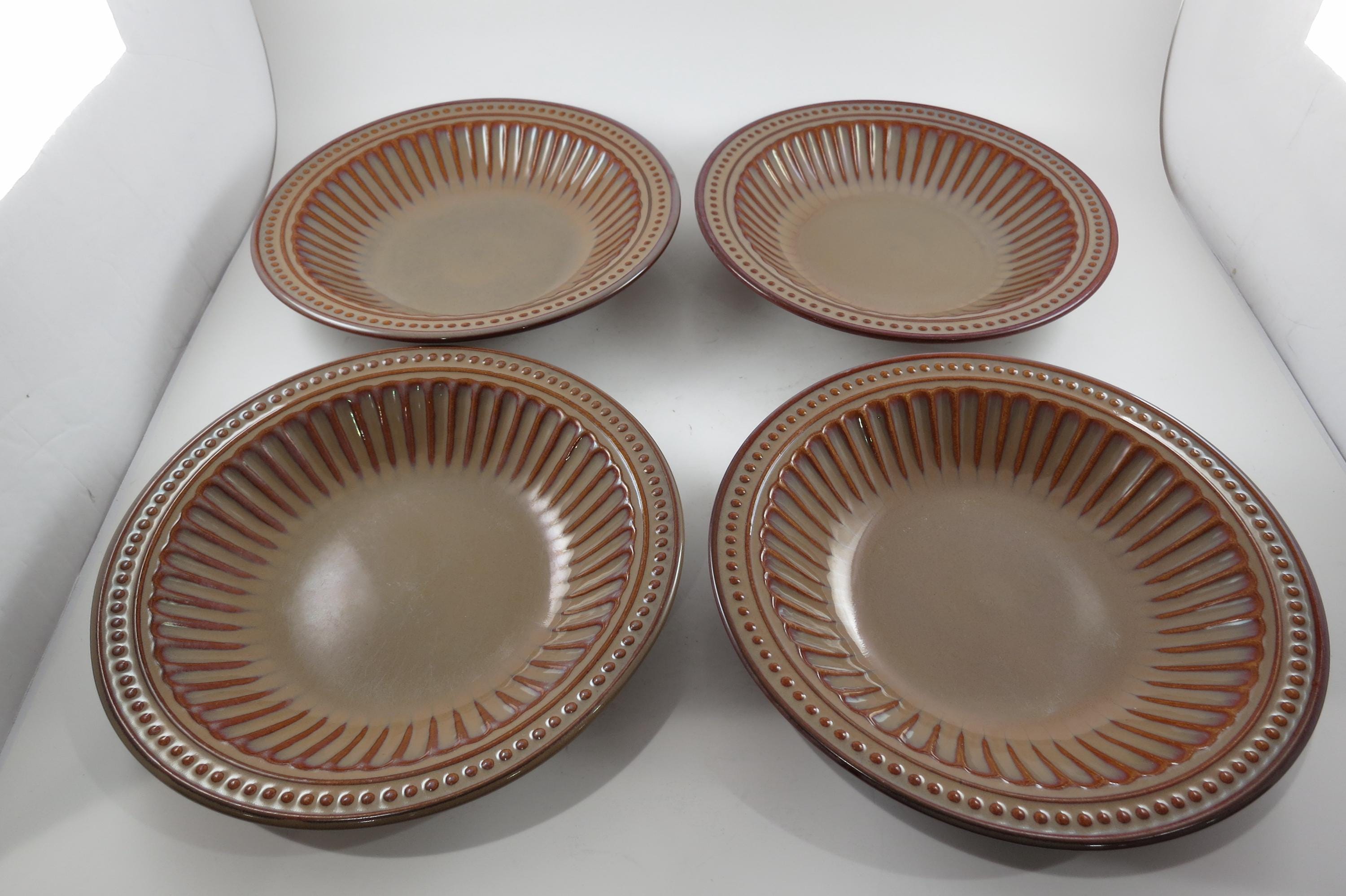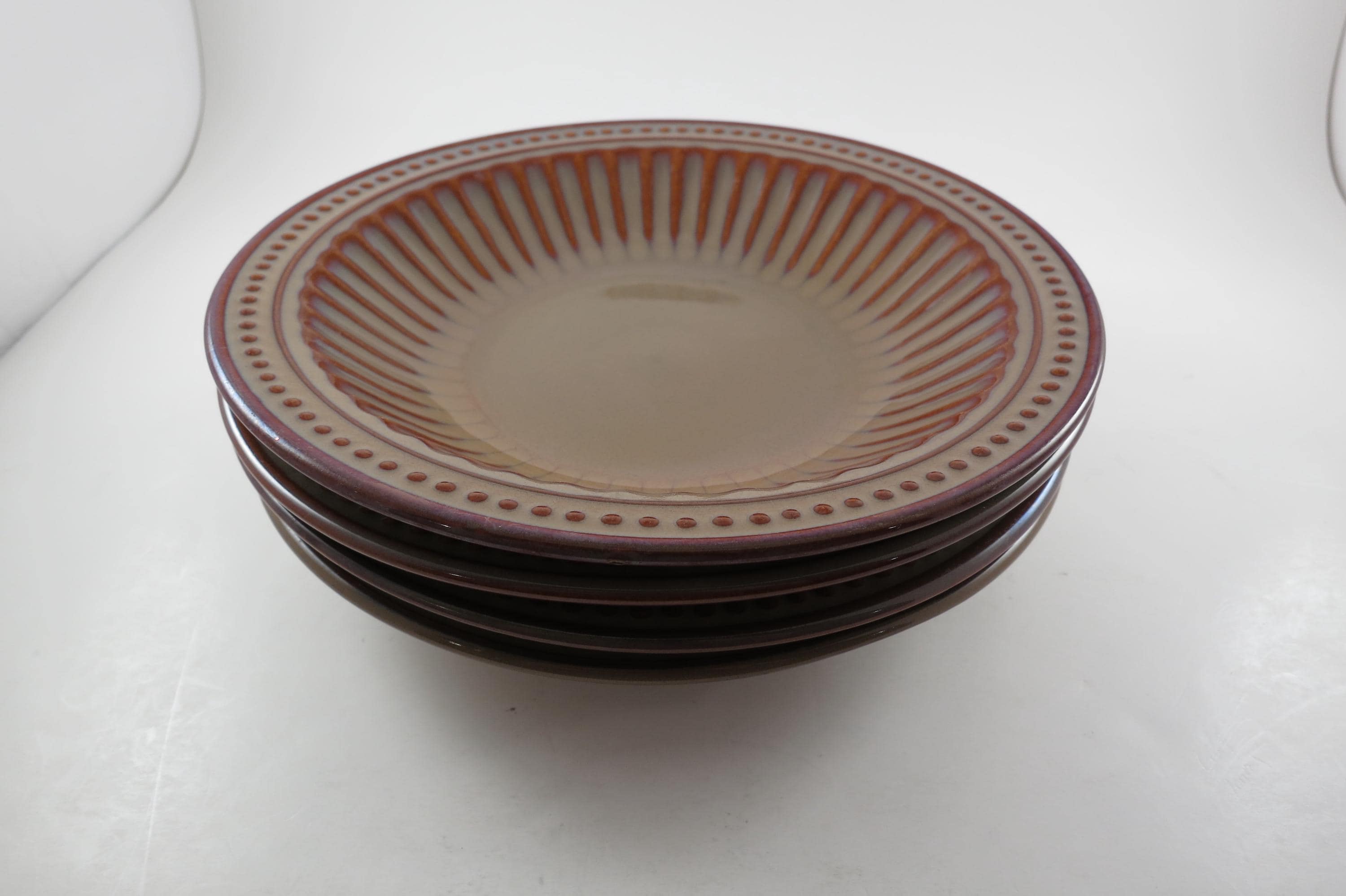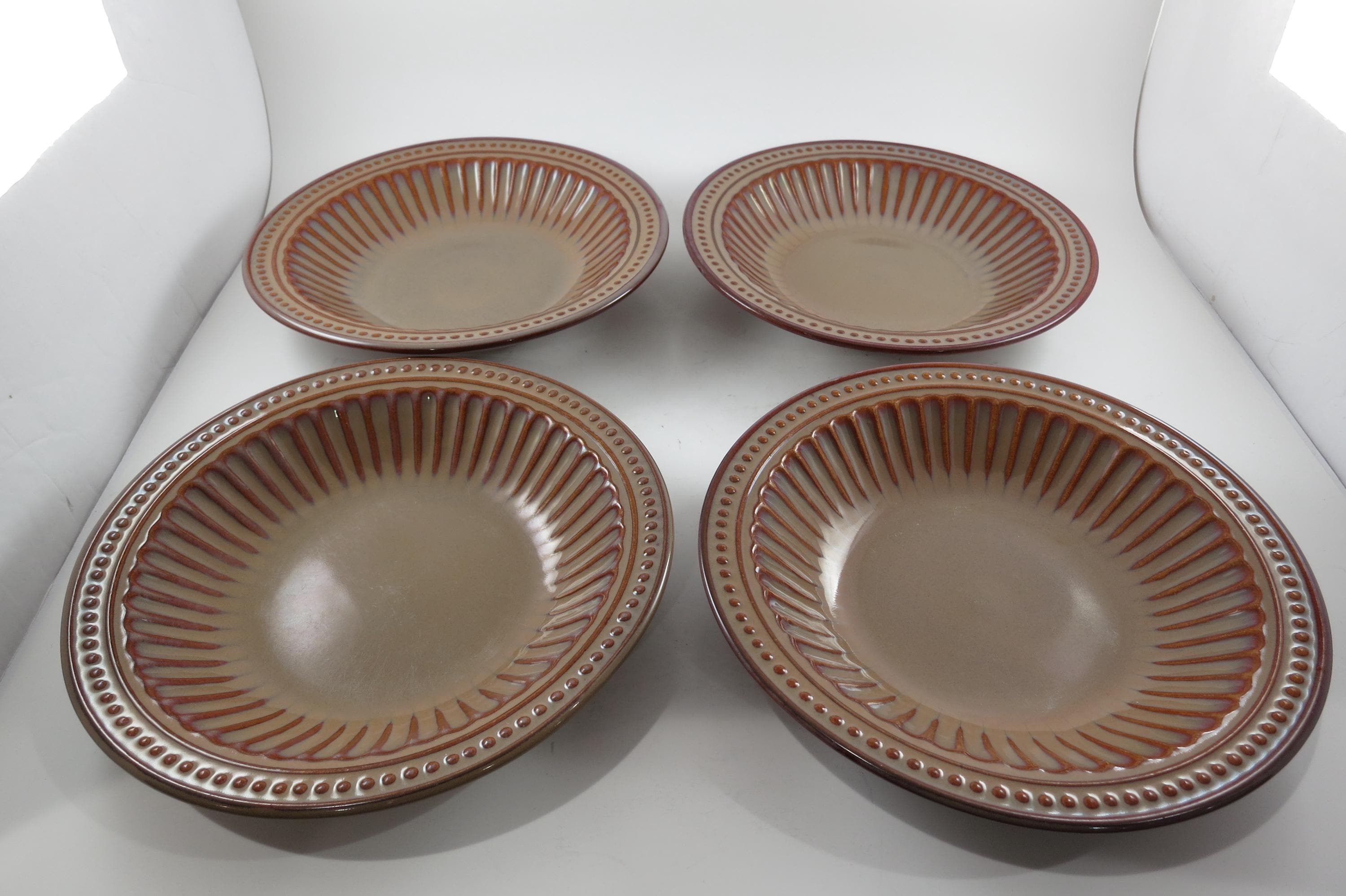 Set of Four Vintage Bombay Brown & Red Beaded 8 3/4 Inch Soup Bowls.