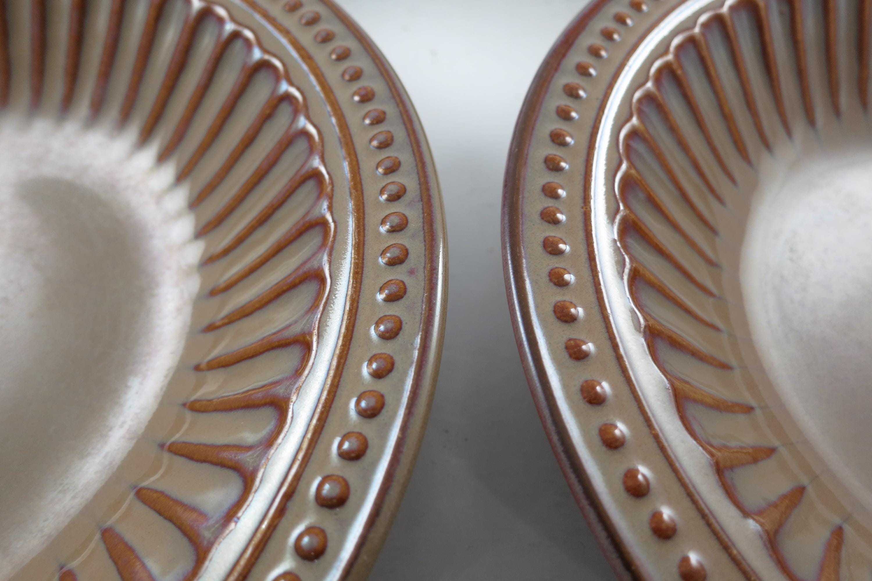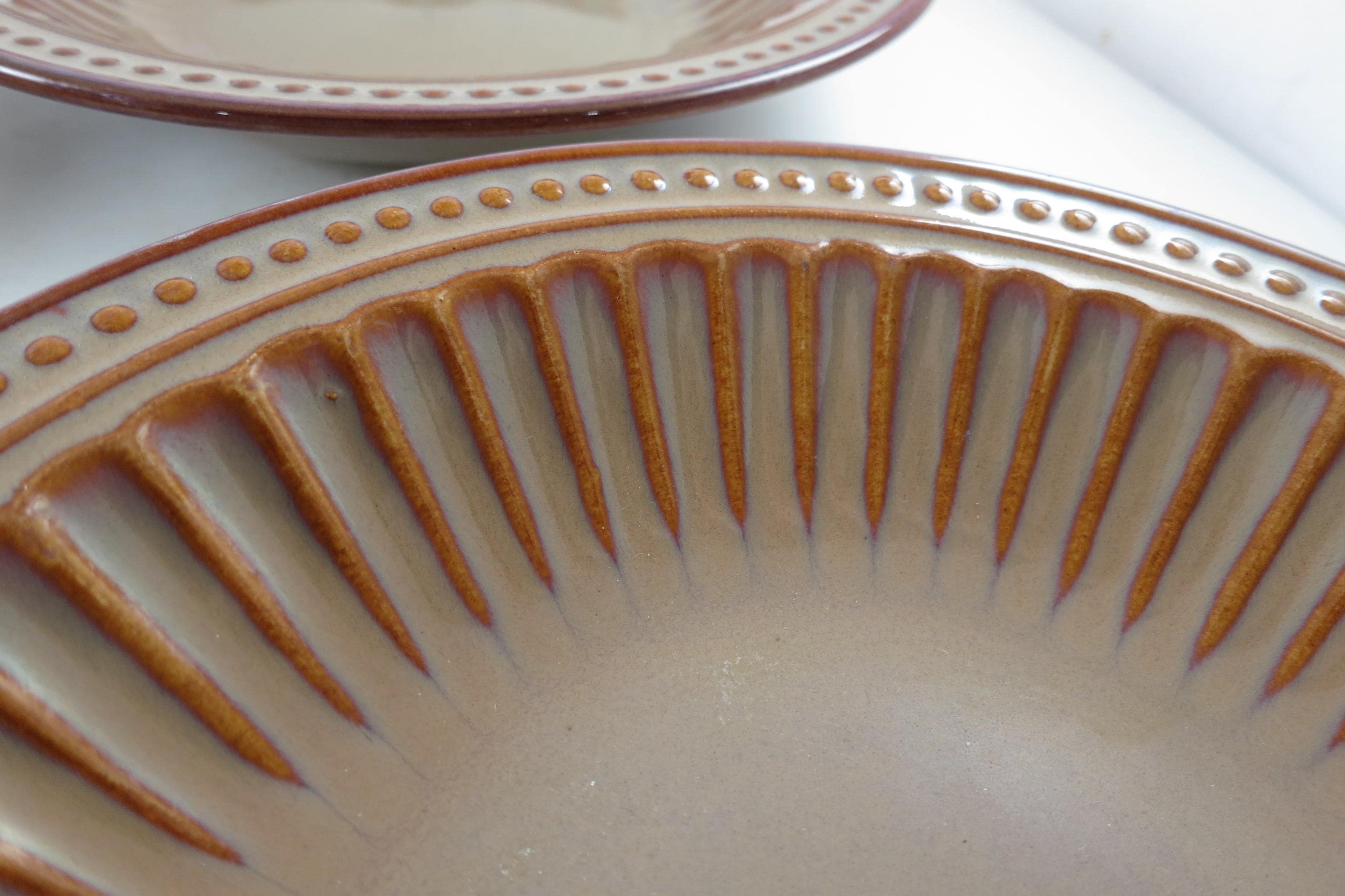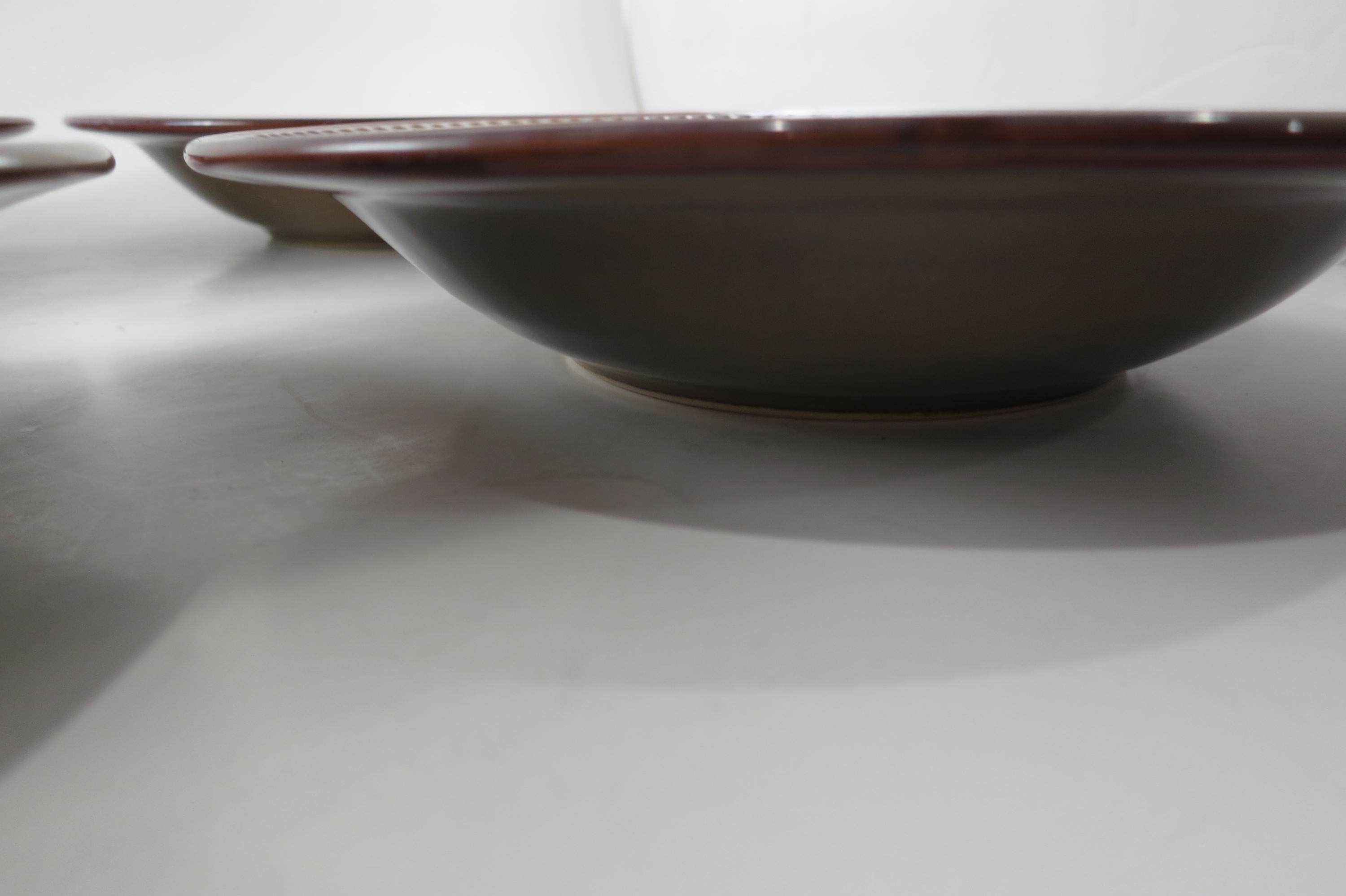 Set of Four Vintage Bombay Brown & Red Beaded 8 3/4 Inch Soup Bowls.