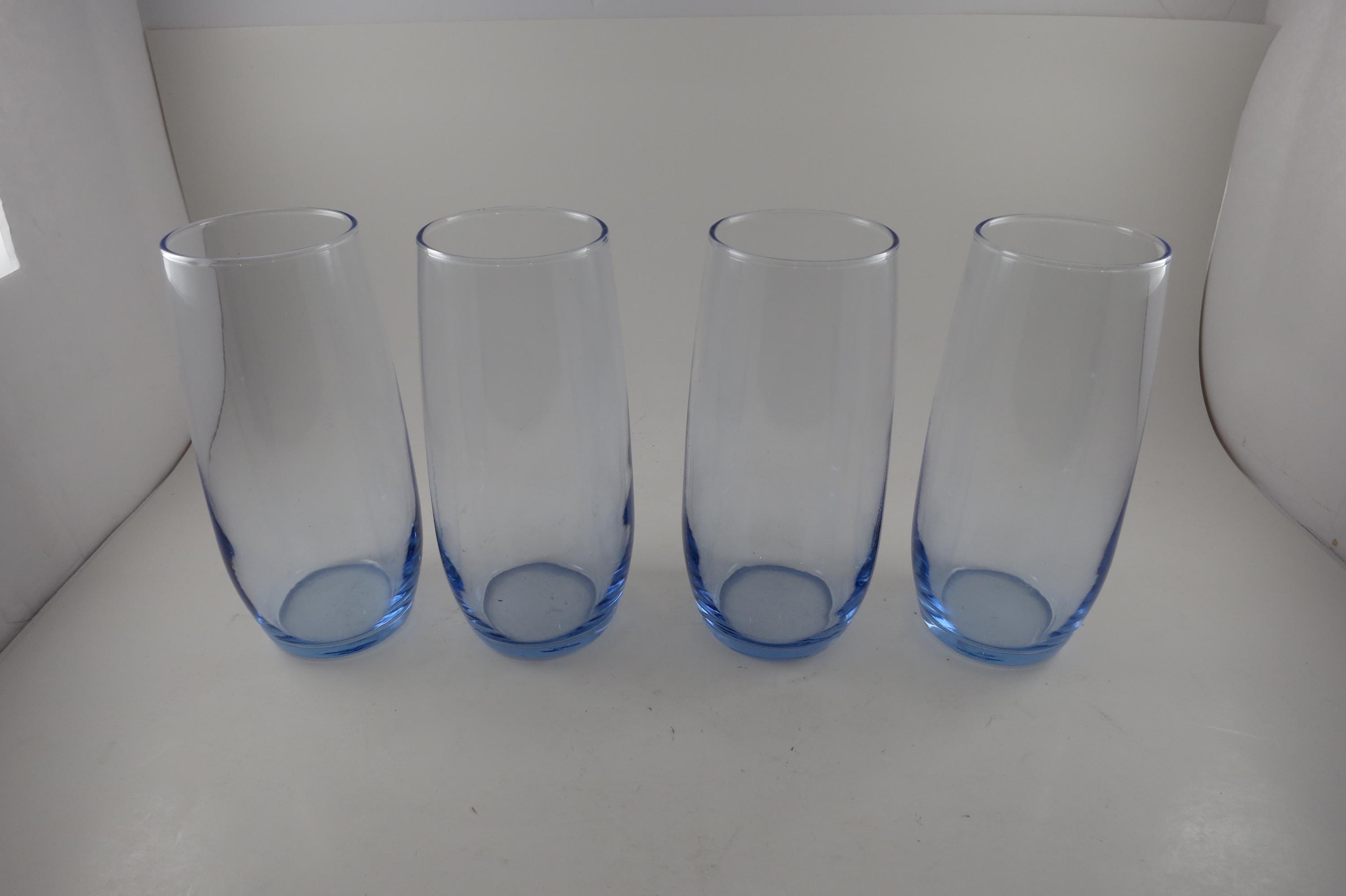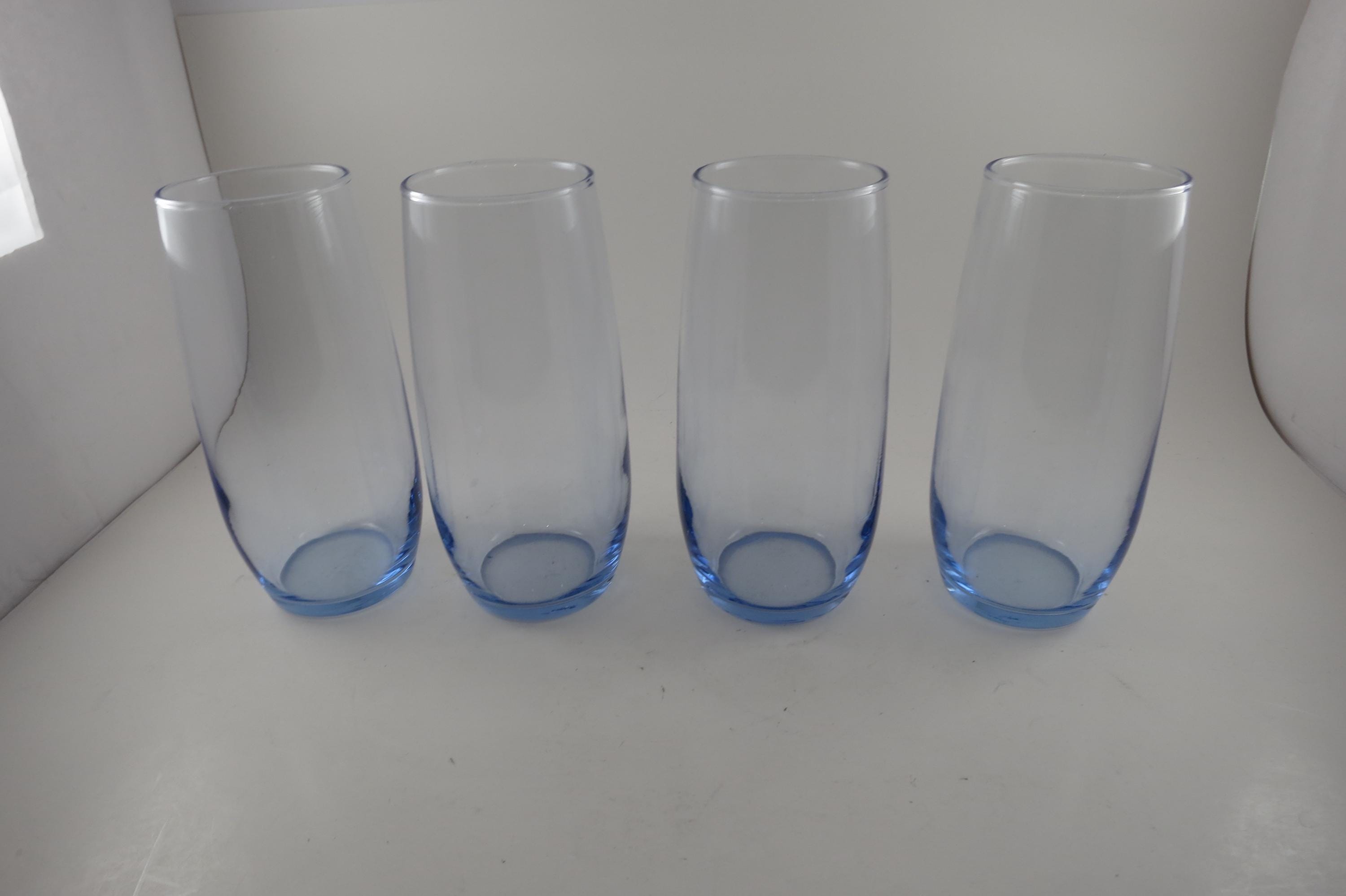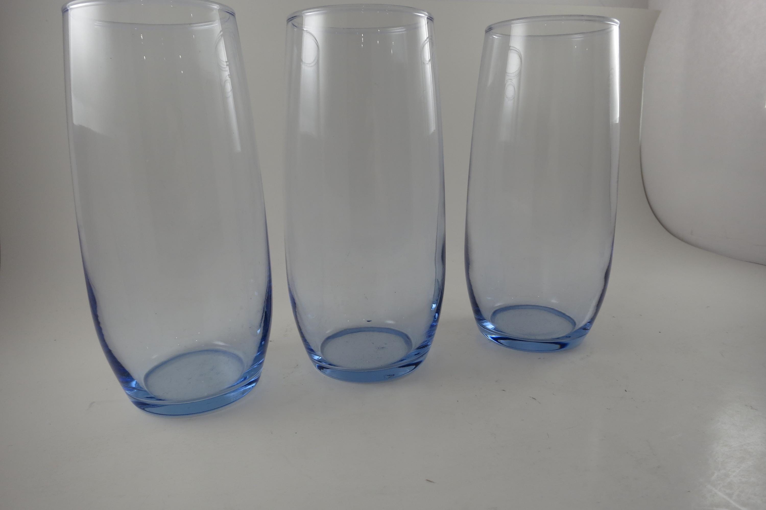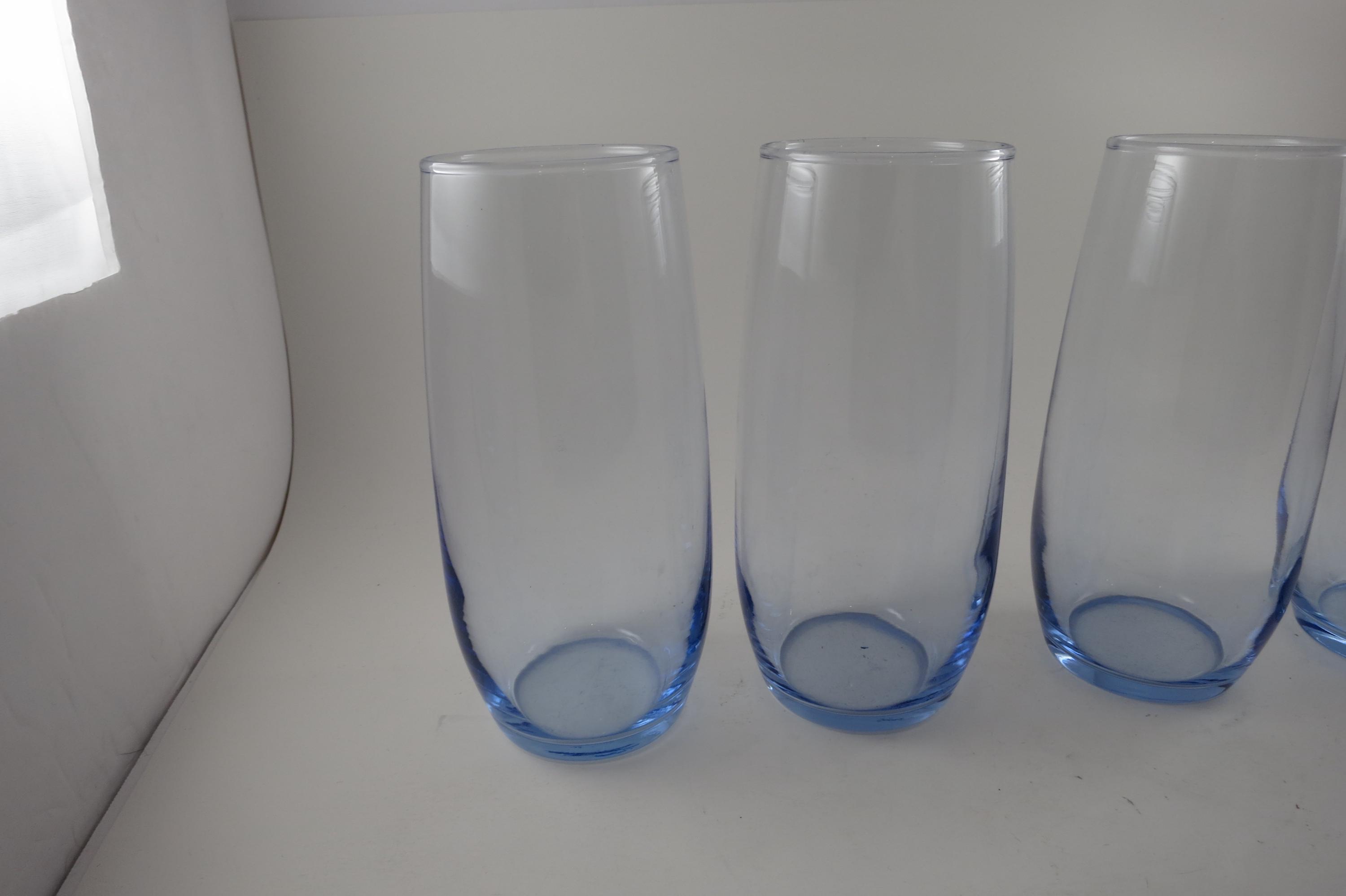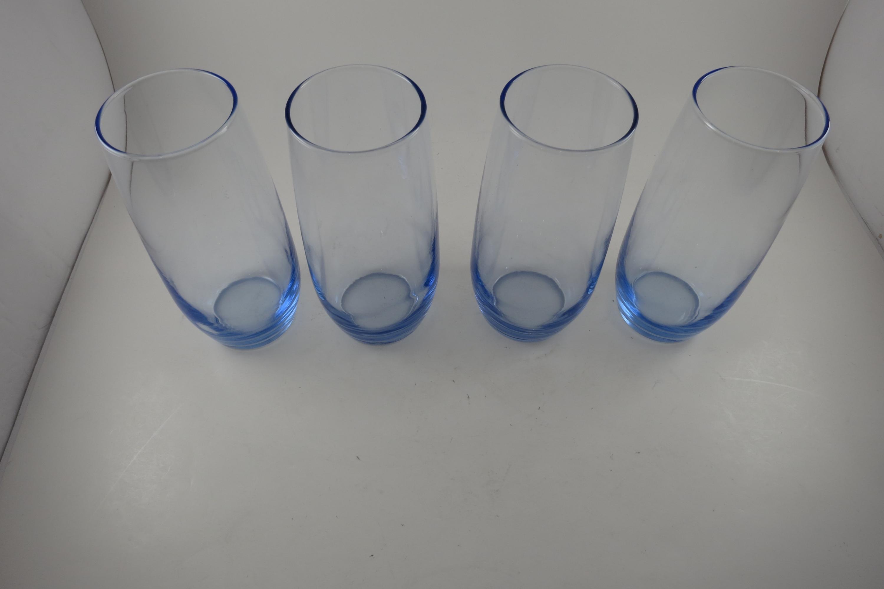 Vintage Set of Blue Tint 6 1/2 Inch Water Glasses.