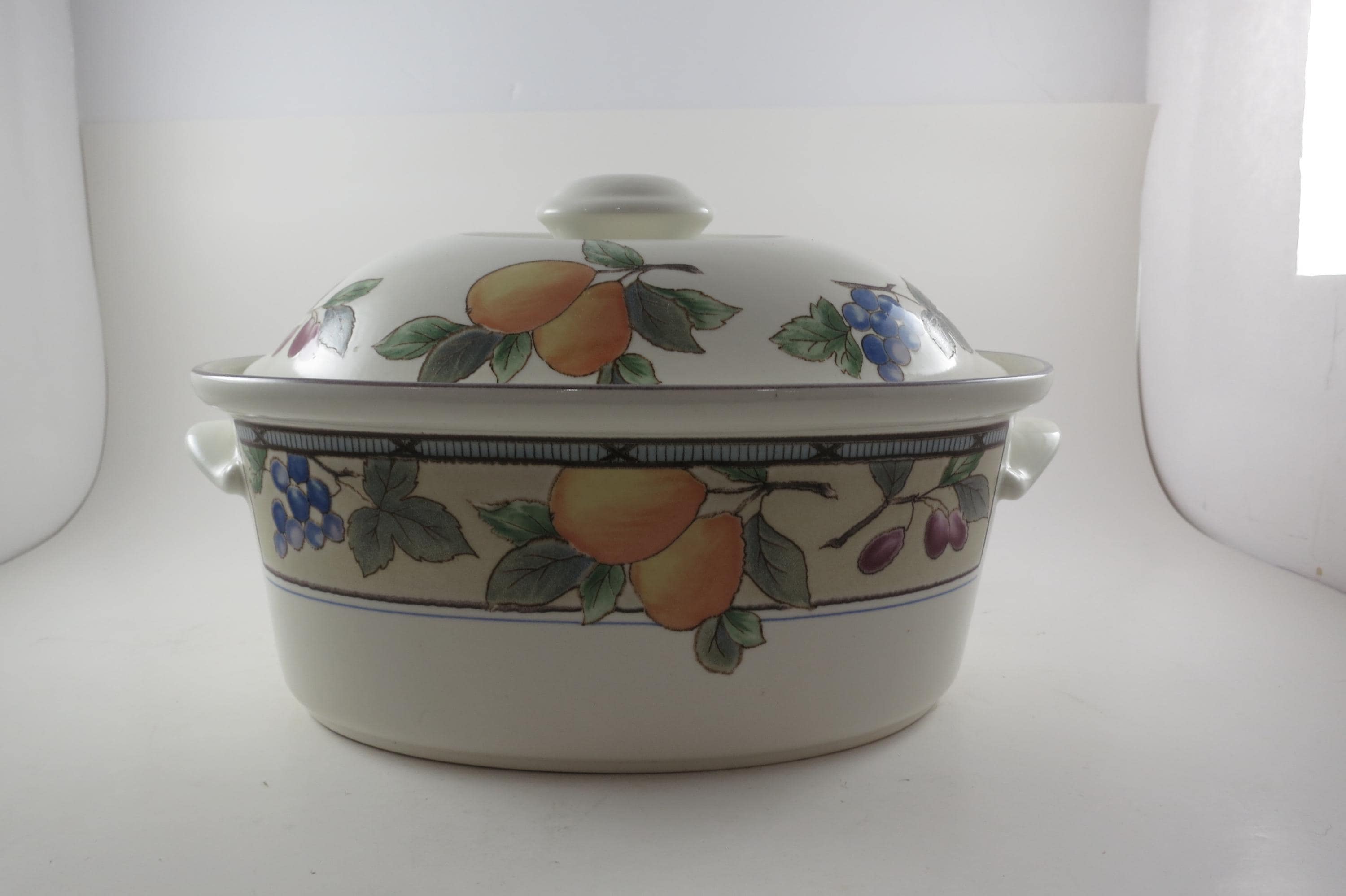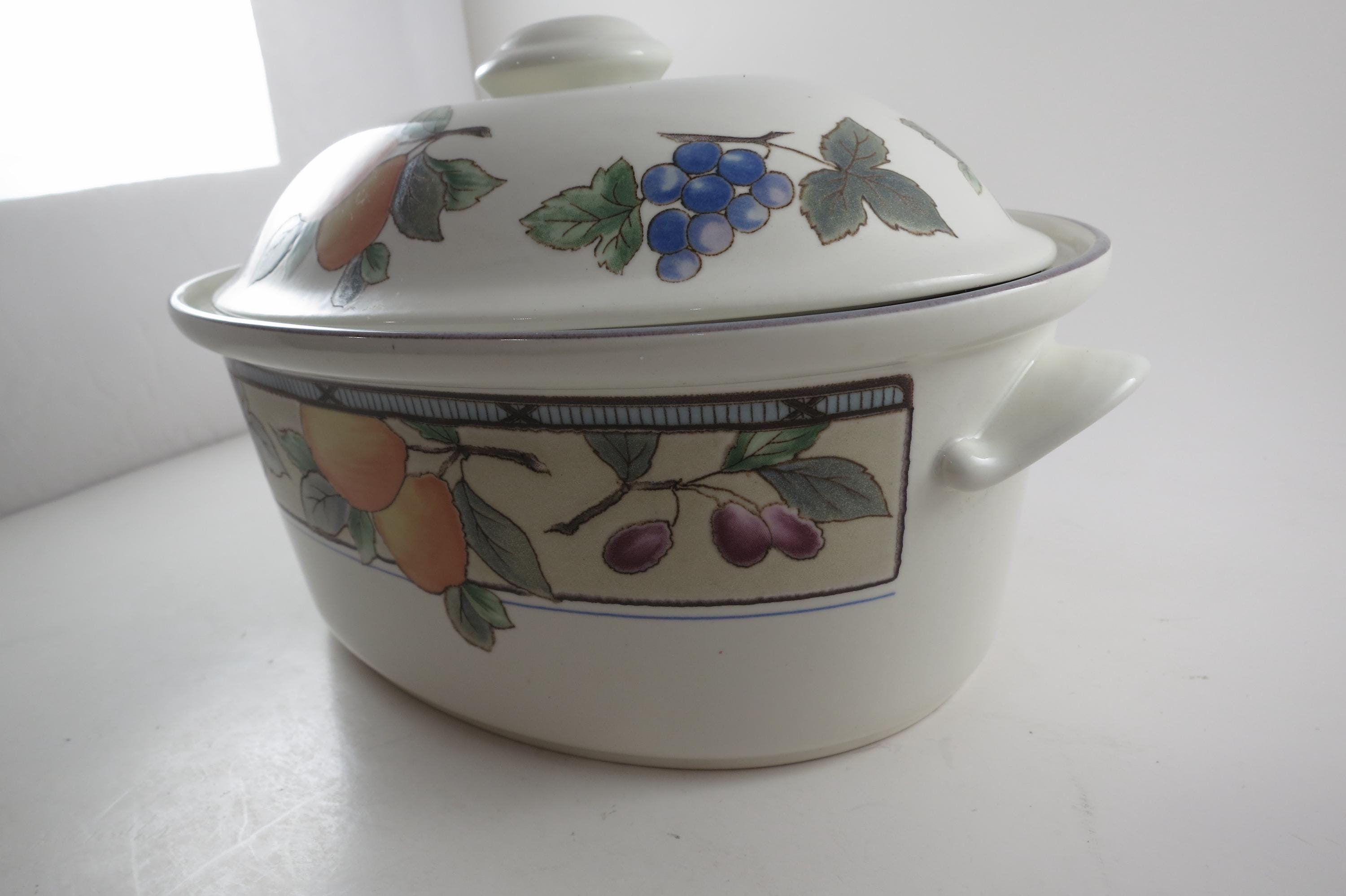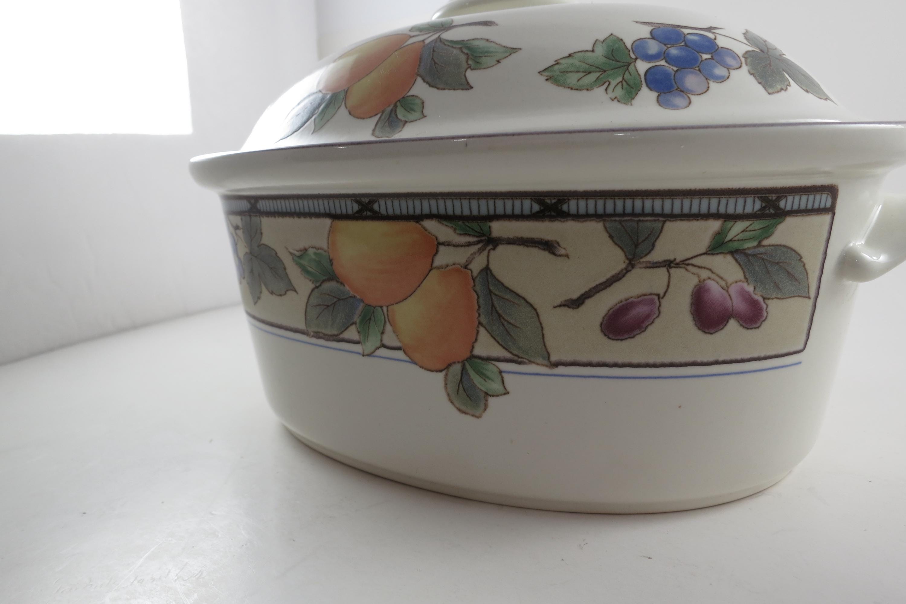 Vintage Mikasa Intaglio CAC29 Garden Harvest Pattern Oval Serving Dish with Lid.