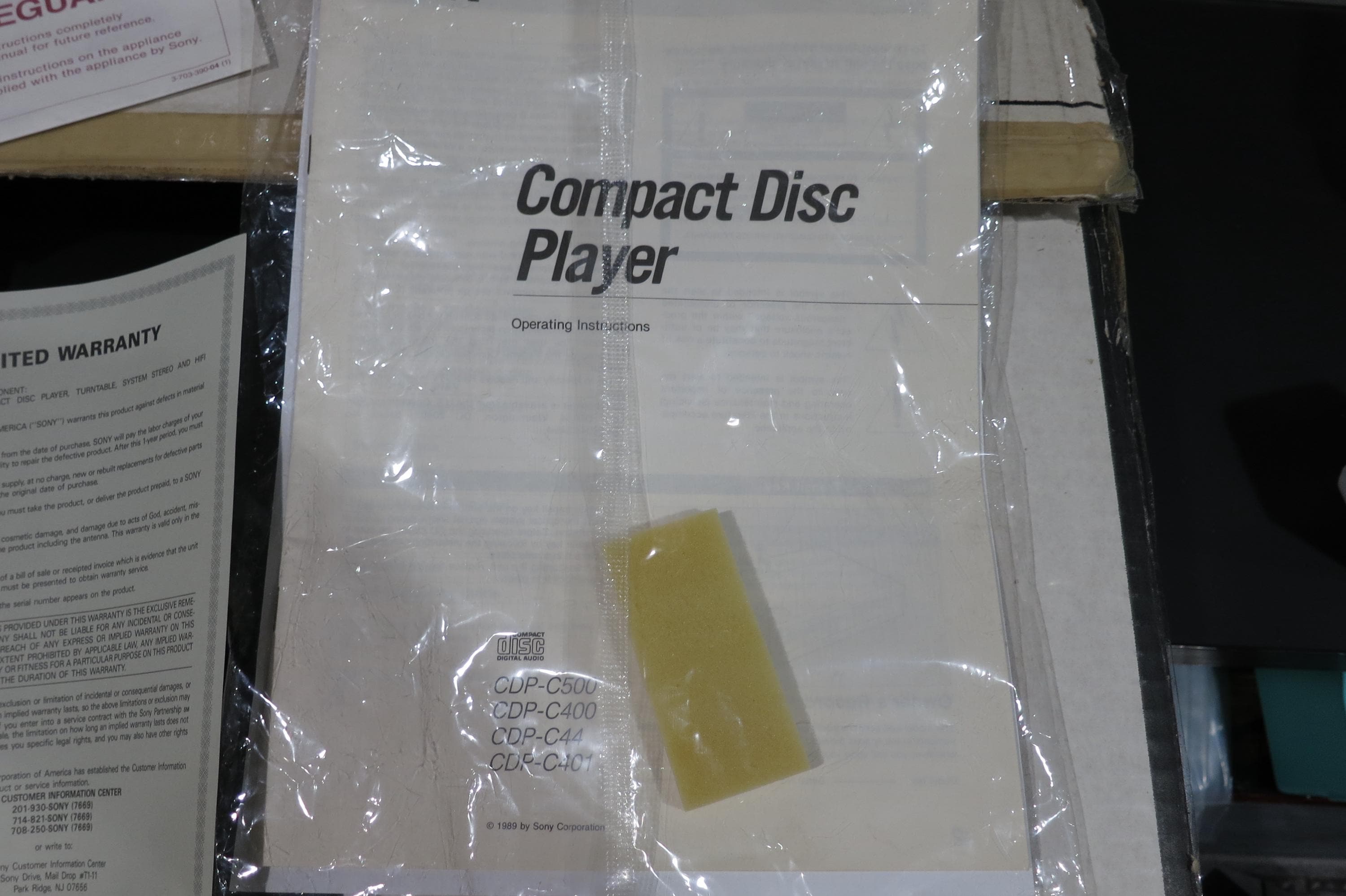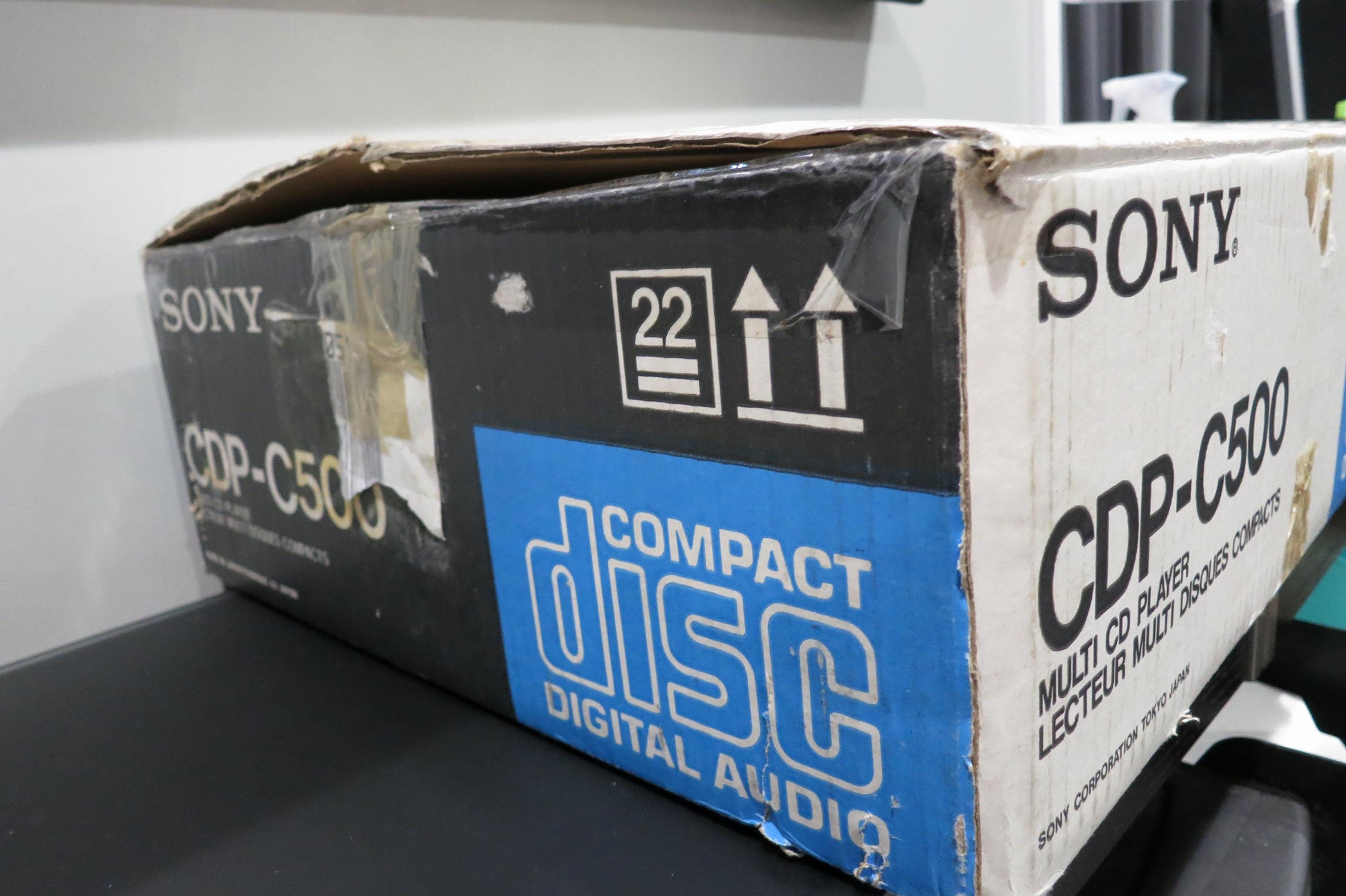 Vintage 1989 Sony 5-Disc CD Changer with Remote, Manual, Original Box.