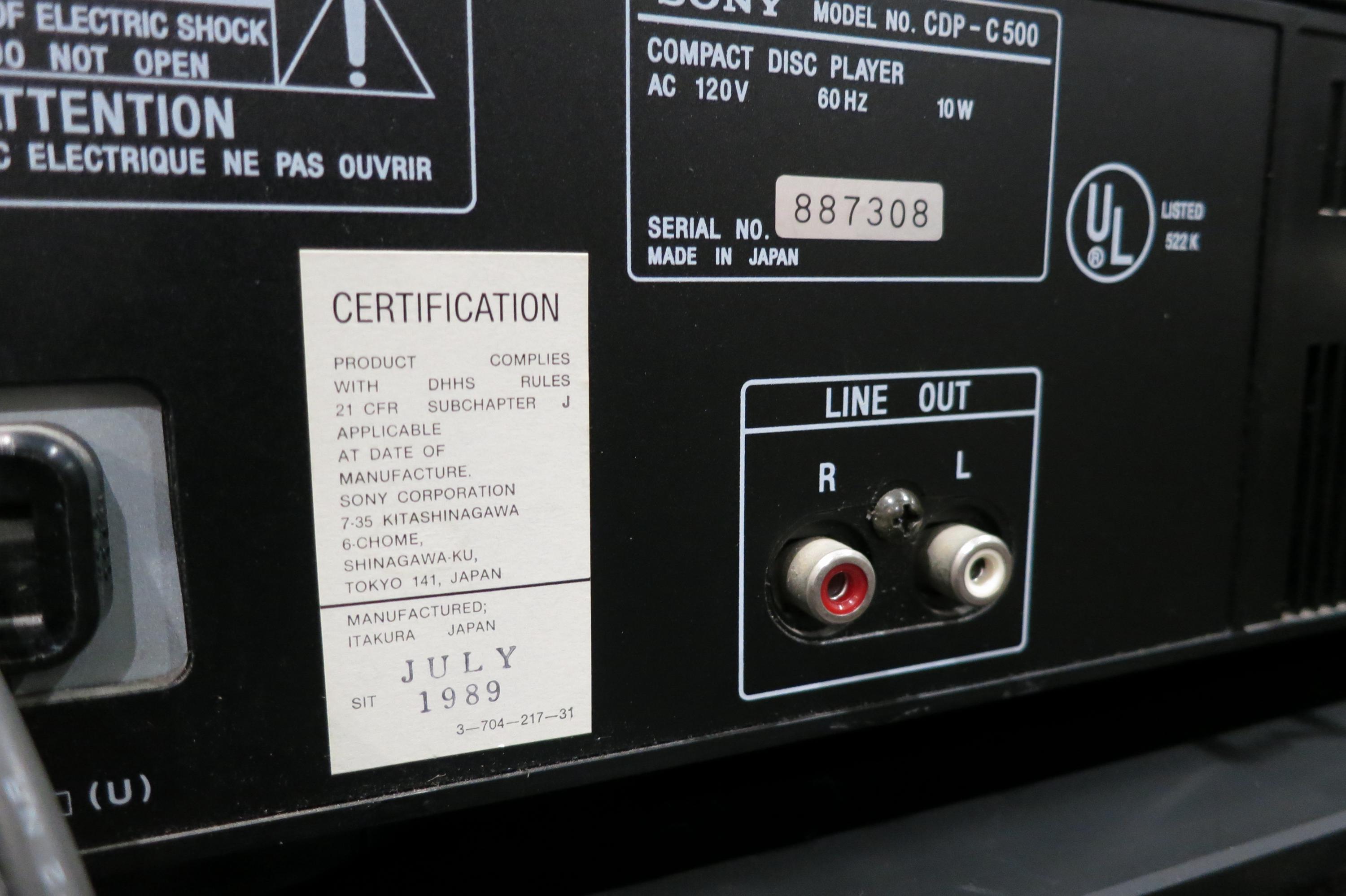 Vintage 1989 Sony 5-Disc CD Changer with Remote, Manual, Original Box
