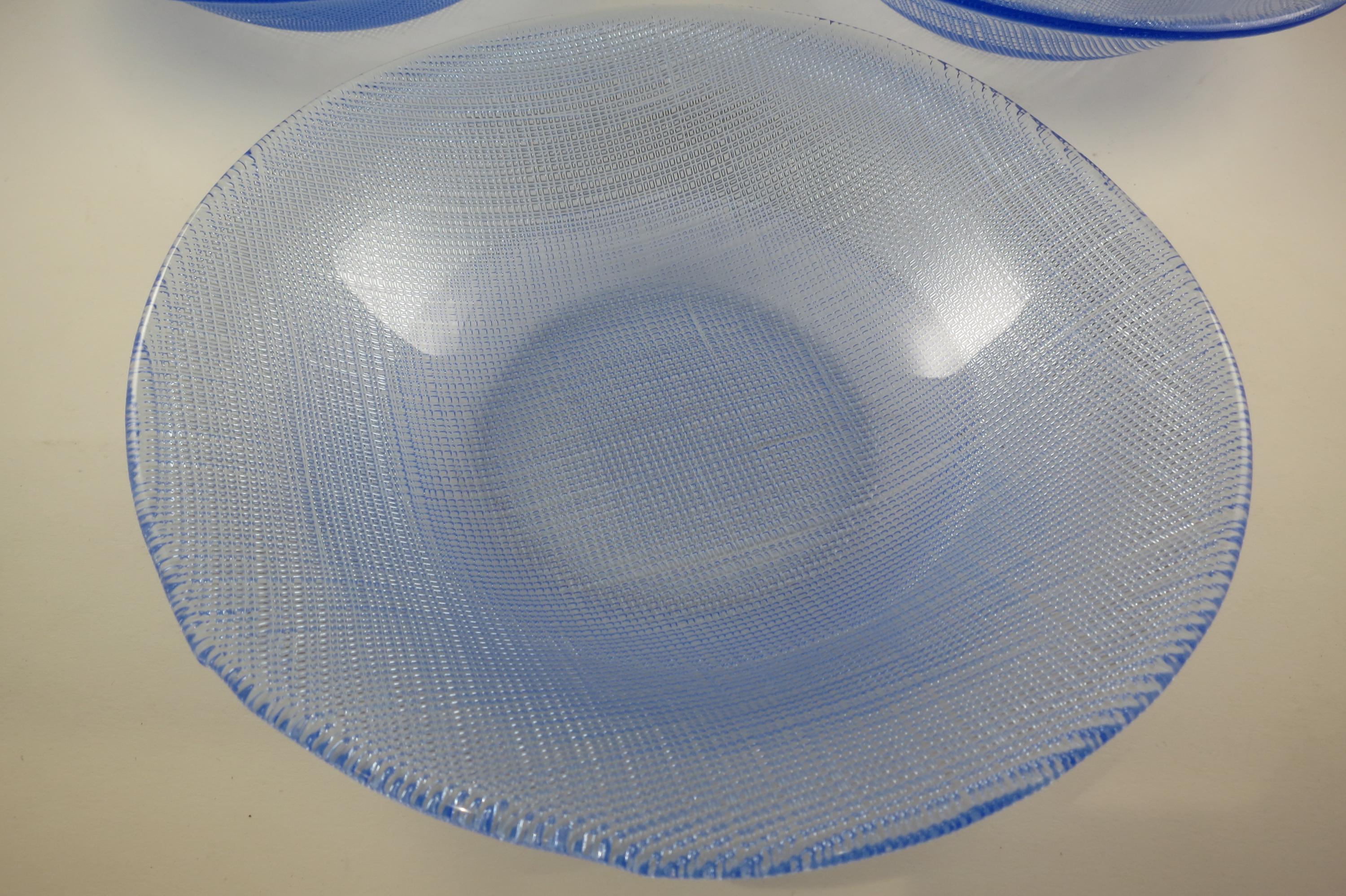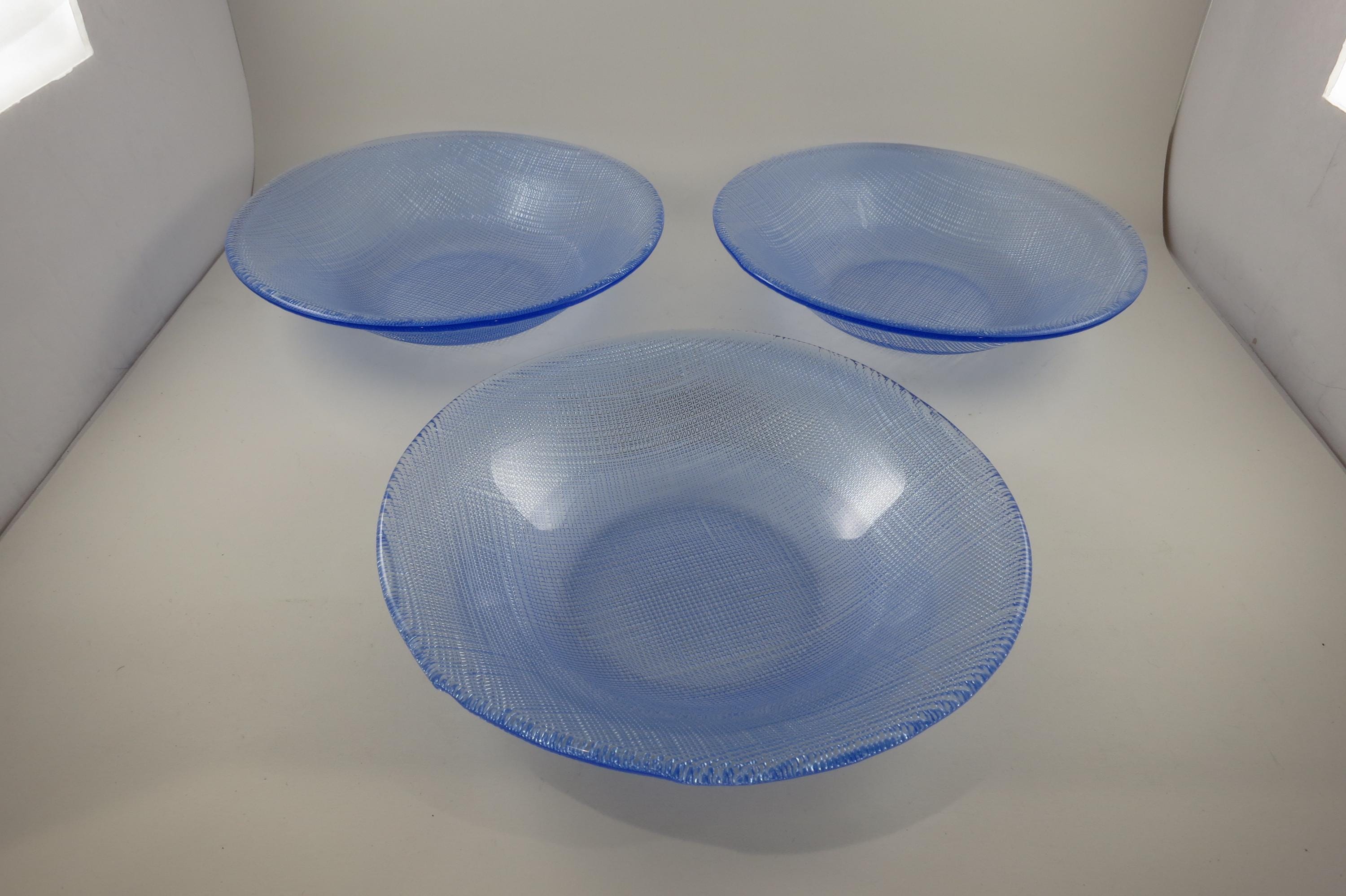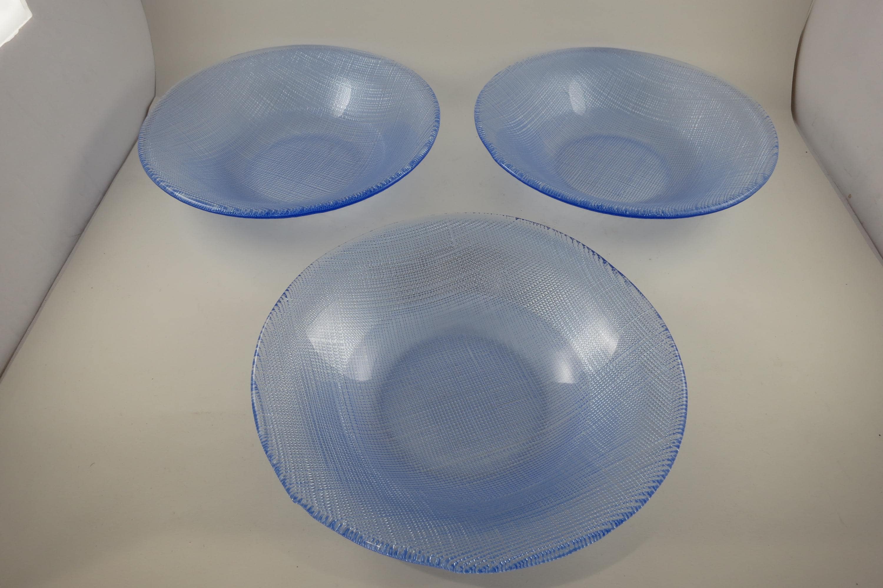 Set of Three Textured Pebble Glass Light Blue 8 1/2 Inch Soup/Cereal Bowls