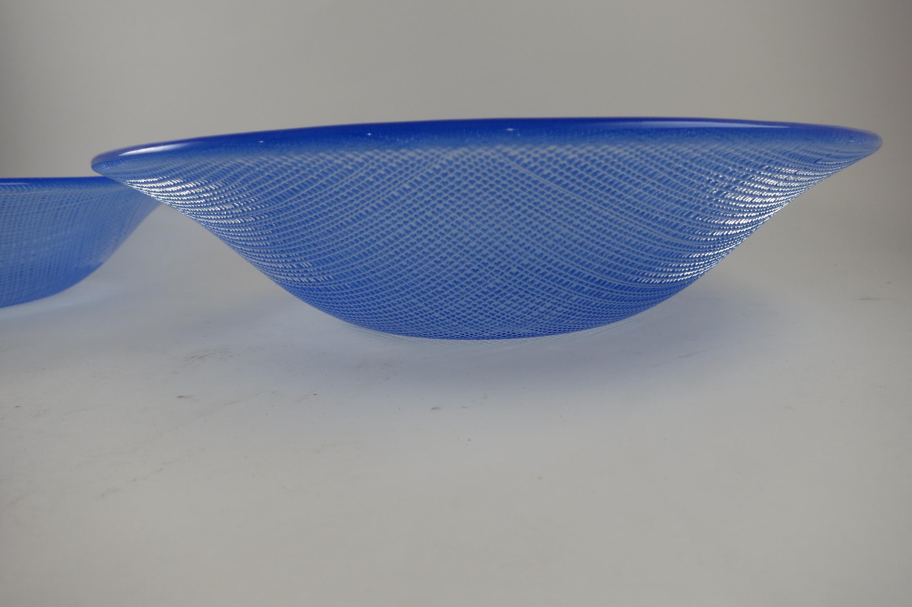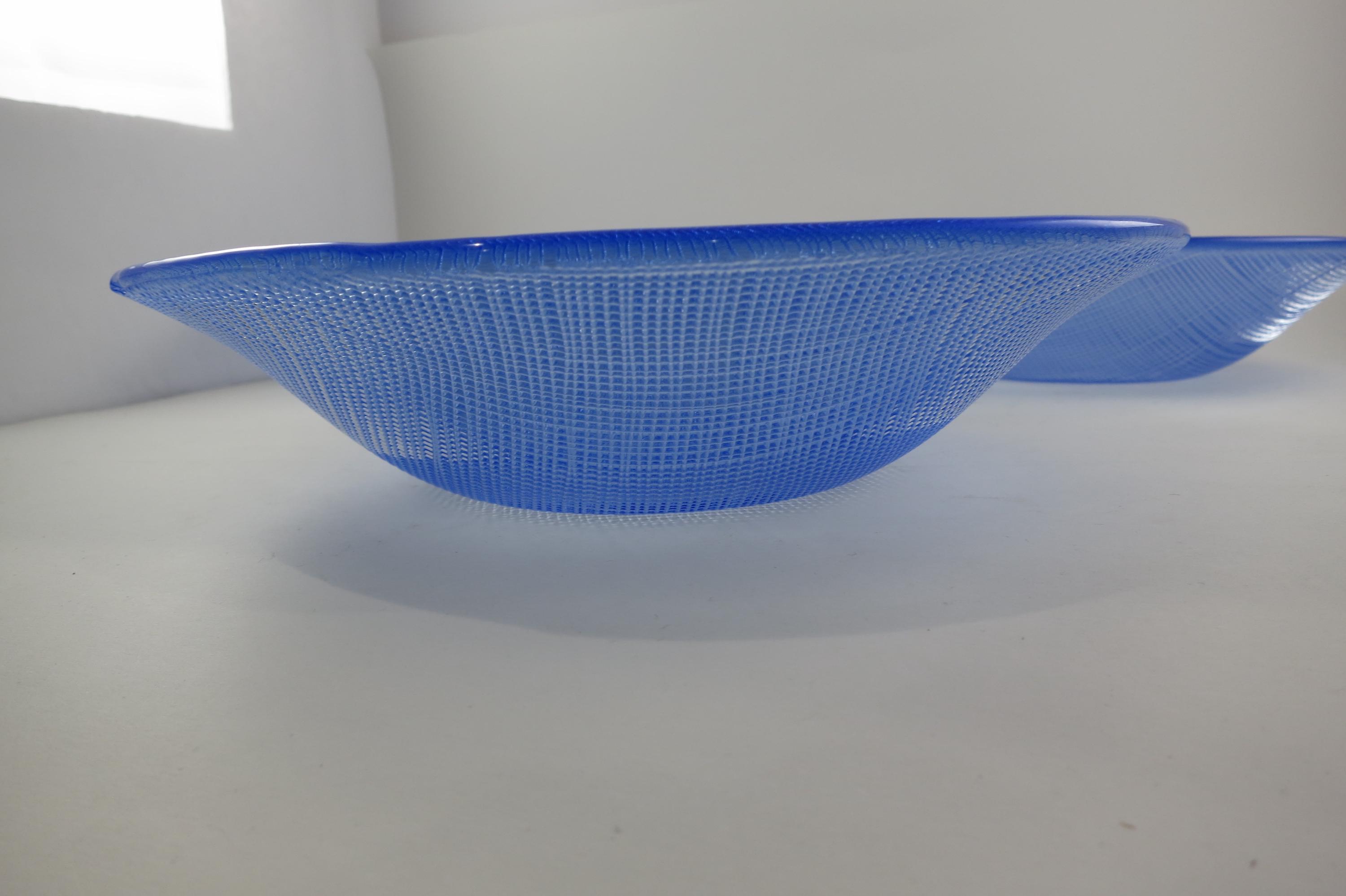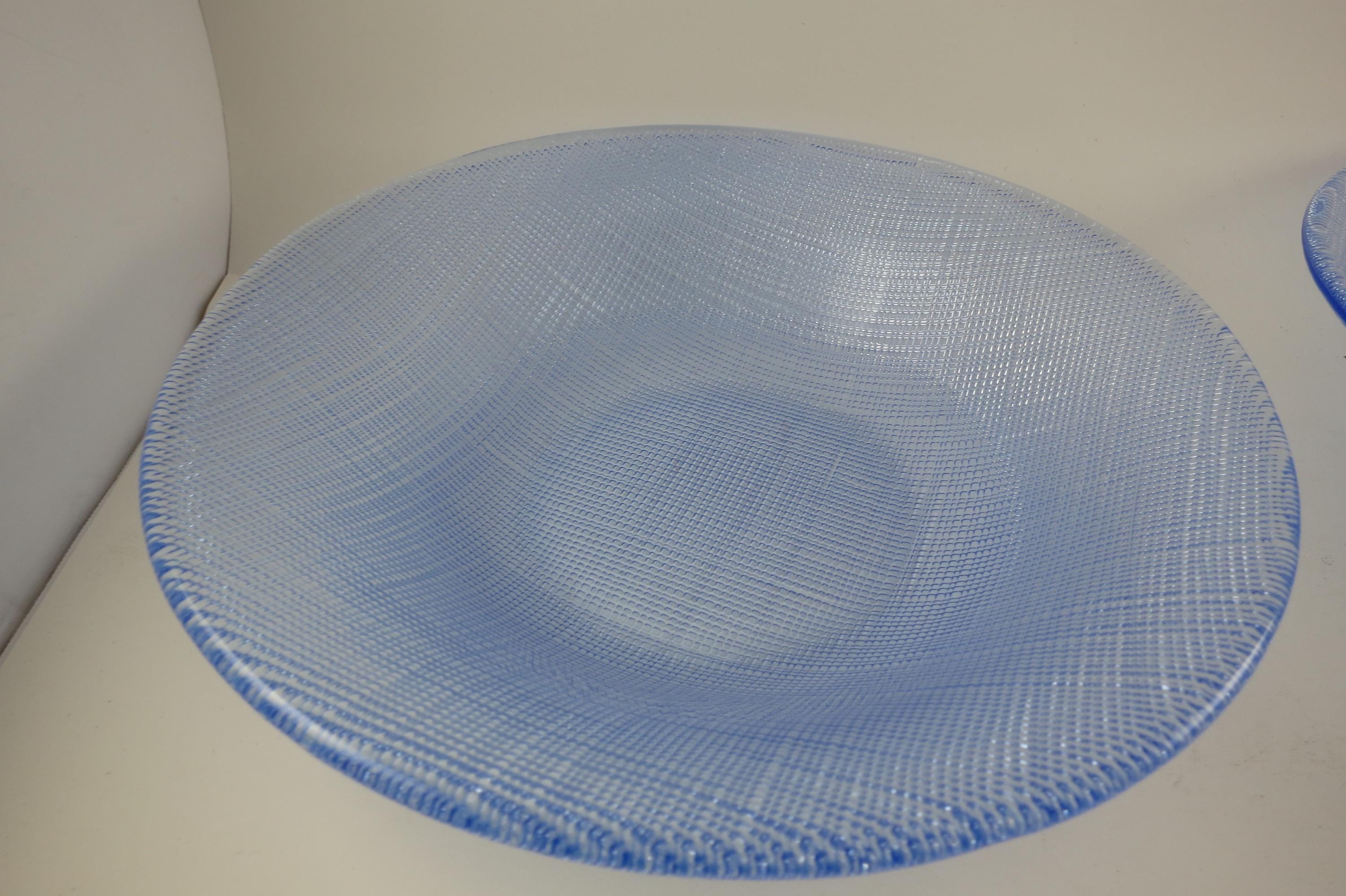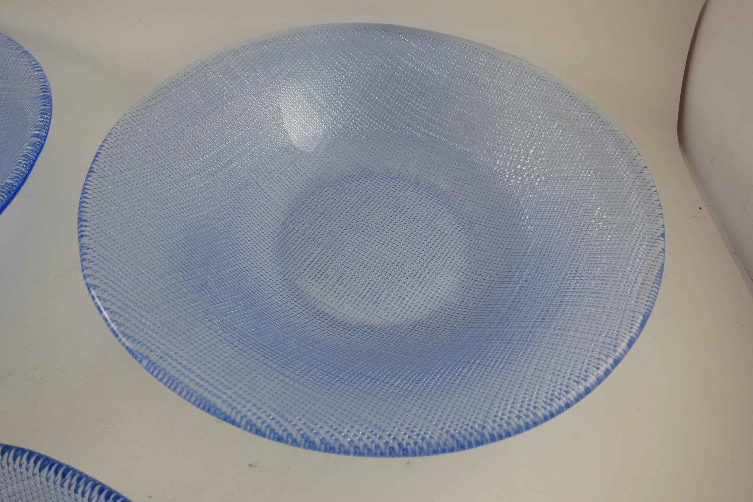 Set of Three Textured Pebble Glass Light Blue 8 1/2 Inch Soup/Cereal Bowls