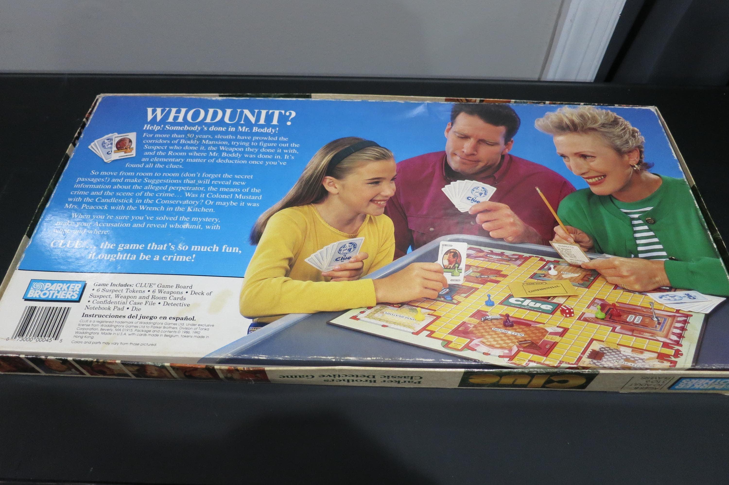 1992 Paker Brothers Board Game No 45 Clue Classic Detective Game 100% Complete Excellent Condition. Great Game! Box has taped corners and edge wear.