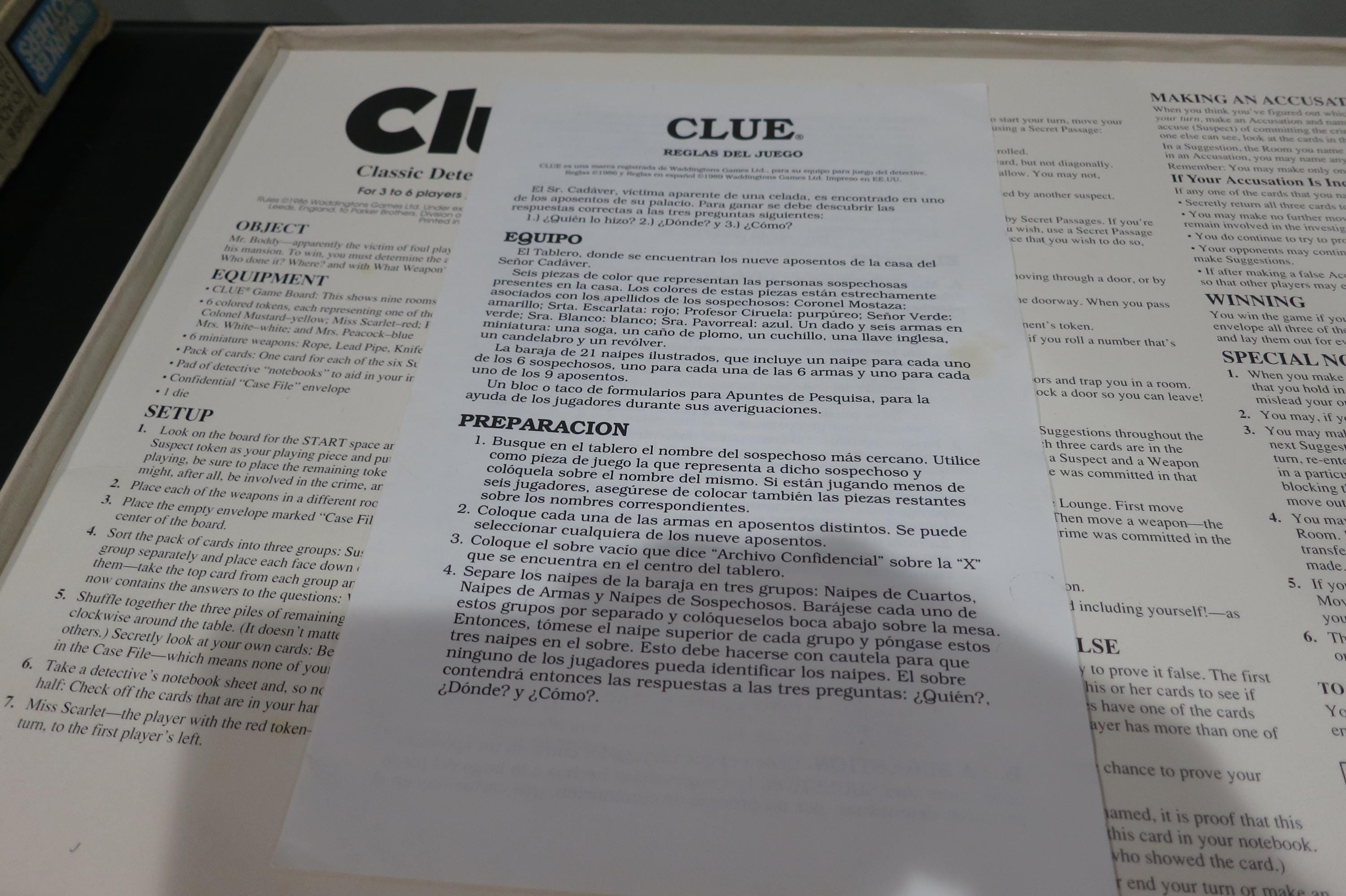 Vintage 1992 Clue Board Game: Parker Brothers Classic Detective Game