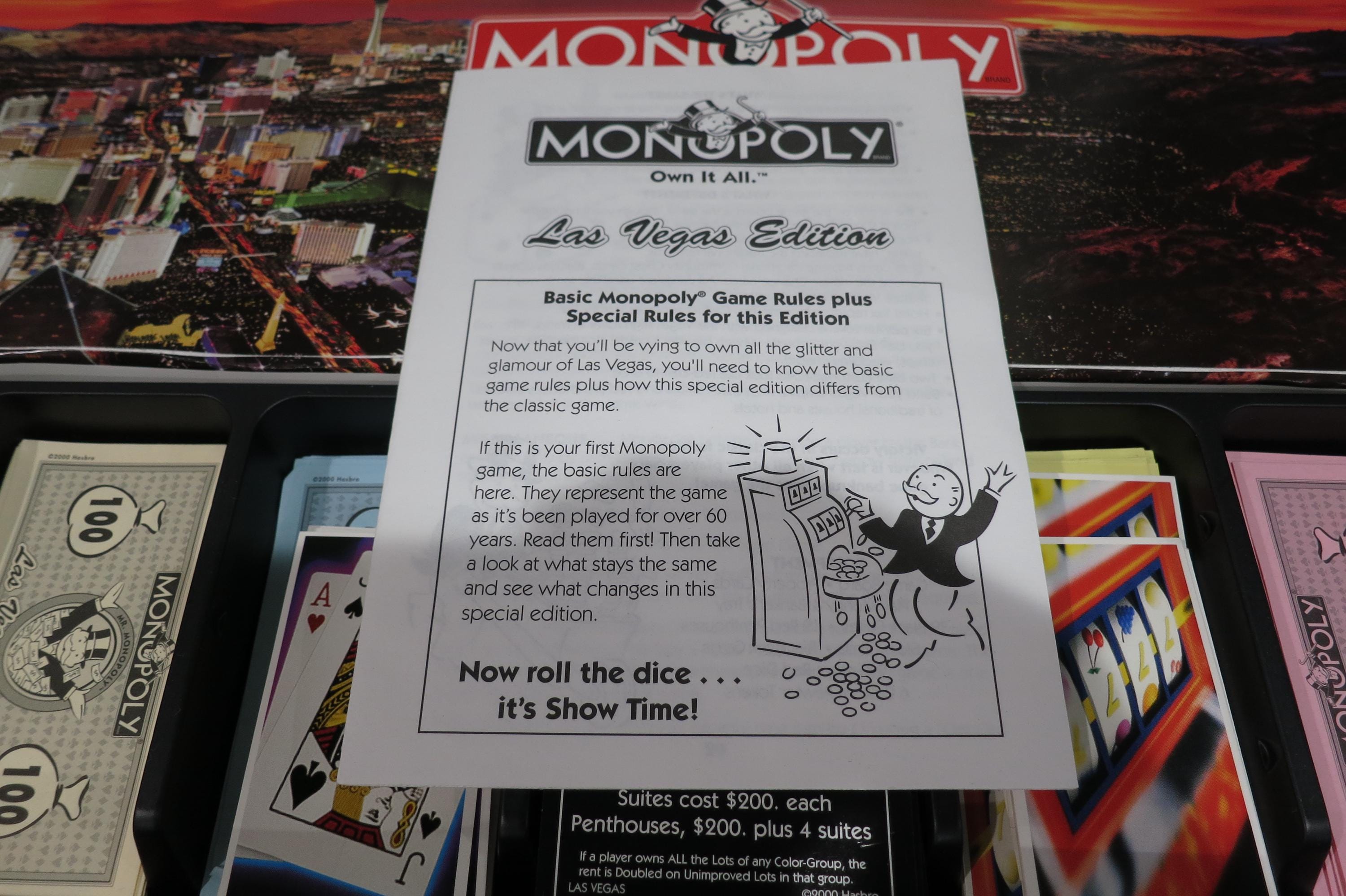 Vintage 2000 Monopoly Las Vegas Edition Game 100% Complete Excellent Condition. Great game, of course played just as monopoly. Has regular playing tokens.
