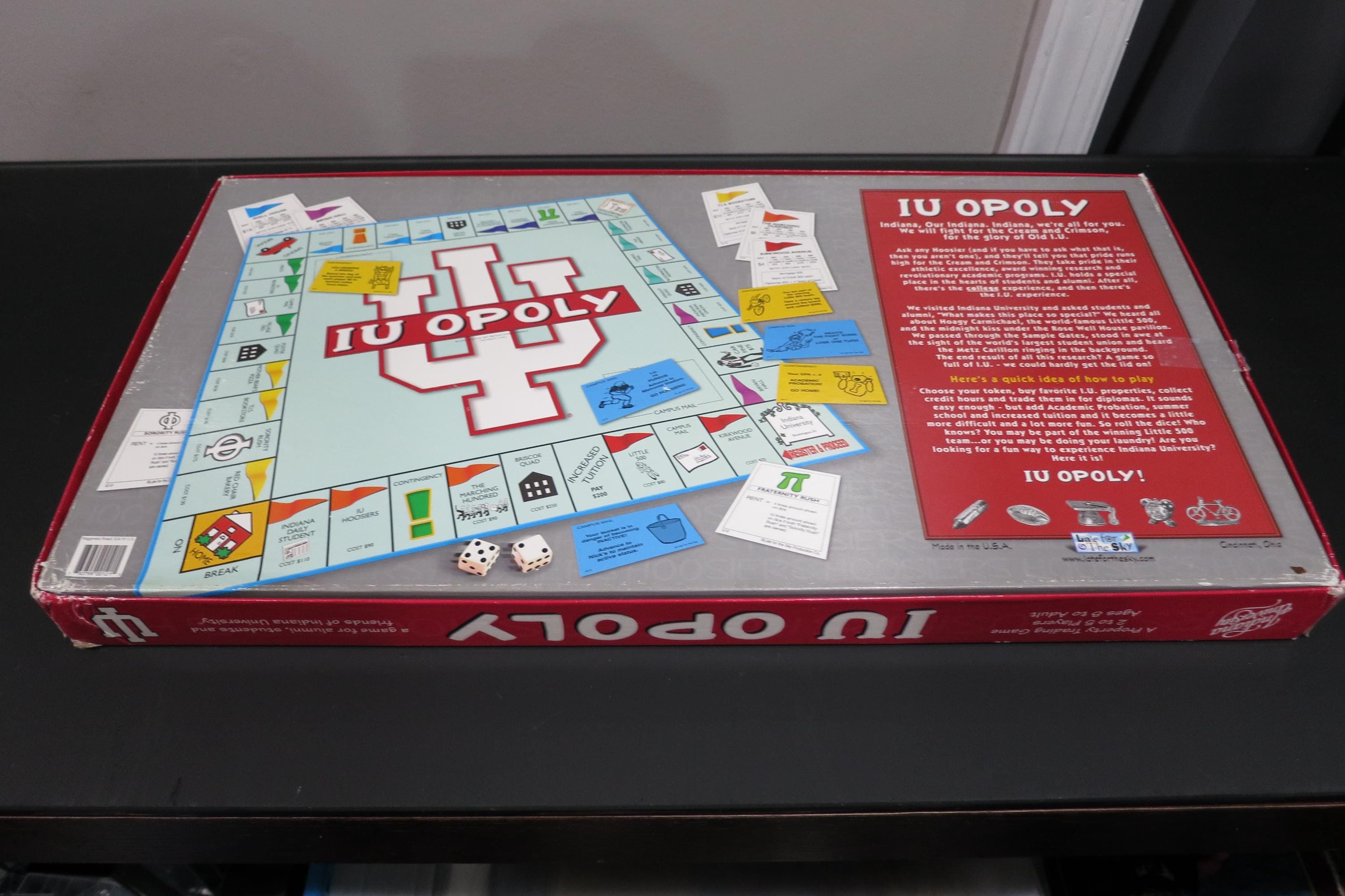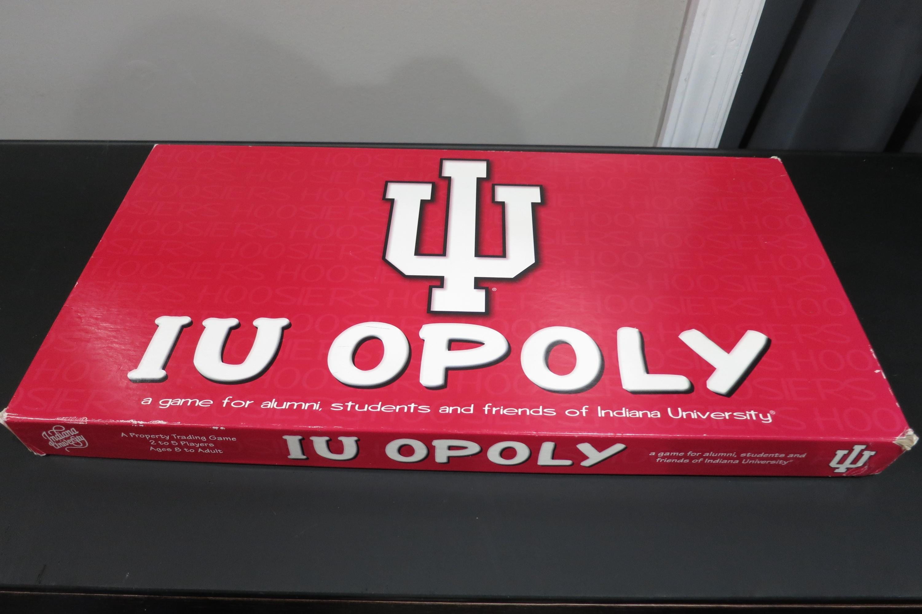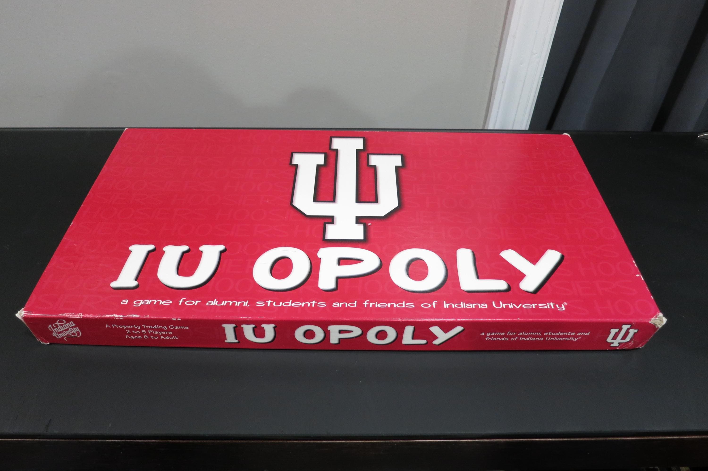 Vintage 1998 IU-opoly Board Game - University of Indiana Monopoly. 100% Complete Excellent Condition. Great game, just like Monopoly only themed to the university of Indiana Hoosiers. (Congrats on your brand new Natty!!). Box shows light corner wear. Game looks like it was never played. Perfect for Indiana Fans, Students or Alumni.