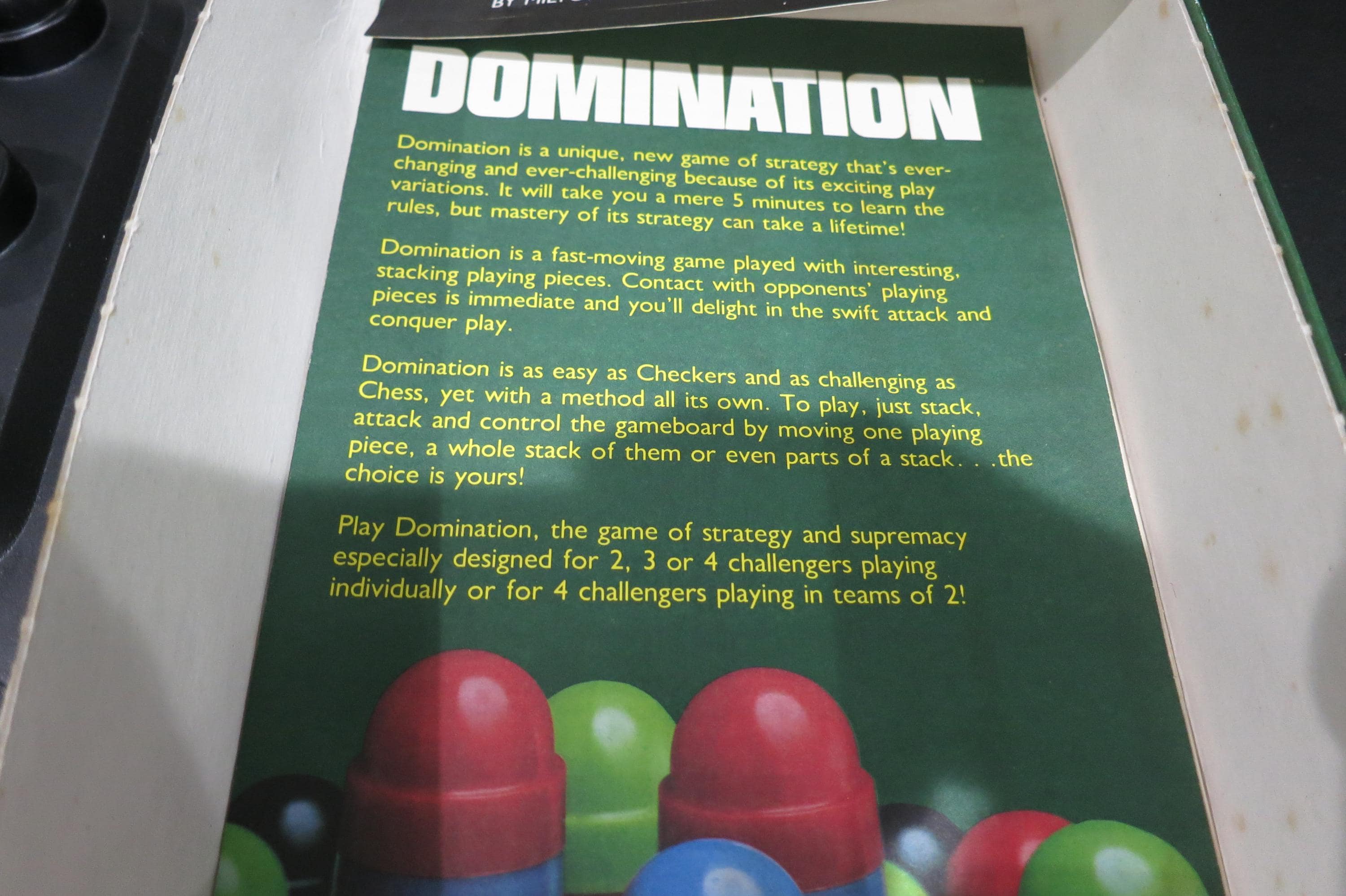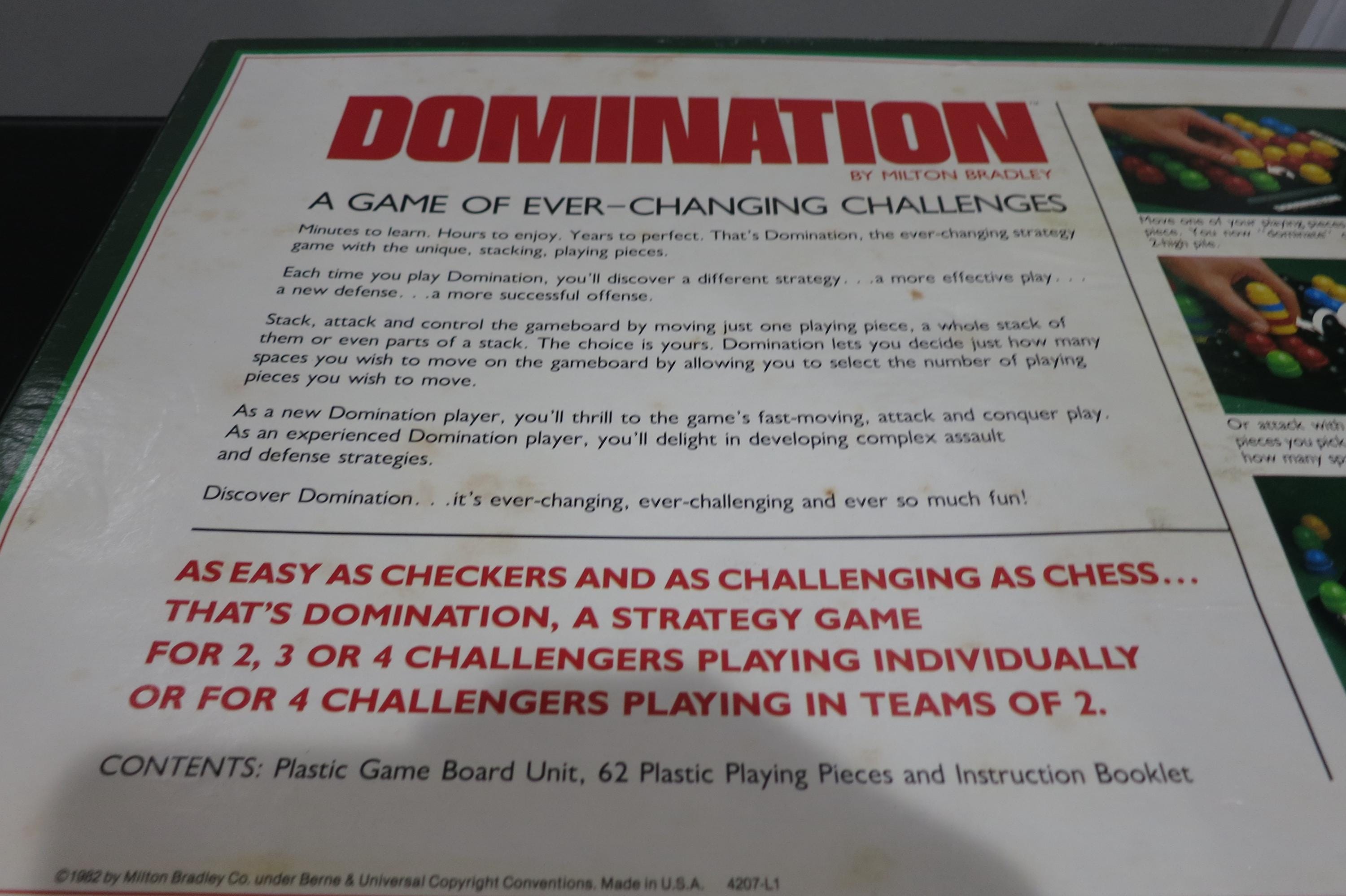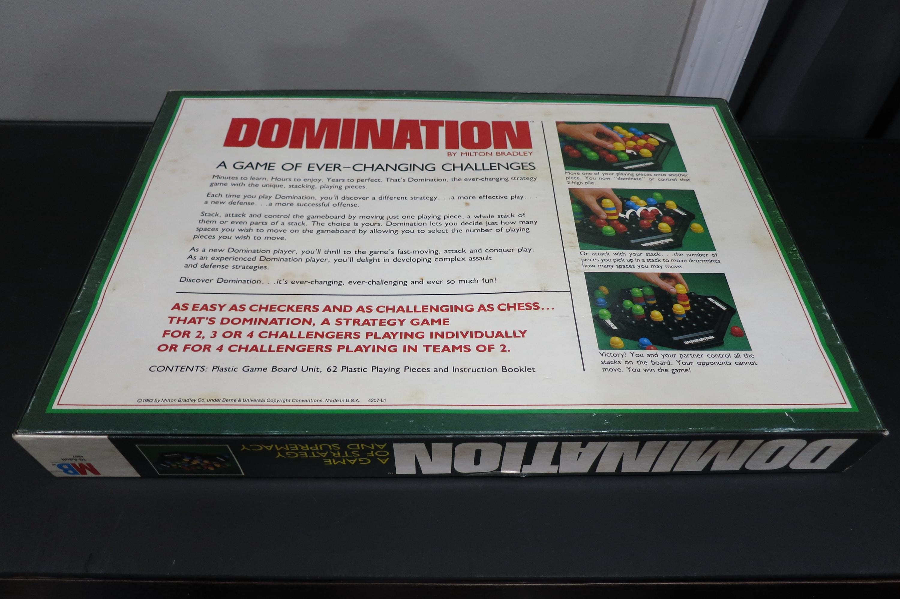 Vintage 1982 Milton Bradley Board Game Domination Game of Strategy and Supremacy 100% Complete Sealed Contents. Box is not sealed, but the game pieces are. Has never been played!