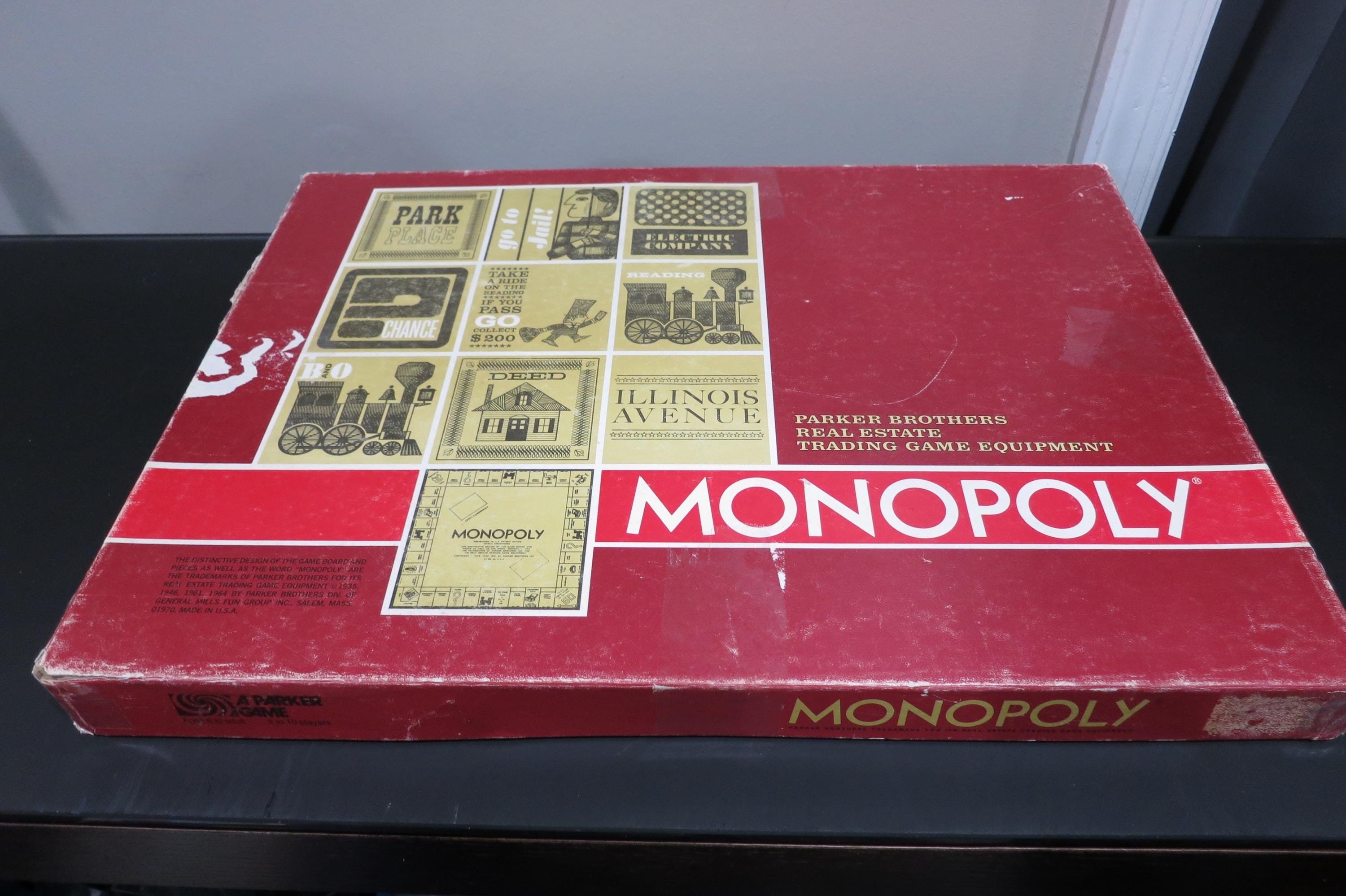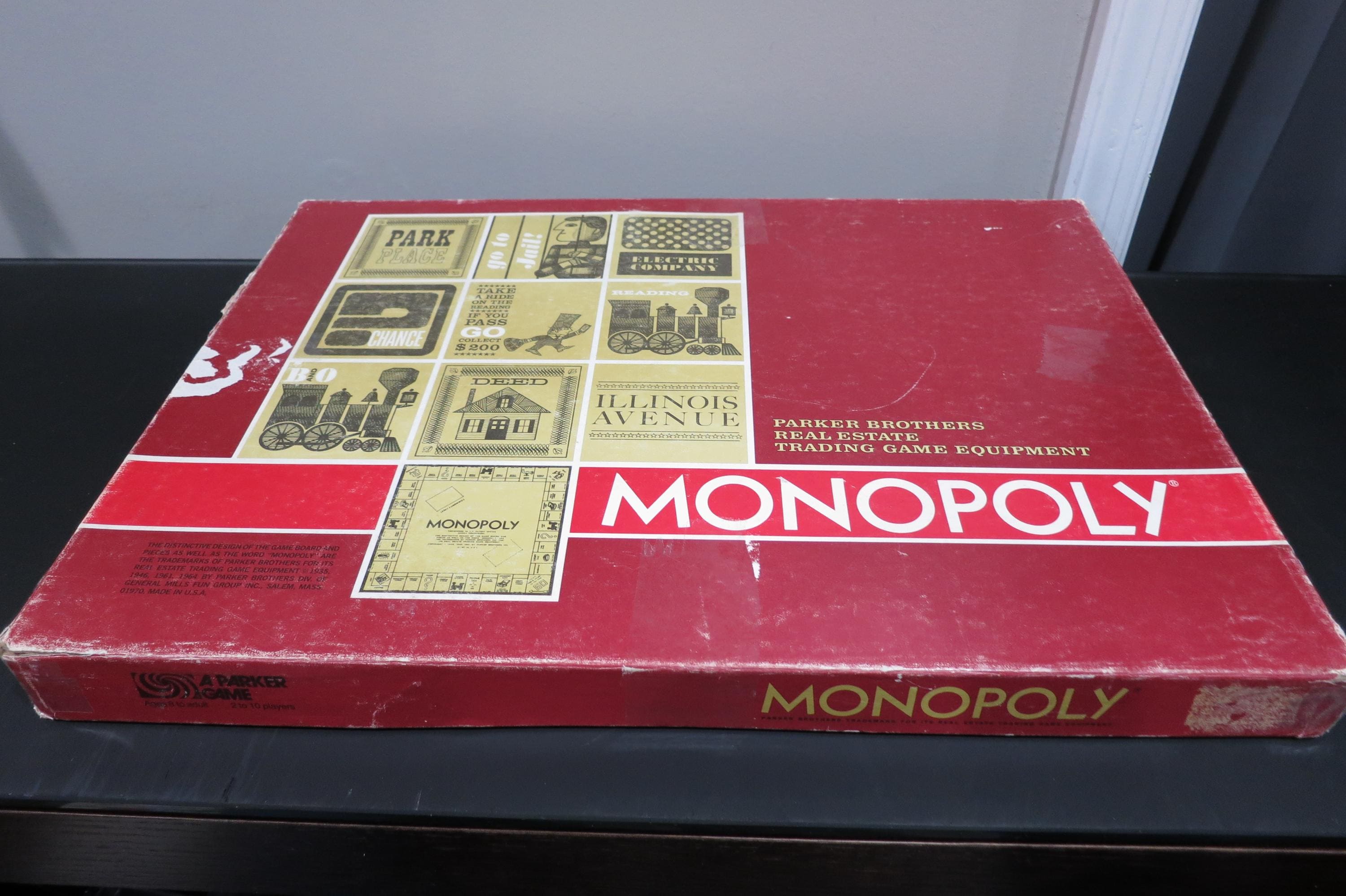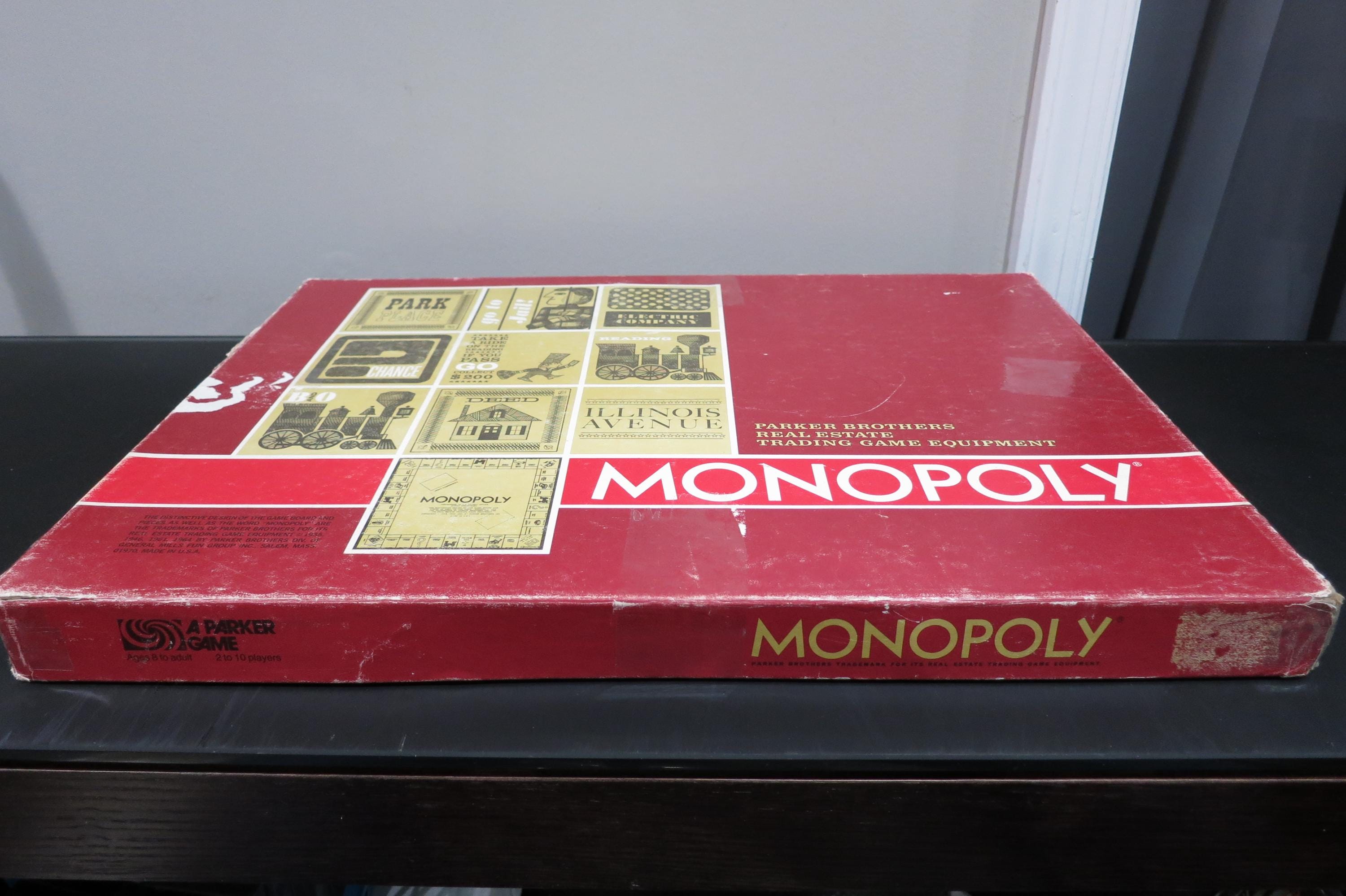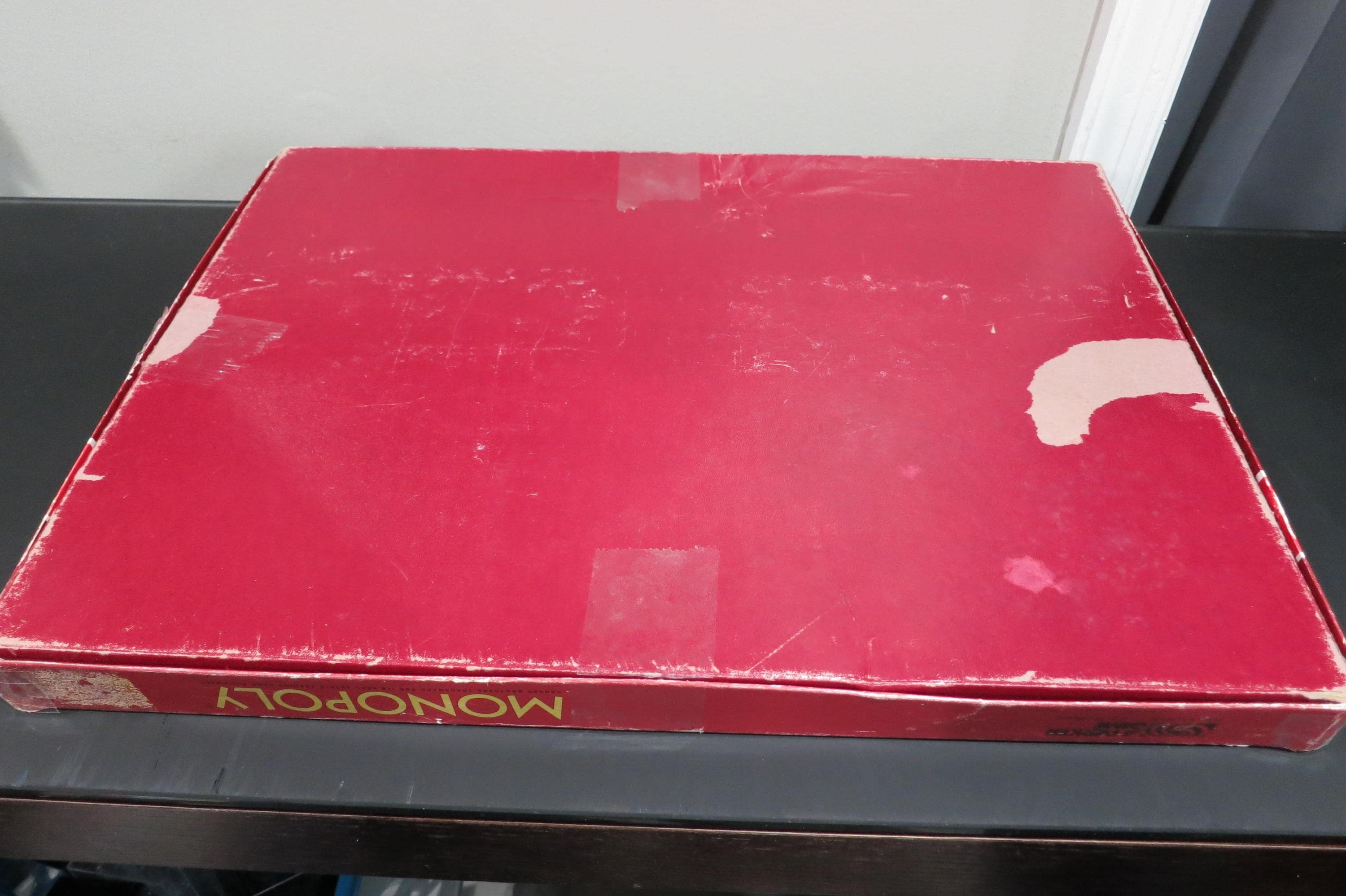 Vintage 1974 Board Game Monopoly 40th Anniversary Edition Red Box. Box is worn with taped corners. 40th Anniversary Edition.