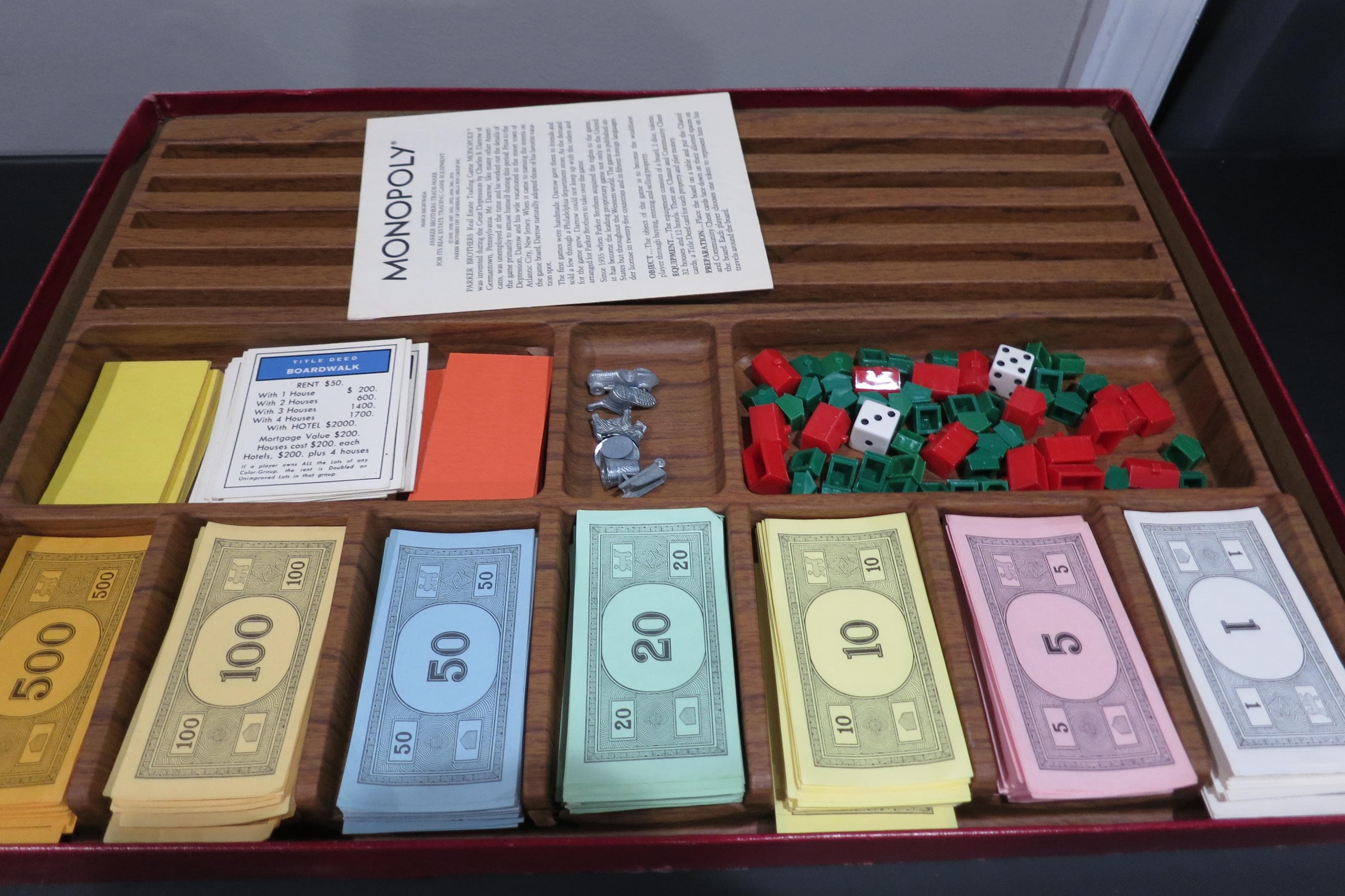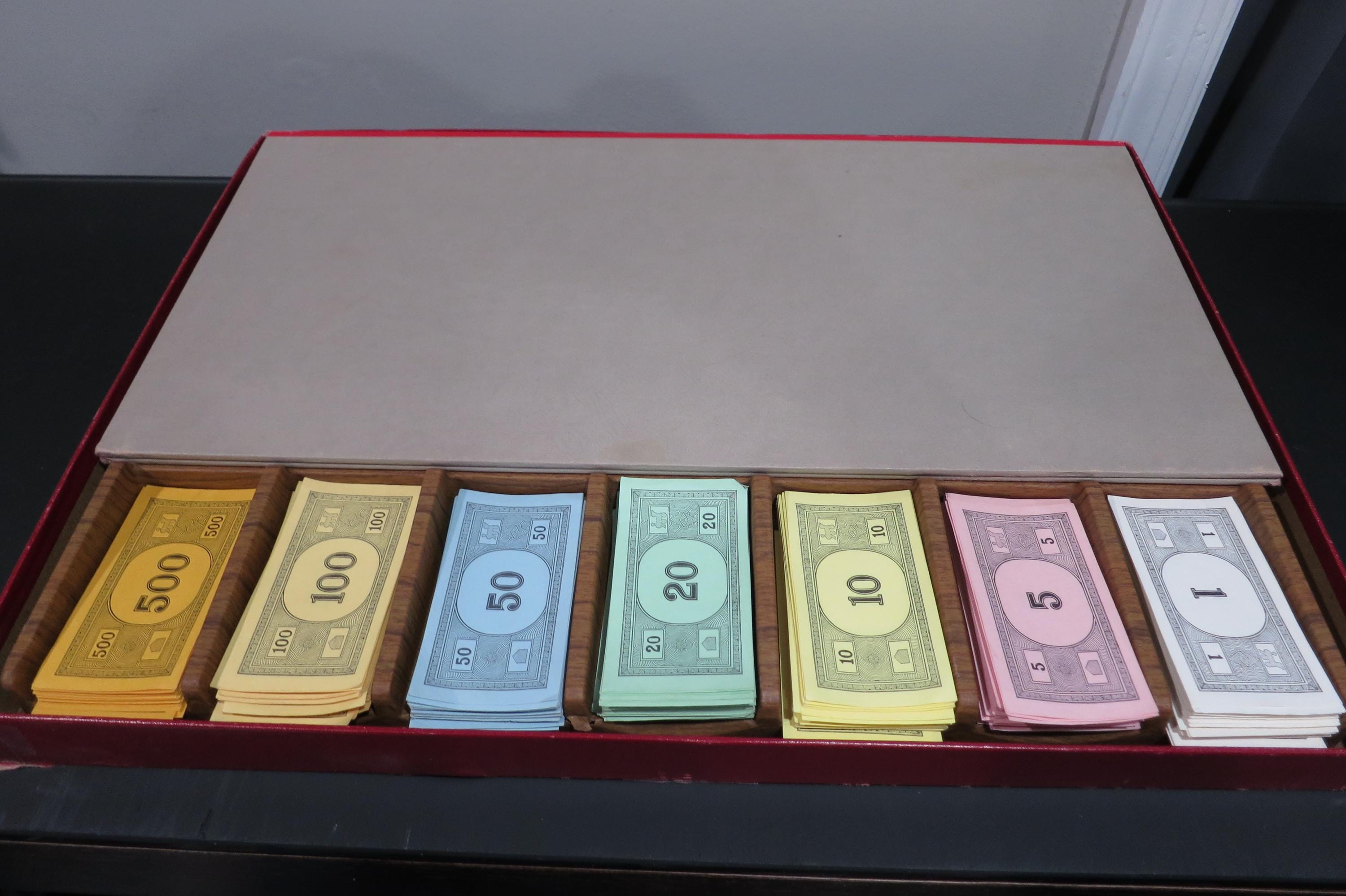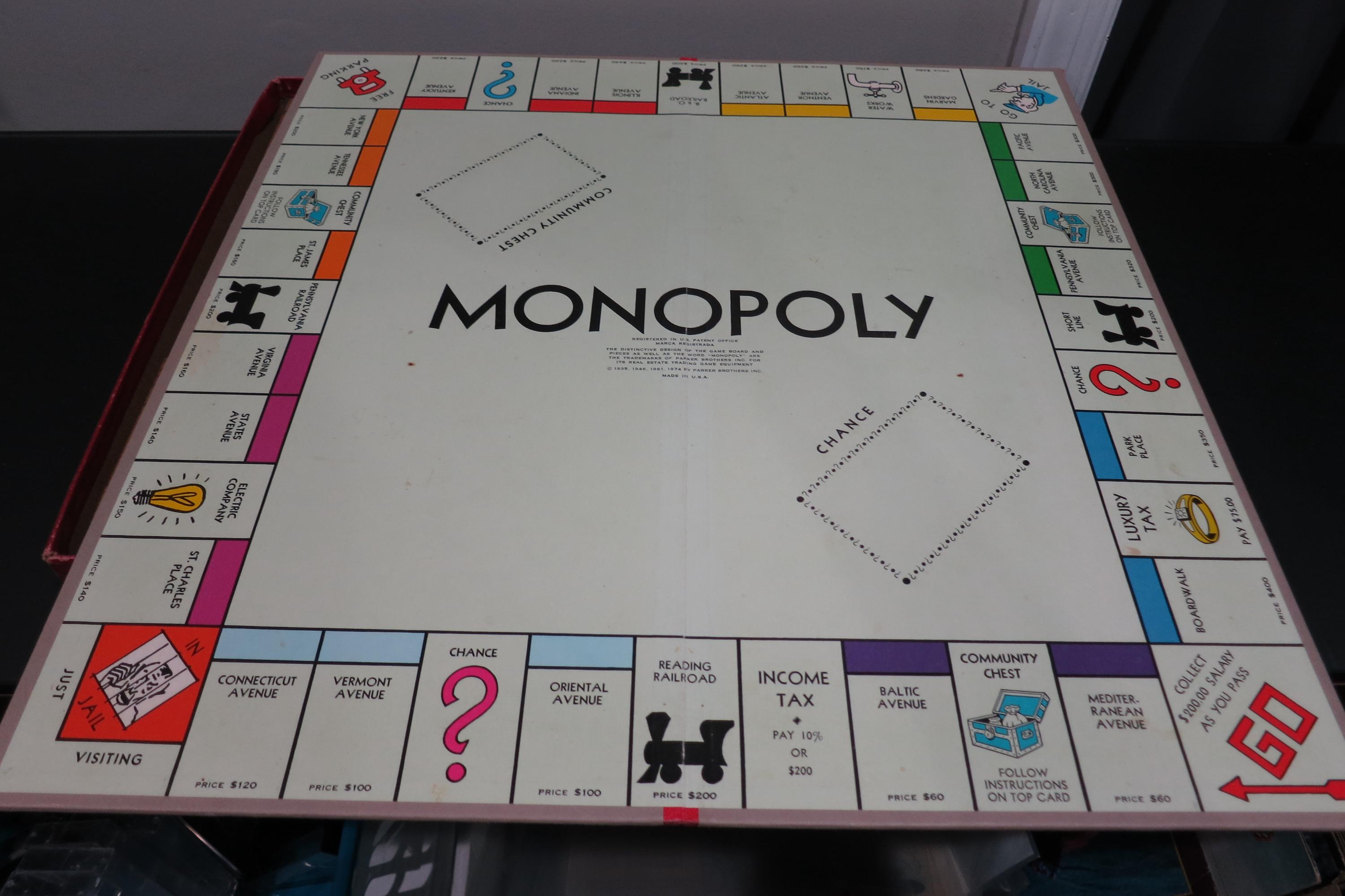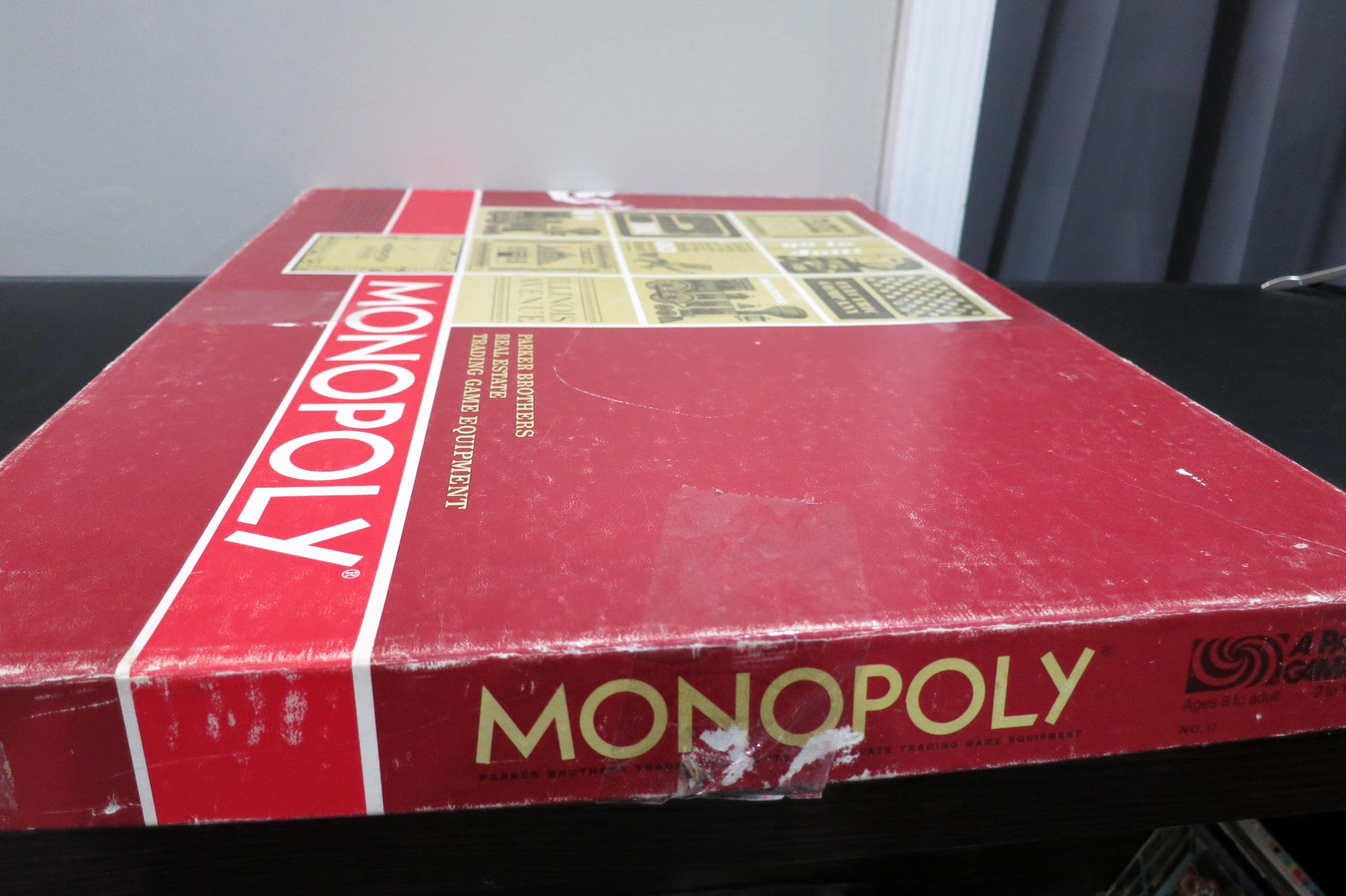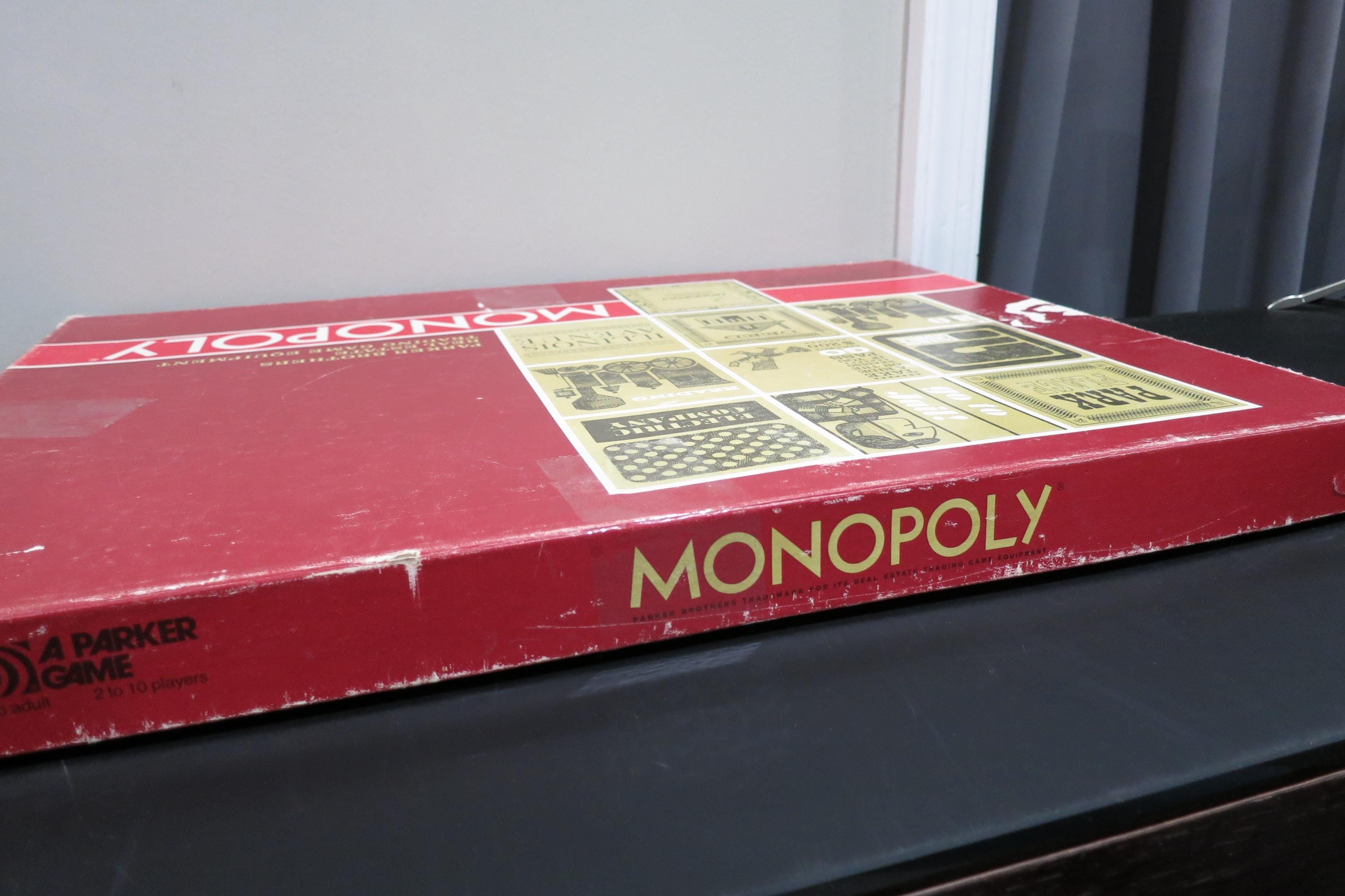 Vintage 1974 Board Game Monopoly 40th Anniversary Edition Red Box. Box is worn with taped corners. 40th Anniversary Edition.
