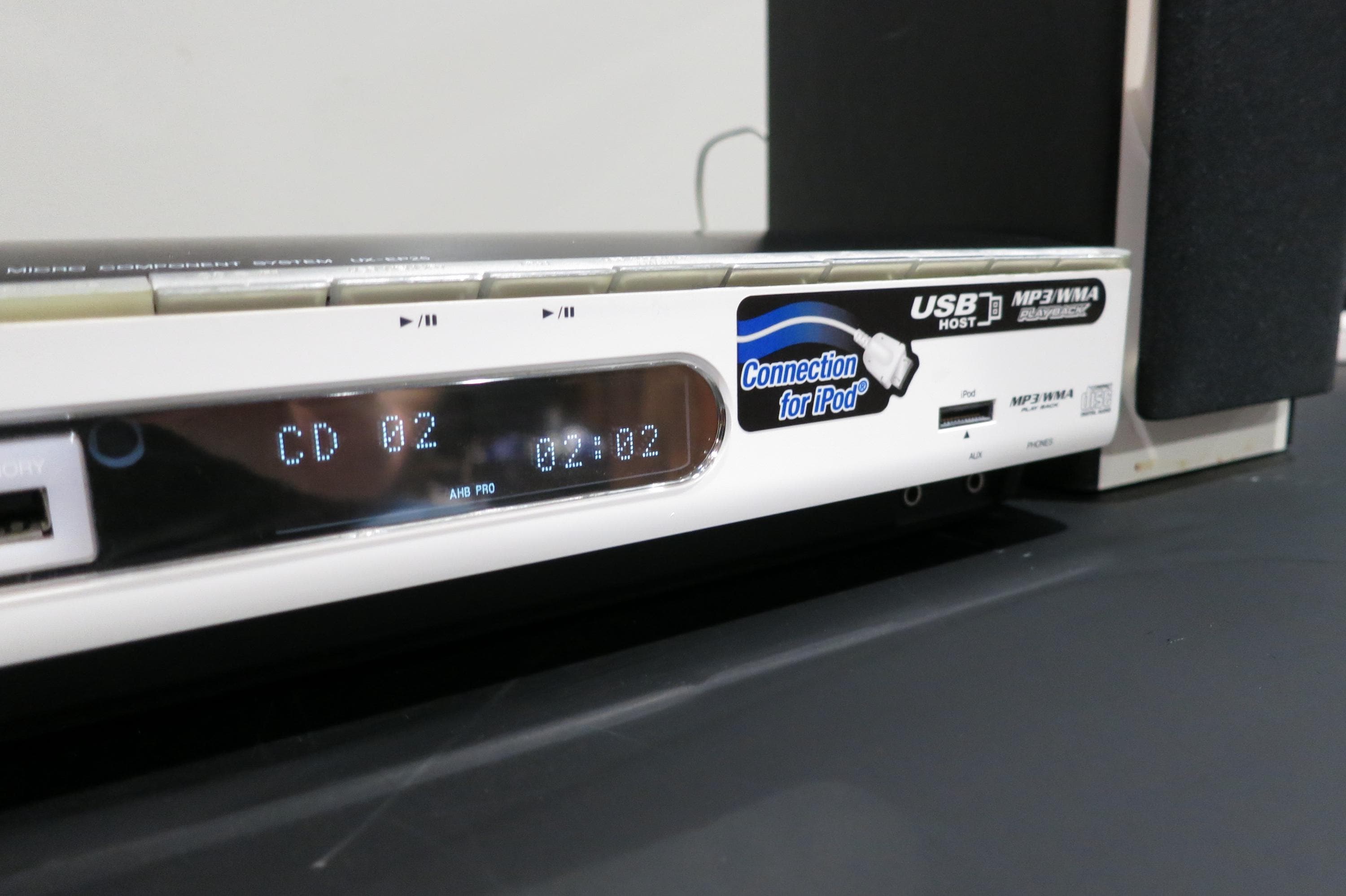 This complete home stereo features a tuner and cd player, blue display and black and white modern speakers. All the functions work properly and it is ready for a new home!