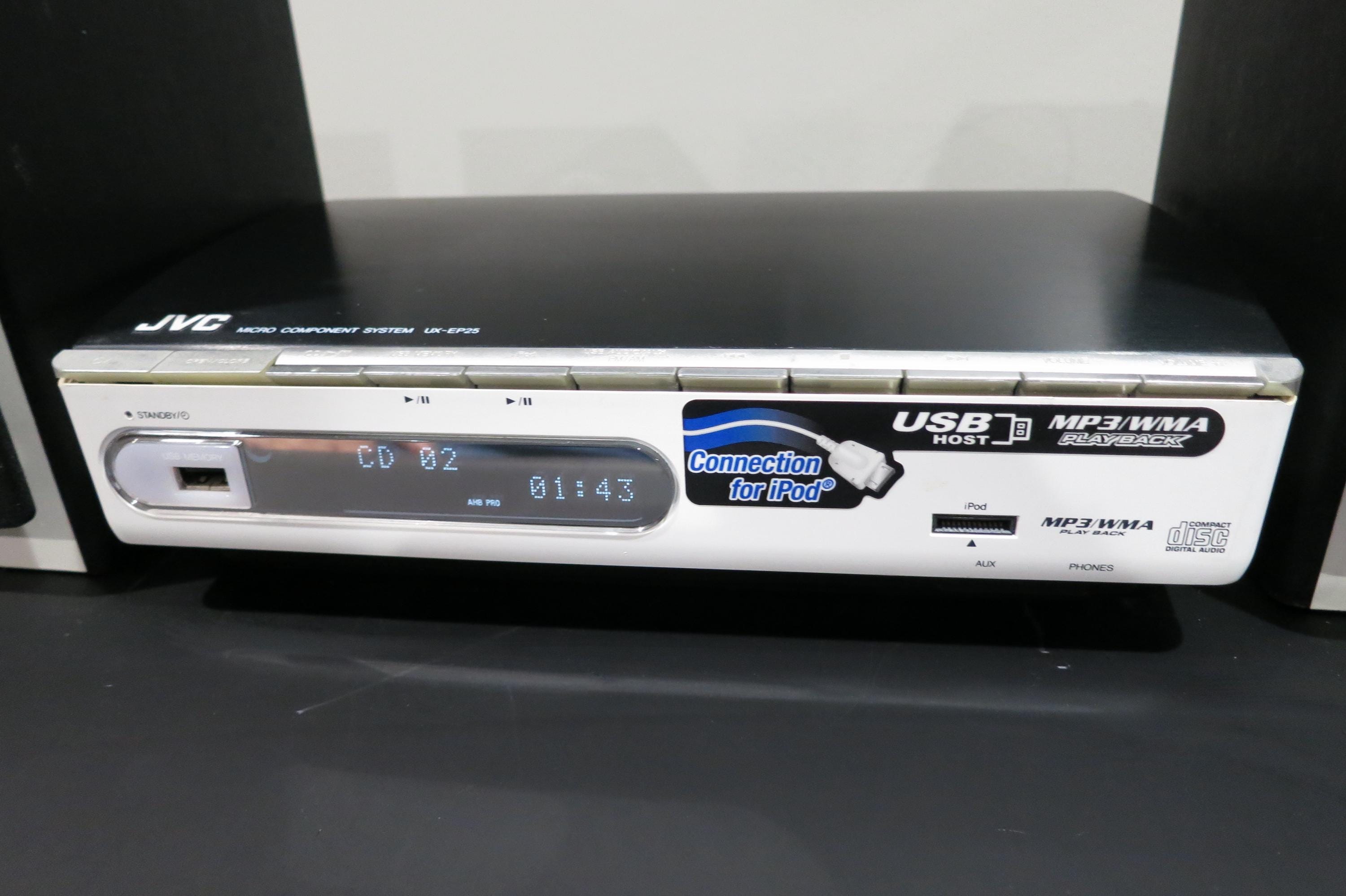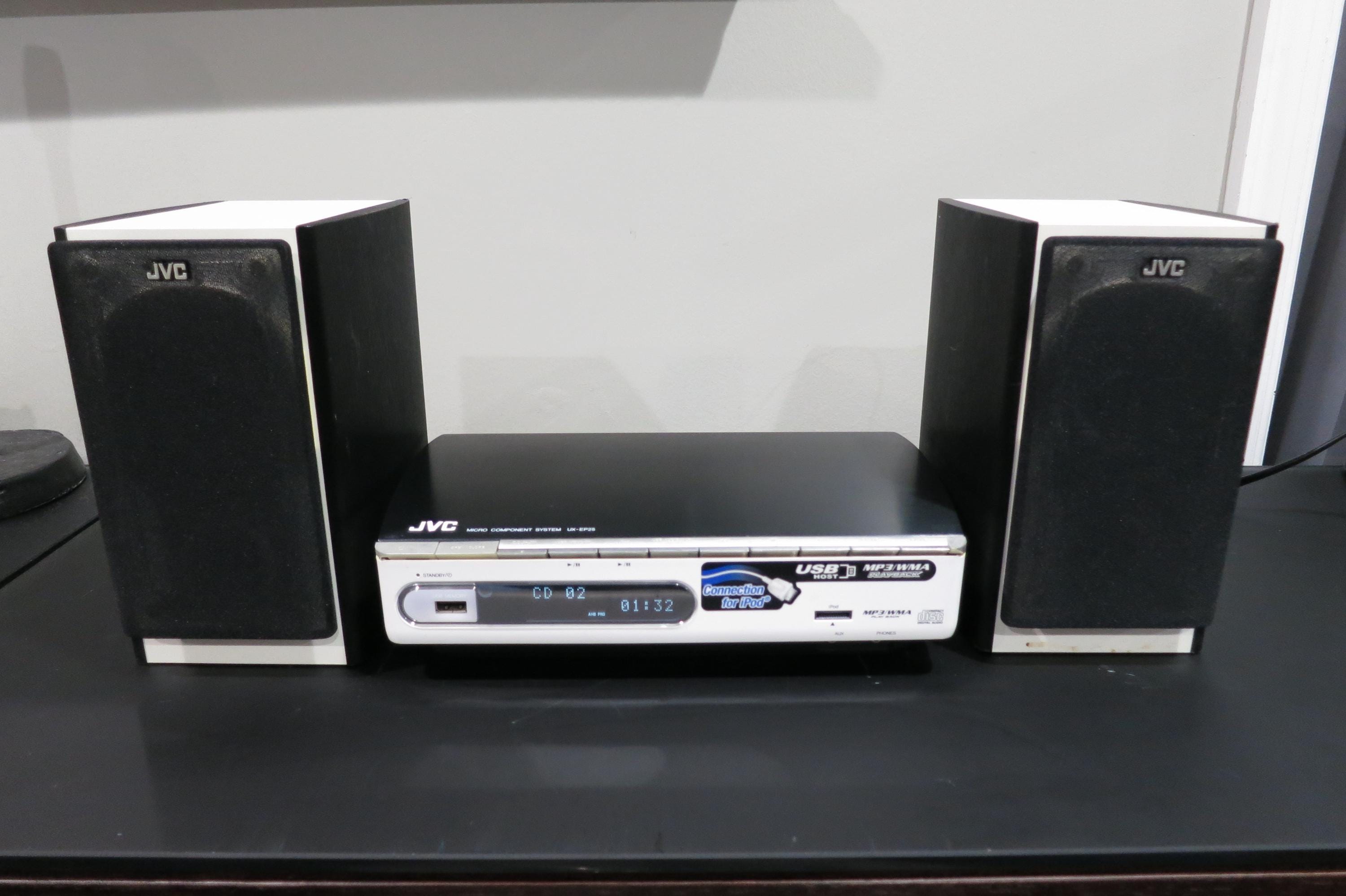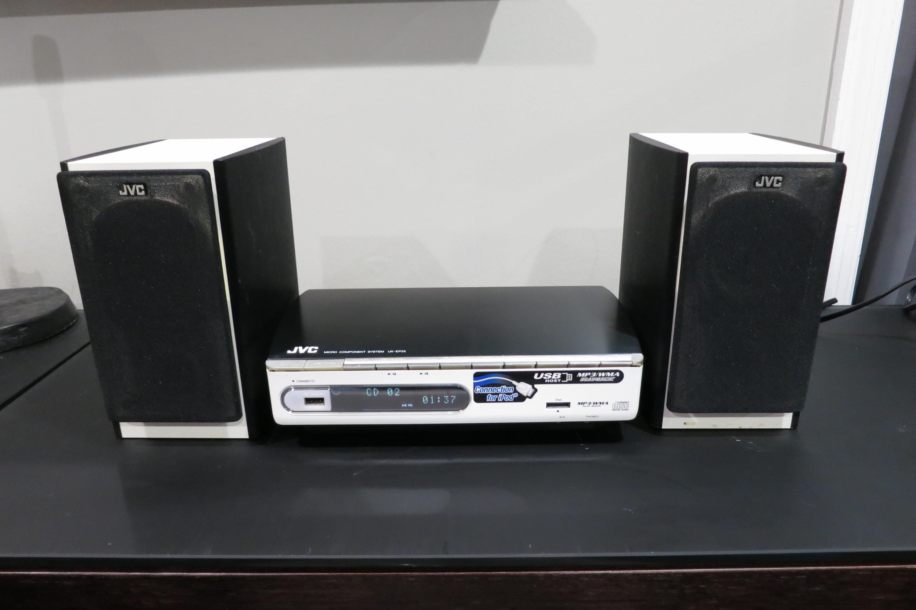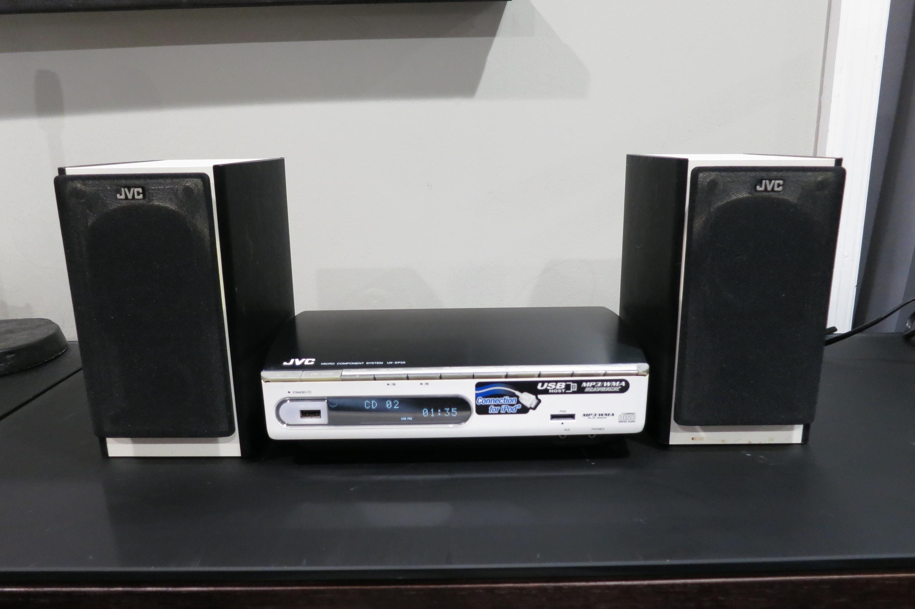 Vintage 2003 JVC Compact Stereo System: CD Player, Speakers.