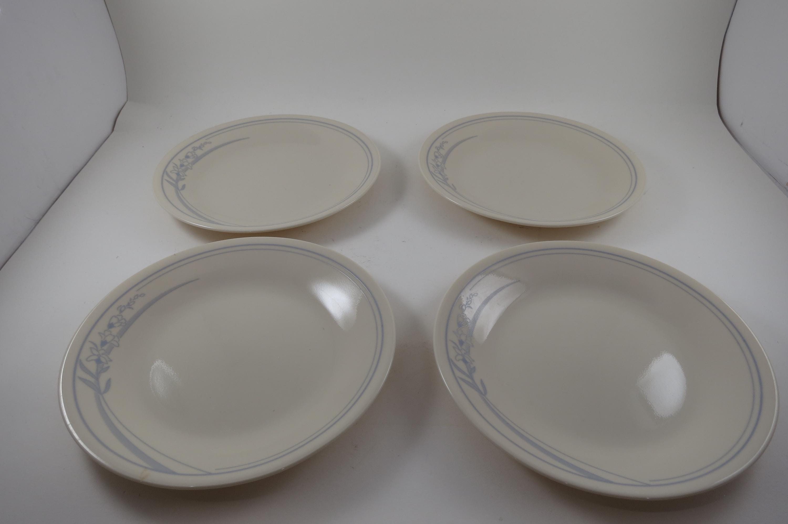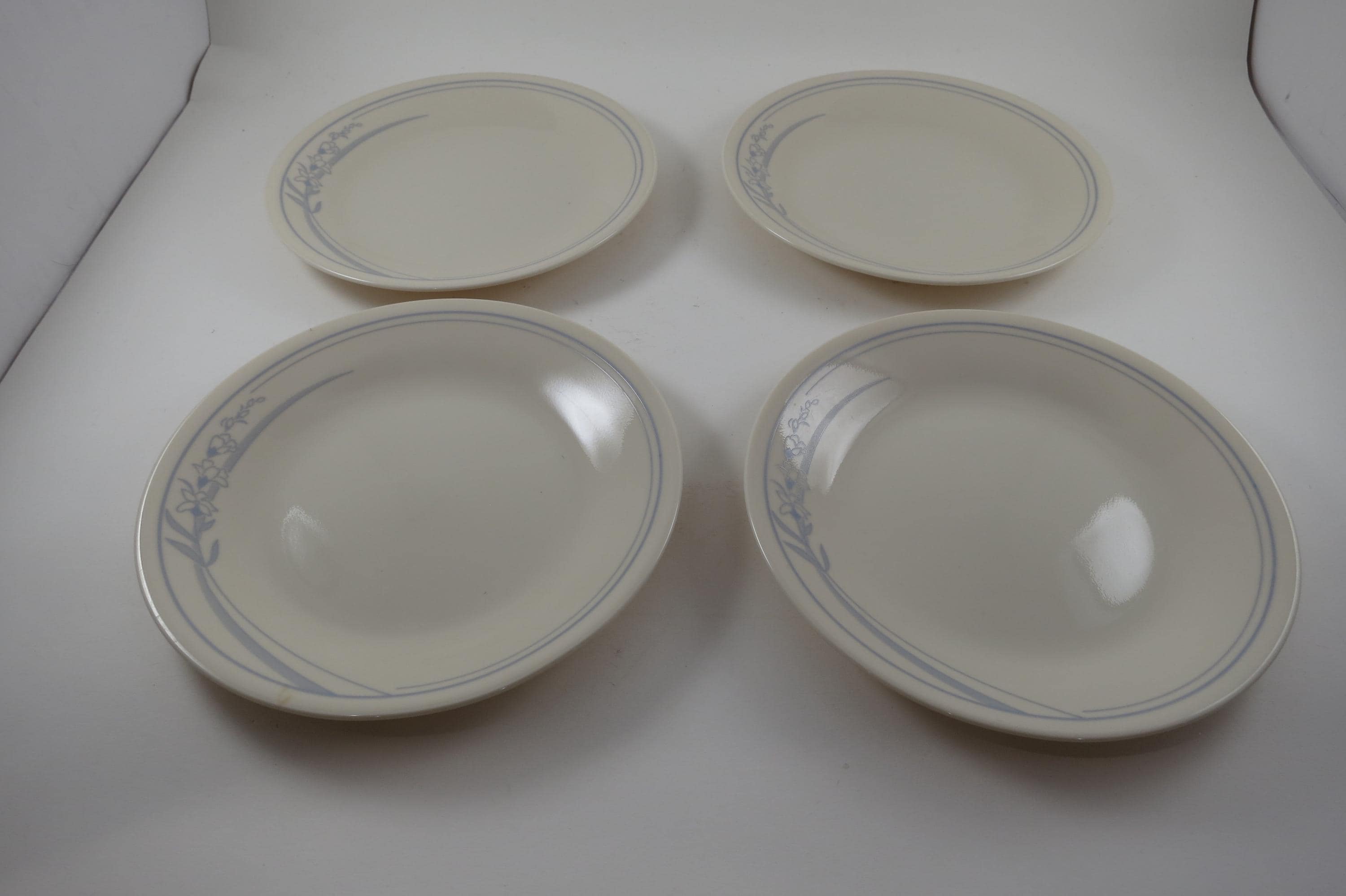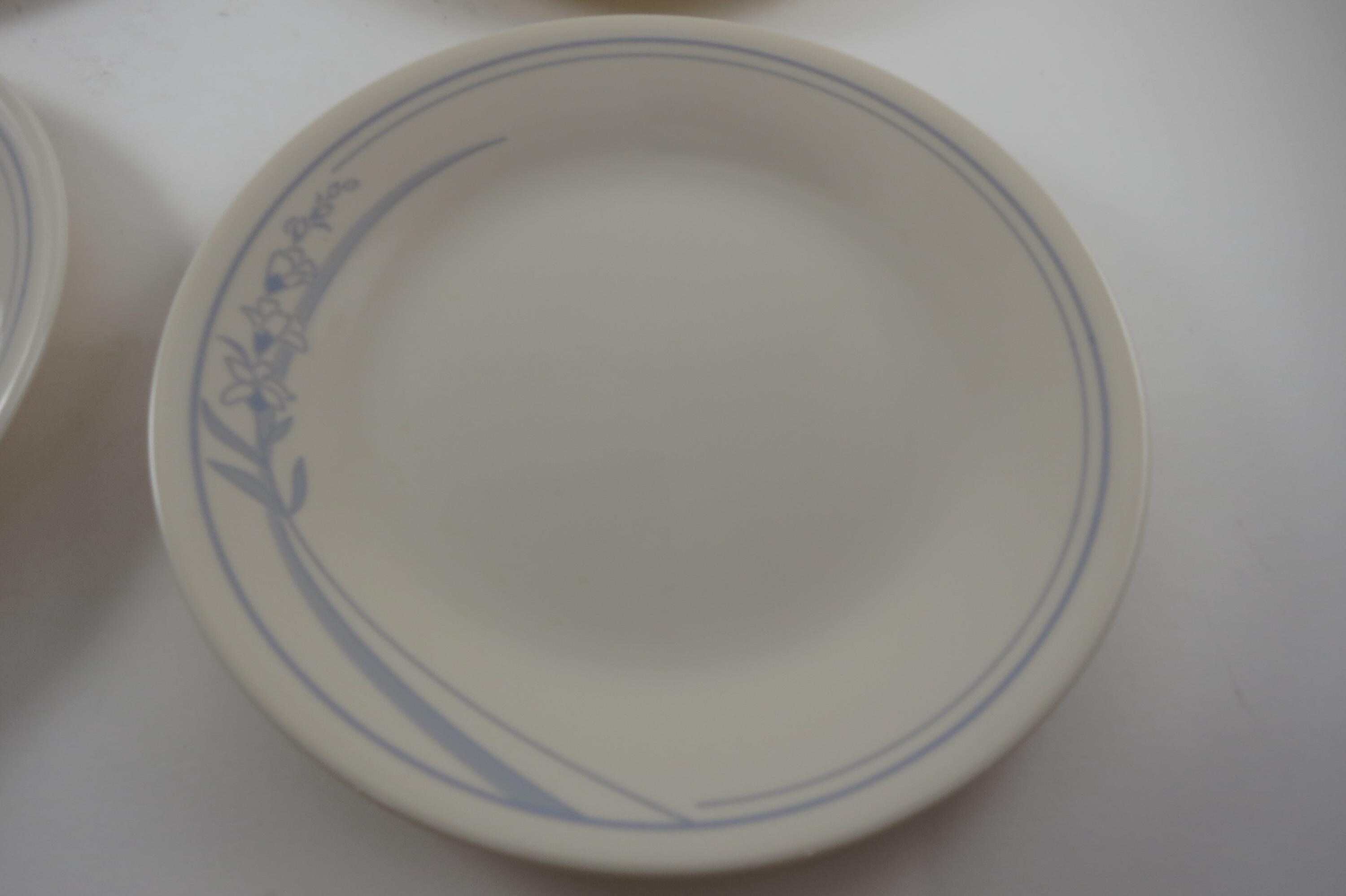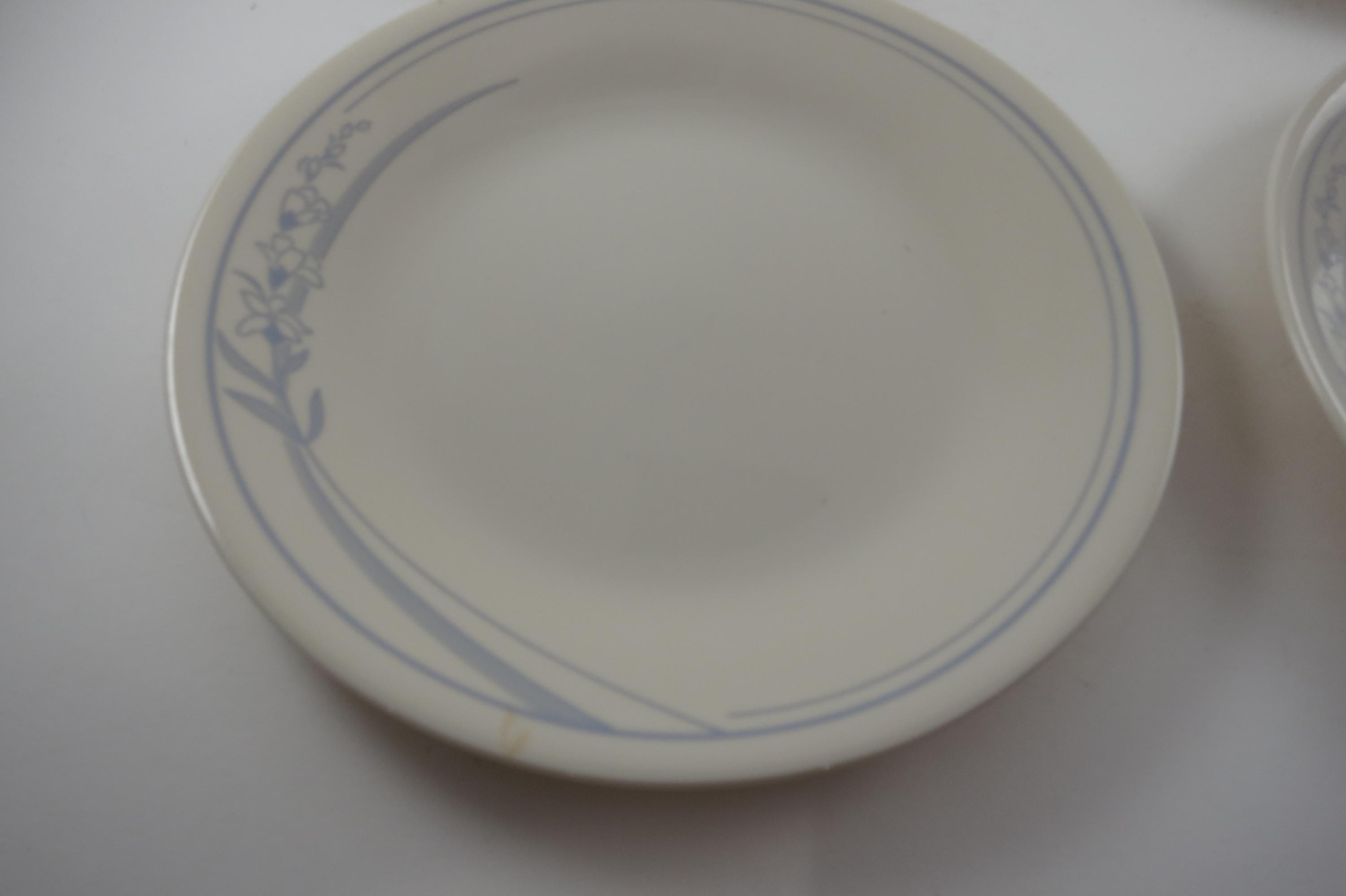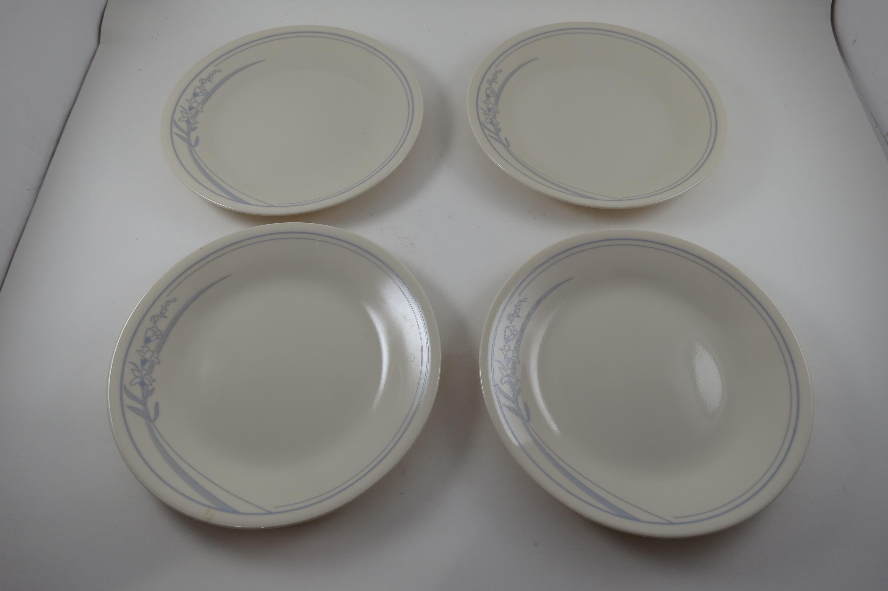 Vintage Corelle Bread Plates: Blue Lily Pattern, Set of 4, Set of 4. No chips, cracks or damages. All four are in excellent condition.