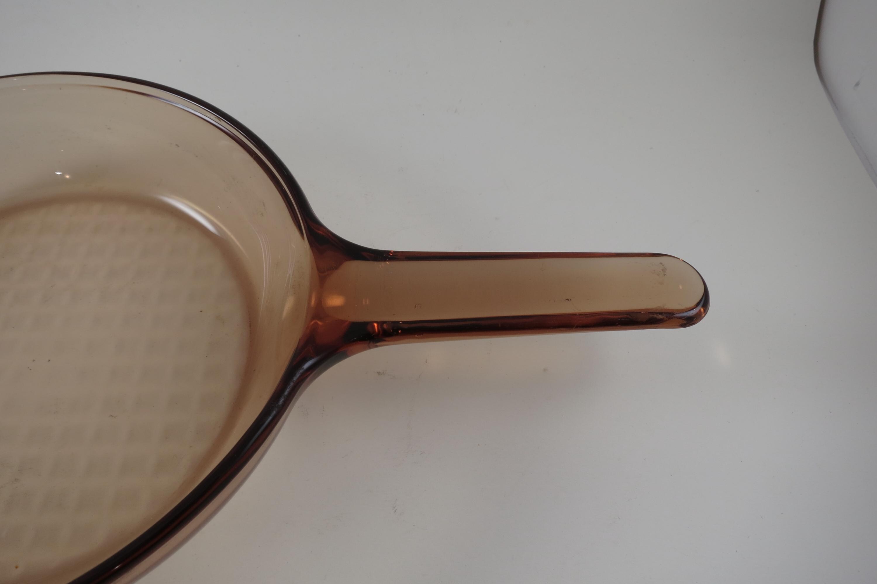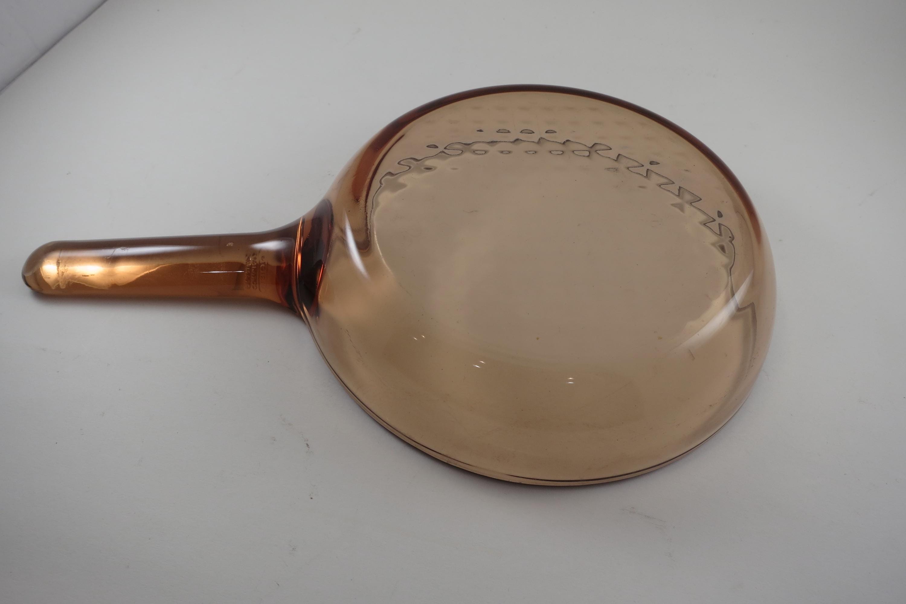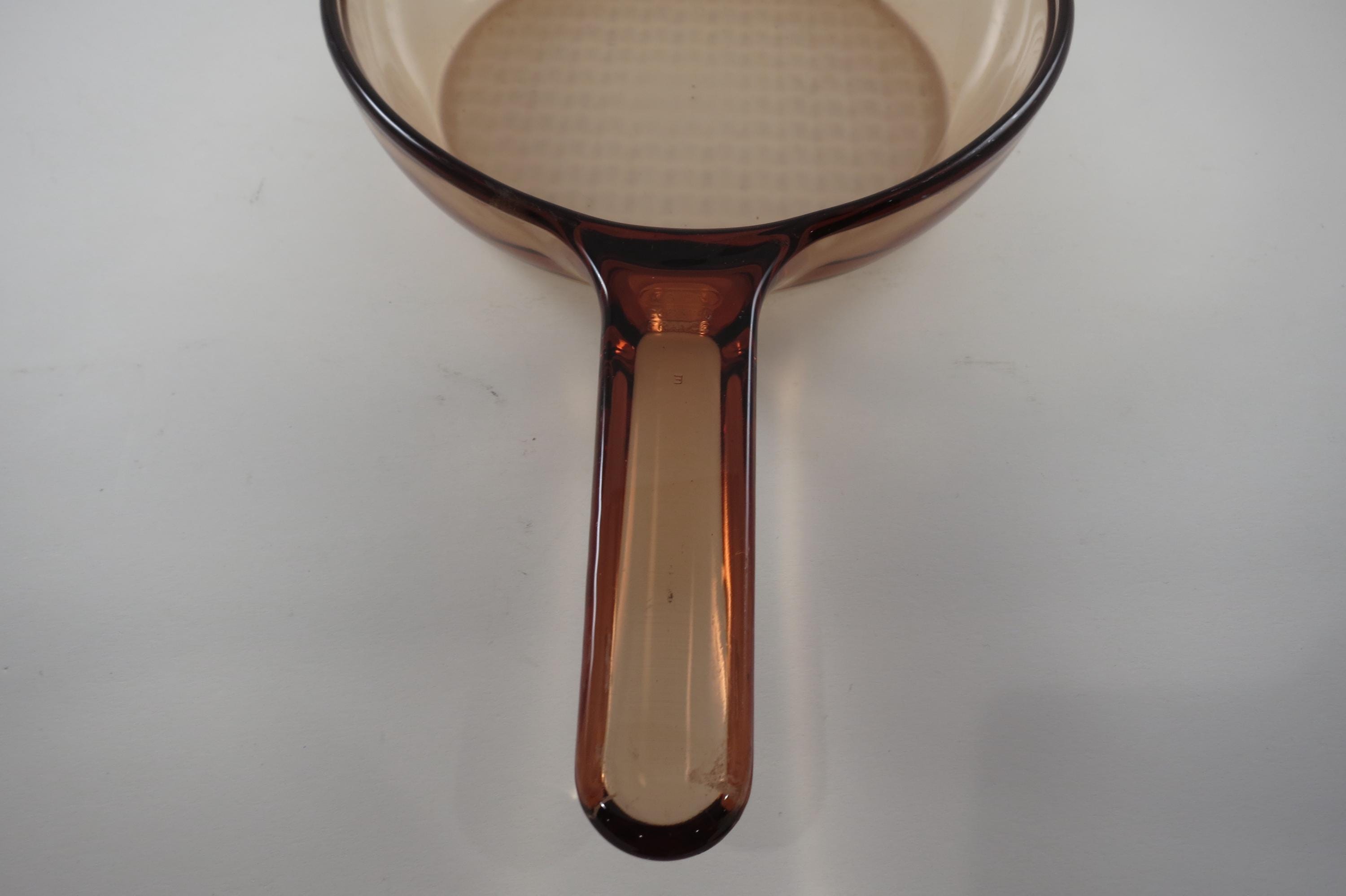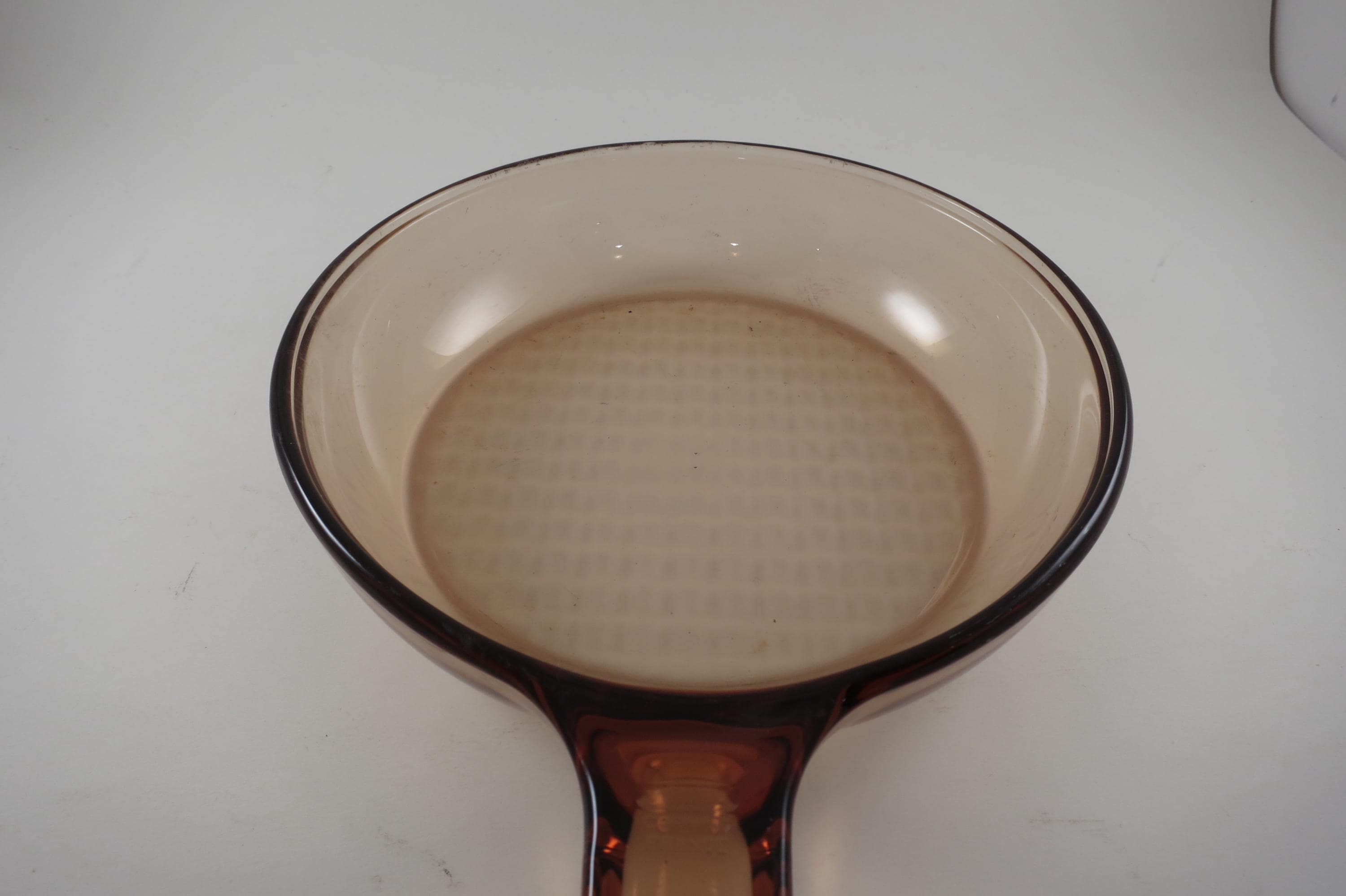 Vintage Corning Vision Amber Glass Saucepan . No damages, light use wear. Measures 7 1/4 inches diameter excluding the handle. Made in France.
