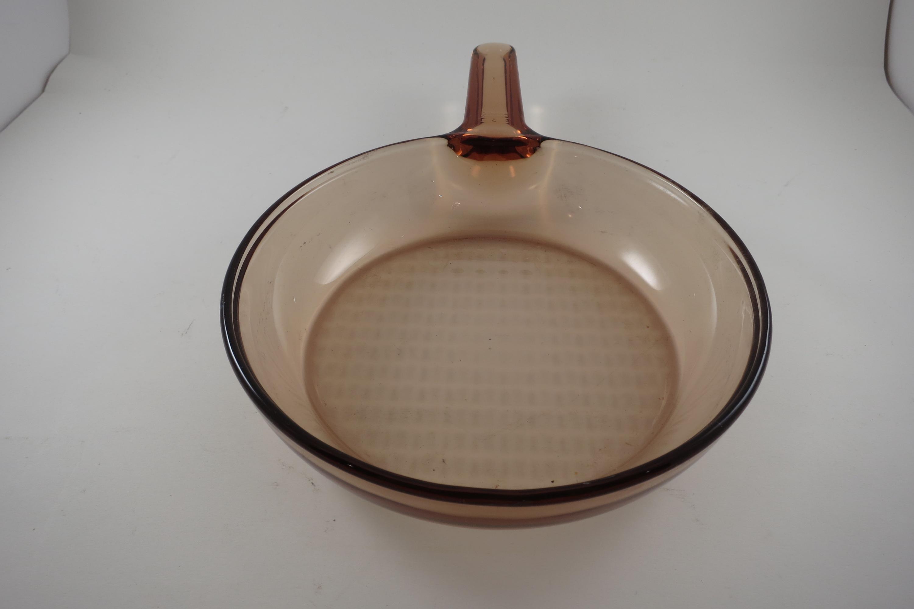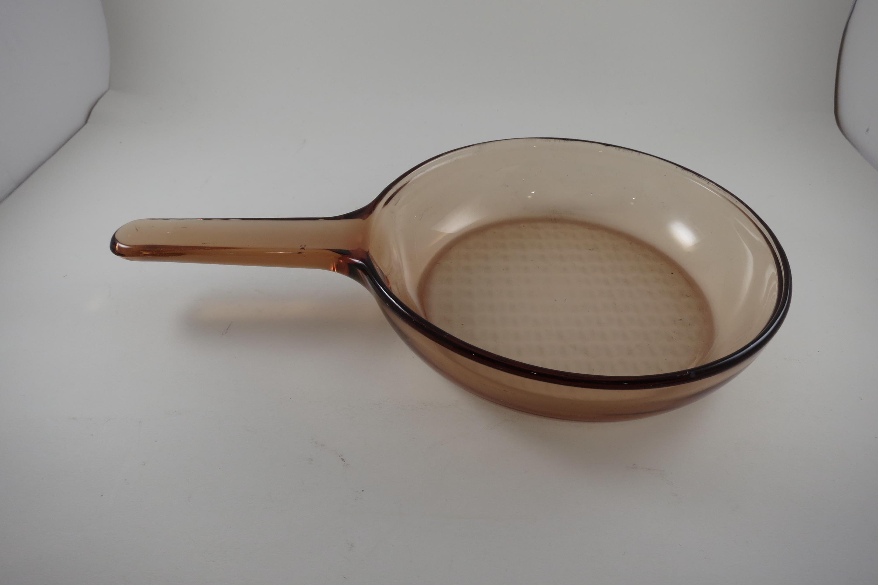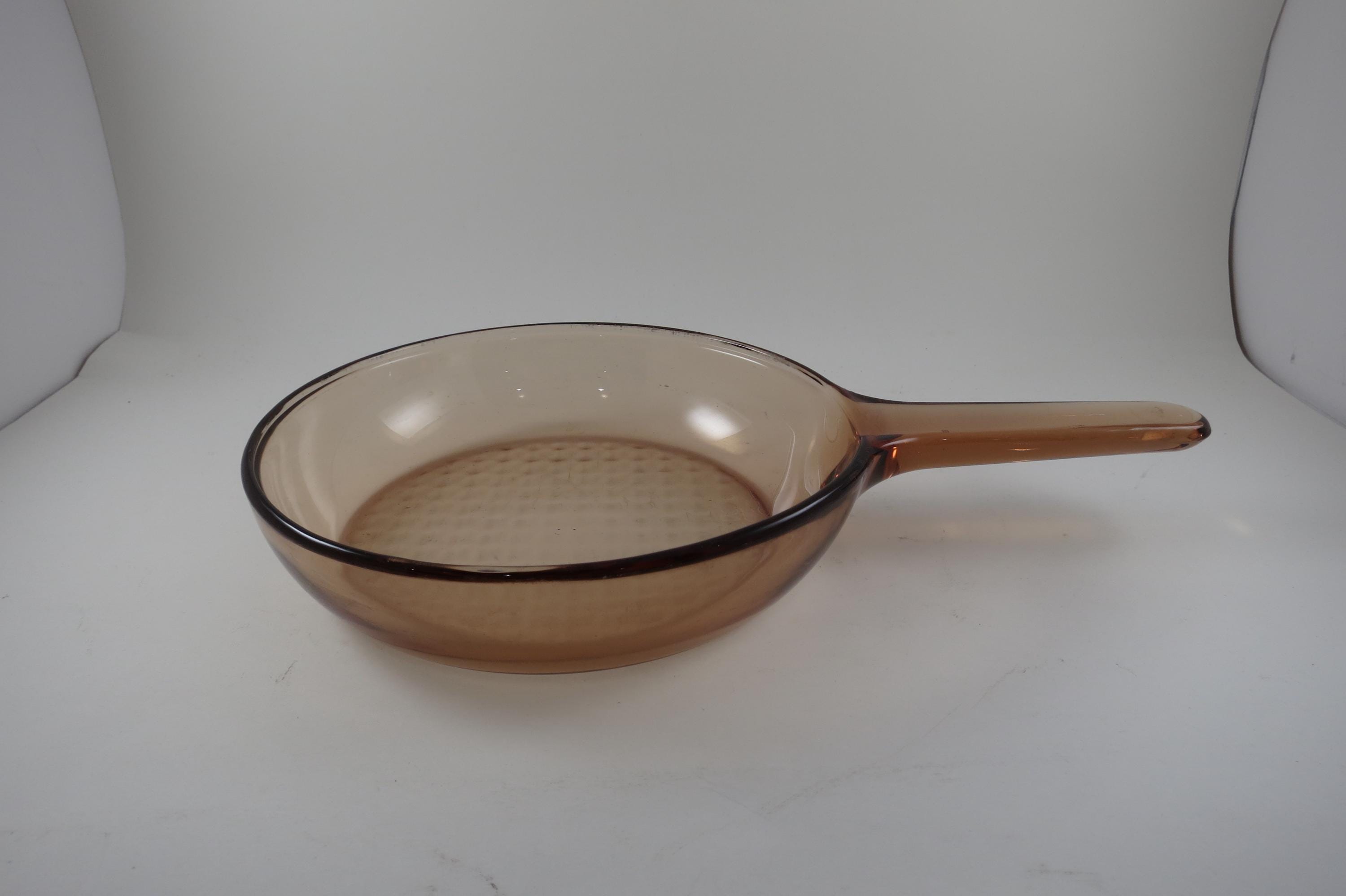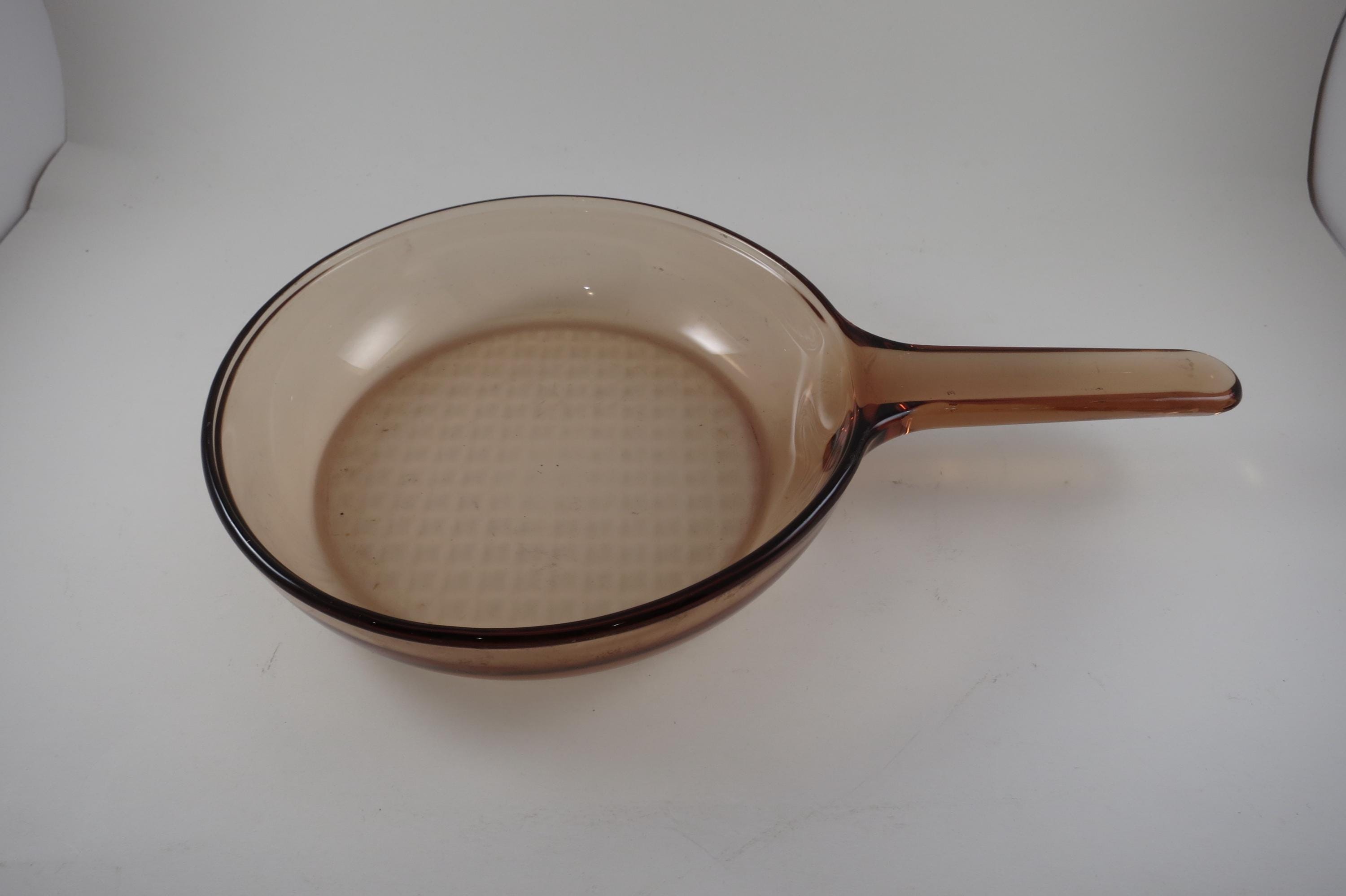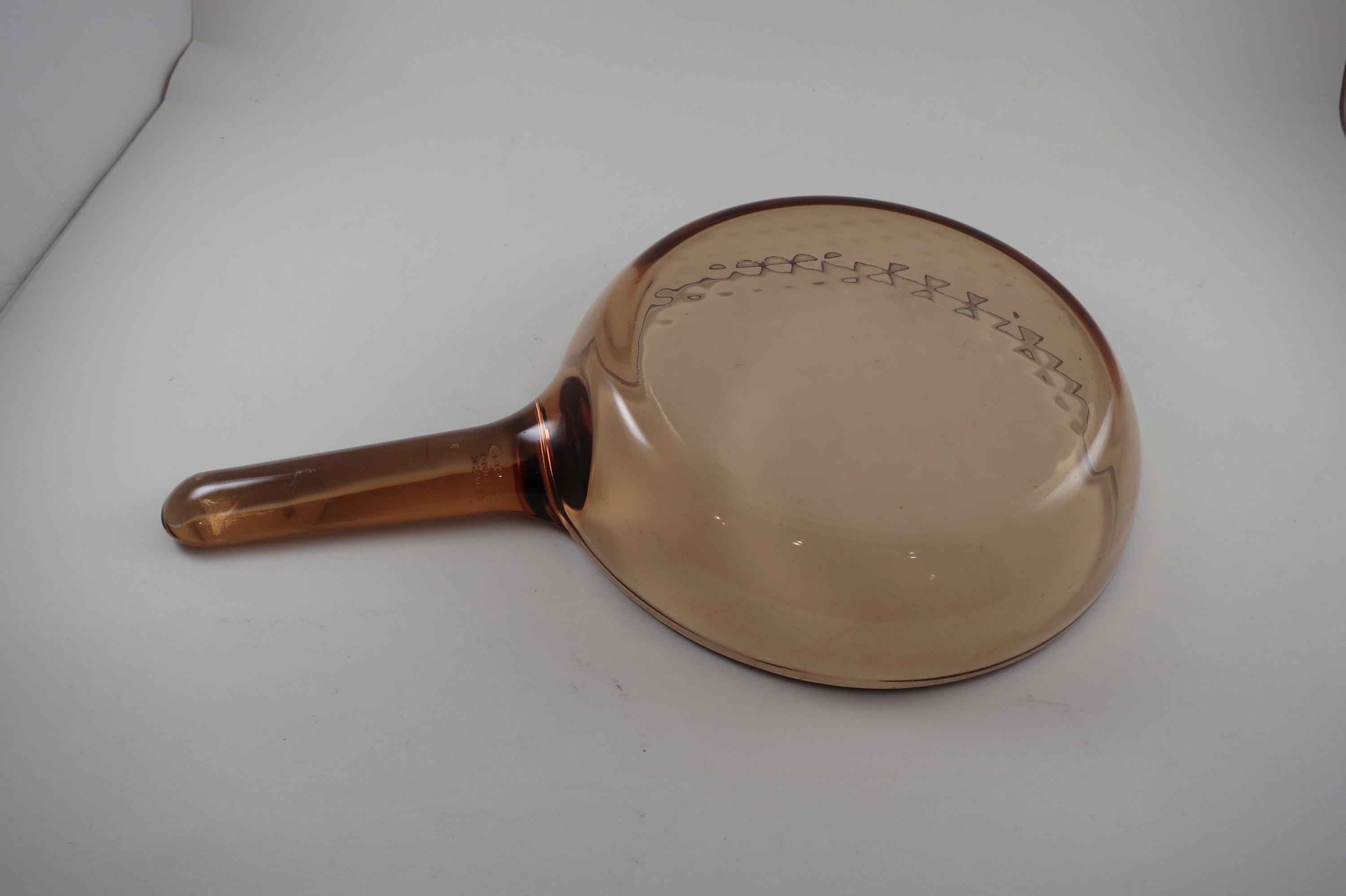 Vintage Corning Vision Amber Glass Saucepan . No damages, light use wear. Measures 7 1/4 inches diameter excluding the handle. Made in France.