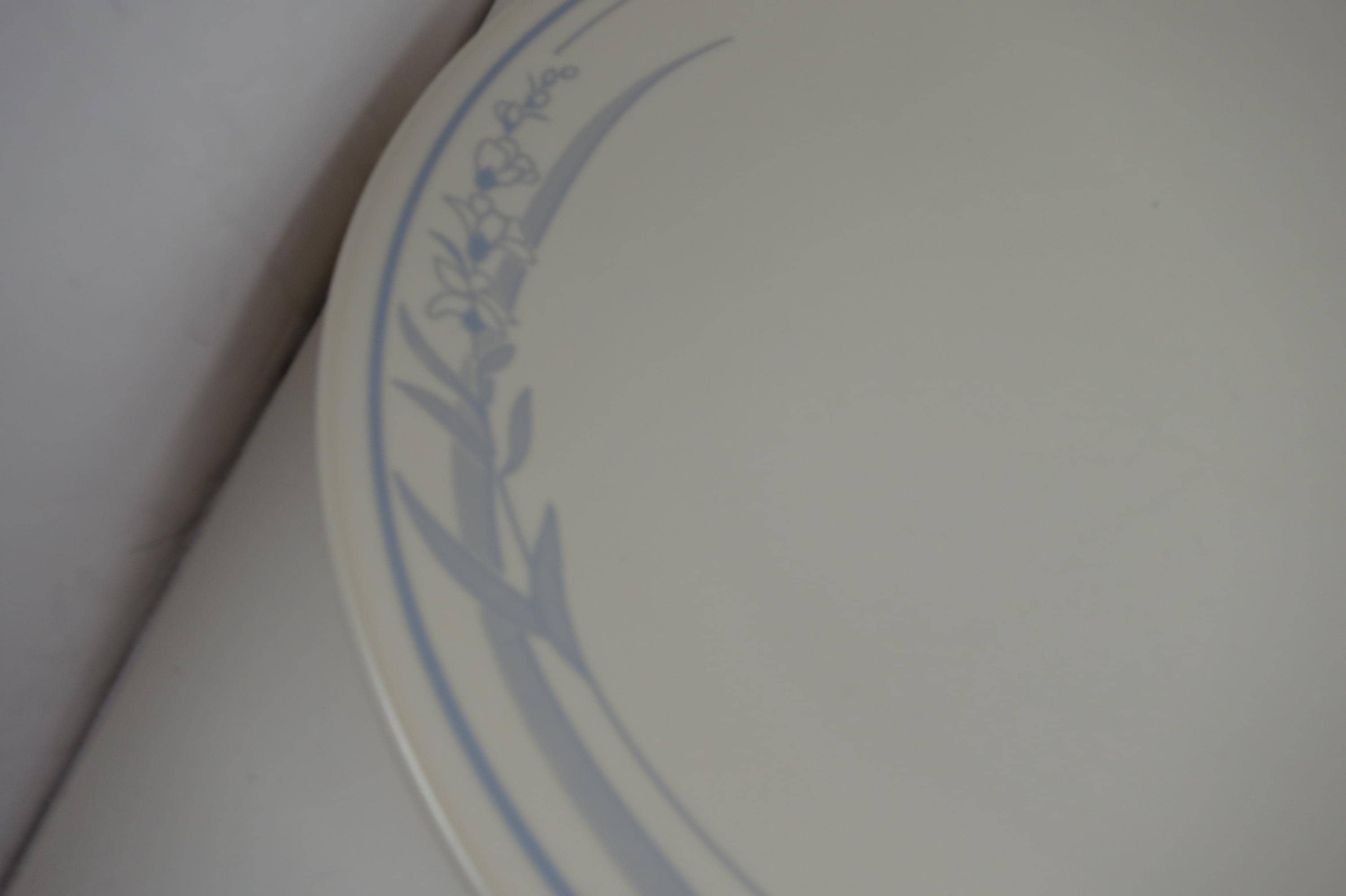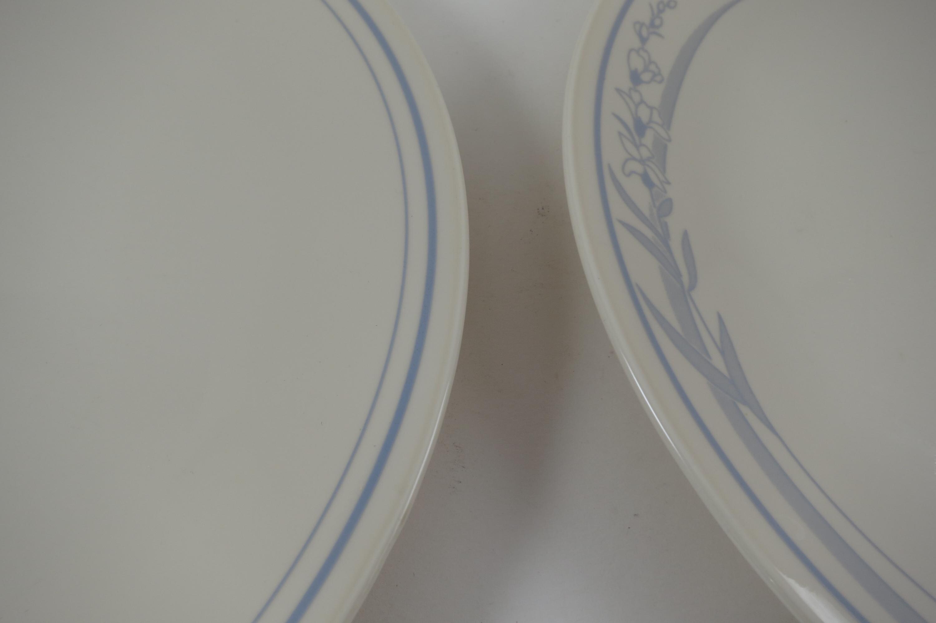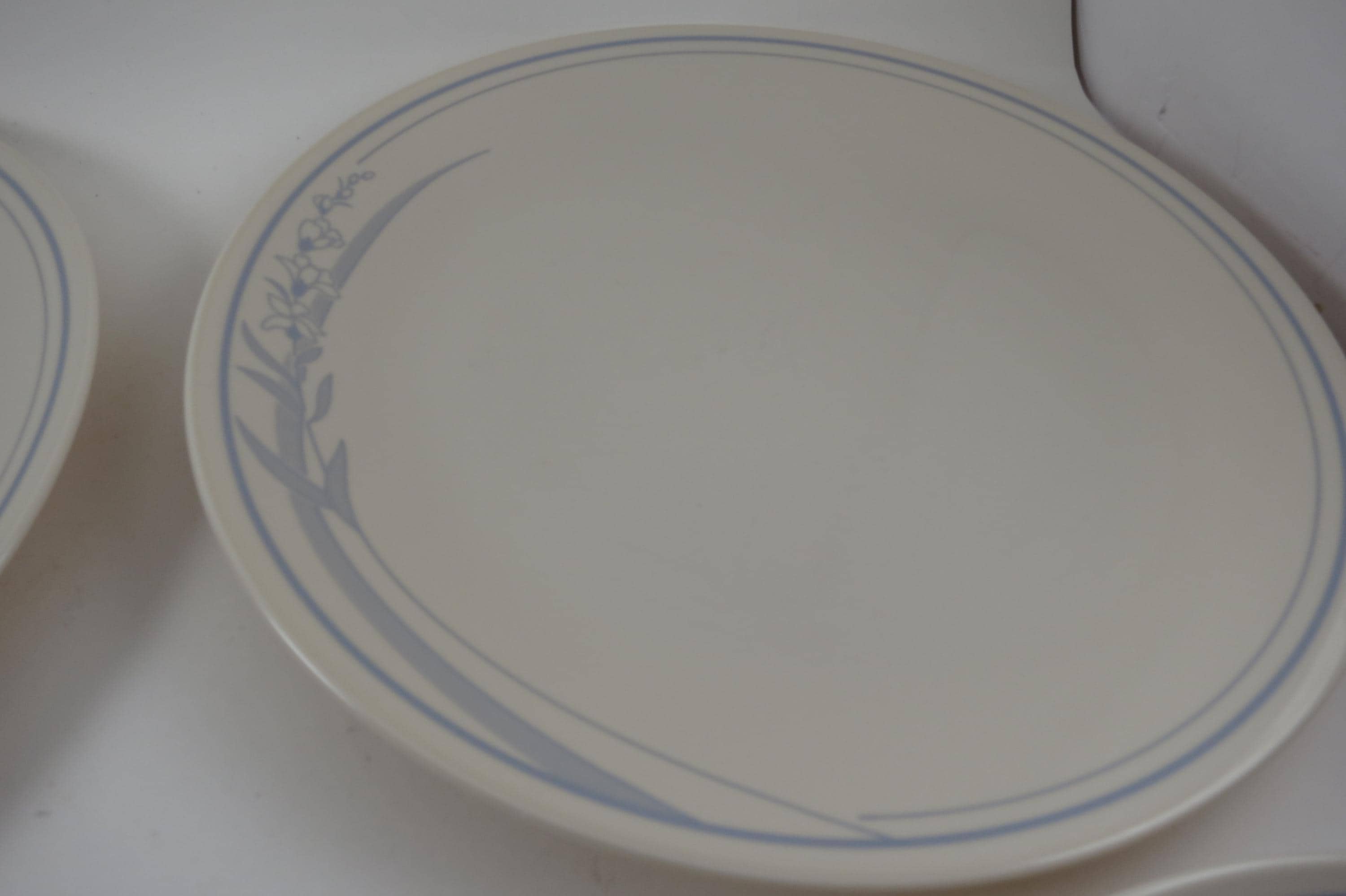 Vintage Corelle Dinner Plates: Blue Lily Pattern, Set of 4. No chips, cracks or damages. All four are in excellent condition. These dinner plates measure 10 1/4 inches.