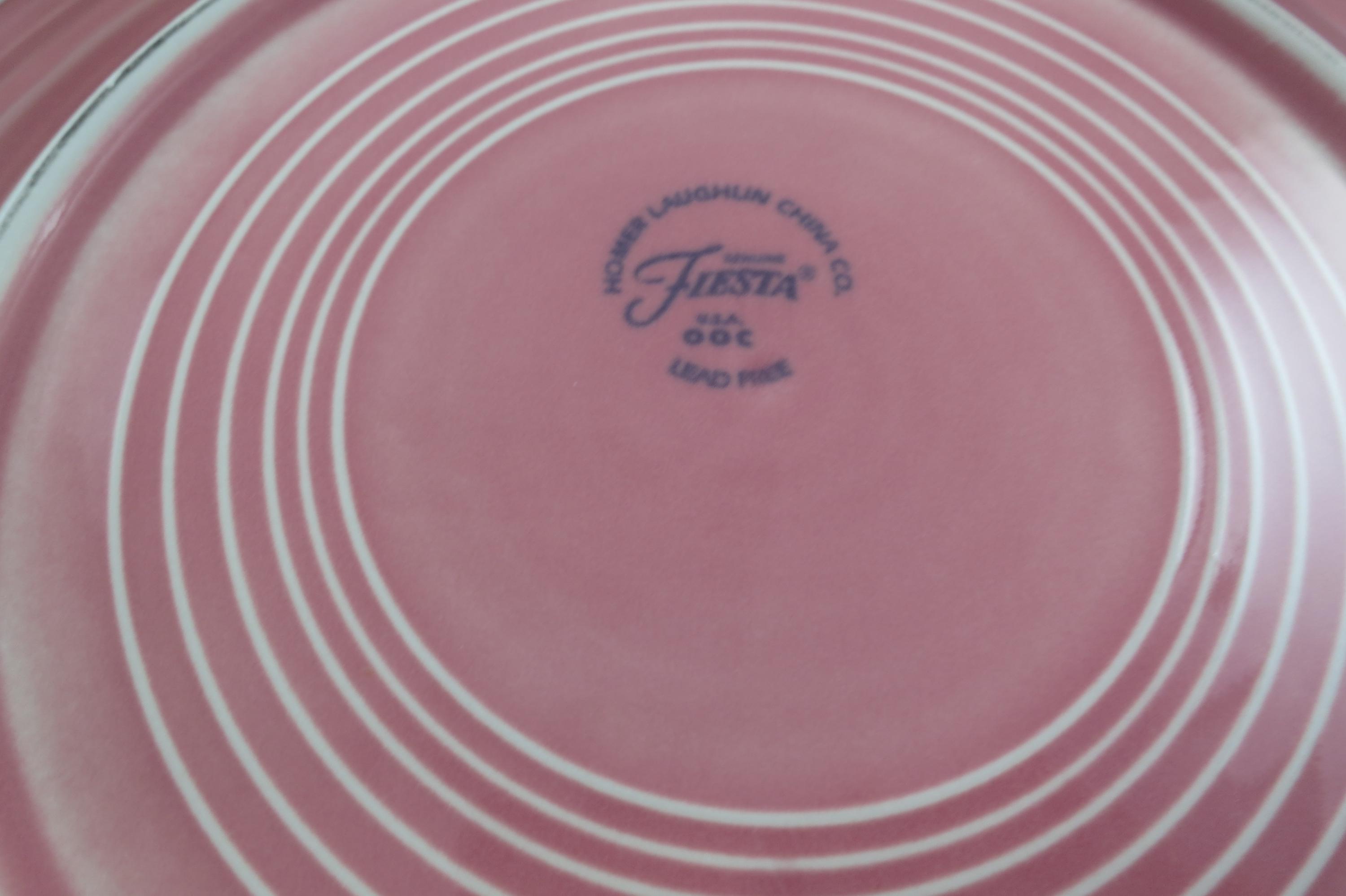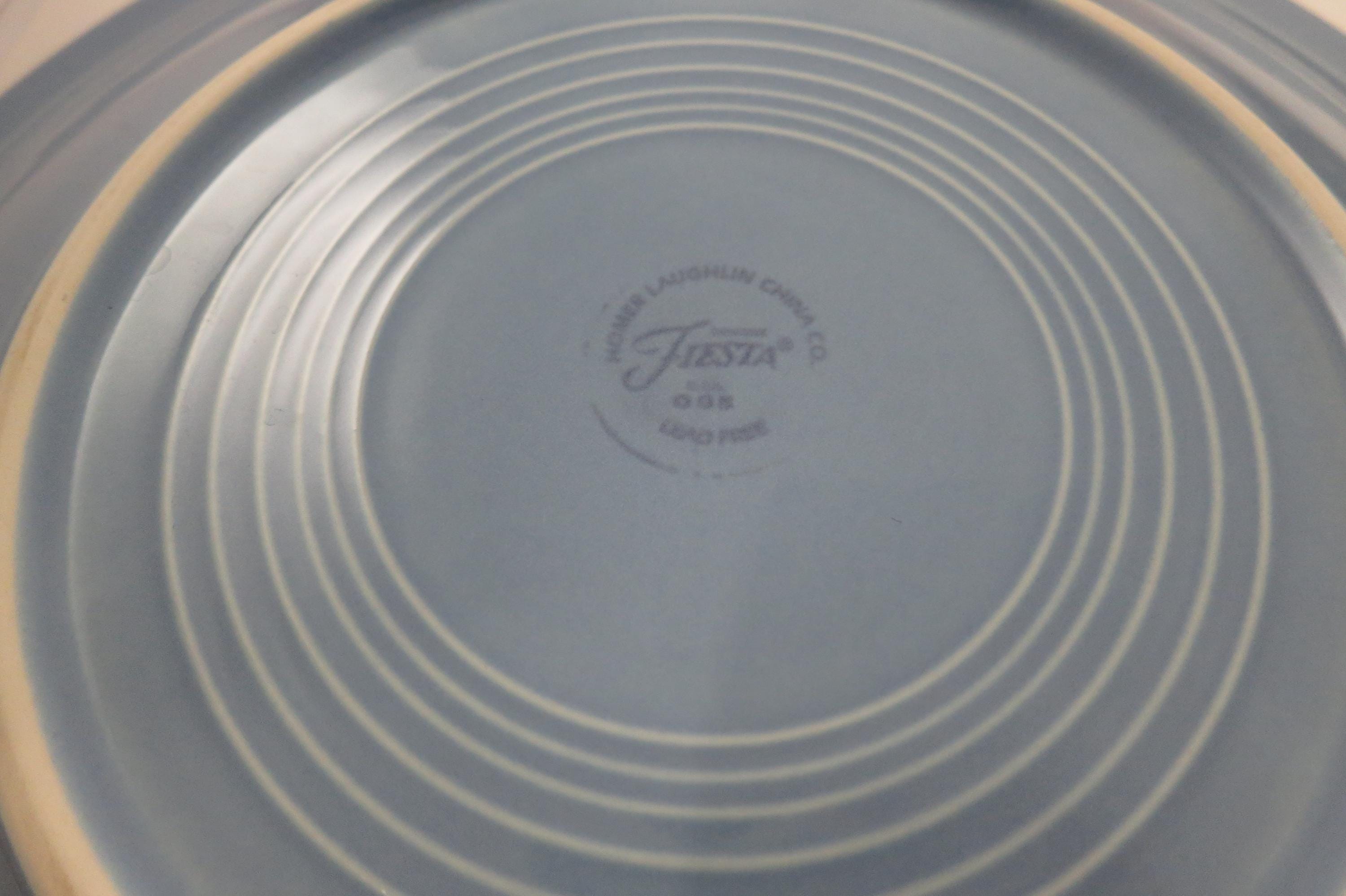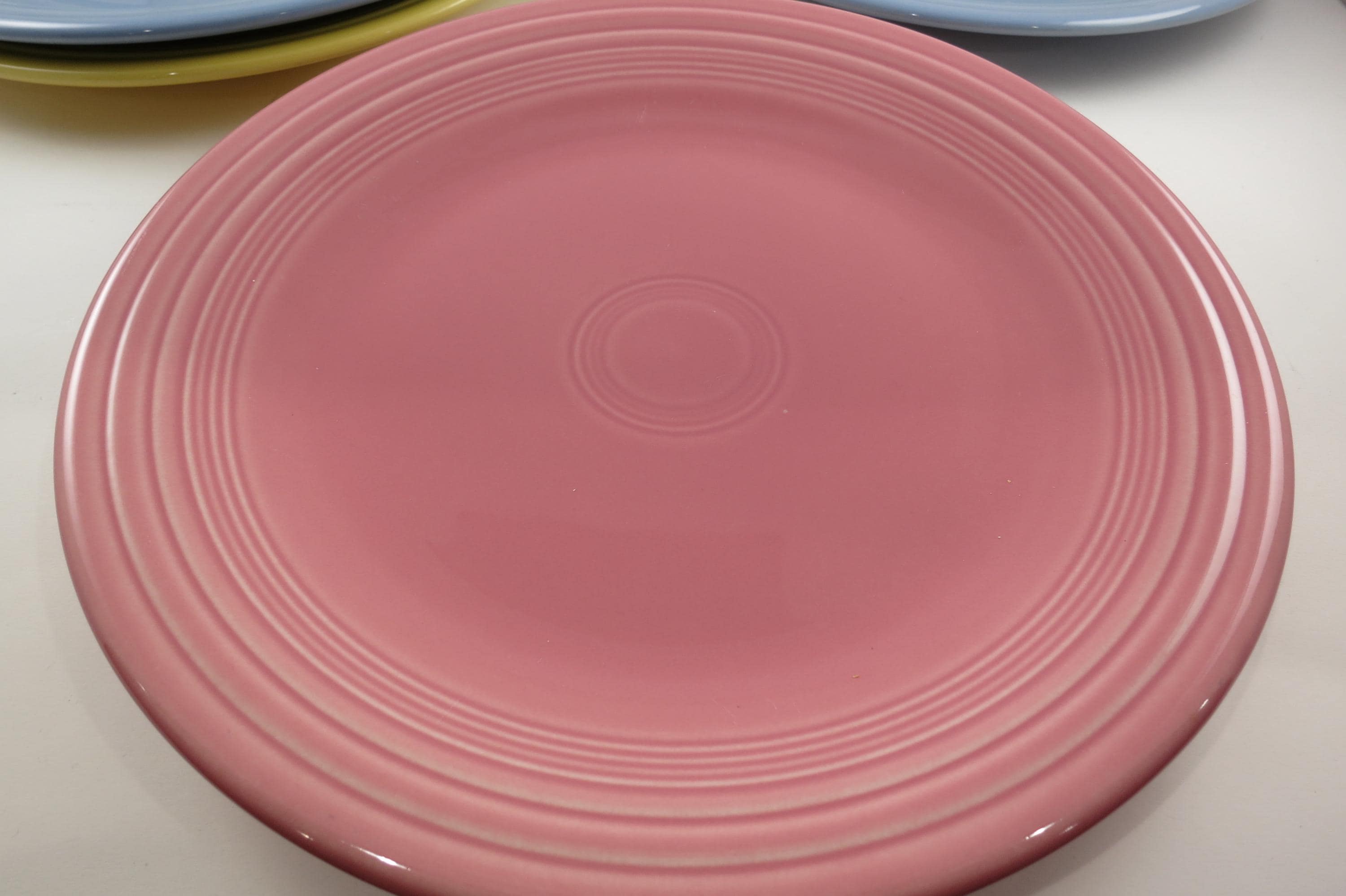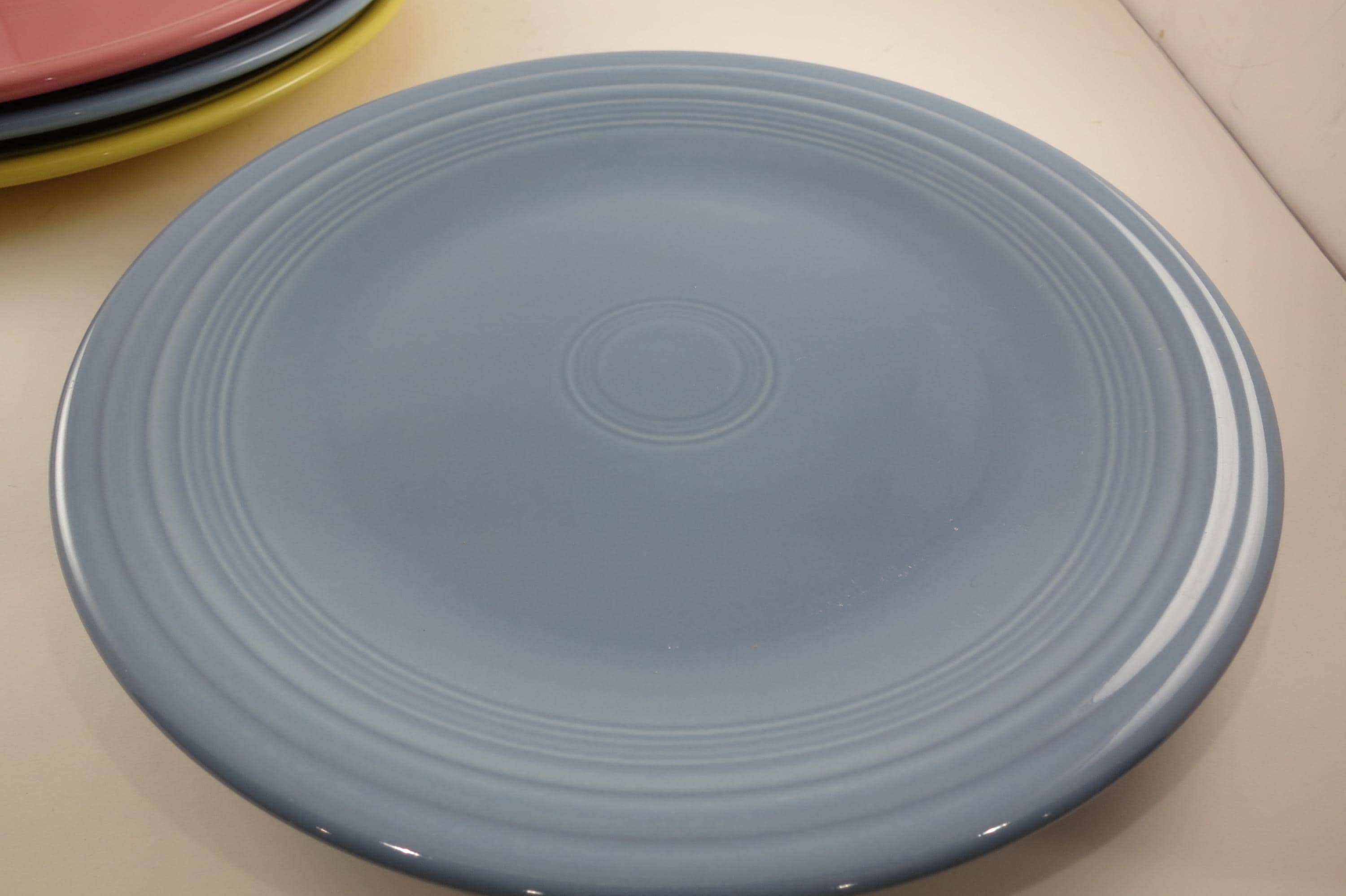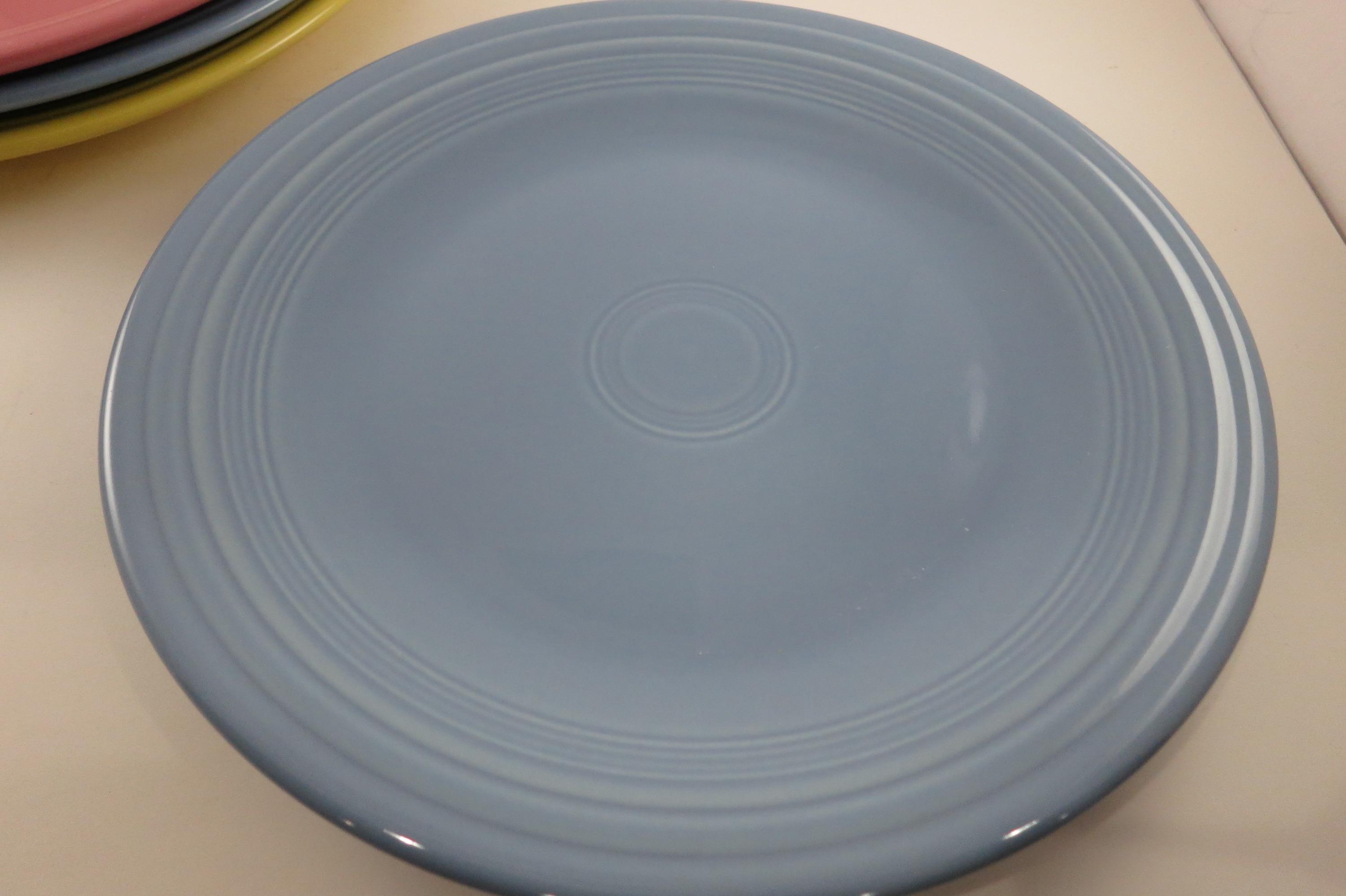Set of Four Vintage Fiesta Ware 10 1/2 Inch Dinner Plates Blue Yellow Pink.