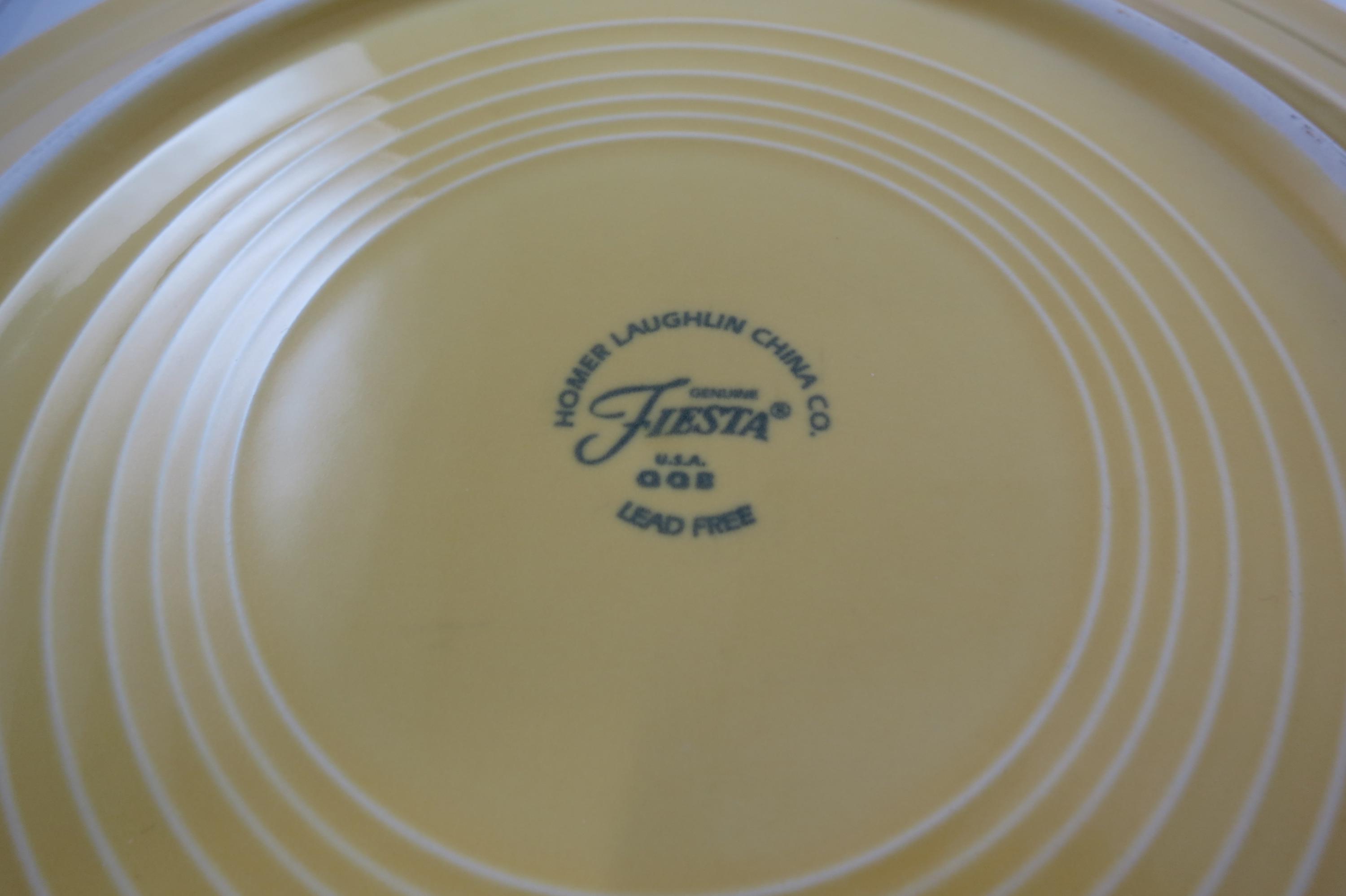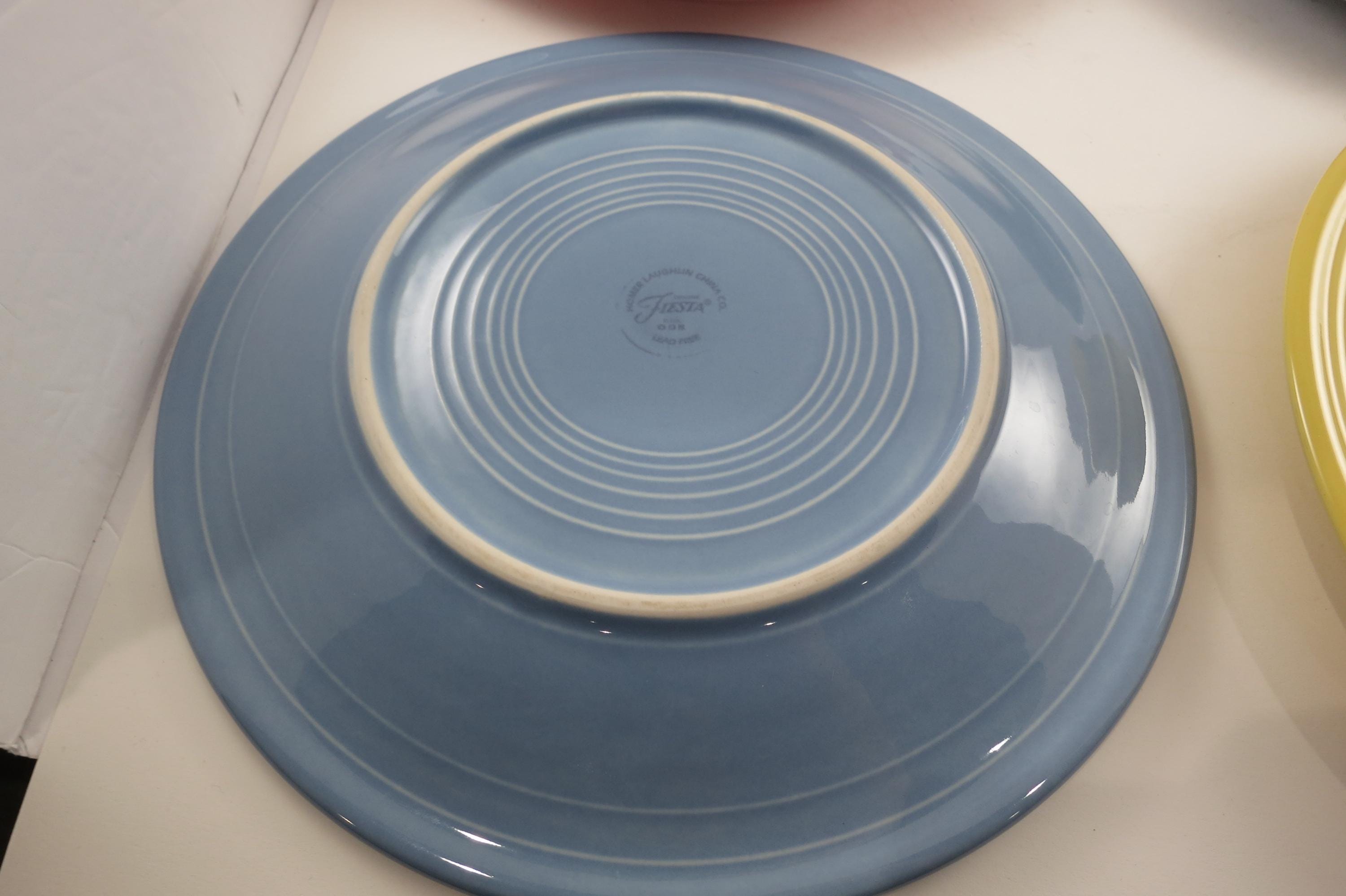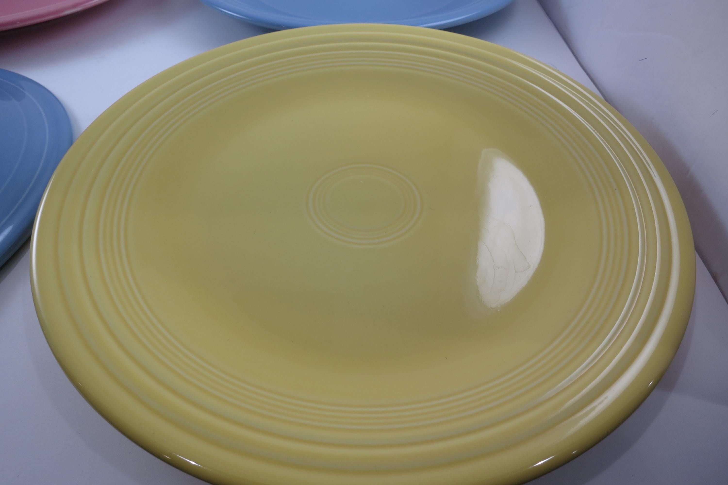 Set of Four Vintage Fiesta Ware 10 1/2 Inch Dinner Plates Blue Yellow Pink
