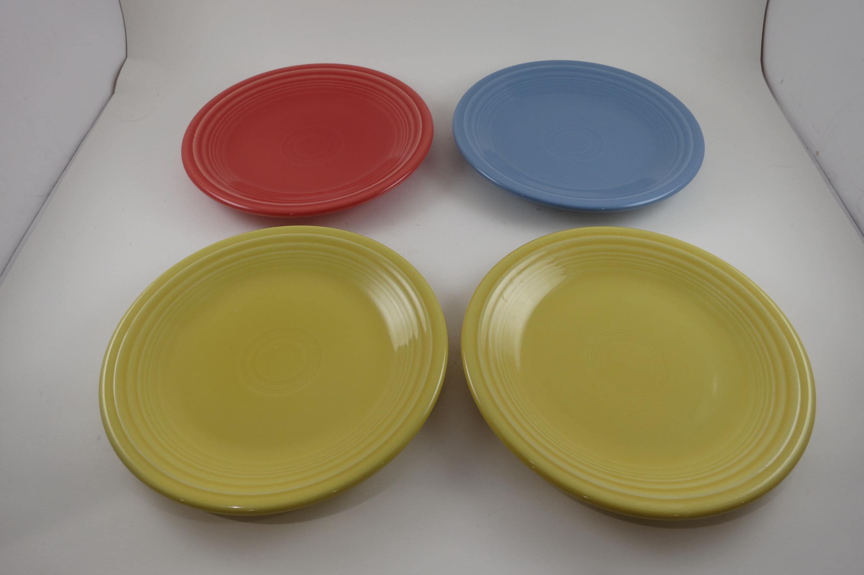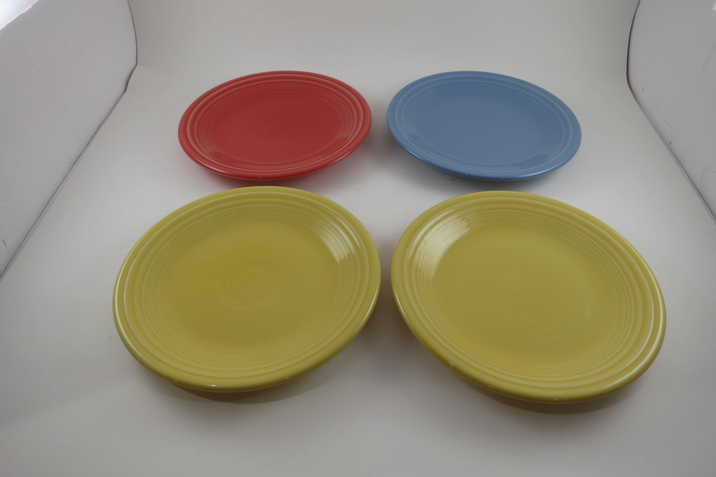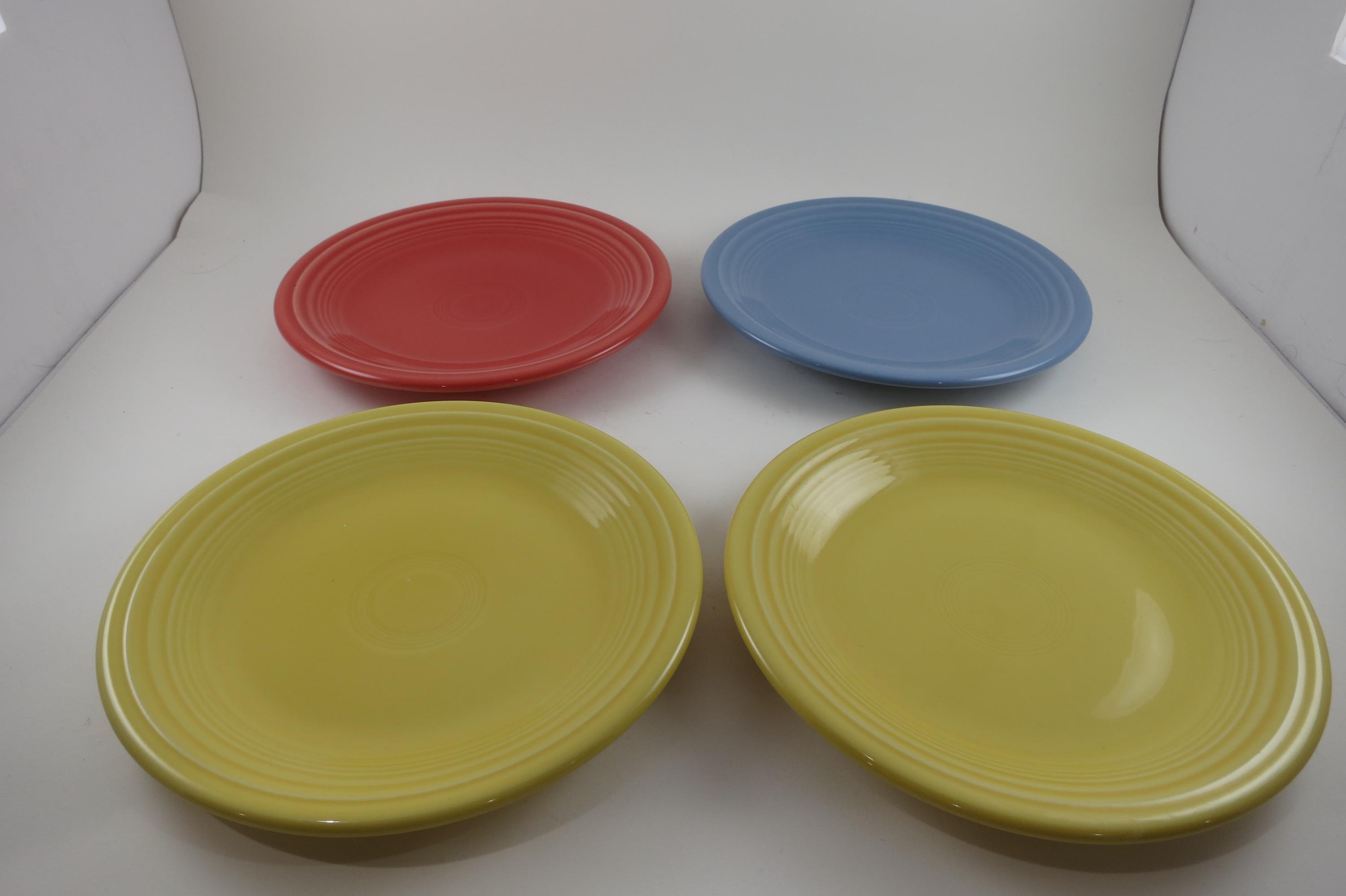 Set of Four Vintage Fiesta Ware 7 1/4 Inch Salad Plates Blue Yellow Red.
