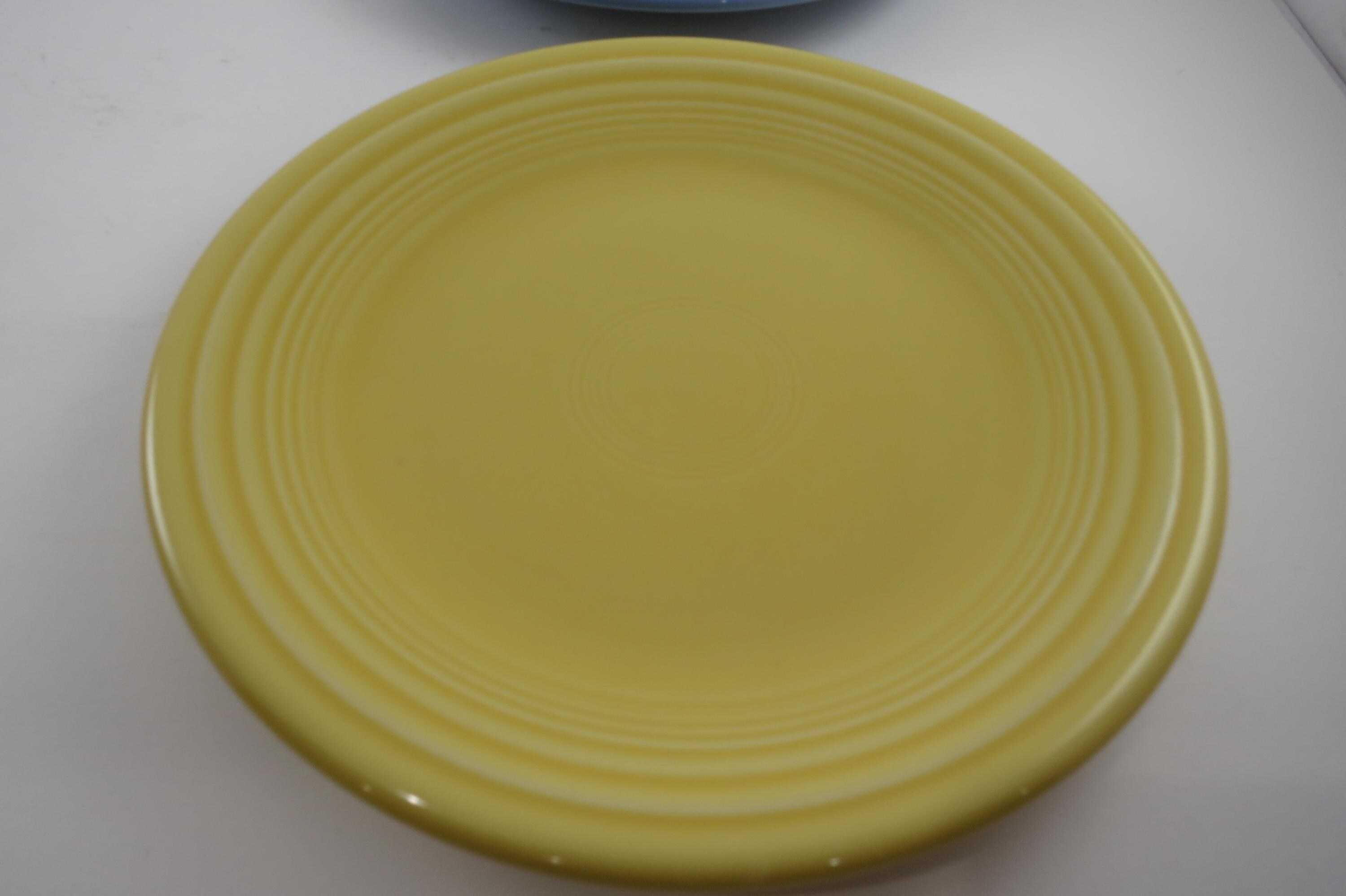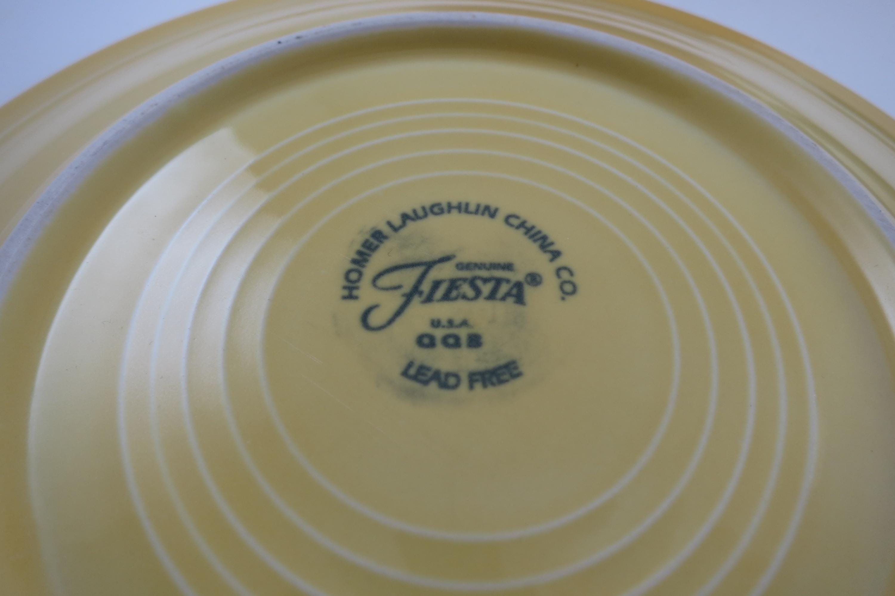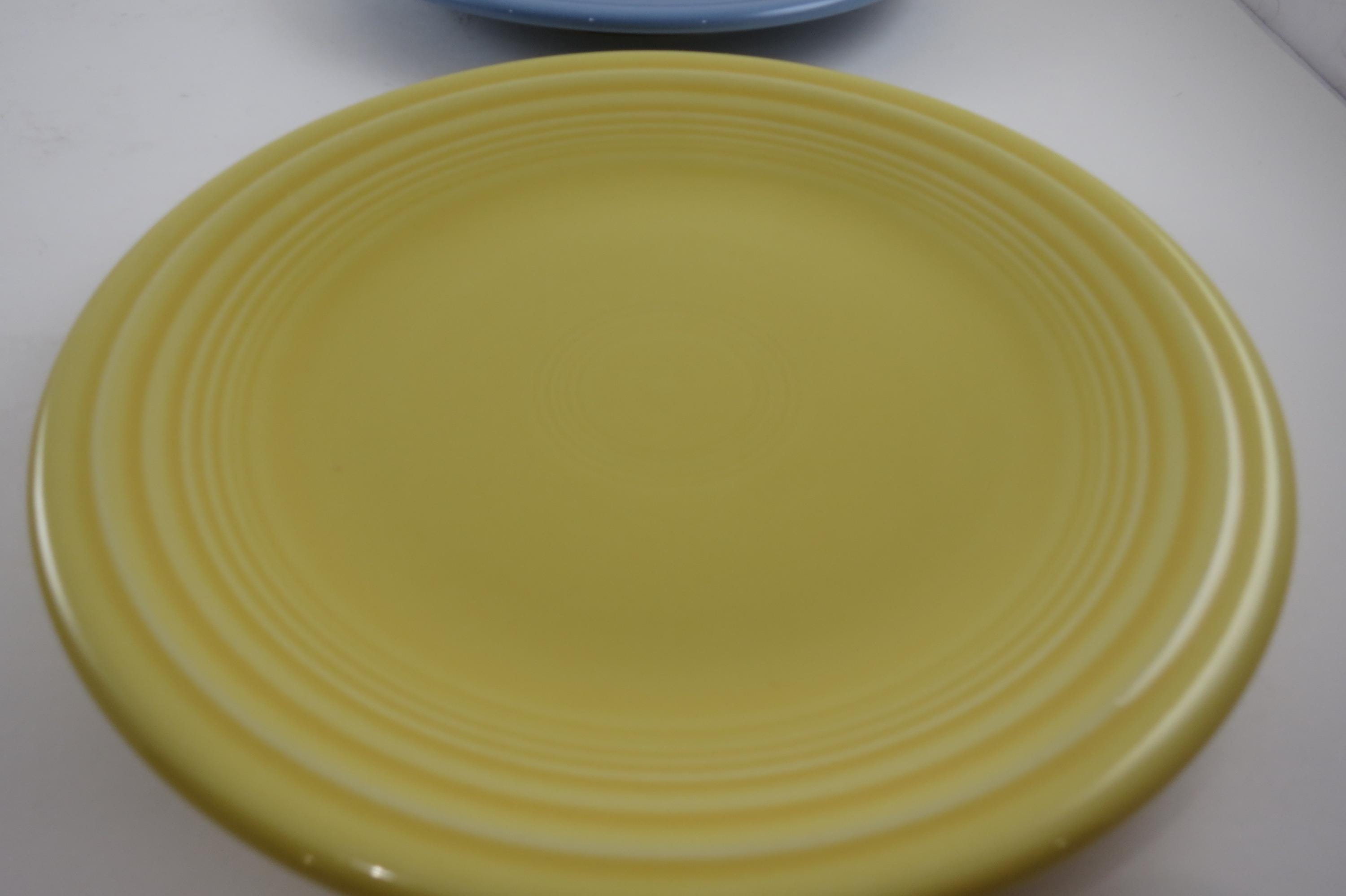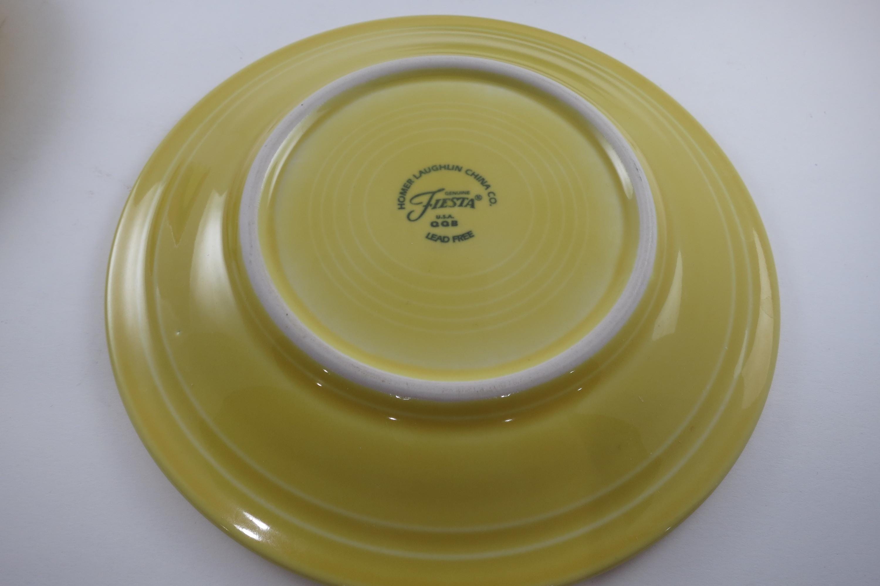 Set of Four Vintage Fiesta Ware 7 1/4 Inch Salad Plates Blue Yellow Red.
