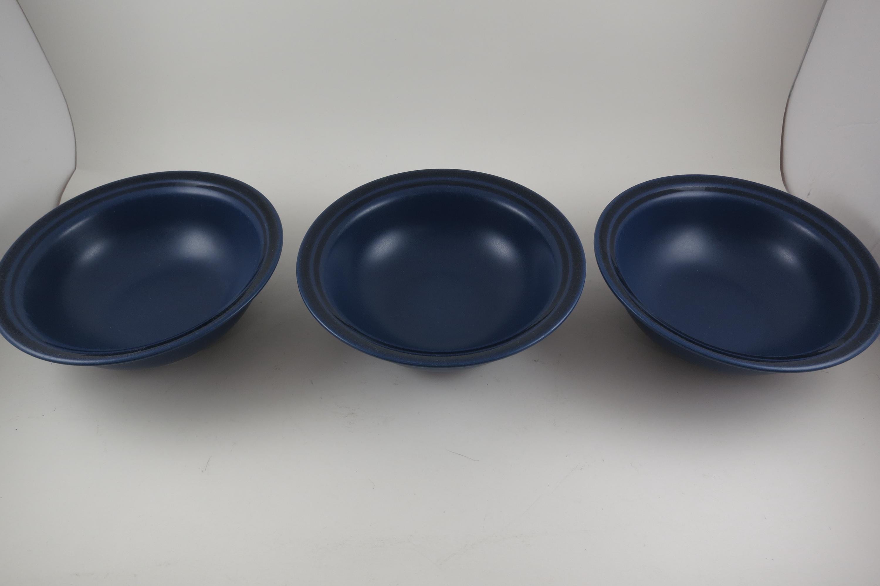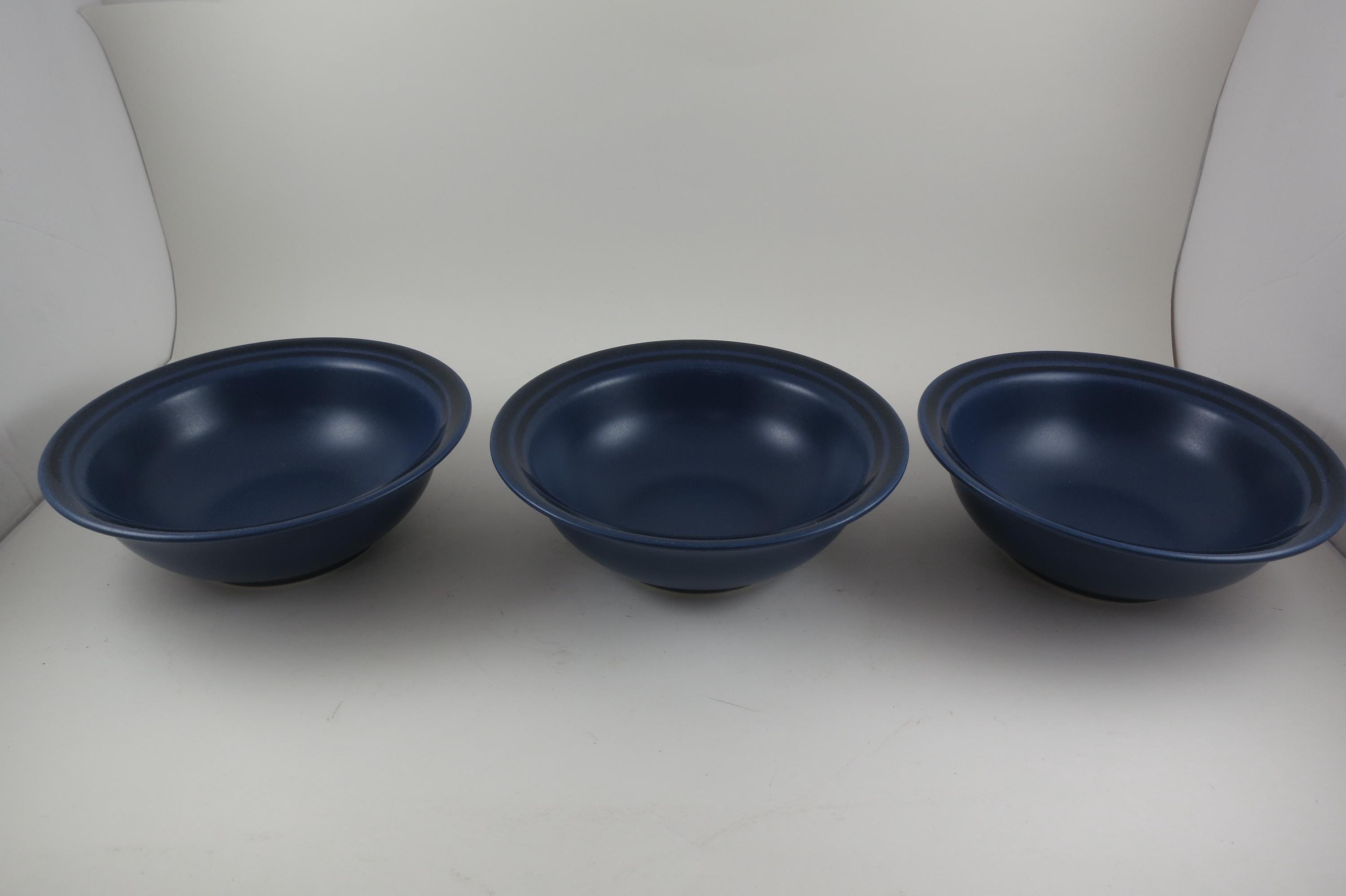 Vintage Pfaltzgraff Blue with Black Trim Set of 3 6 1/2 Inch Soup Bowls.