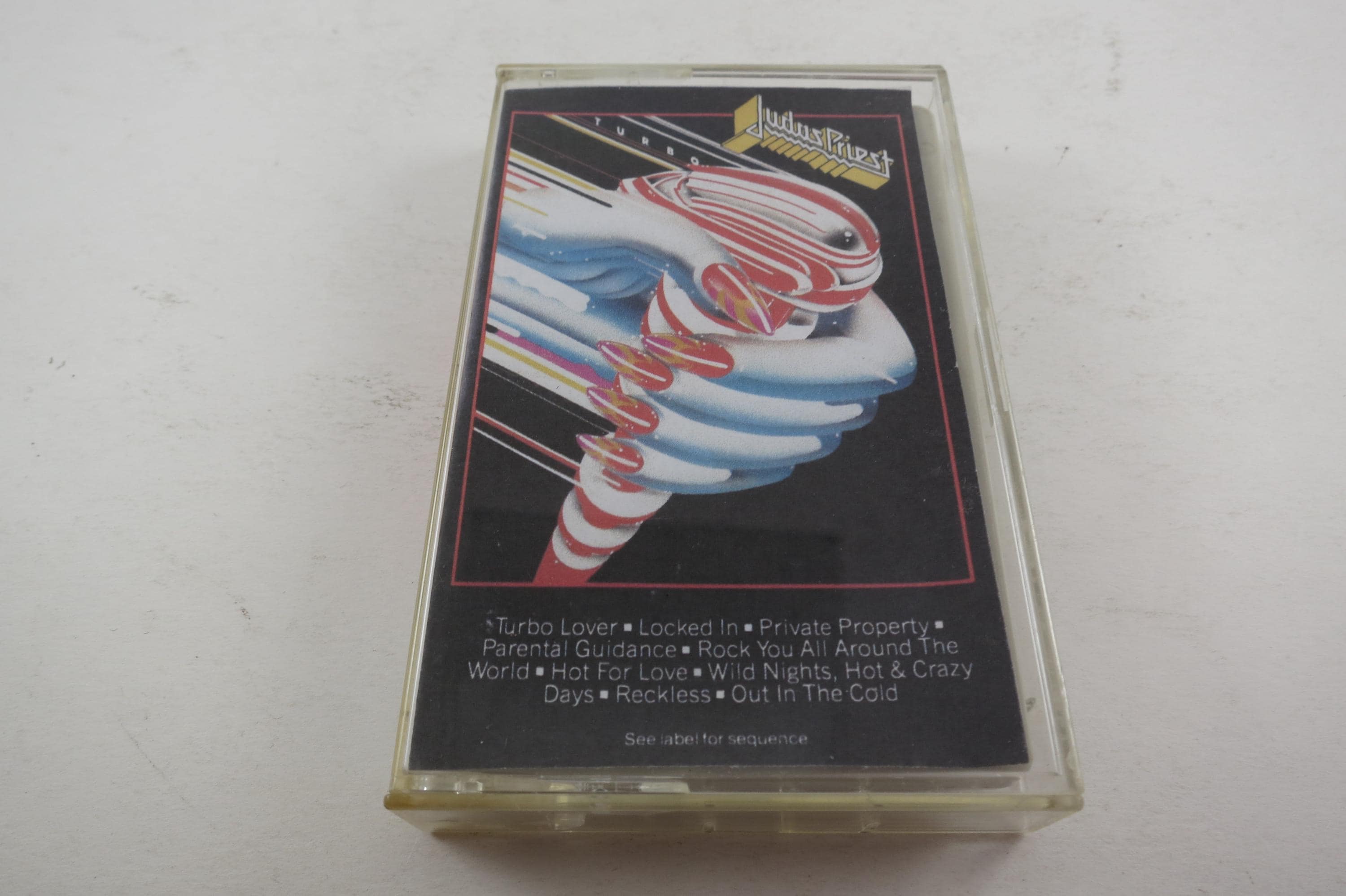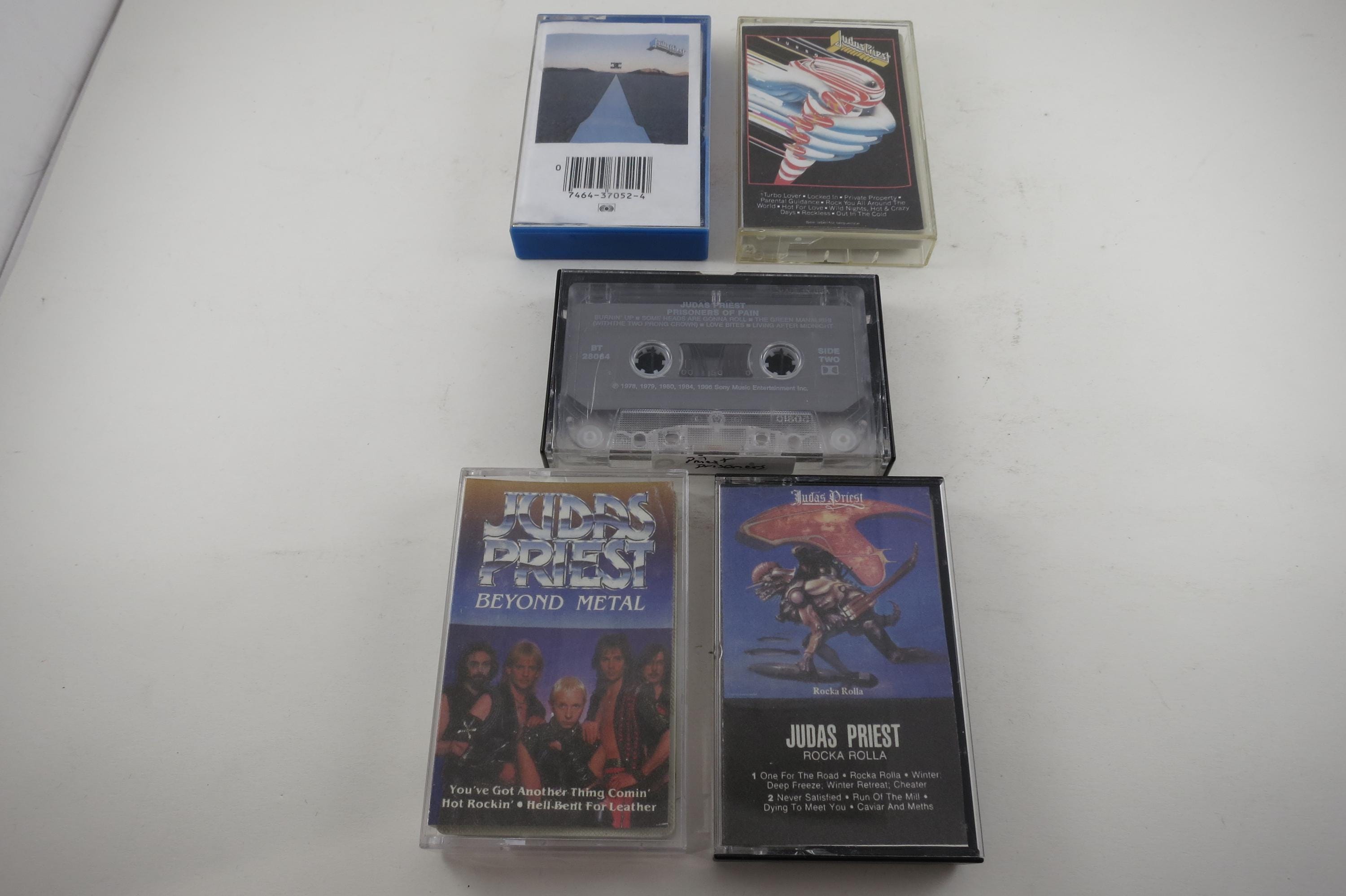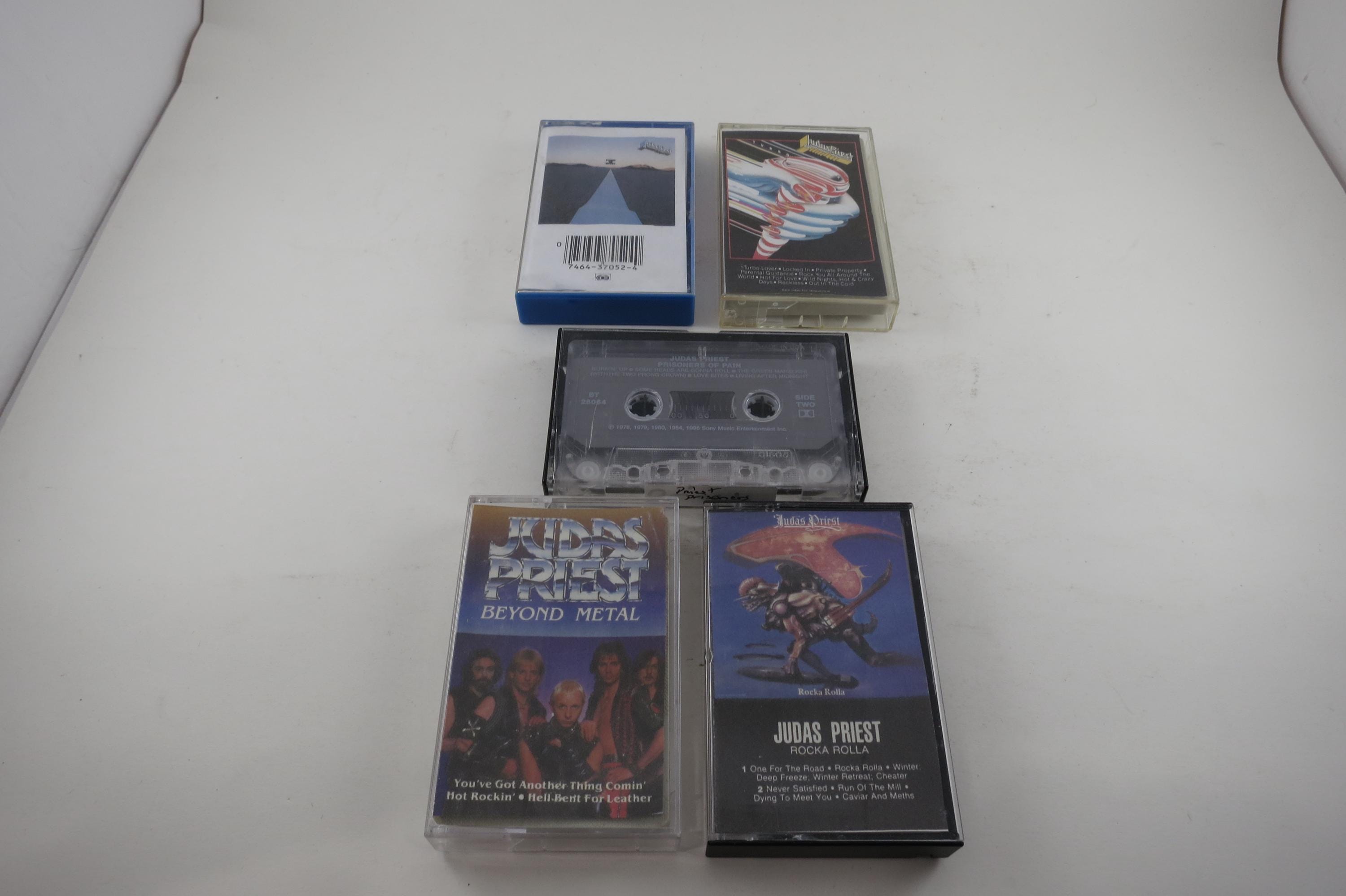 Five Judas Priest Cassette Tapes with Non OEM J Cards Turbo Point Entry Prisoners Beyond Metal Rocka Rolla.