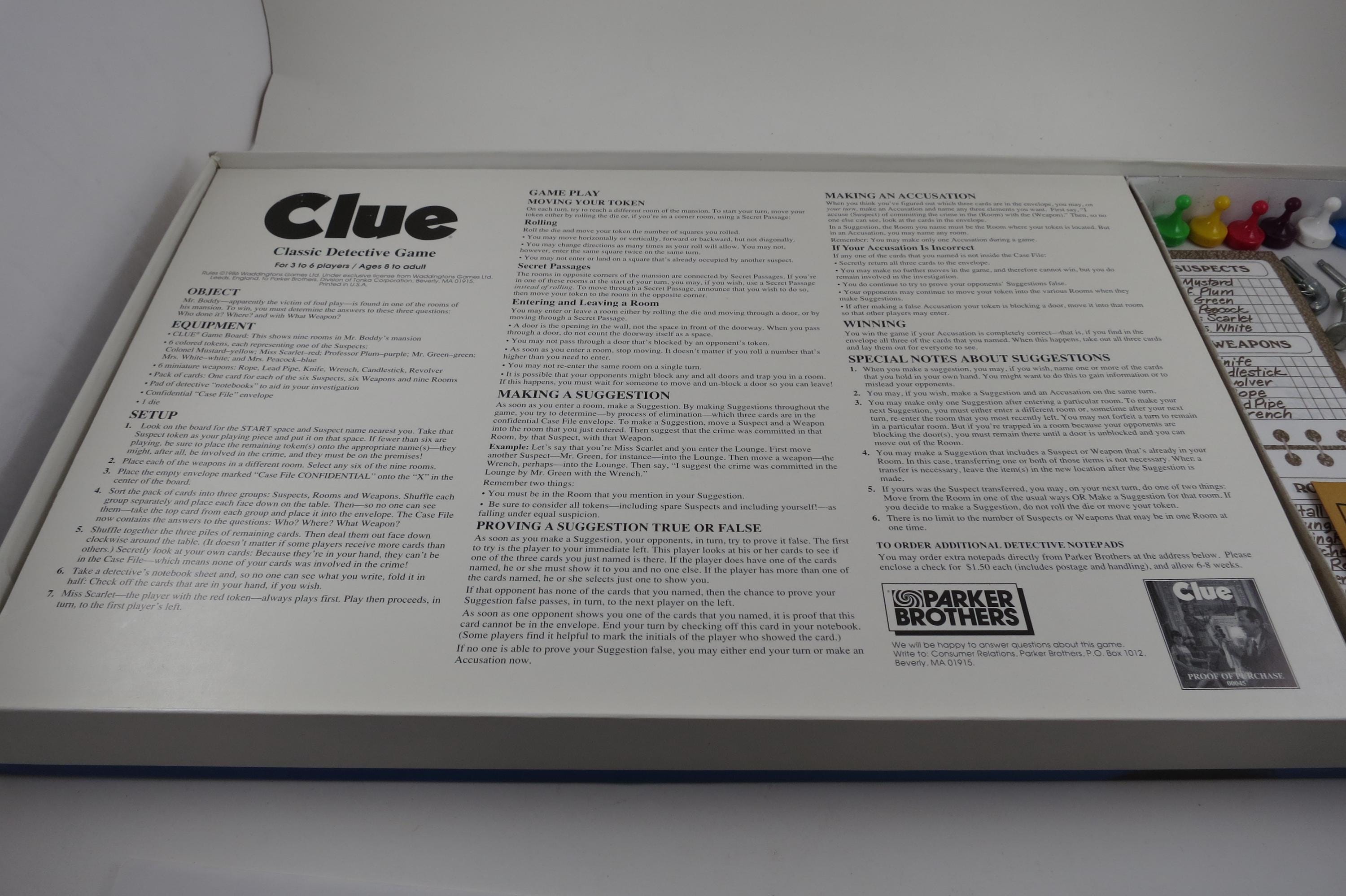 Vintage 1992 Clue Board Game: Parker Brothers Classic Detective Game