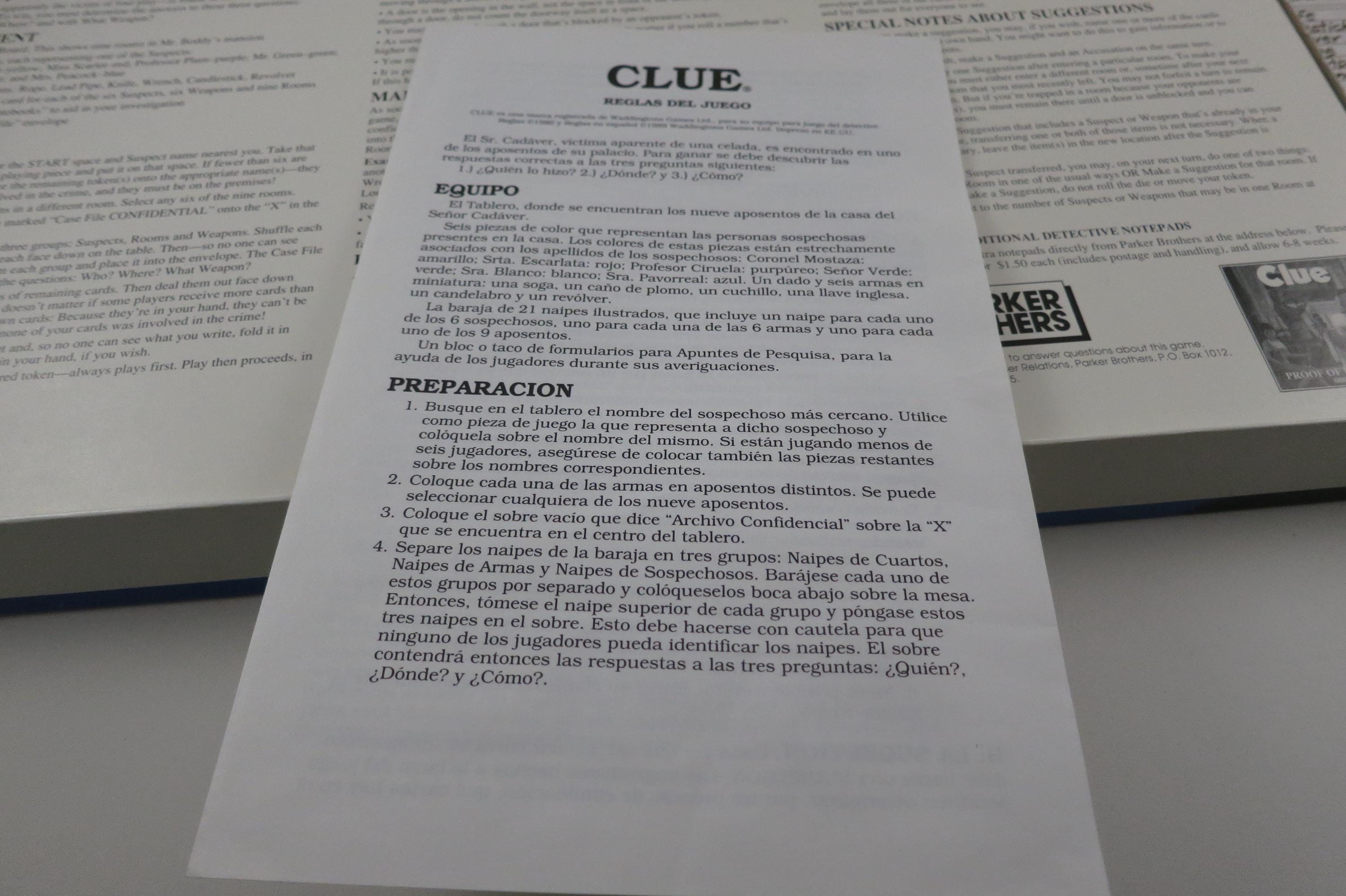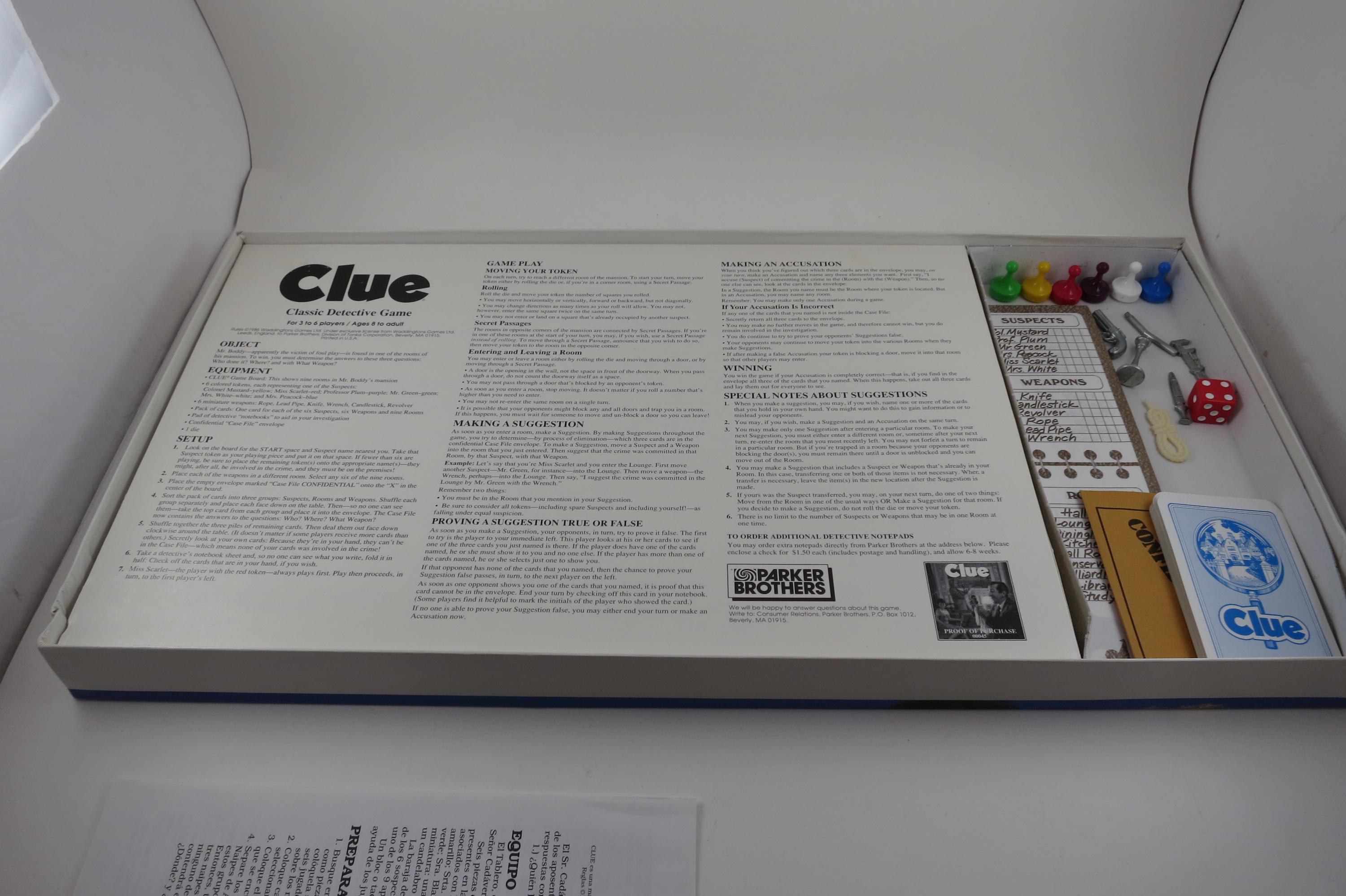 1992 Paker Brothers Board Game No 45 Clue Classic Detective Game 100% Complete Excellent Condition. Great Game! Box has two taped corners.