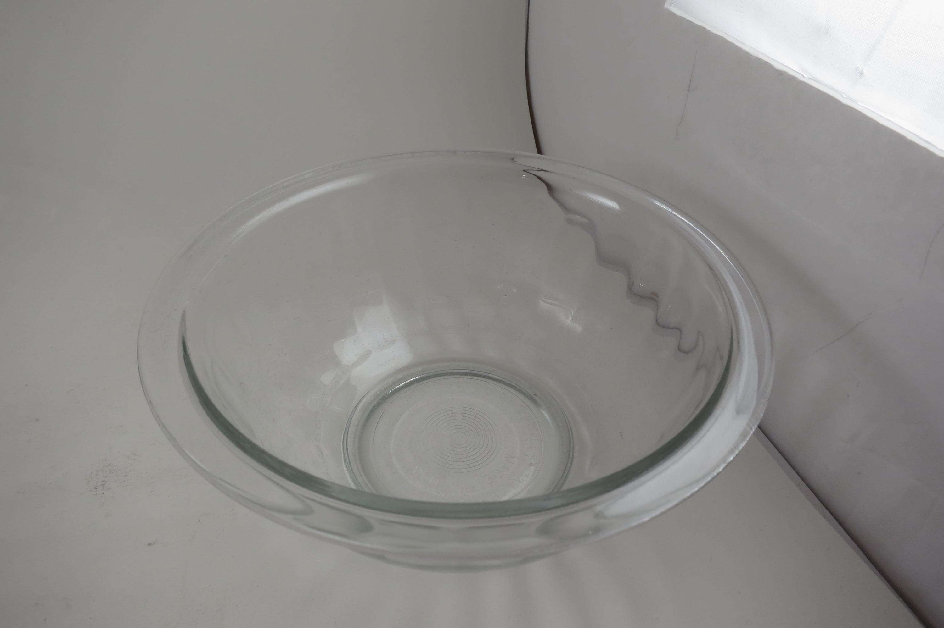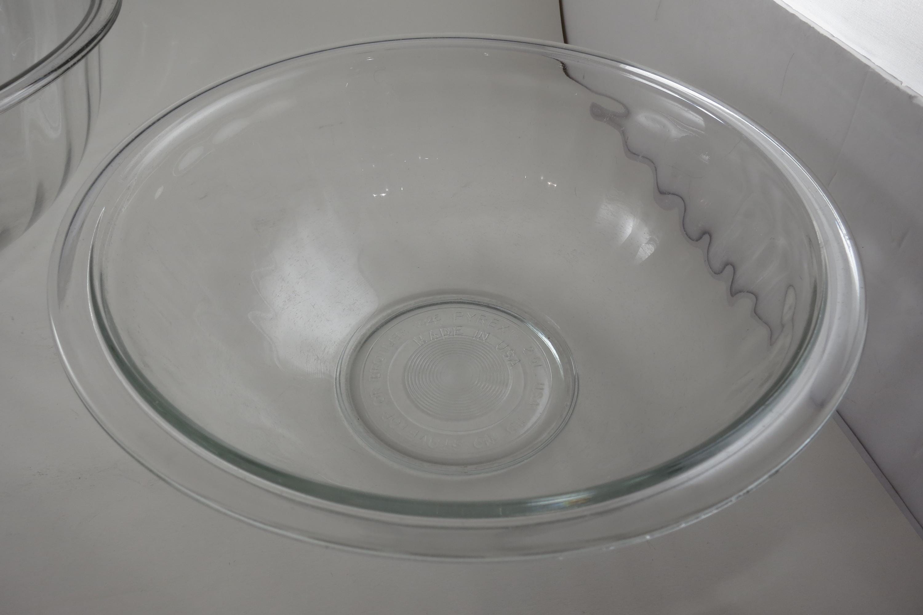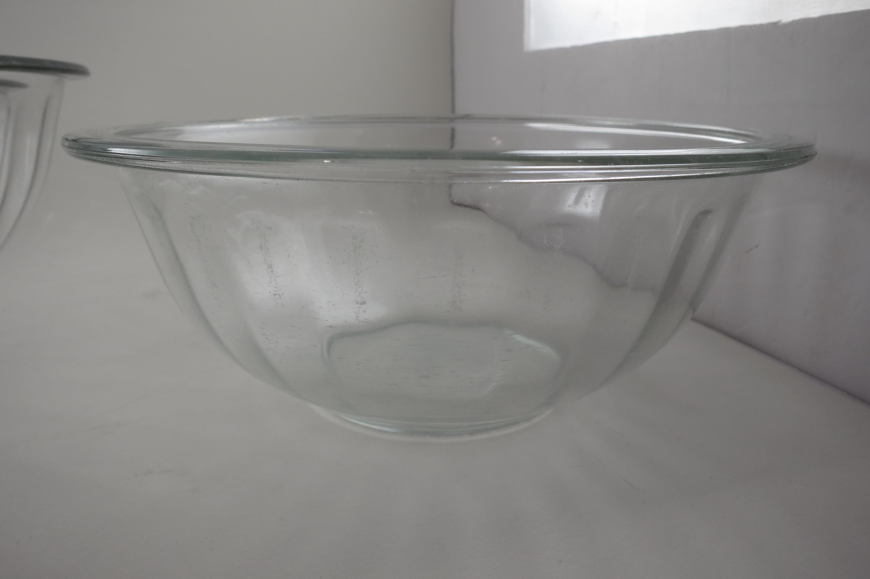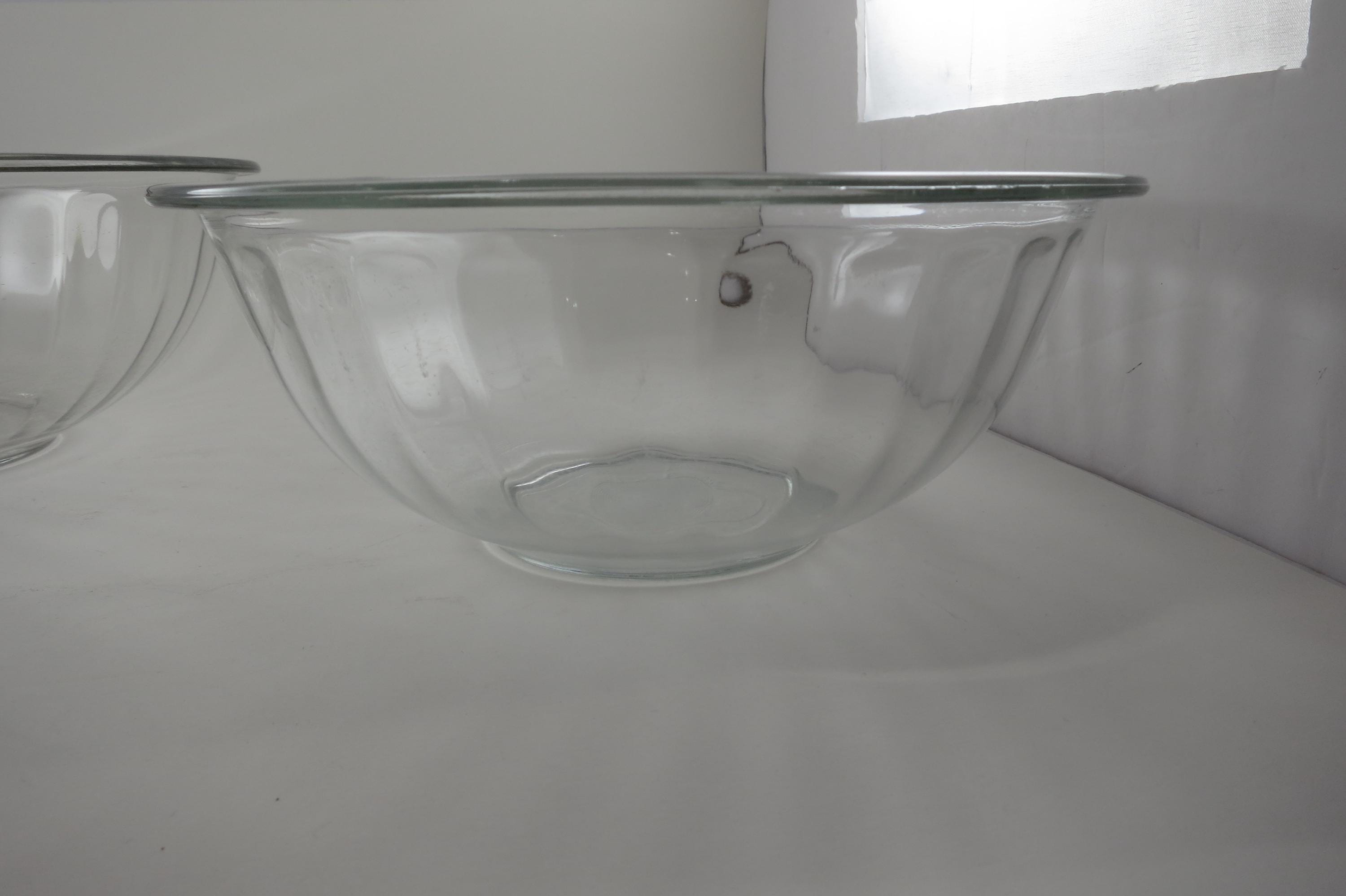 Vintage Pyrex Nesting Bowl Set: 4 Piece 322 323 325 326 Clear. Very Good and Excellent Original Condition Please Read Description. One each of 322 1 Liter, 323 1.5 Liter and 325 2.5 Liter and 326 4.0 Liter. These have been used and show wear. The 322 and 326 are in excellent condition. The 323 and 325 are more worn, but No chips, cracks or damages on any of them.