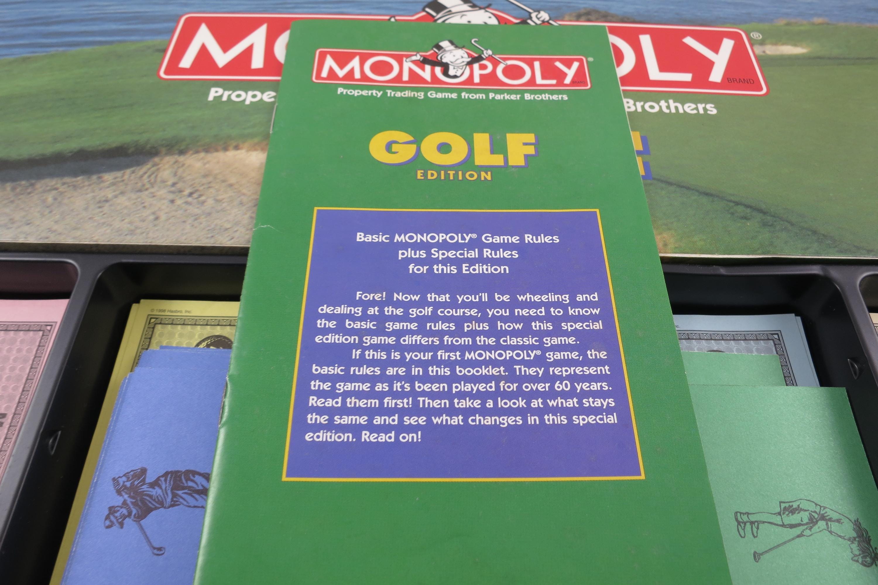 Vintage 1998 Board Game Monopoly Golf Edition 100% Complete Excellent Condition. Ready to play! Box shows light use wear.