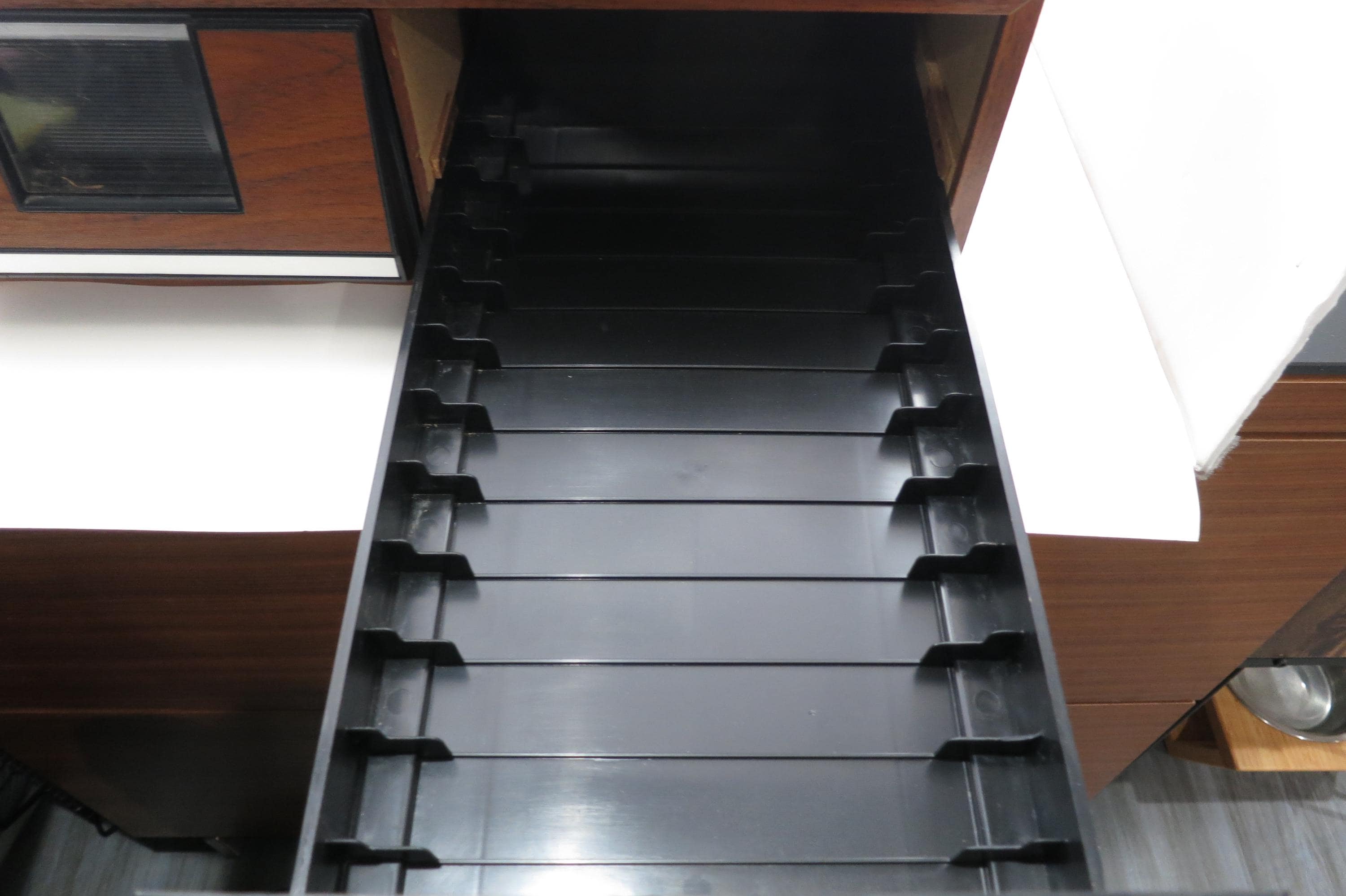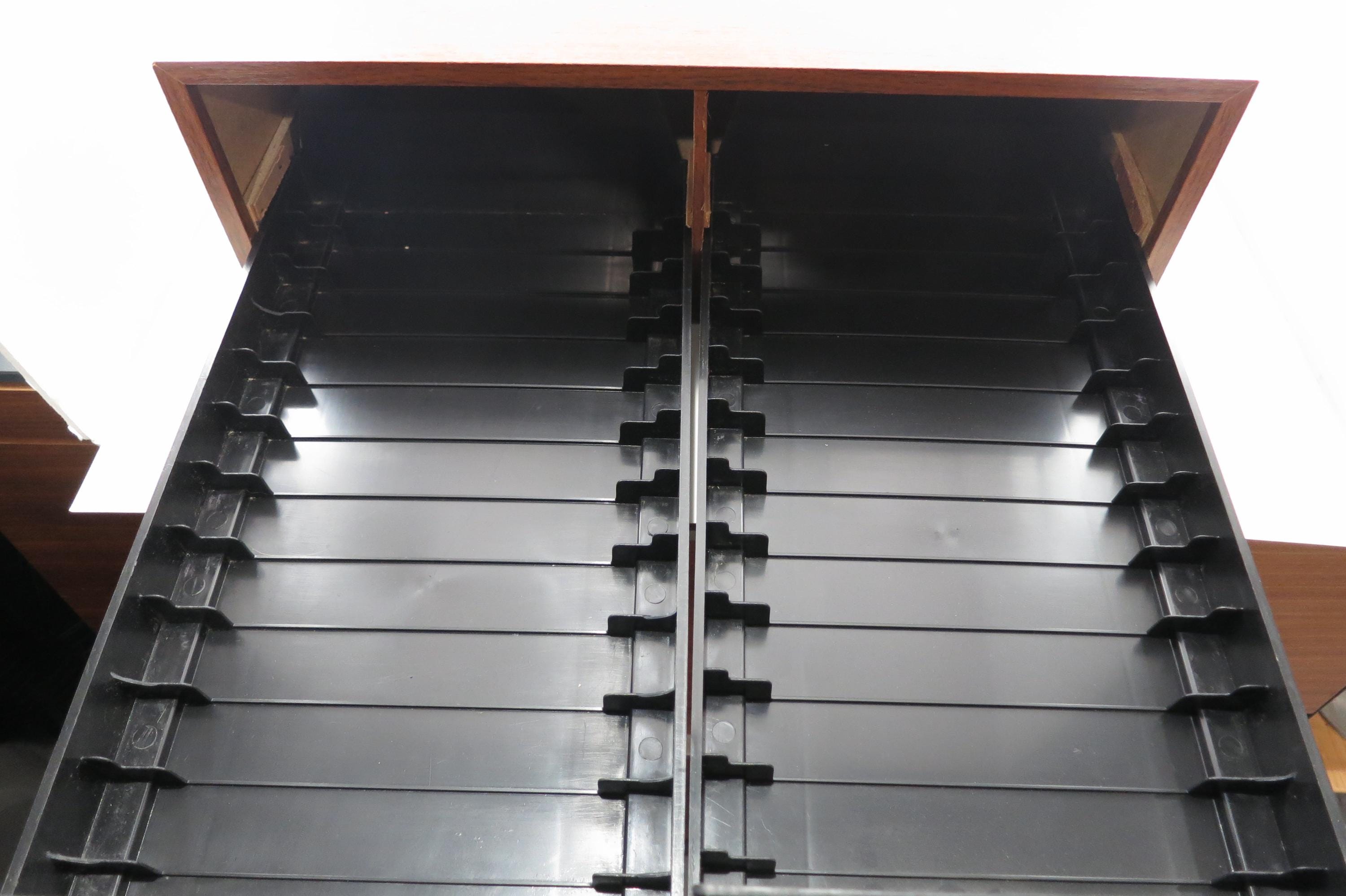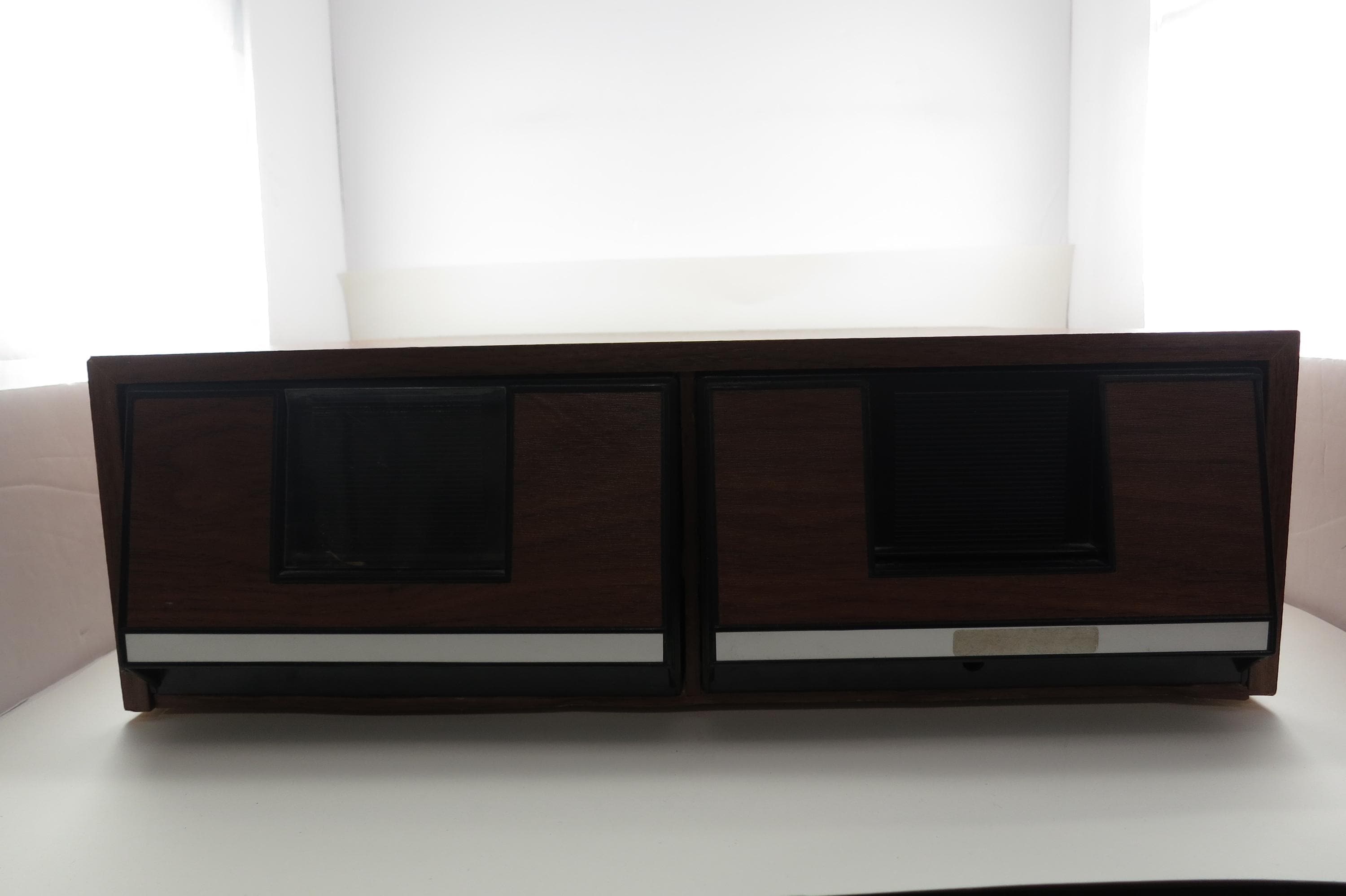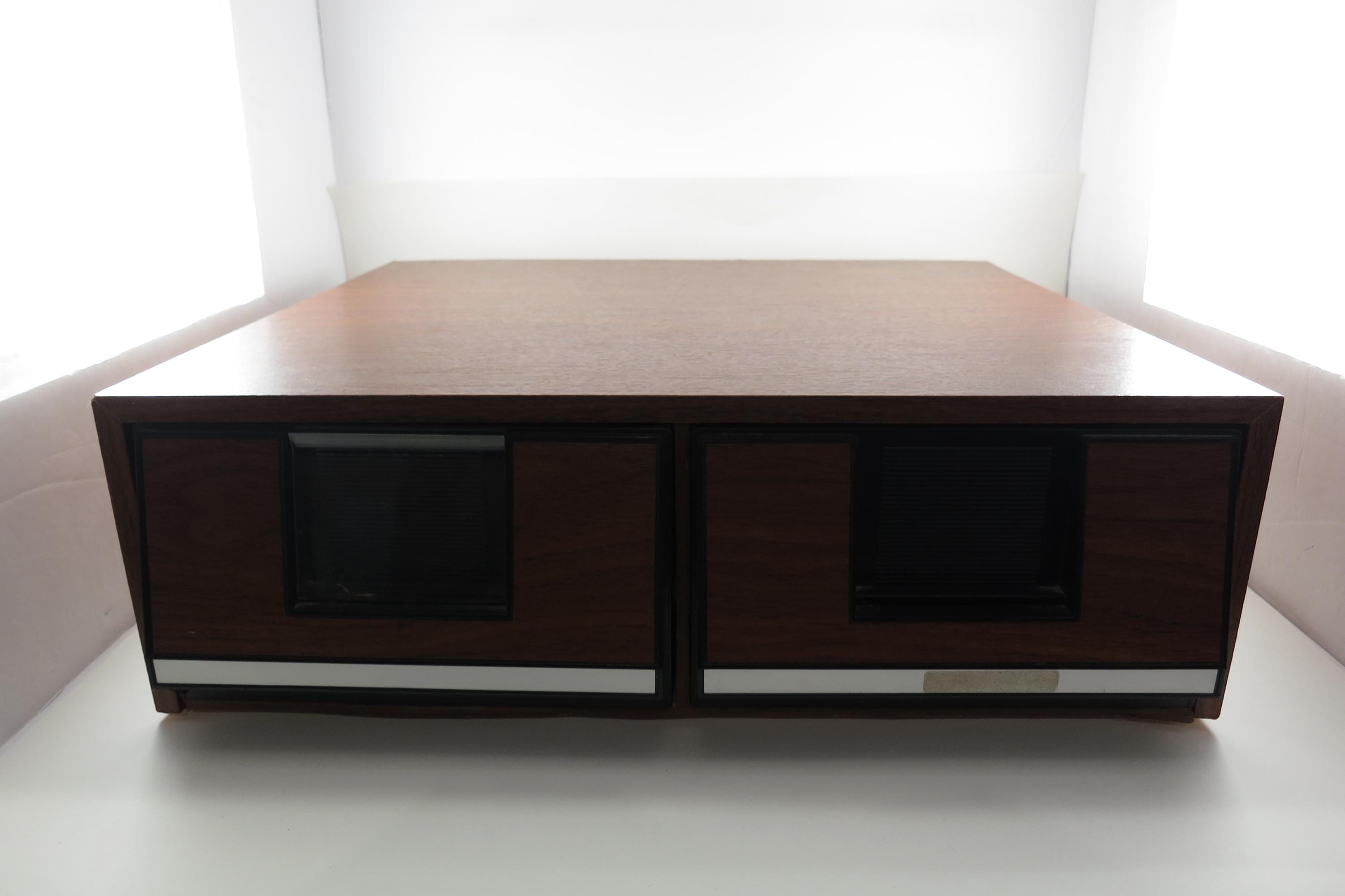 1980's Faux Wood VHS 2 Drawer Storage Cabinet Holds 24 Tapes Industries Excellent Condition. Looks good and still works perfect.
