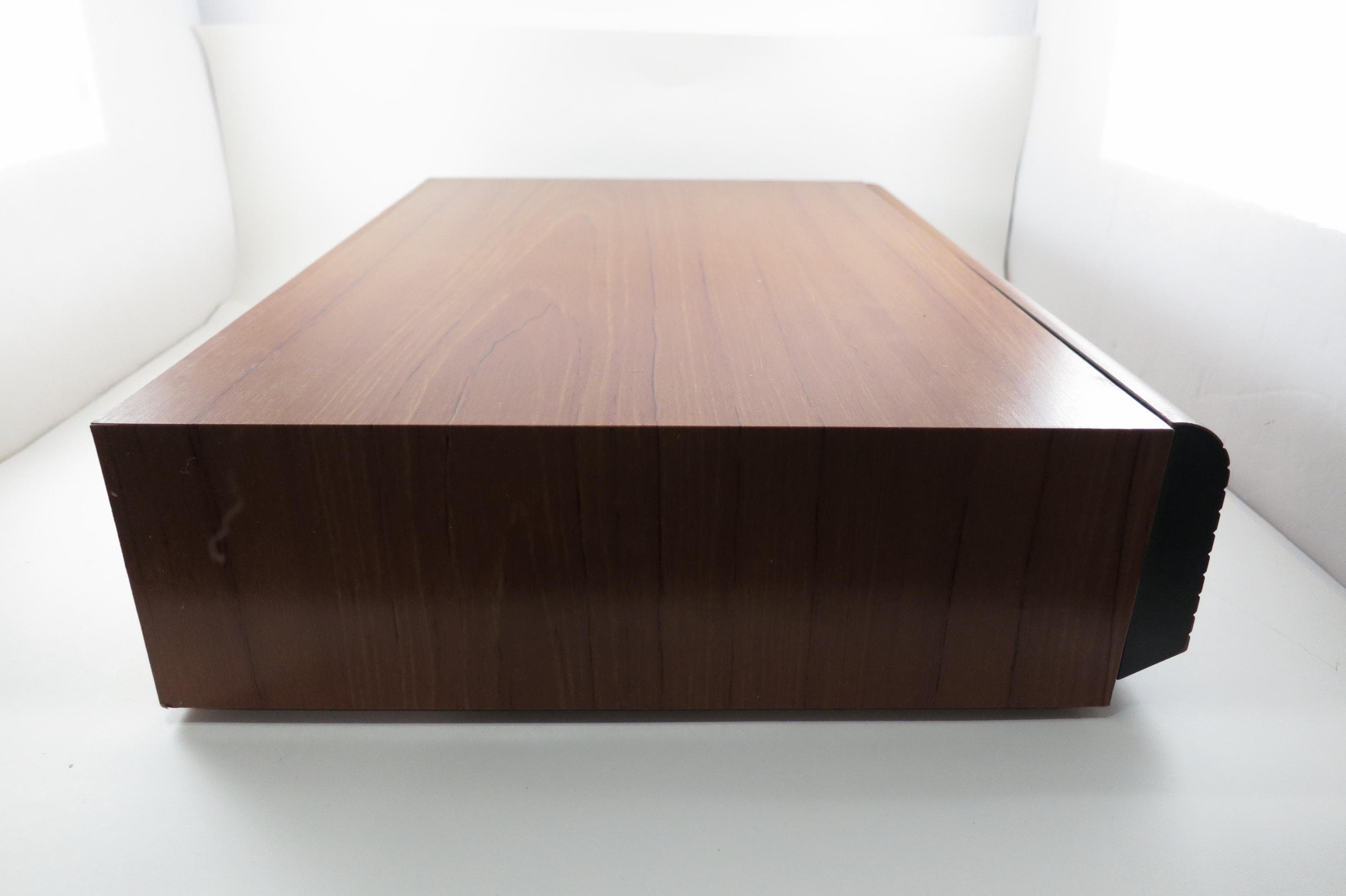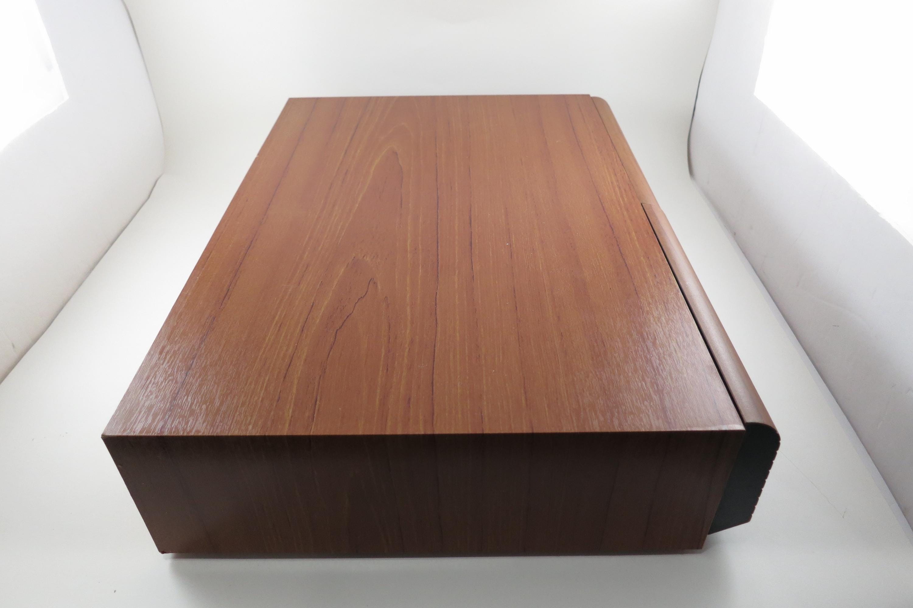 Vintage 1980s Faux Wood Cassette Tape Holder: Storage for 40 Cassette Tapes Excellent Condition Home Storage. Has two pull out trays that each hold 20 Cassettes for a total of 40. This is the hard variety that is for home cassette storage. Measures 16 1/2 inches wide, 12 inches deep and 3 3/4 inches tall. We have 2 Available.