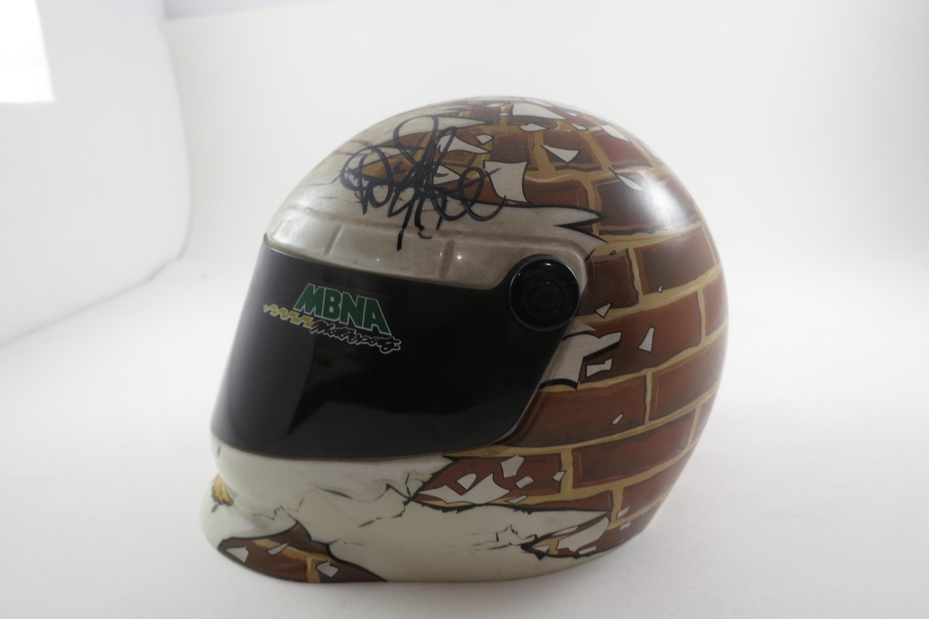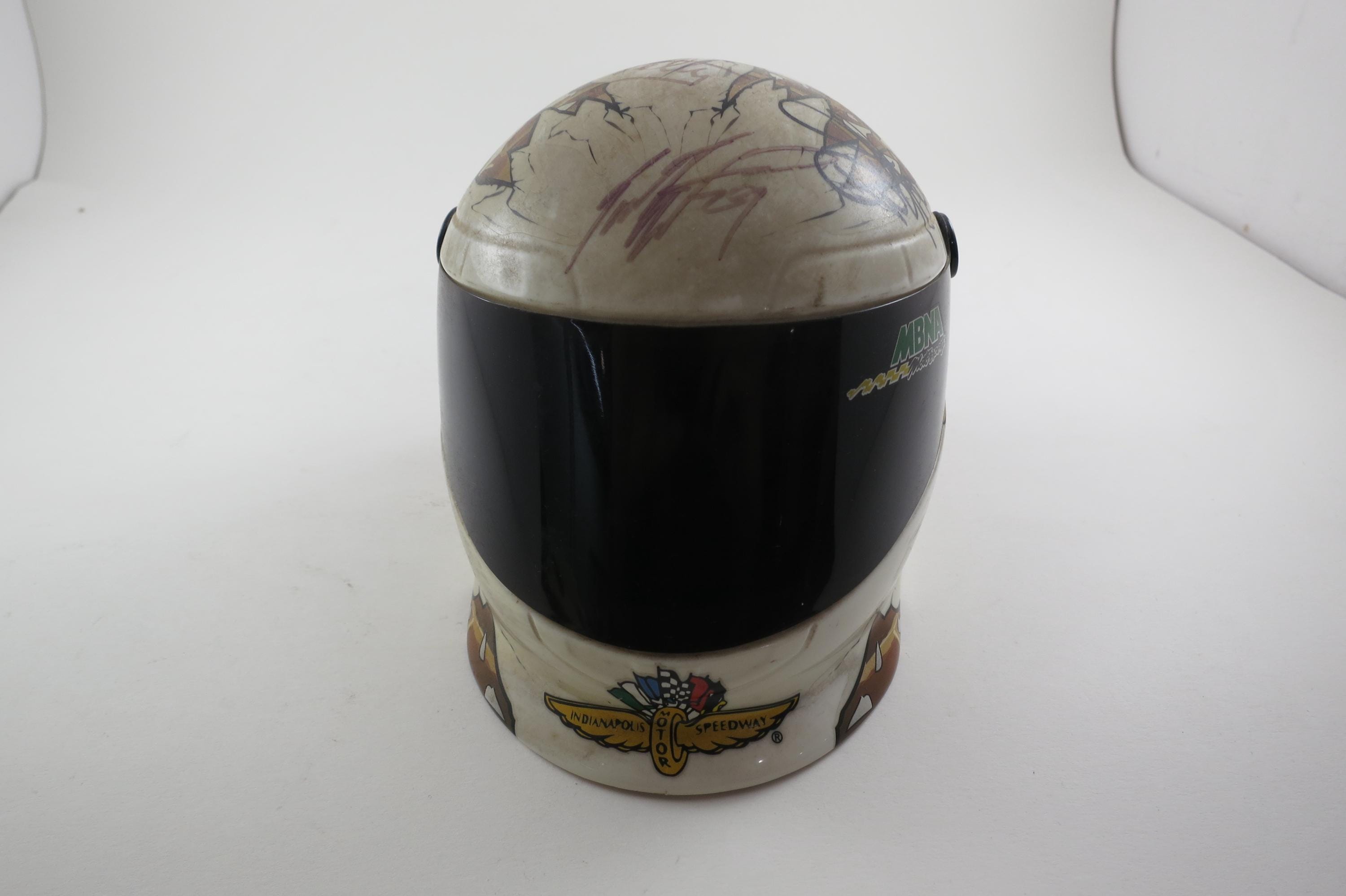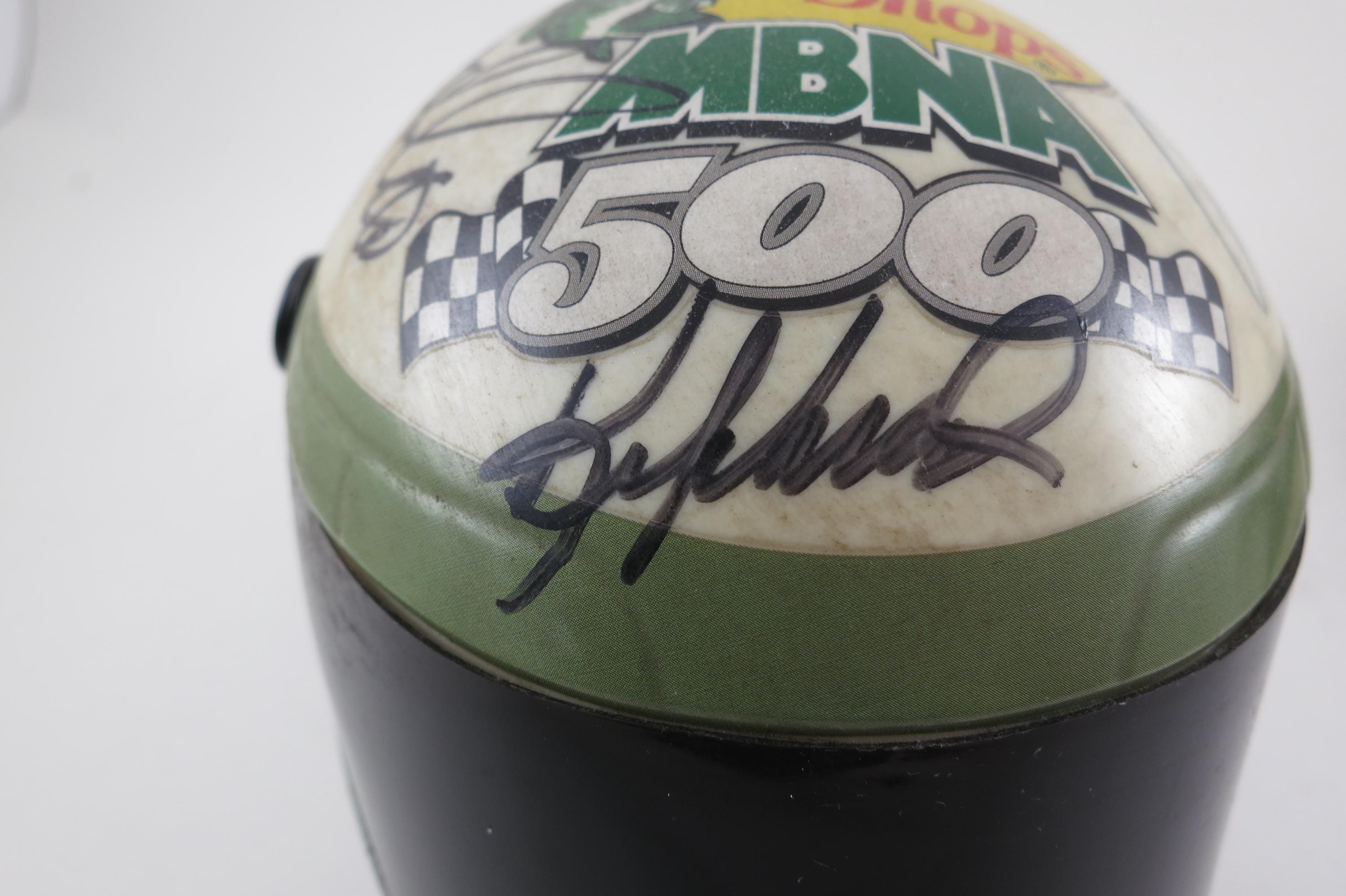 The second helmet is an Indianapolis Motor Speedway/Brickyard and it contains the signatures of Richard Petty, Jamie McMurray, Dale Earnhardt Jr, Jimmie Johnson and Jeff Burton.