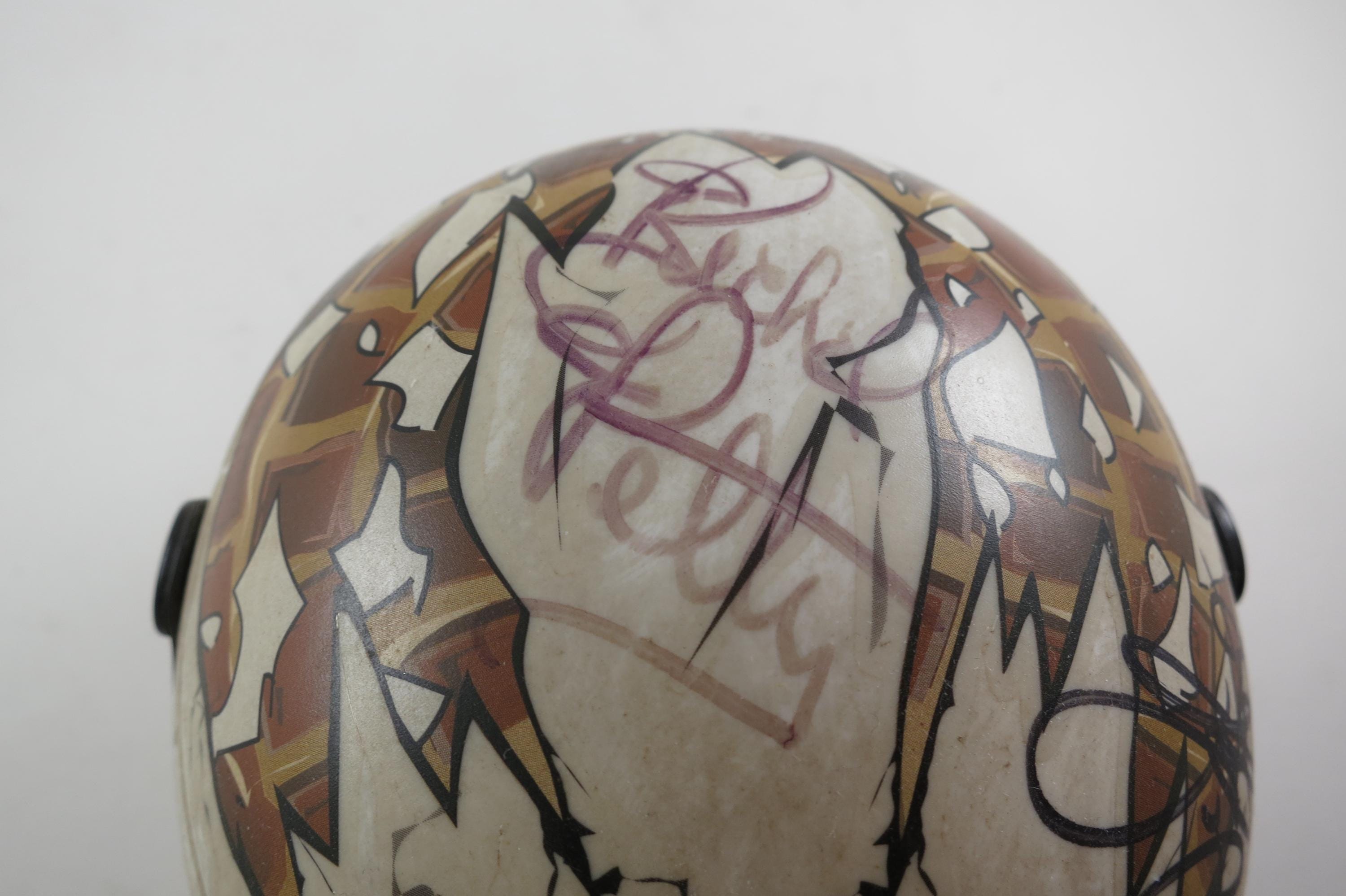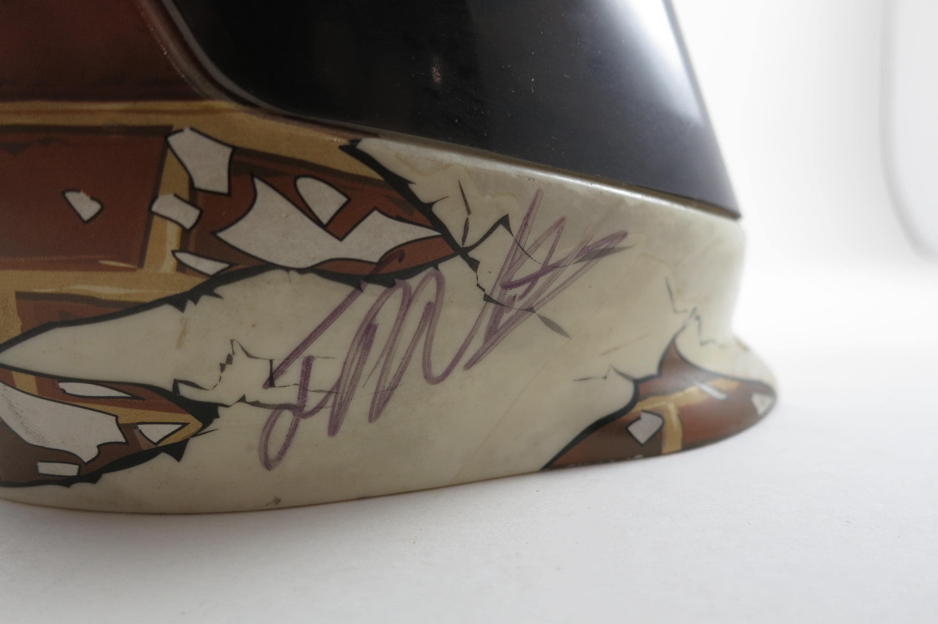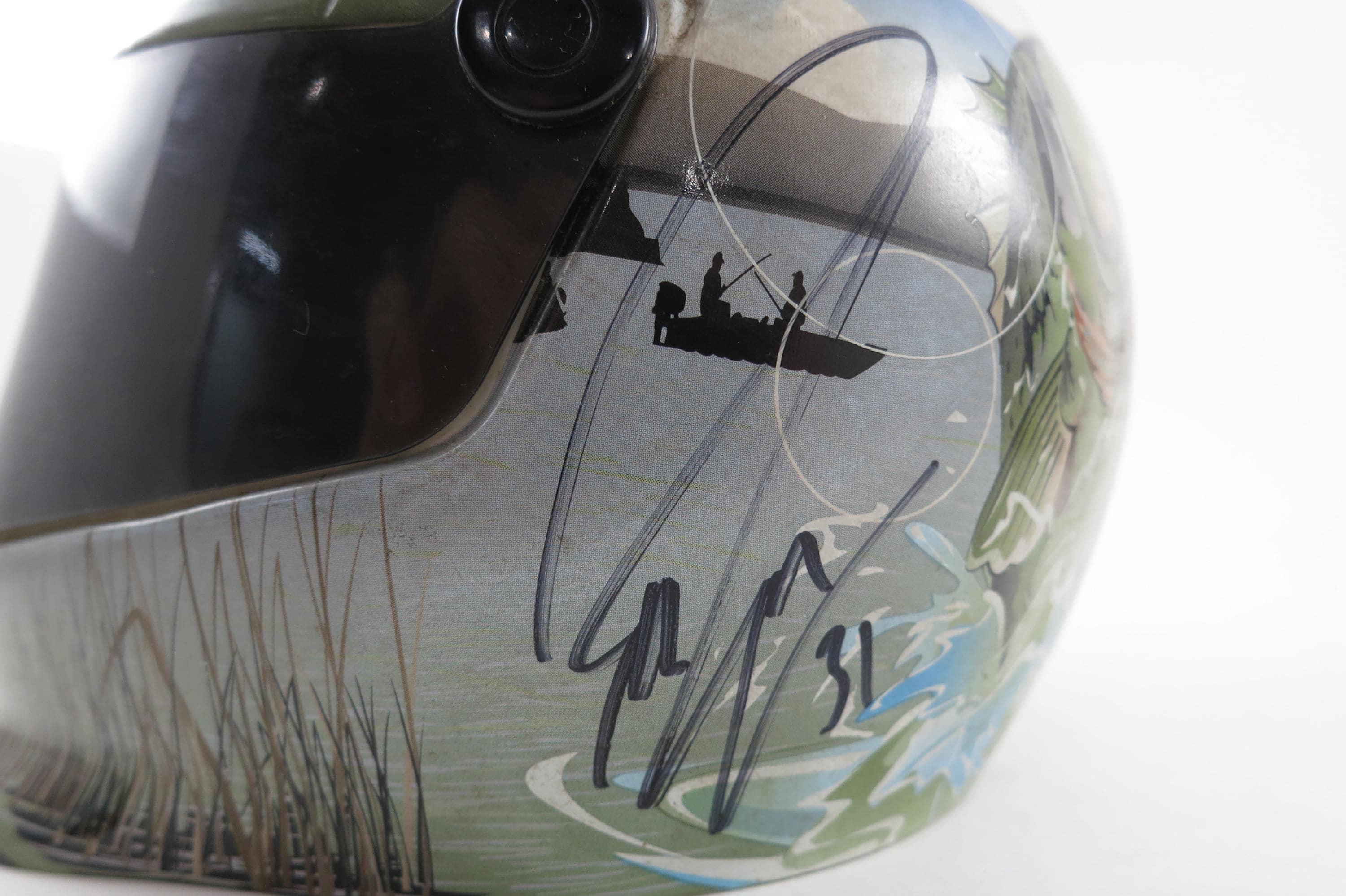 The second helmet is an Indianapolis Motor Speedway/Brickyard and it contains the signatures of Richard Petty, Jamie McMurray, Dale Earnhardt Jr, Jimmie Johnson and Jeff Burton.