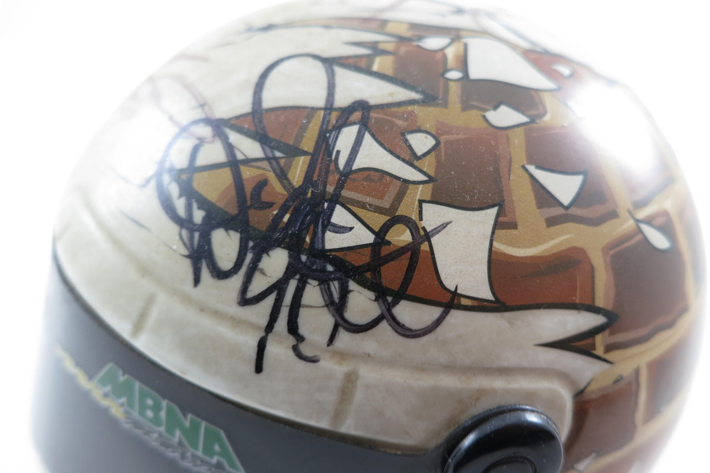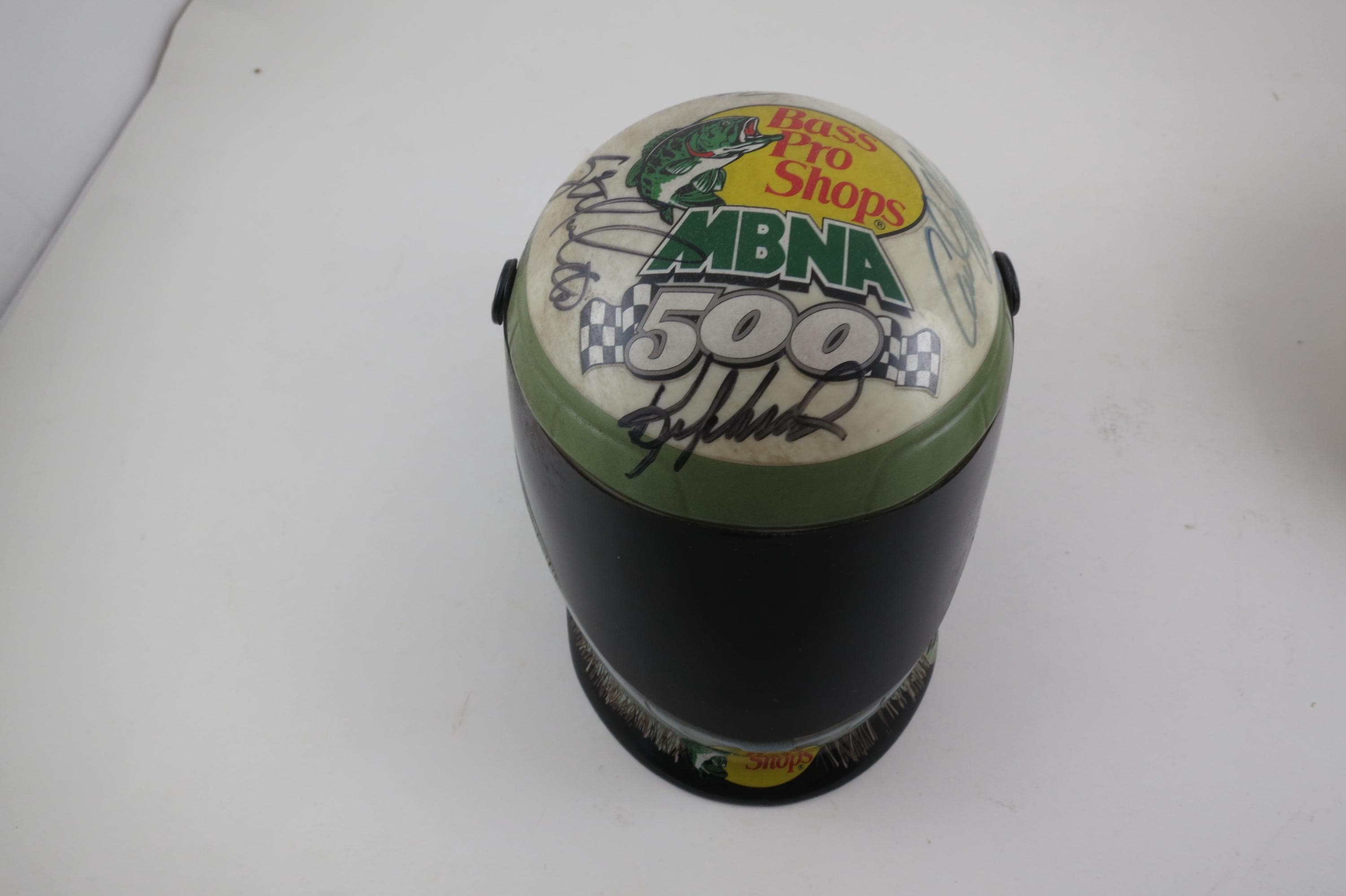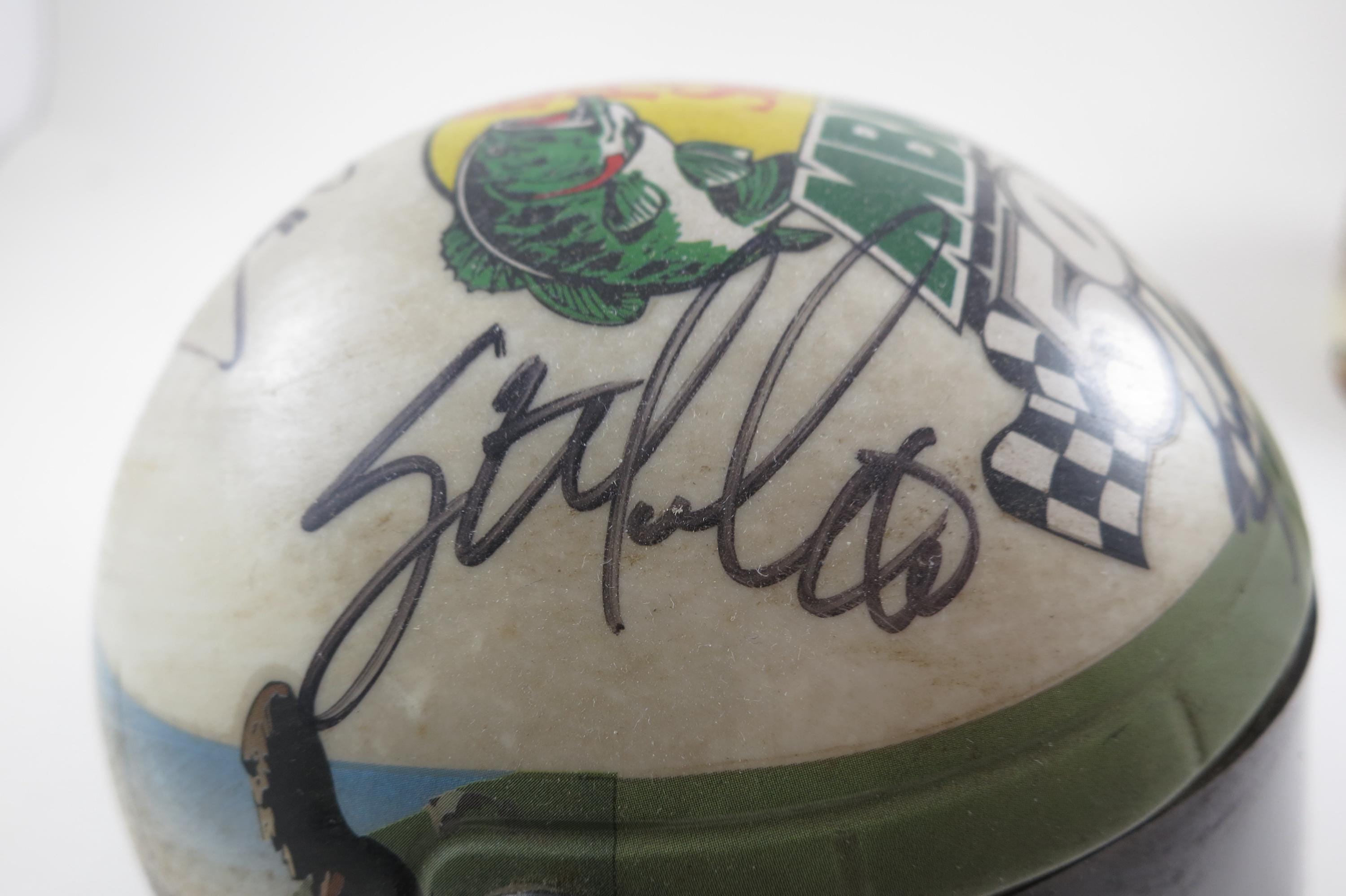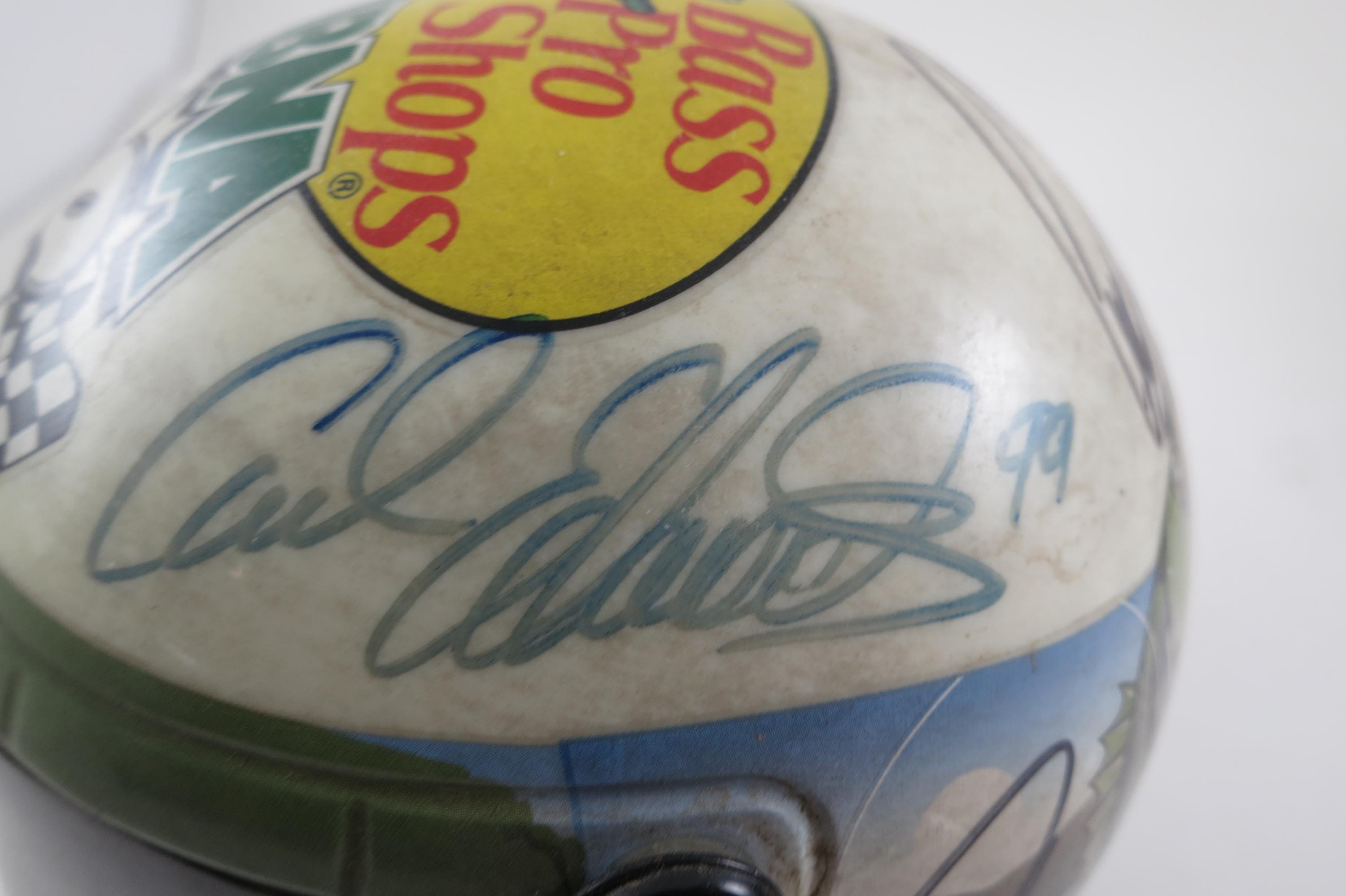 We guarantee all 10 Signatures to be Authentic for life. These were personally obtained. One helmet is a Bass Pro Shops MBNA 500, and it contains the signatures of Kyle Busch, Greg Biffle, Carl Edwards, Robby Gordon and Sterling Marlin.