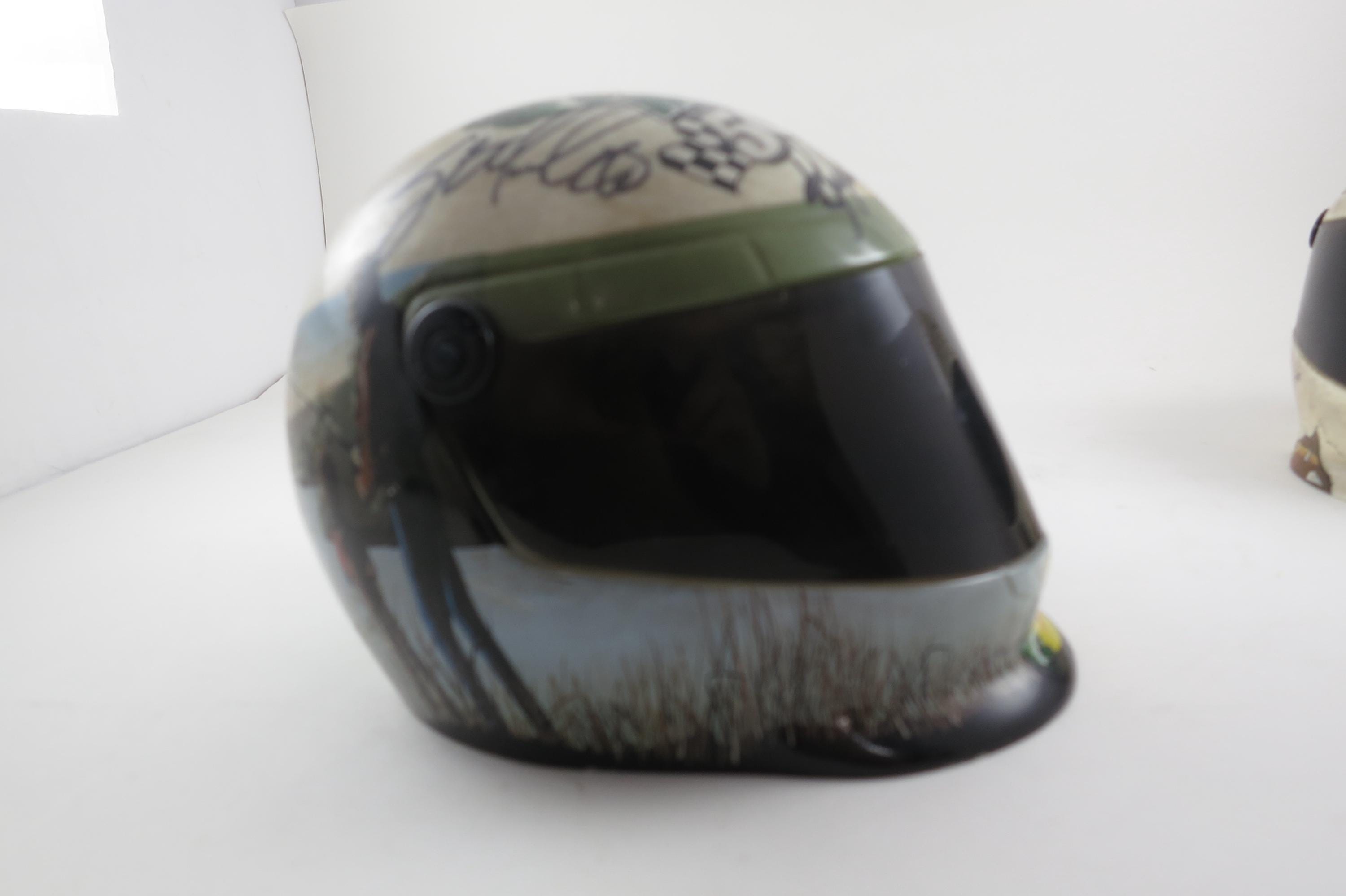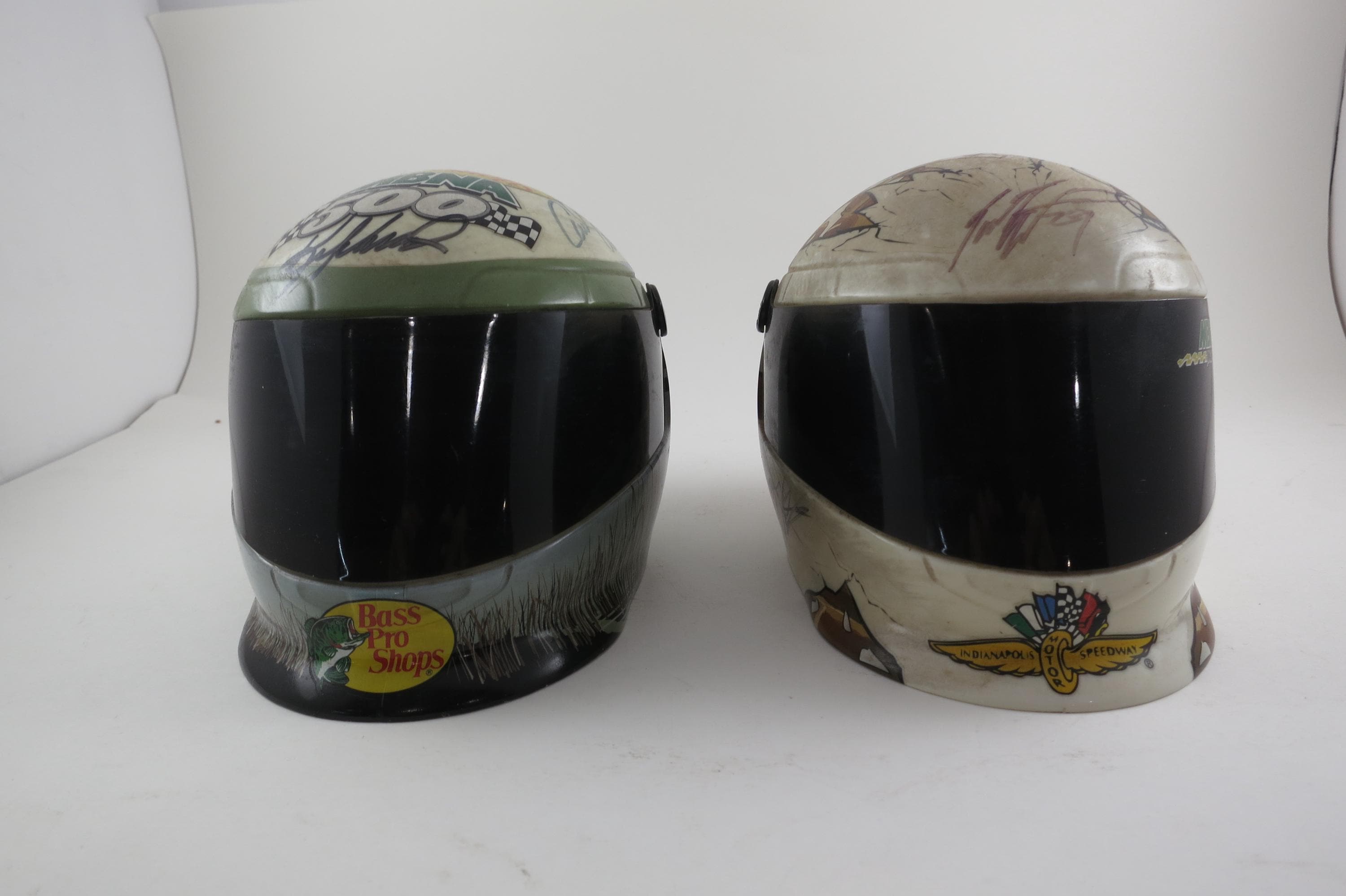 Pair of Signed NASCAR Mini Helmets 10 Signatures Petty Busch Edwards Biffle Dale Jr Jimmie Johnson.