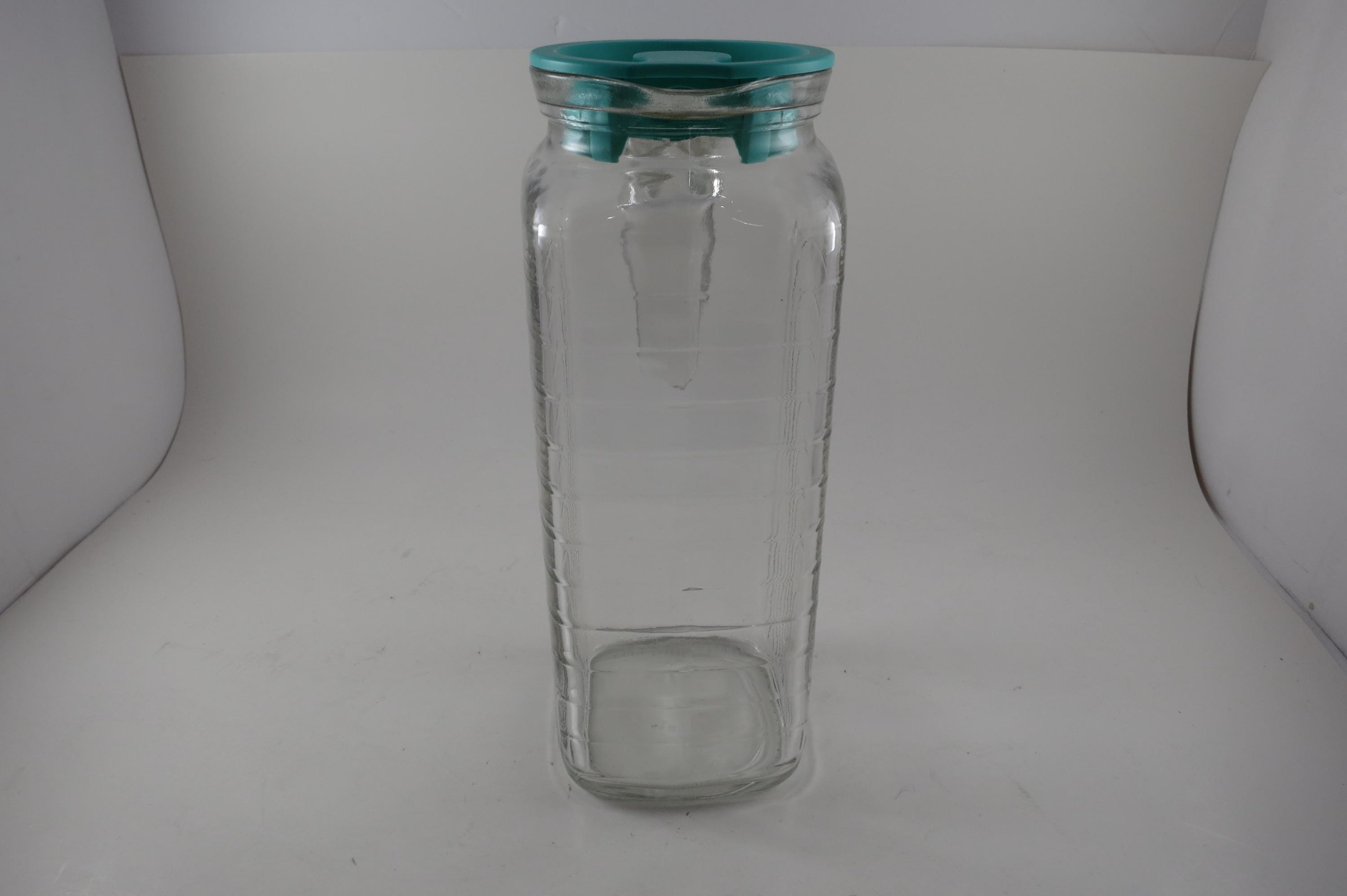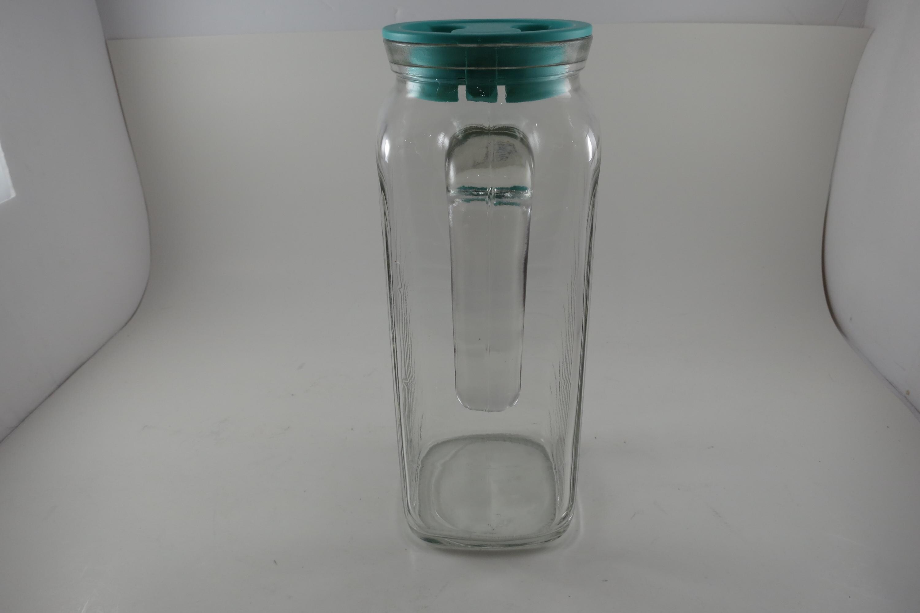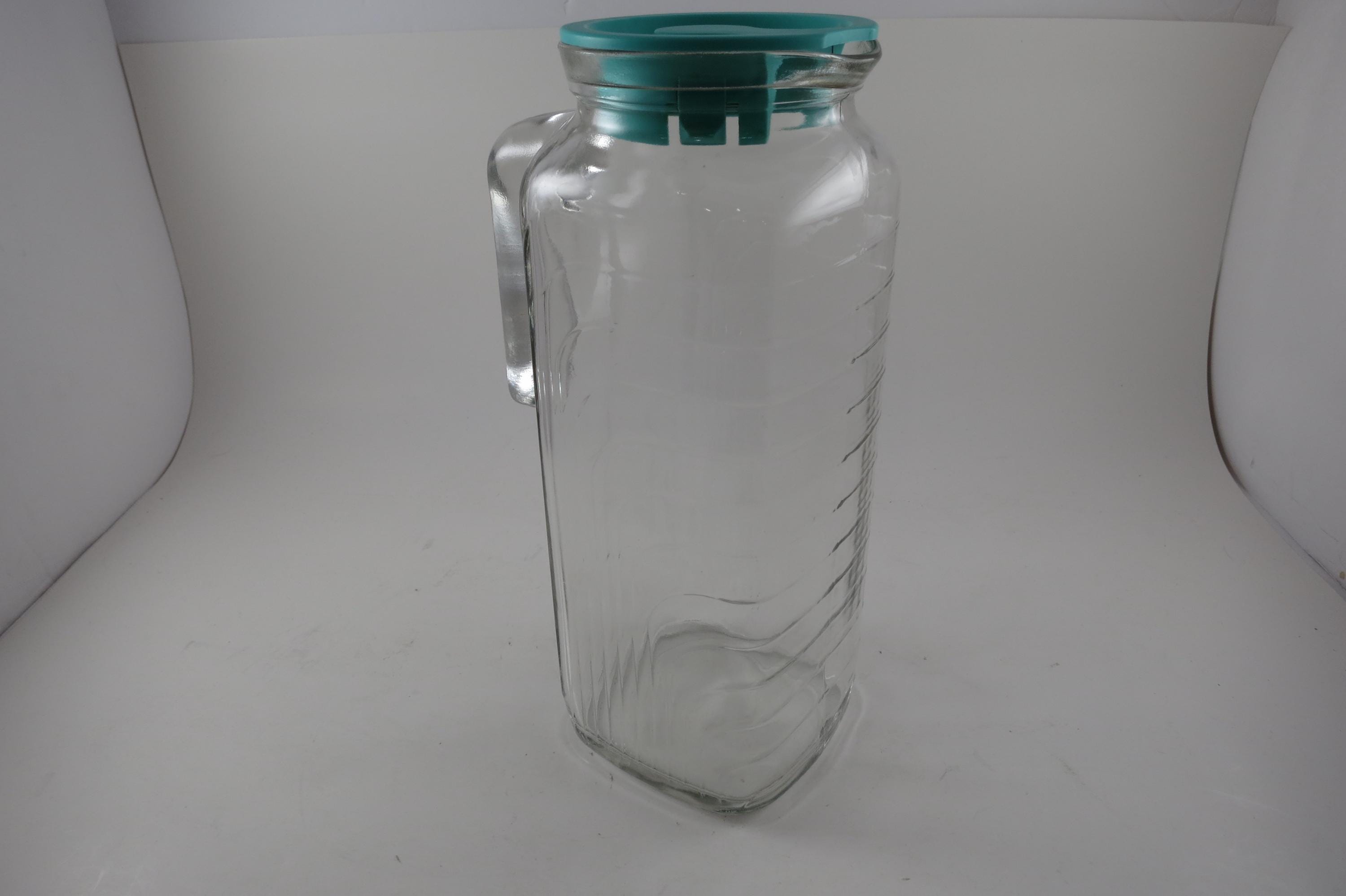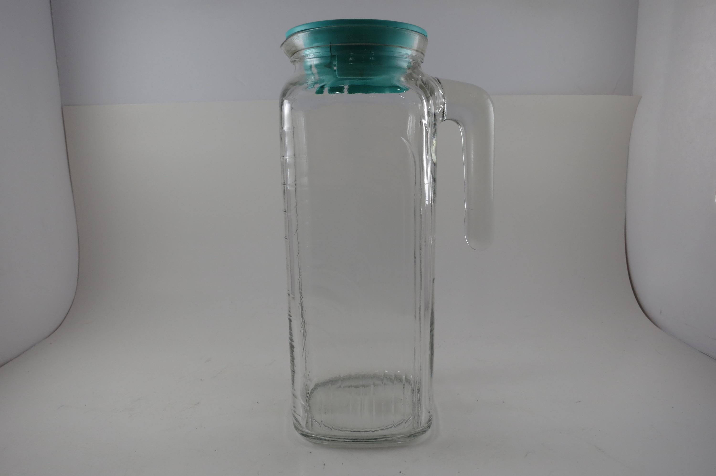 Vintage 9 Inch Bormioli Italian 1 Liter Juice Water Carafe with Original Green Lid. Measures 9 Inches tall. Green Lid. Excellent Condition with No chips, cracks or damages.