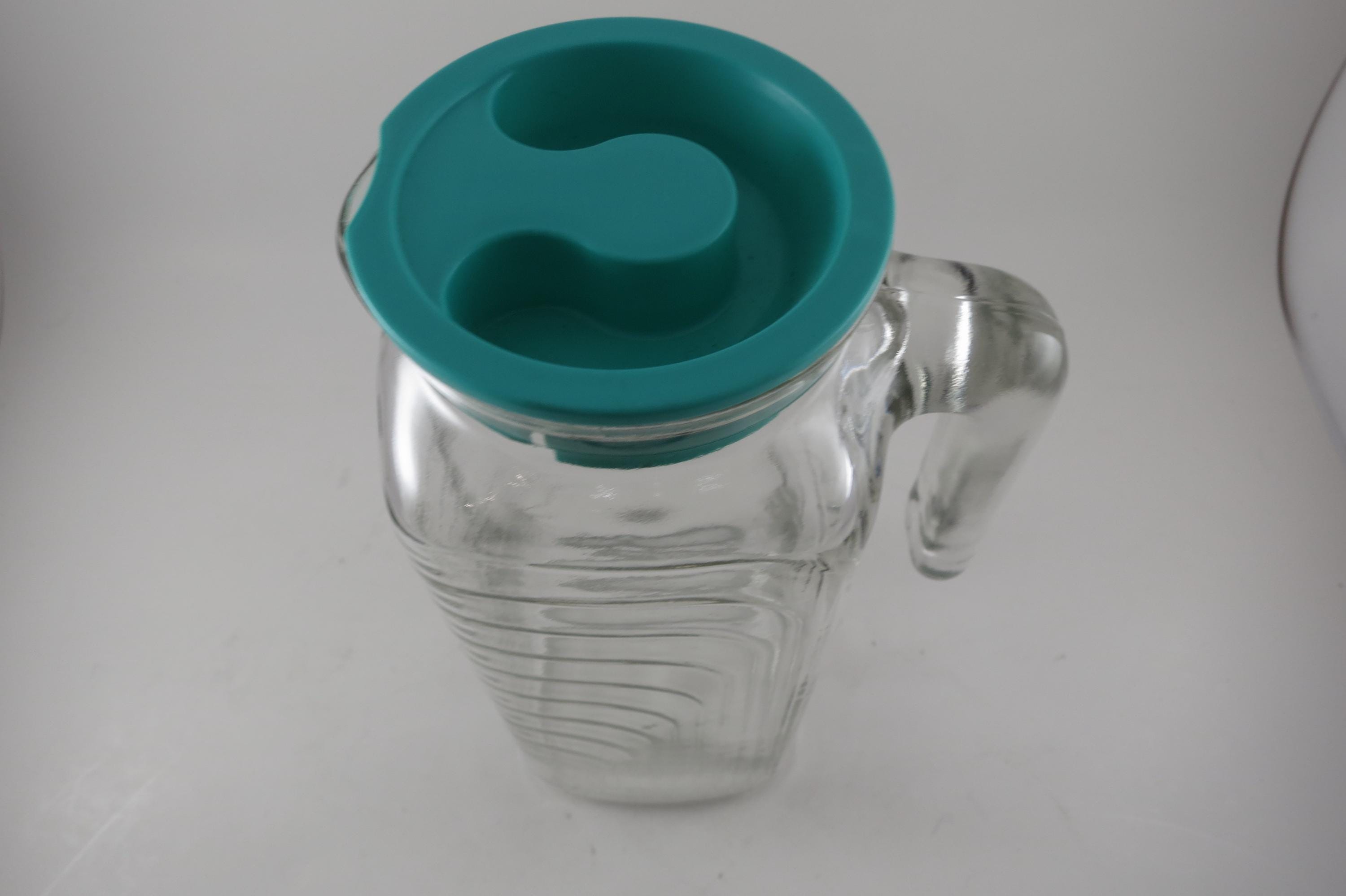 Vintage 9 Inch Bormioli Italian 1 Liter Juice Water Carafe with Original Green Lid