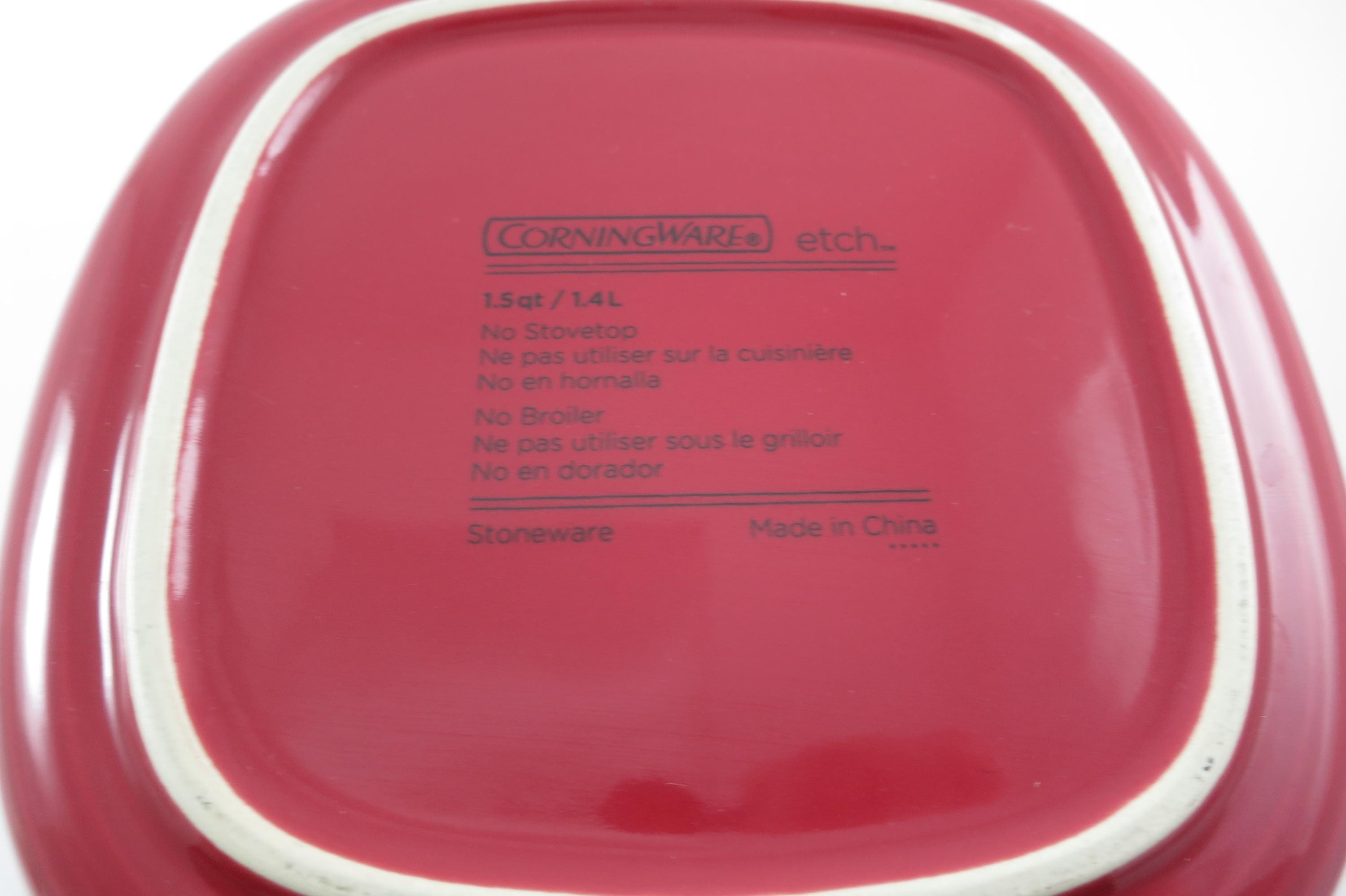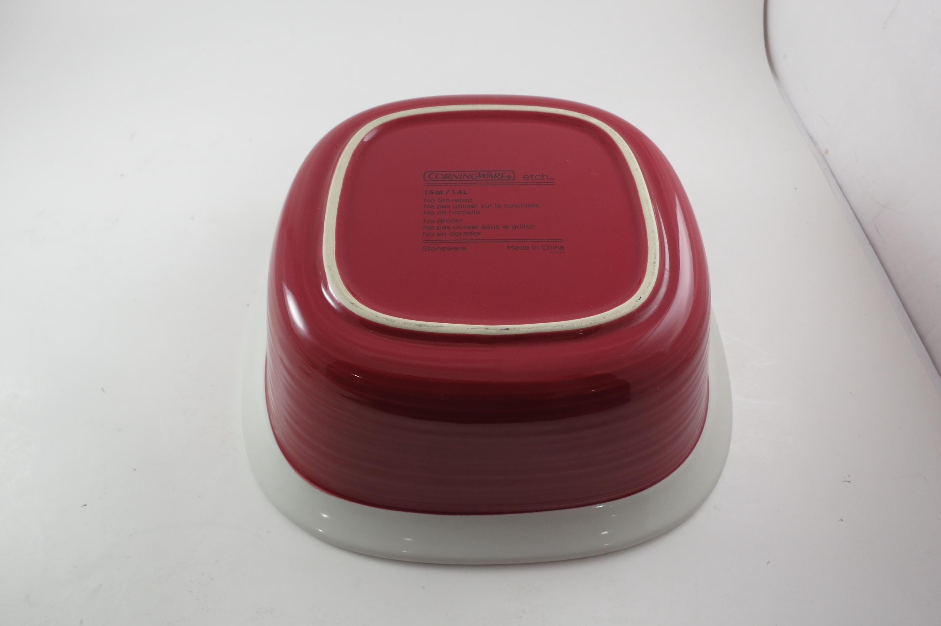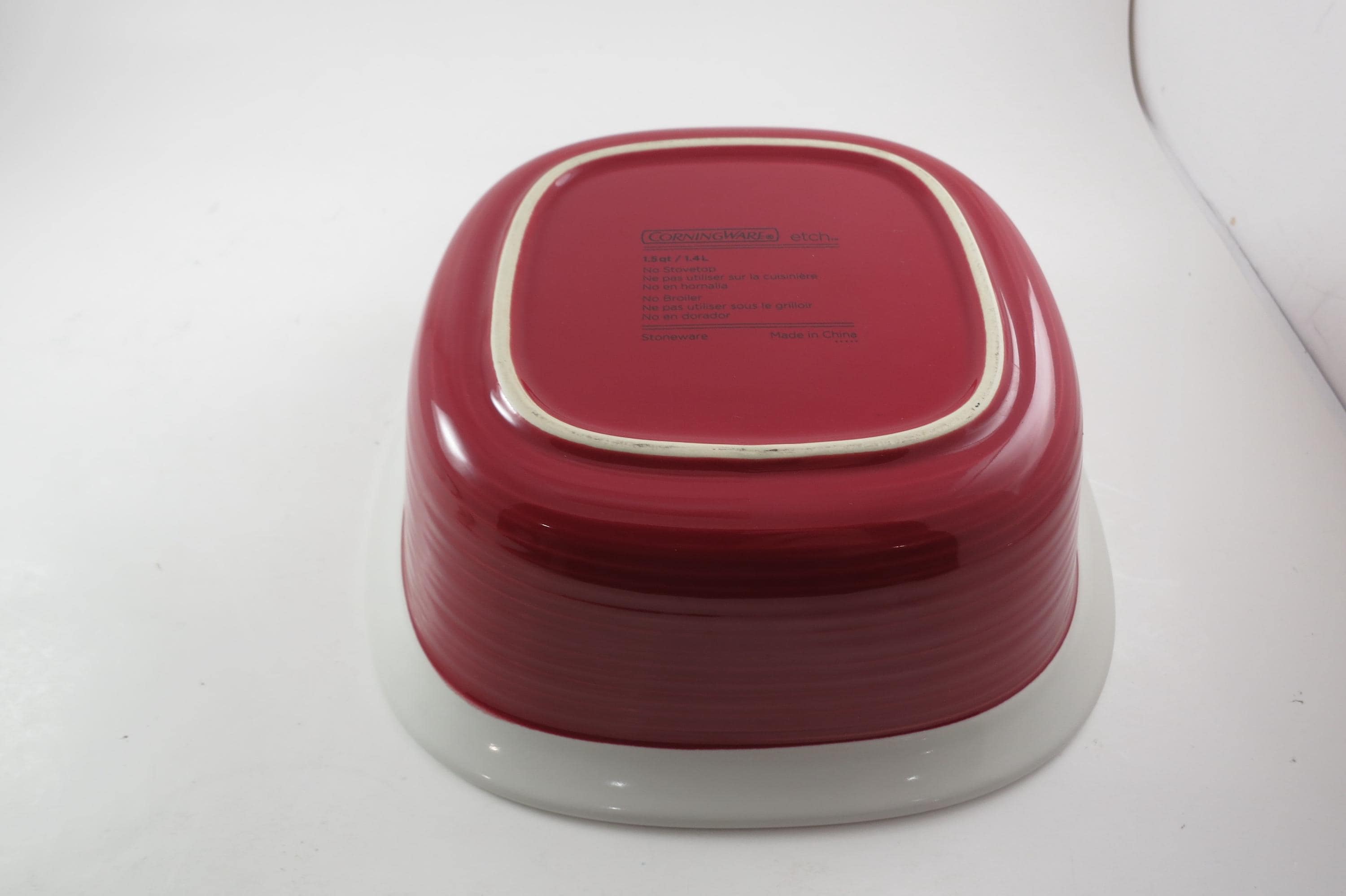 Vintage Corningware etch 1.5 Qt / 1.4 L Red Casserole With Original Glass Lid. Excellent condition.
