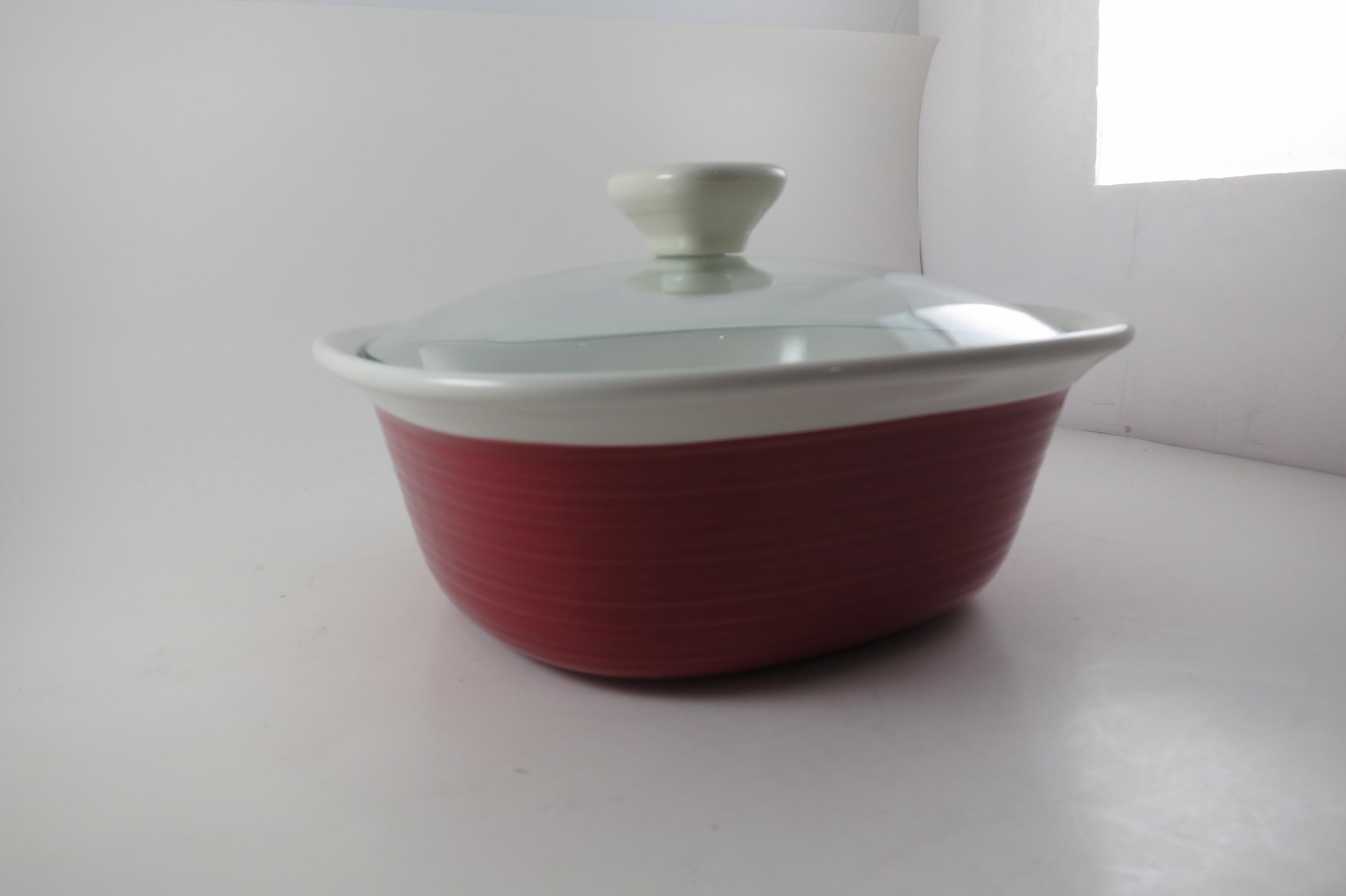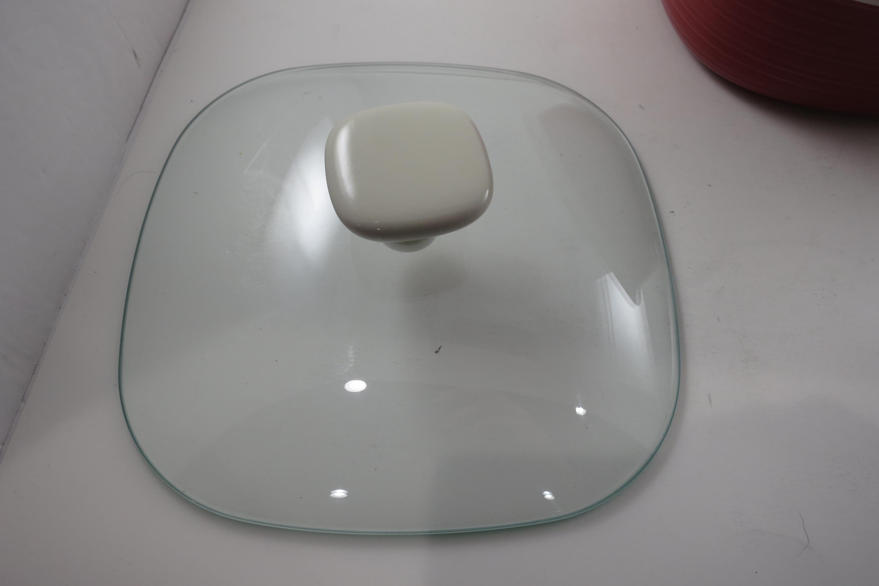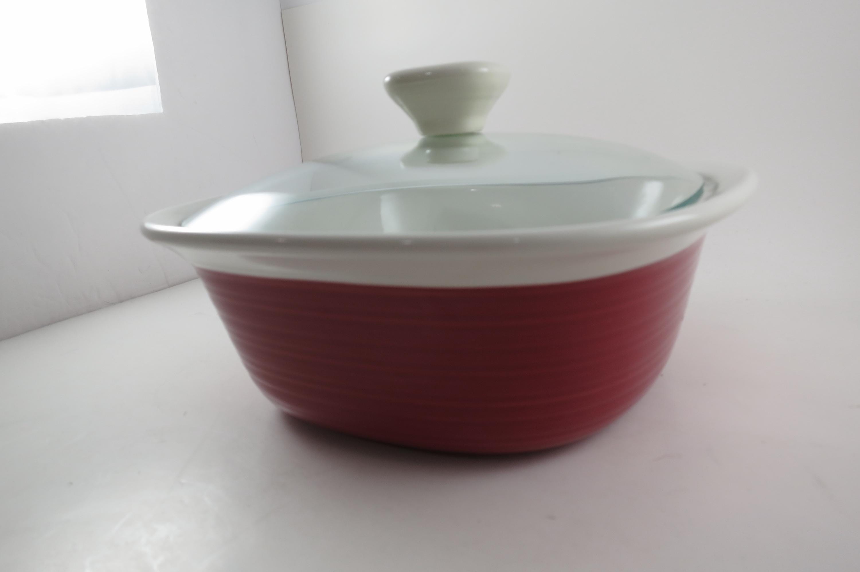 Vintage Corningware etch 1.5 Qt / 1.4 L Red Casserole With Original Glass Lid. Excellent condition.