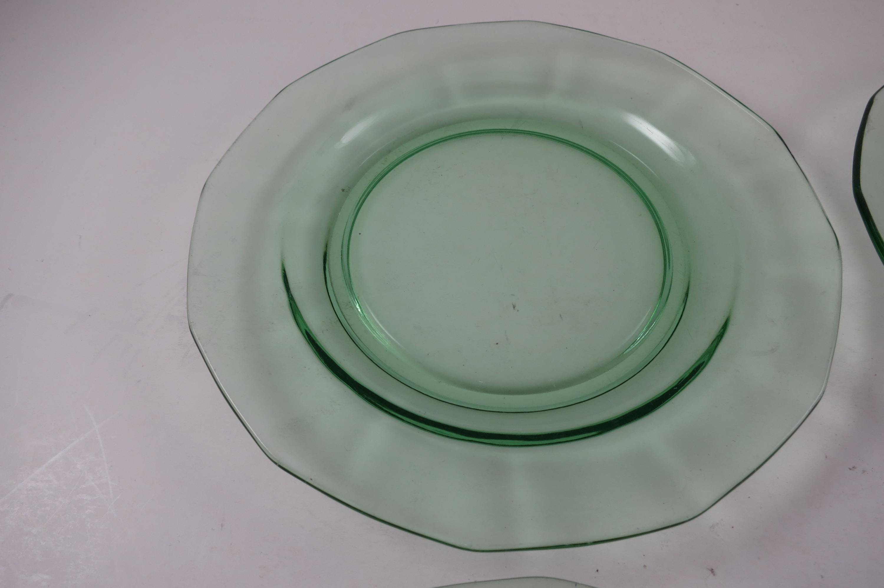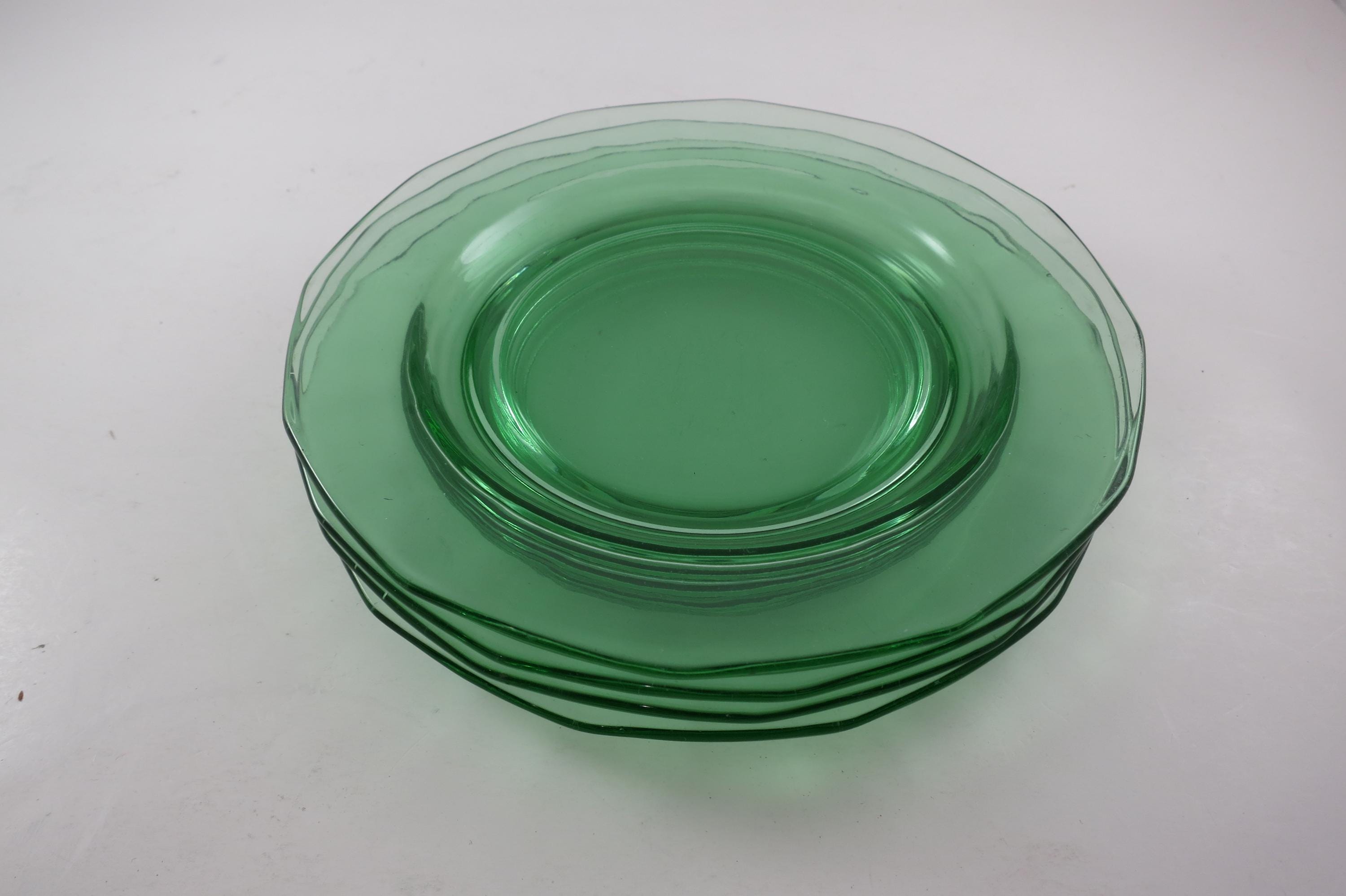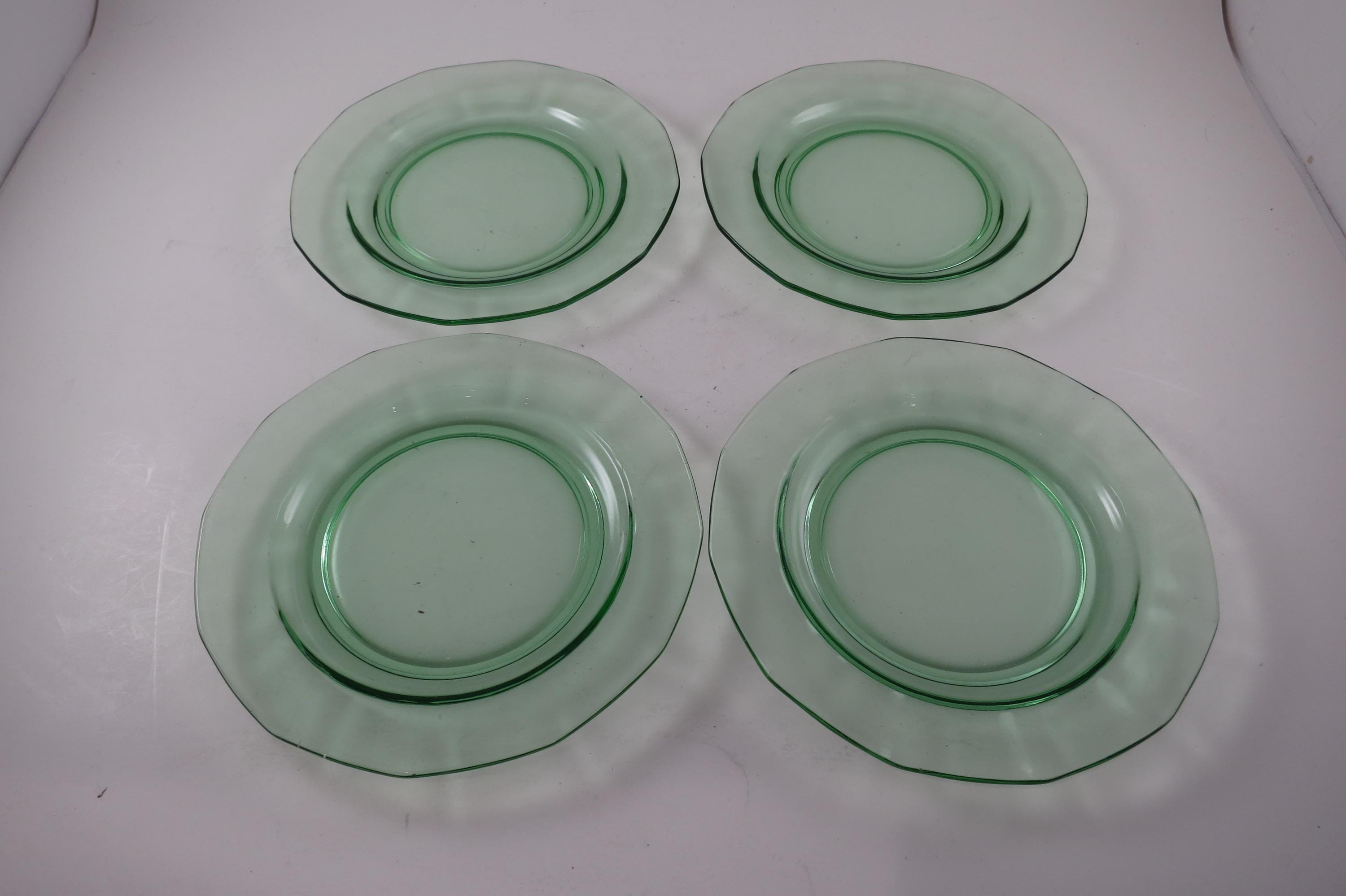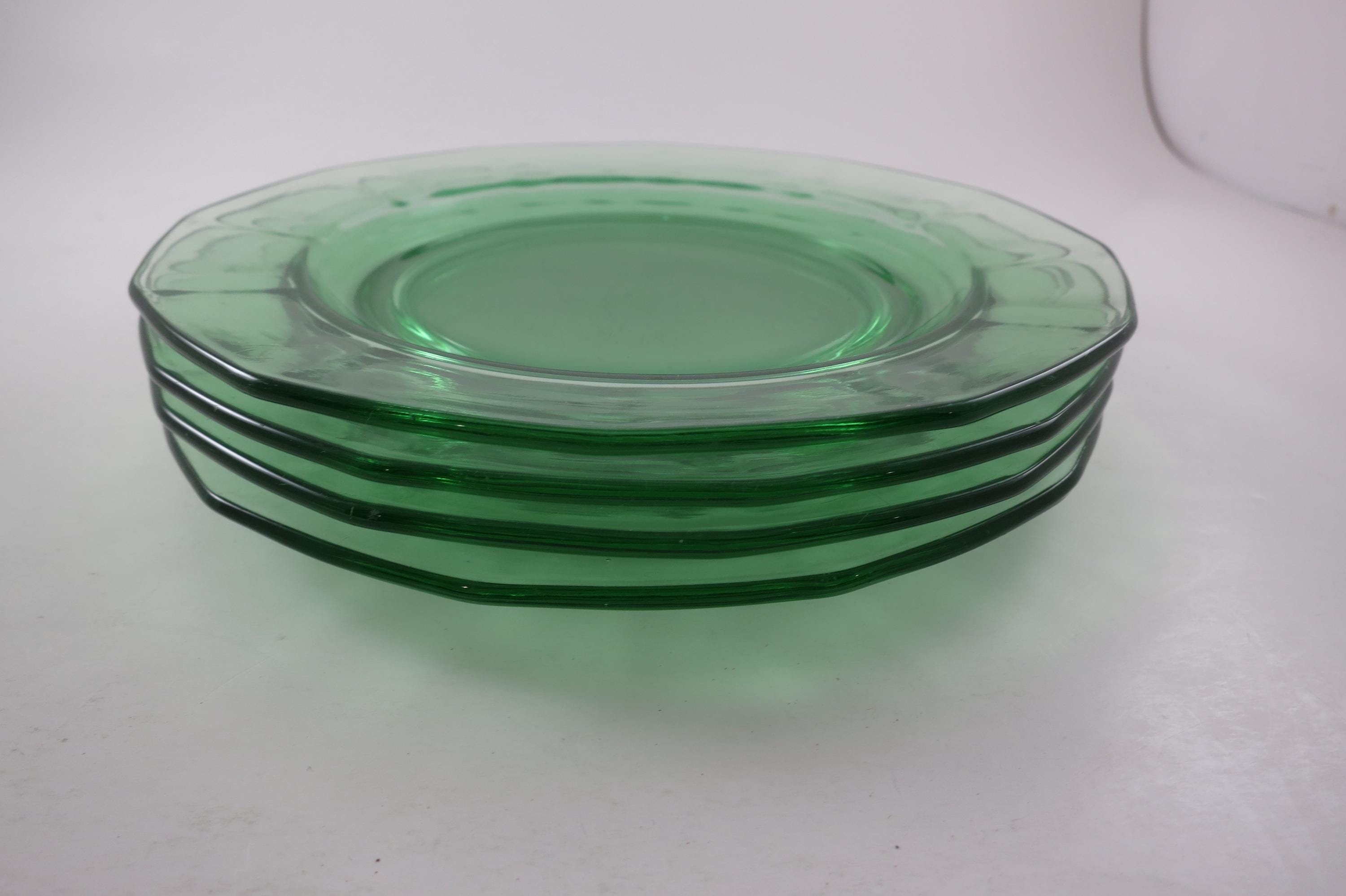 Set of Four Vintage Green Depression Glass 6 Inch Bread Plates
