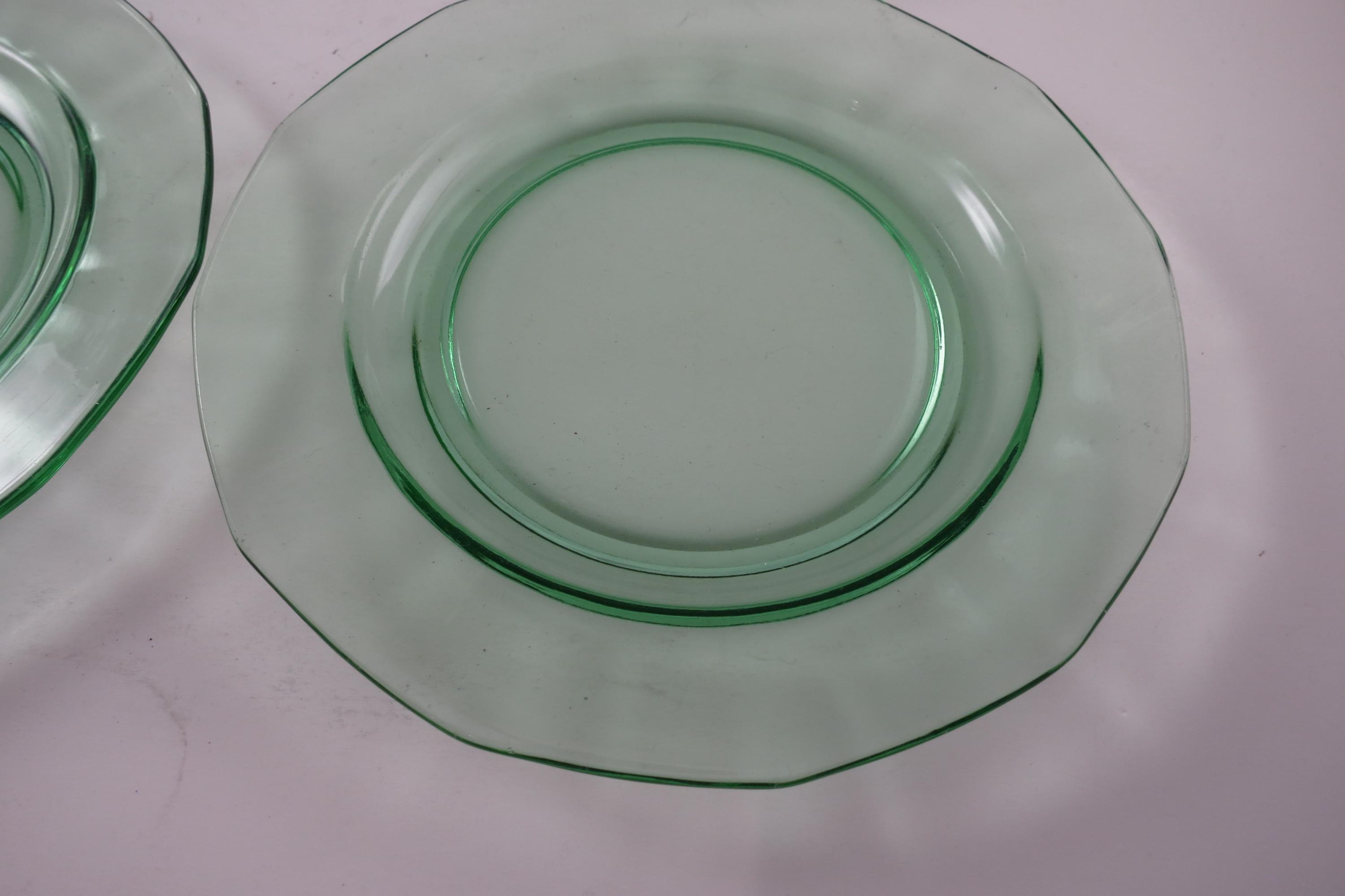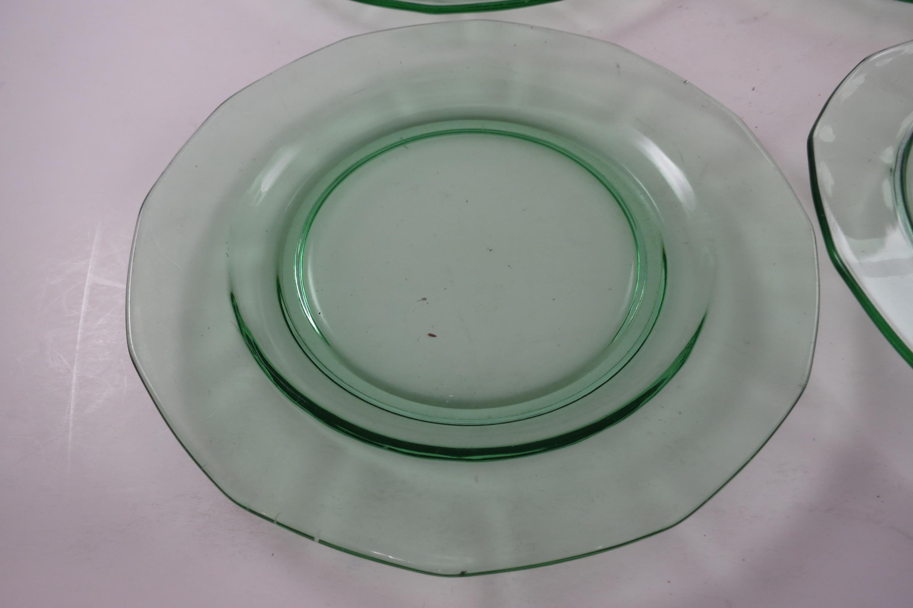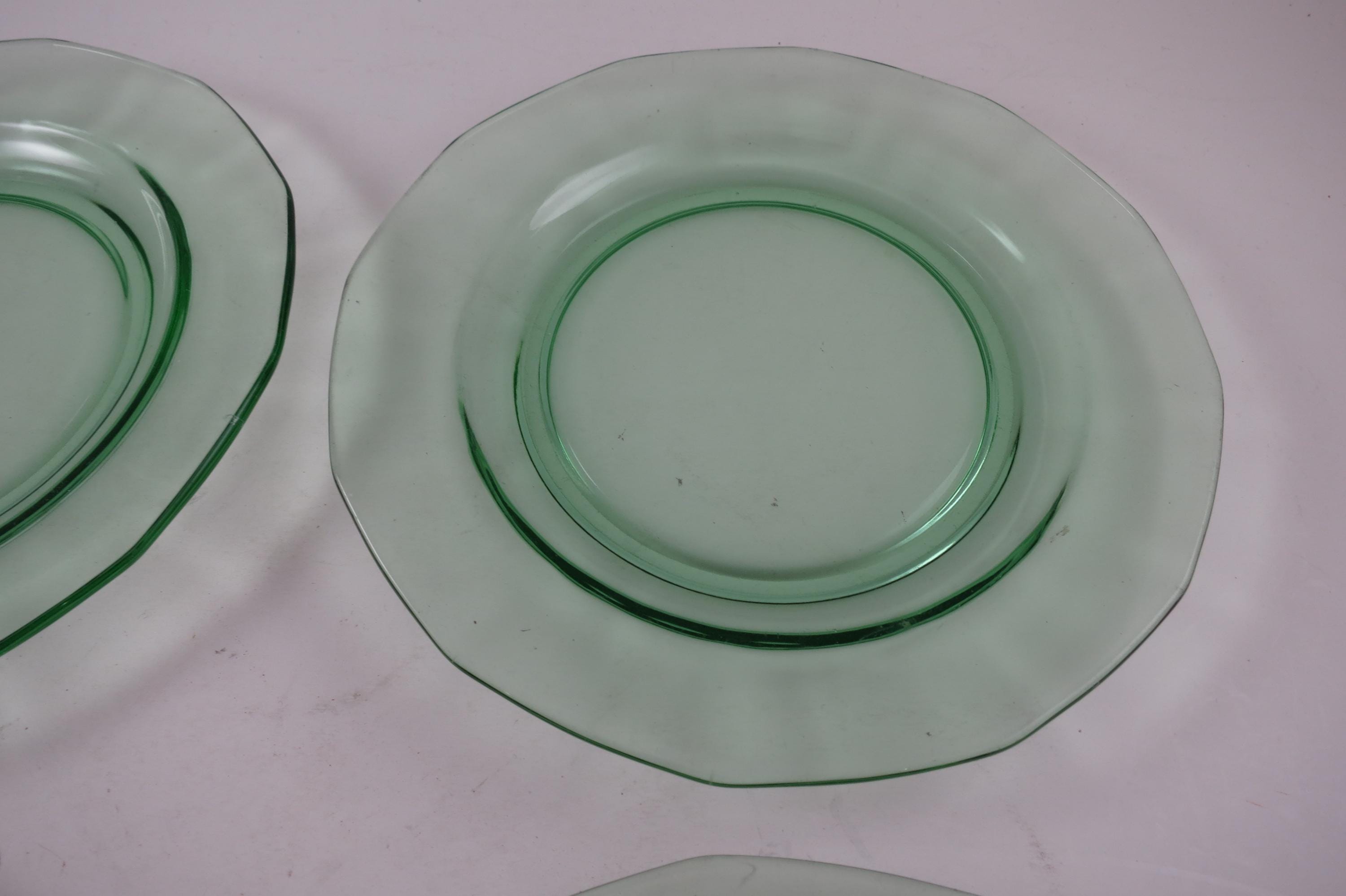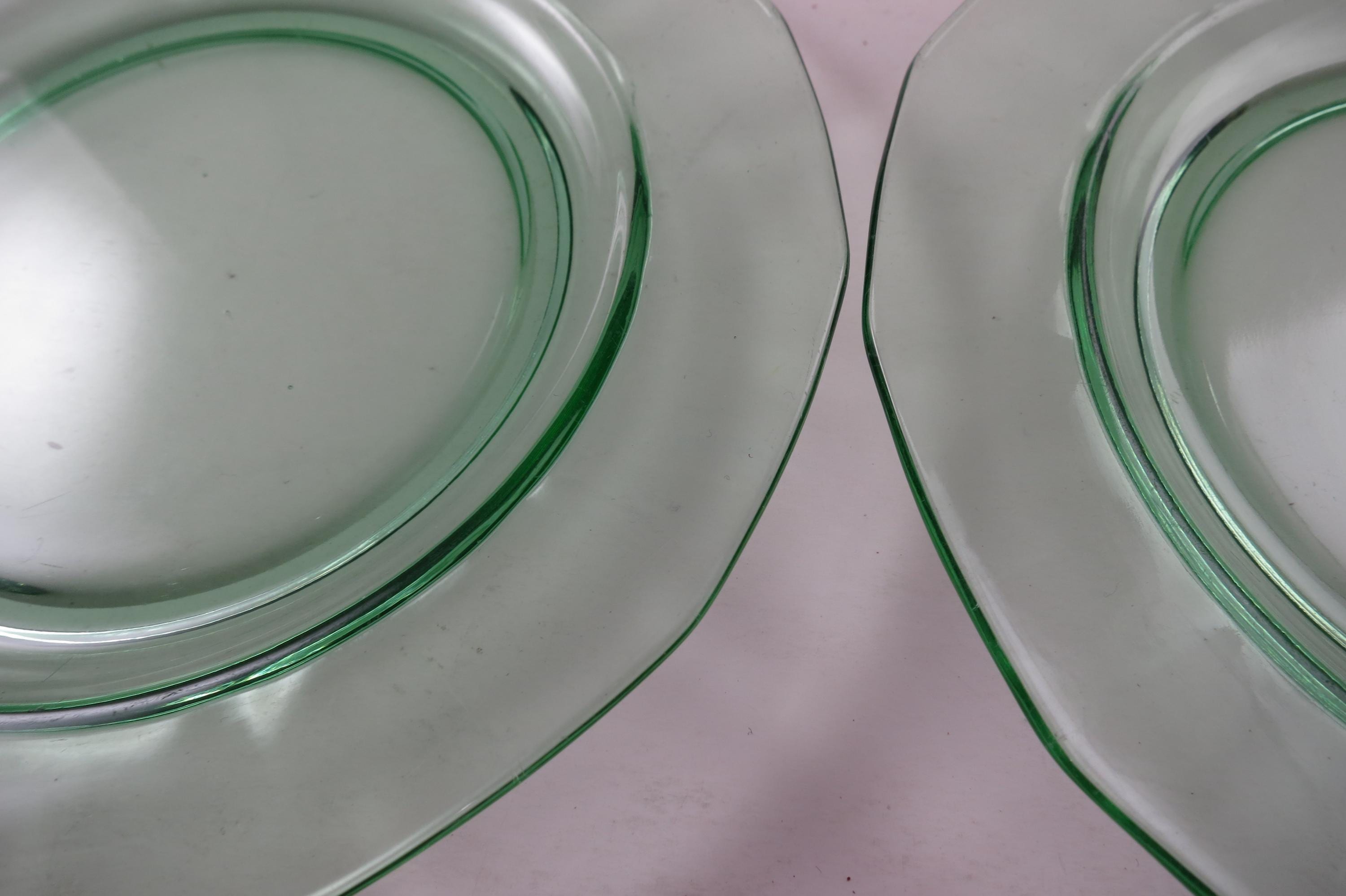 Set of Four Vintage Green Depression Glass 6 Inch Bread Plates