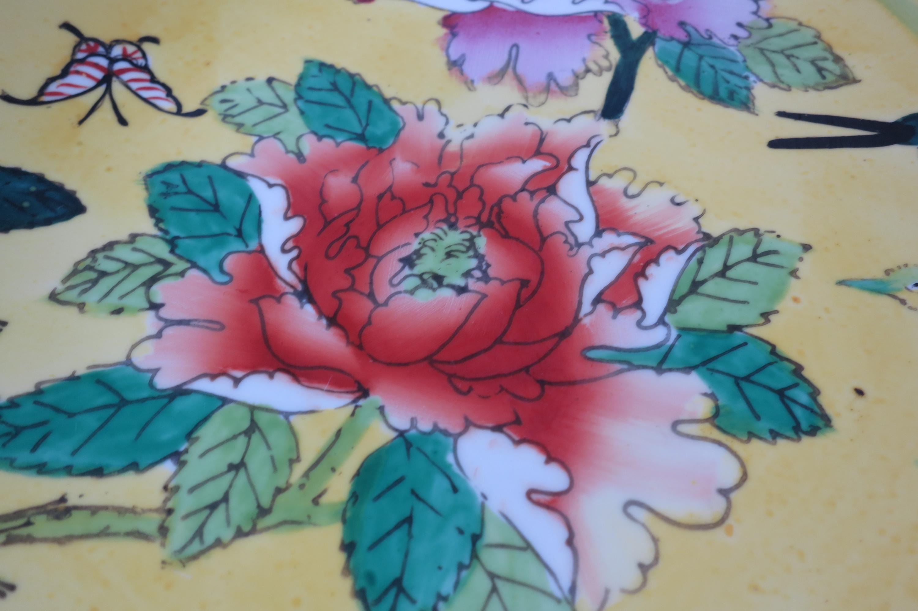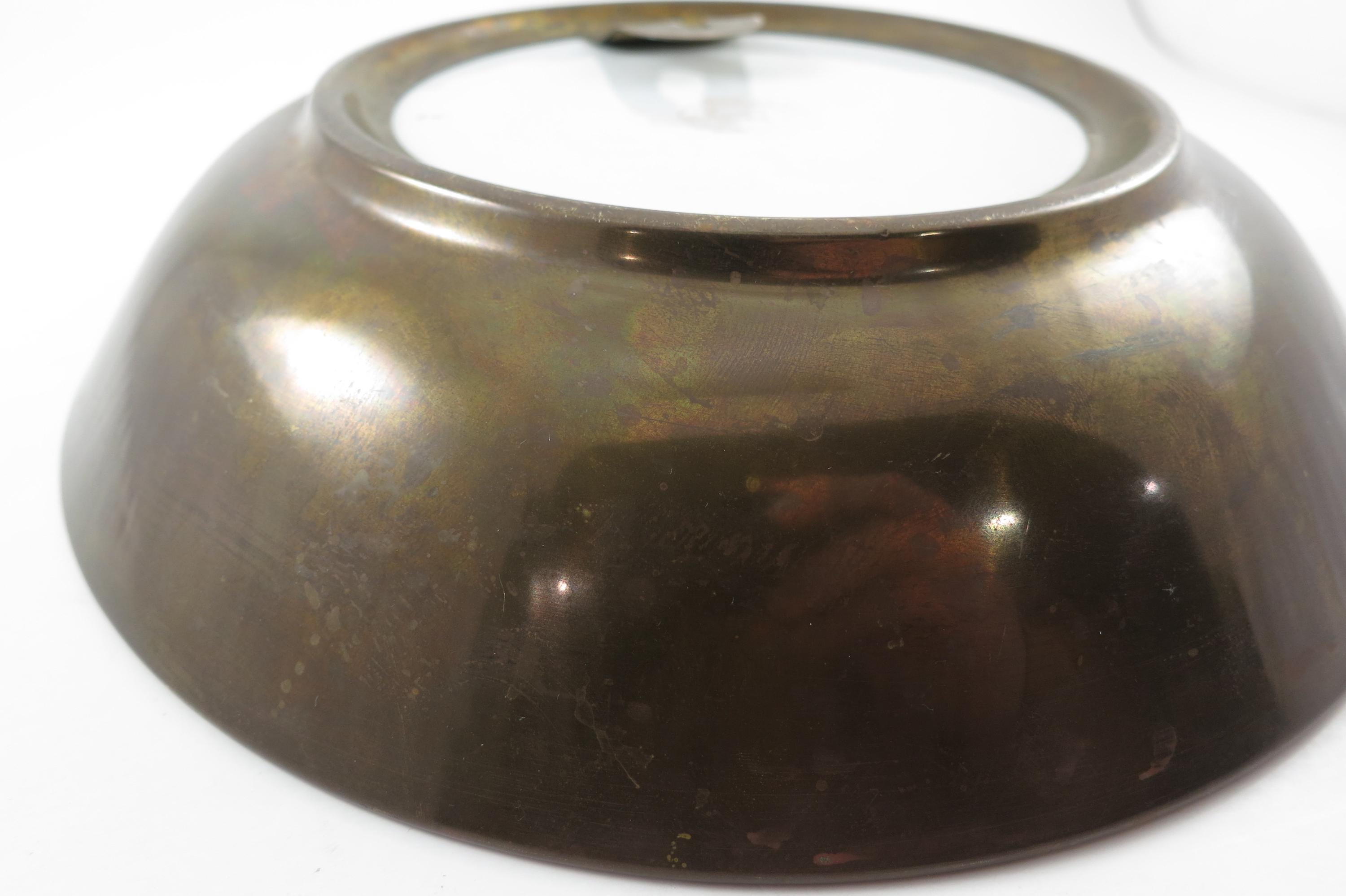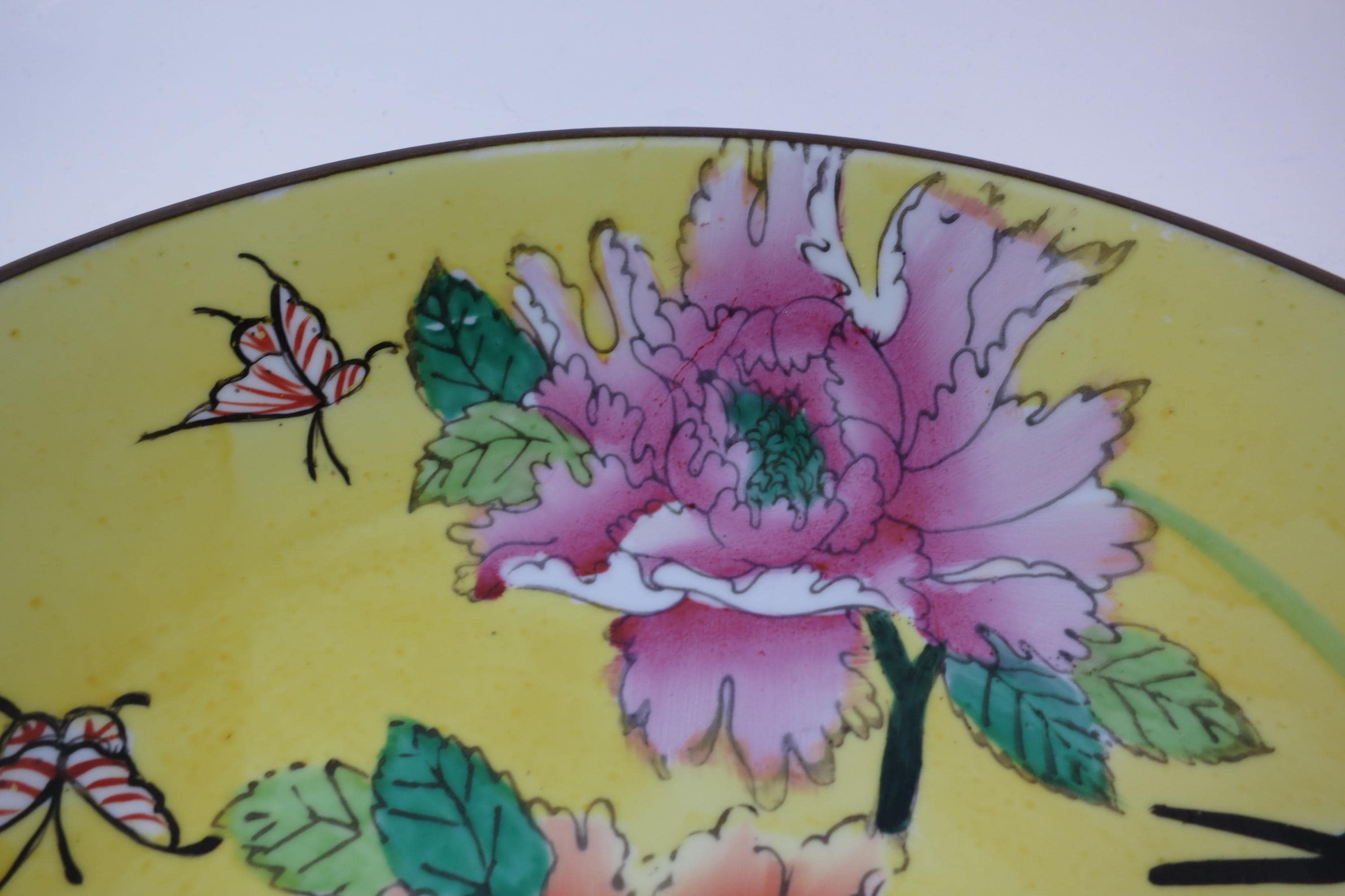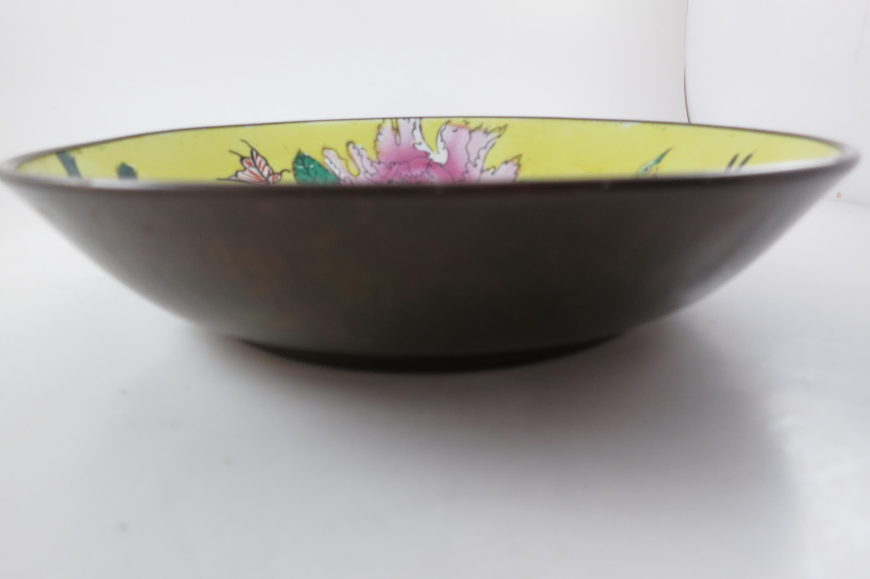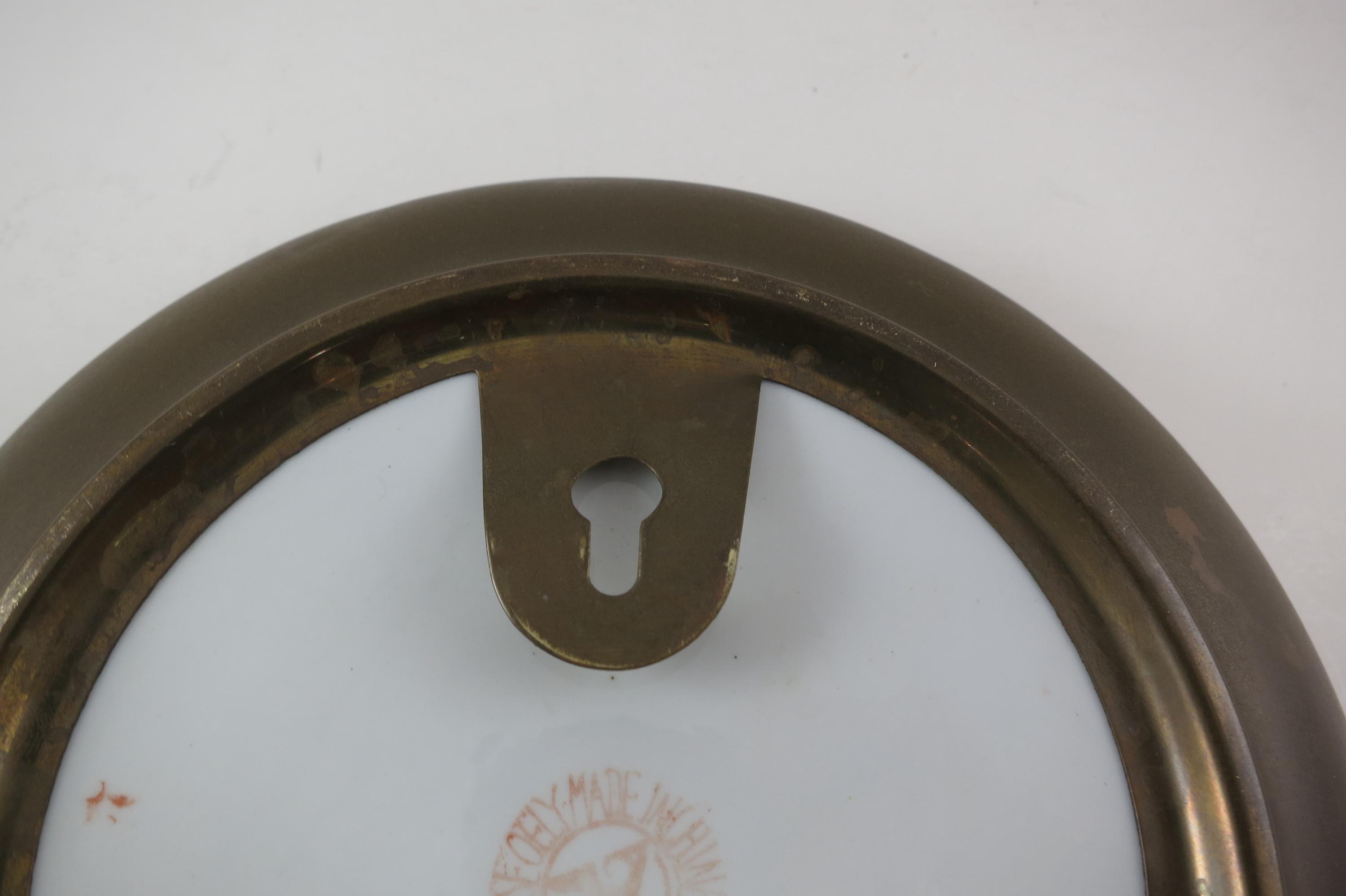Vintage Porcelain Asian Copper Back Wall Plate Stamped Birds and Flowers with Hanger