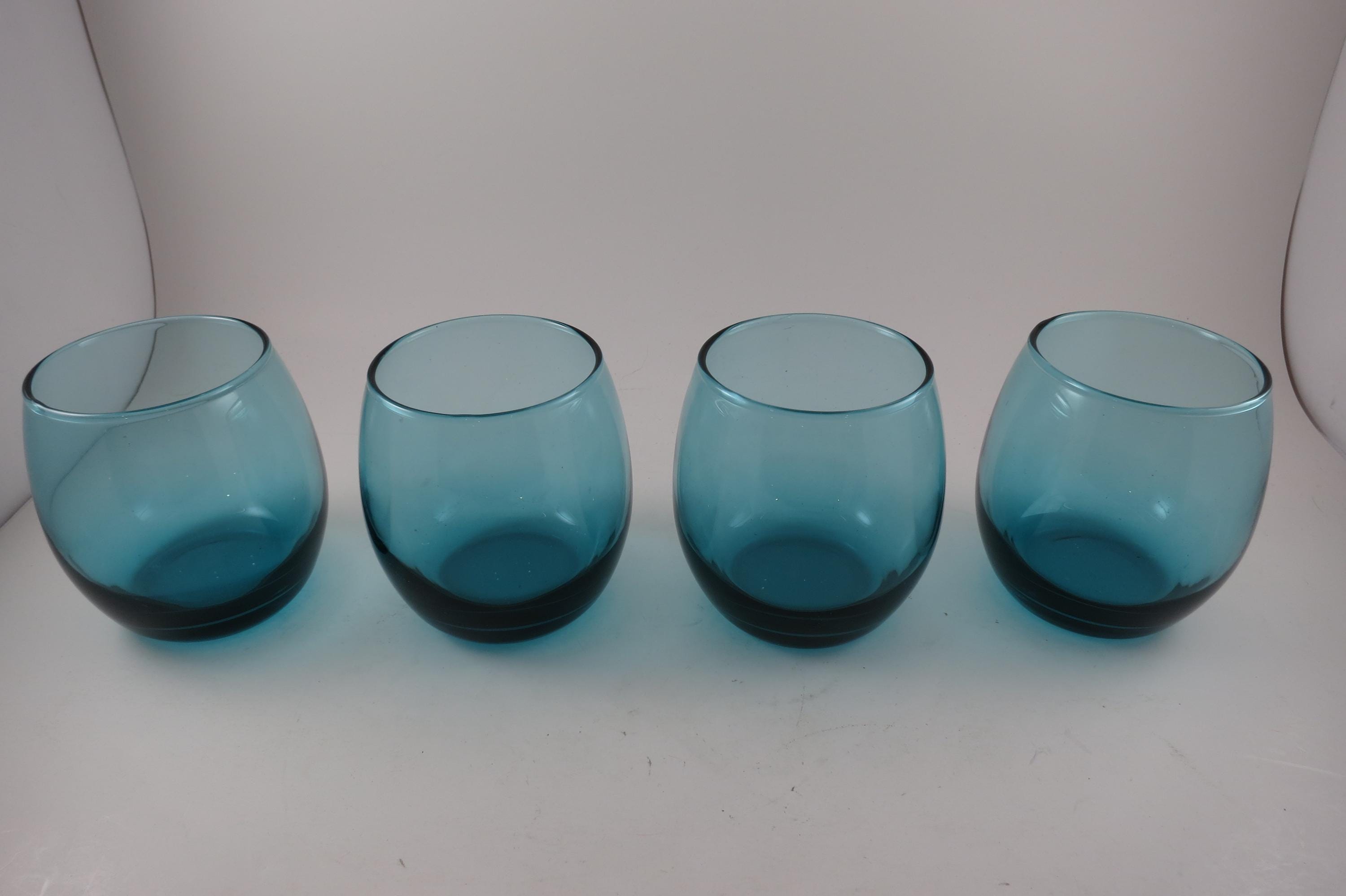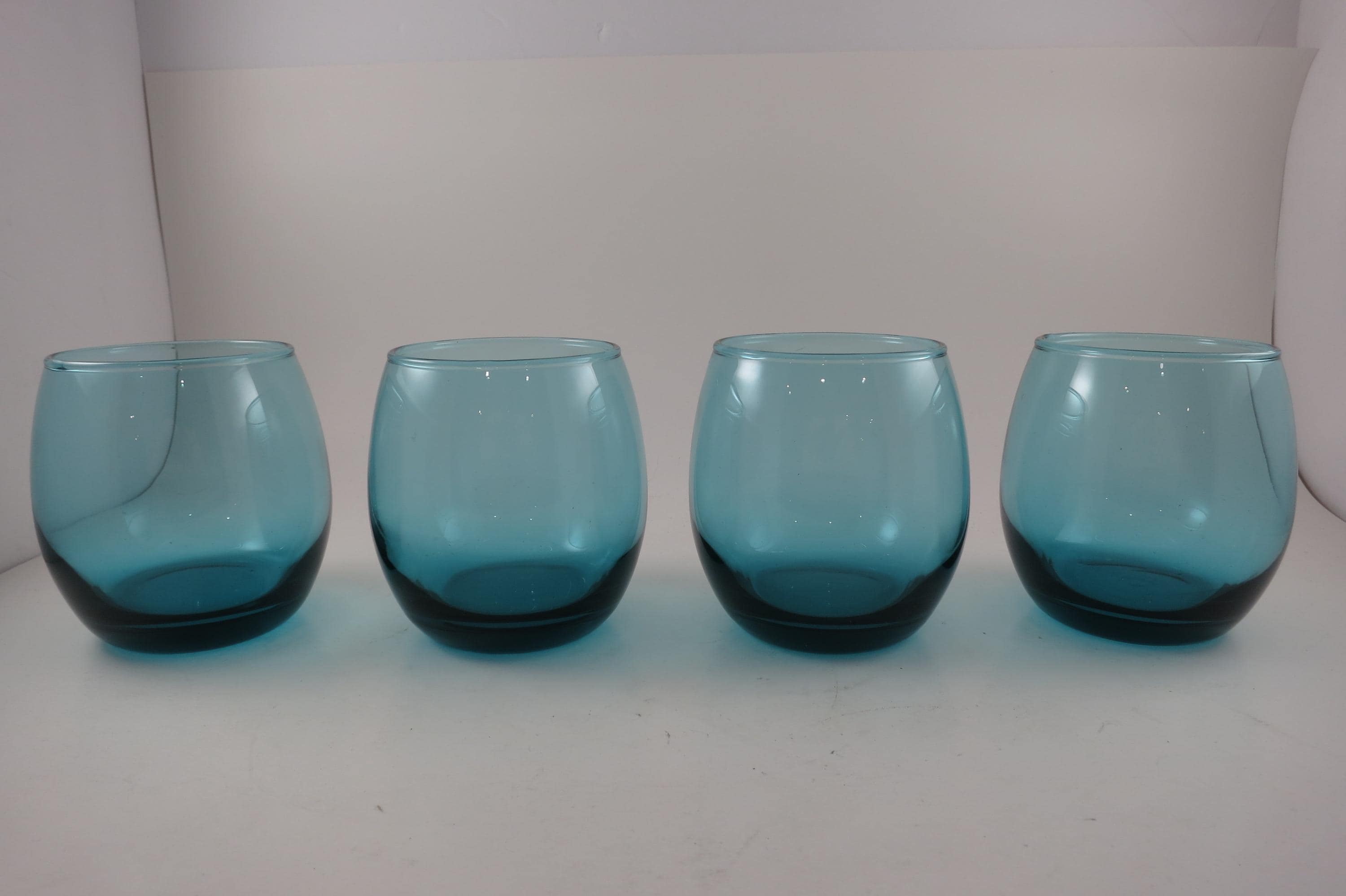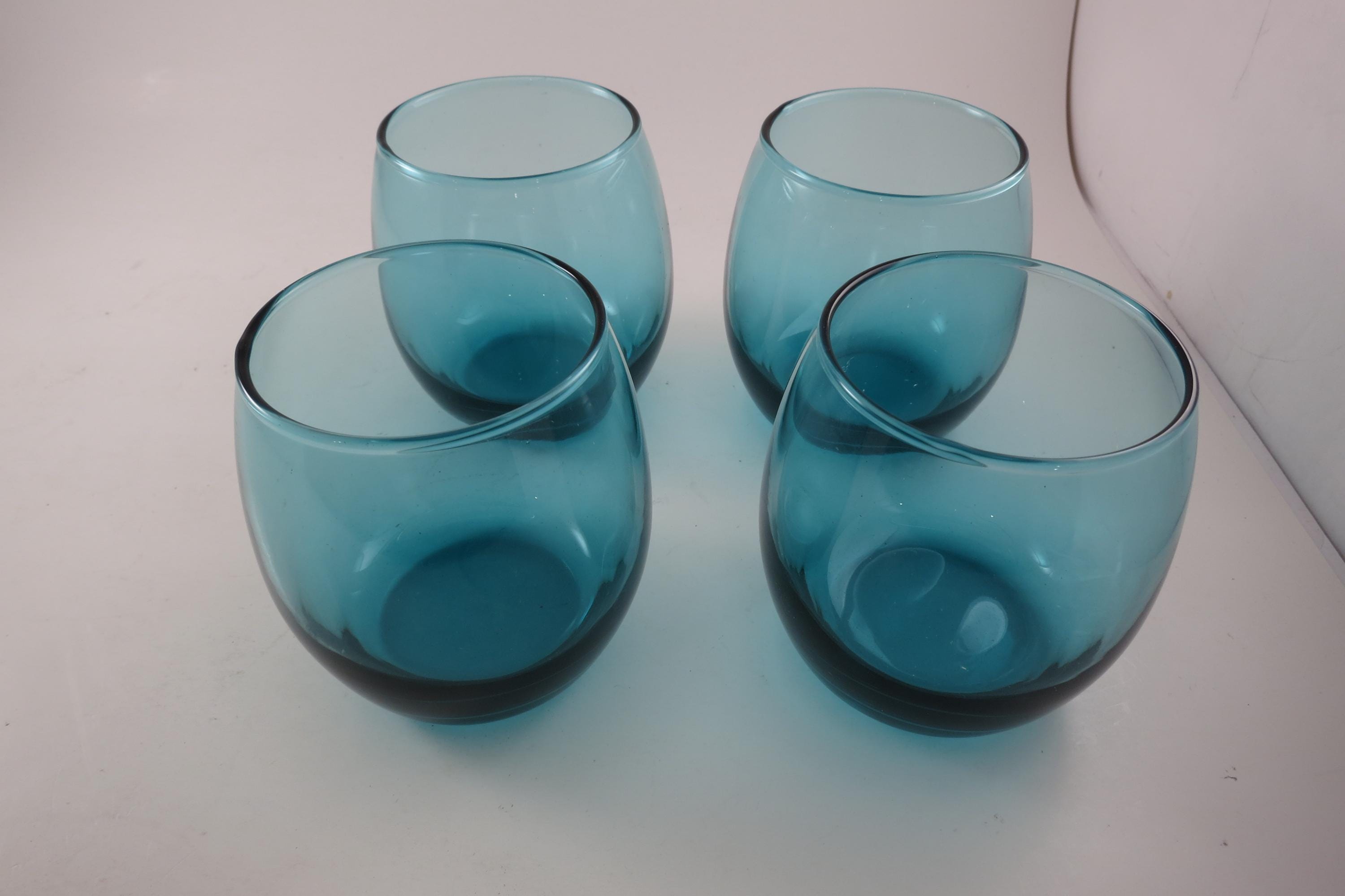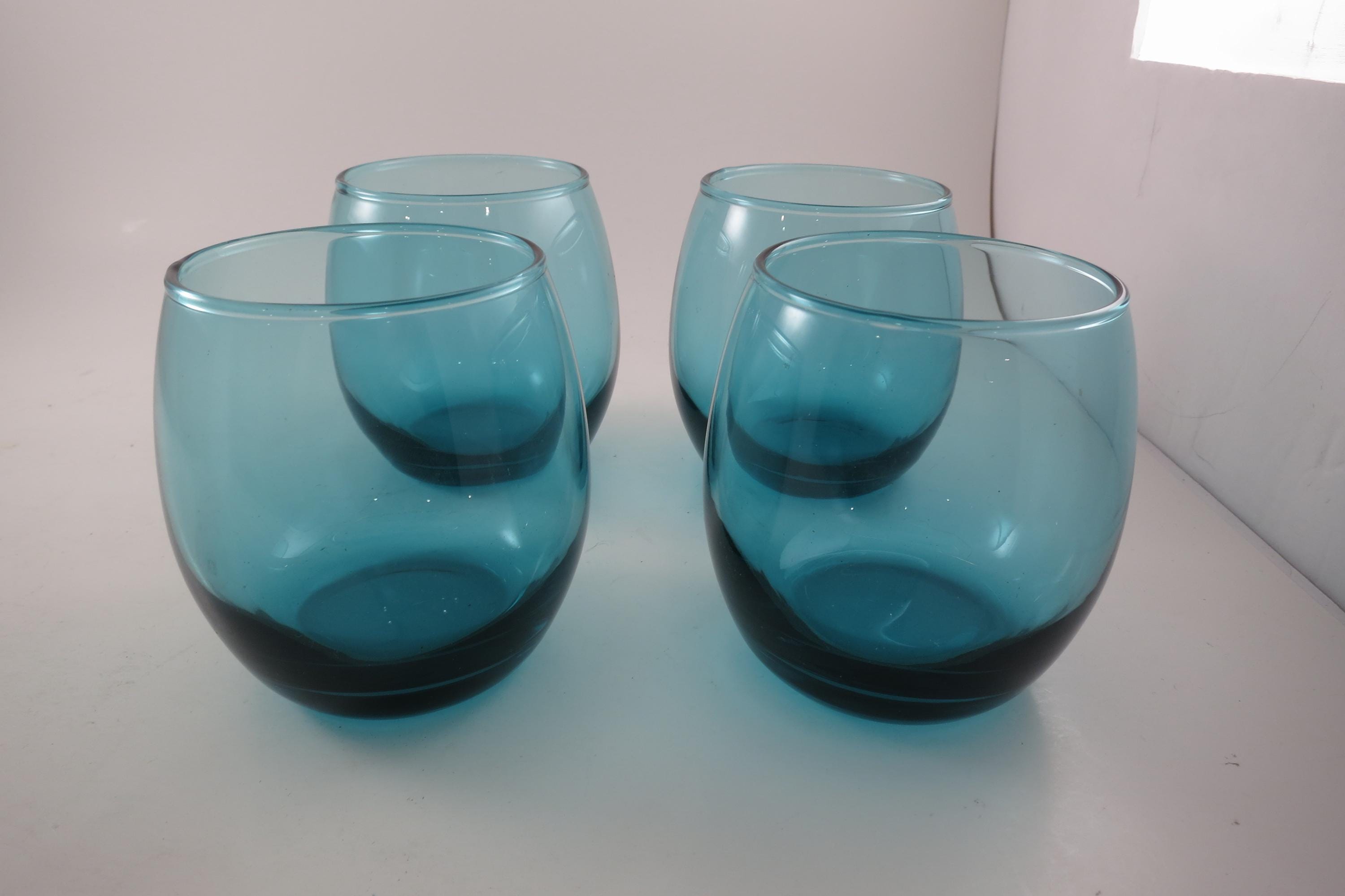 Vintage Set of Four Aqua Green Glass Tumblers